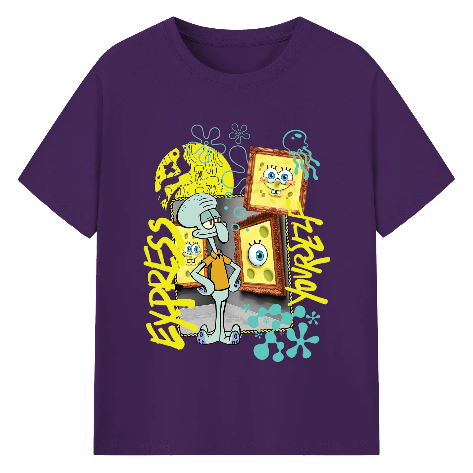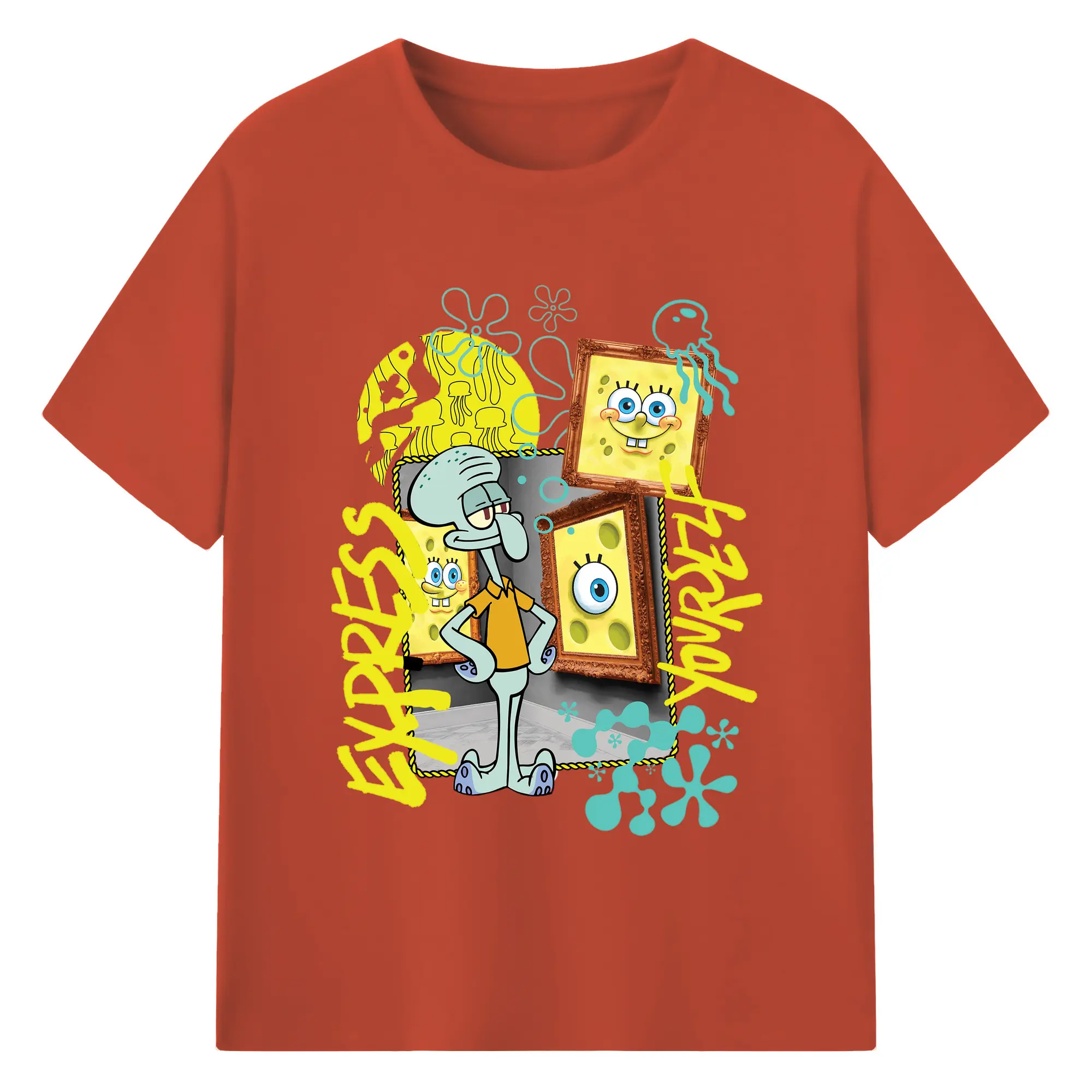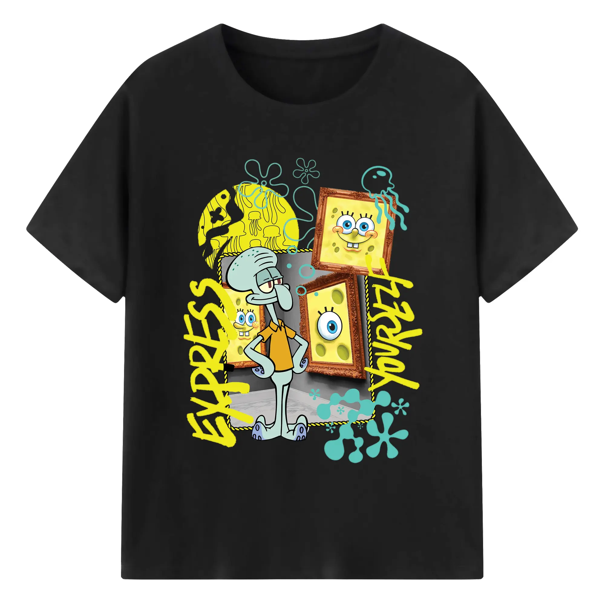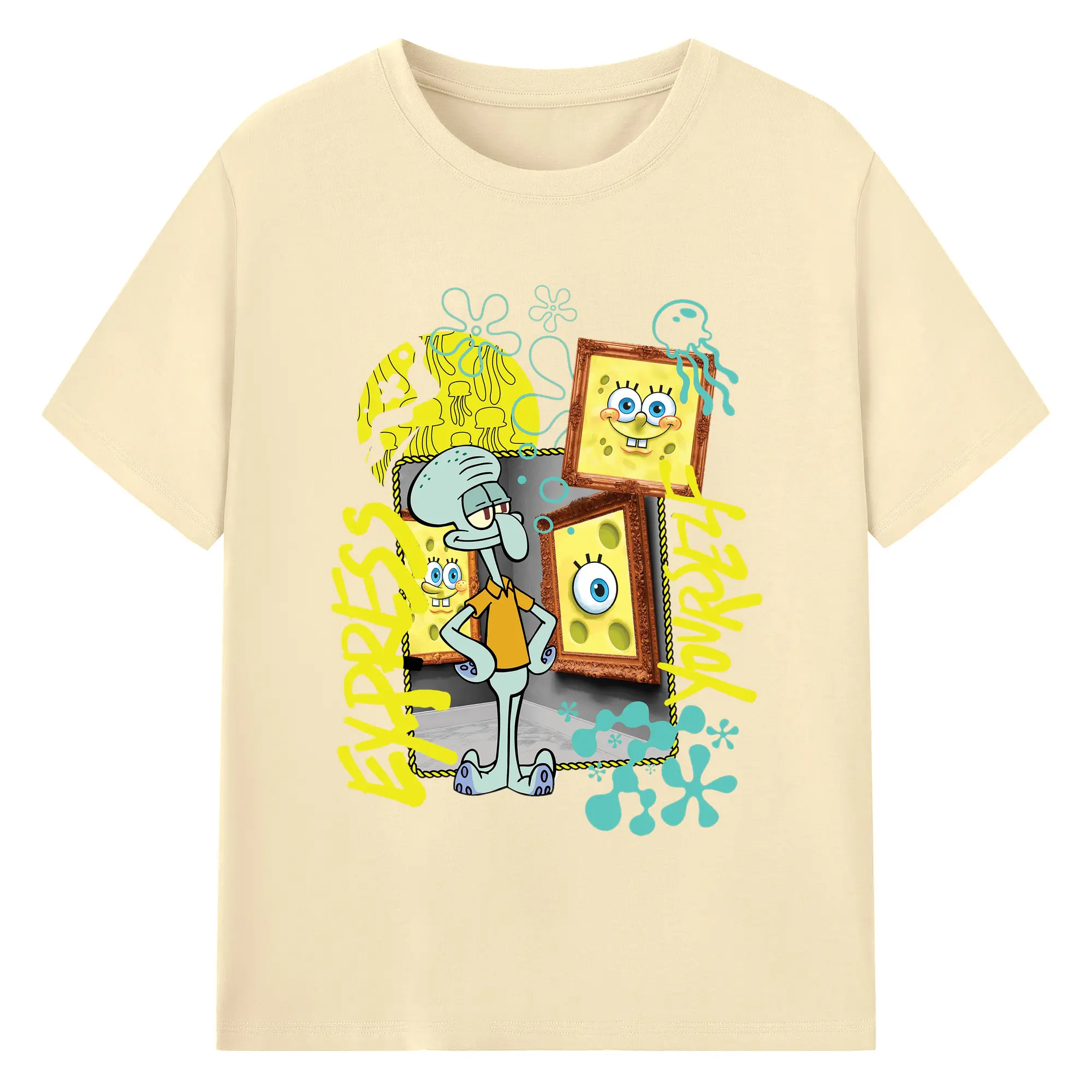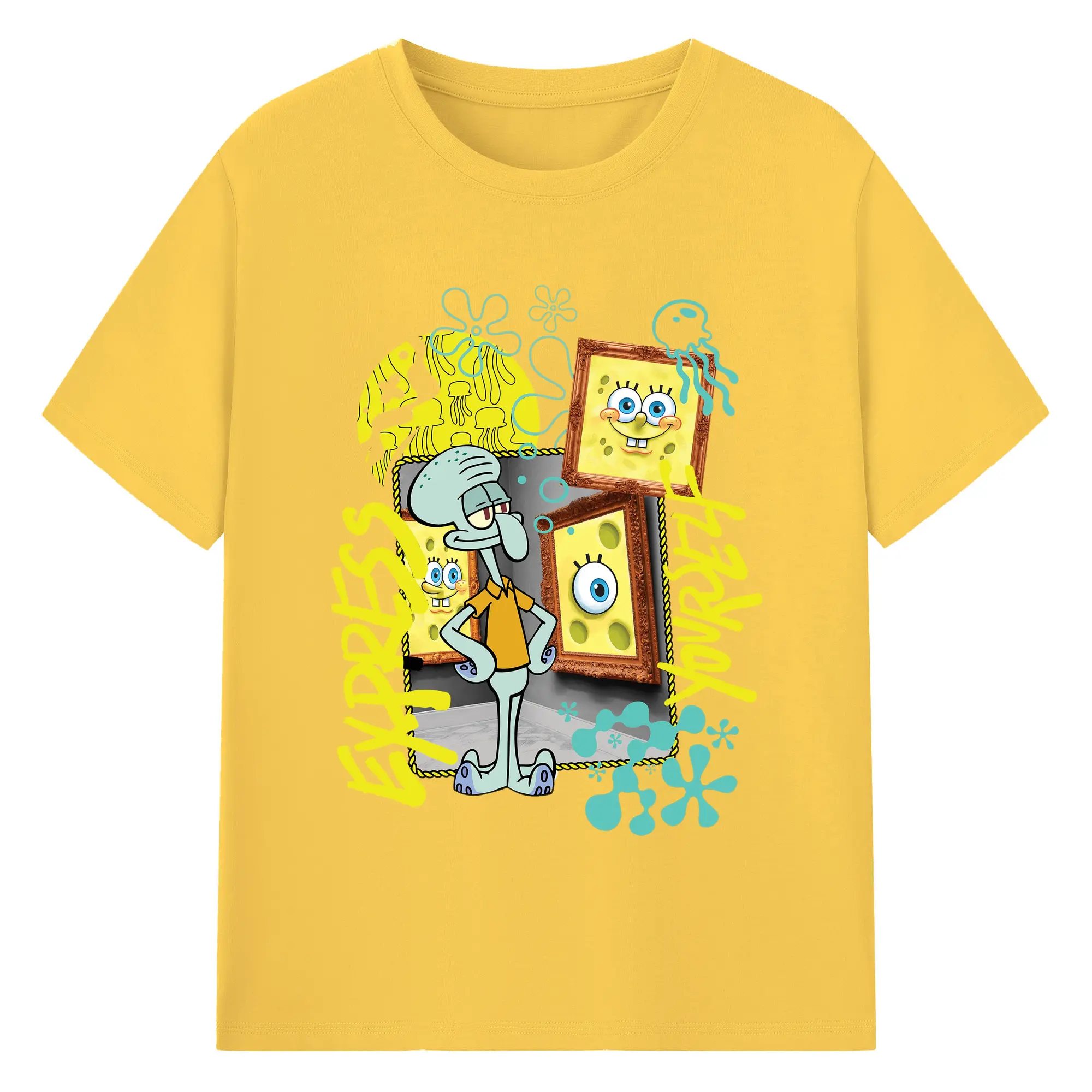 SpongeBob & Squidward Express Yourself DIY - 180g Cotton T-Shirt With Front Heat Transfer Print – Soft, Lightweight, Fitted Design – Comfortable Casual Wear For Sports & Everyday Use