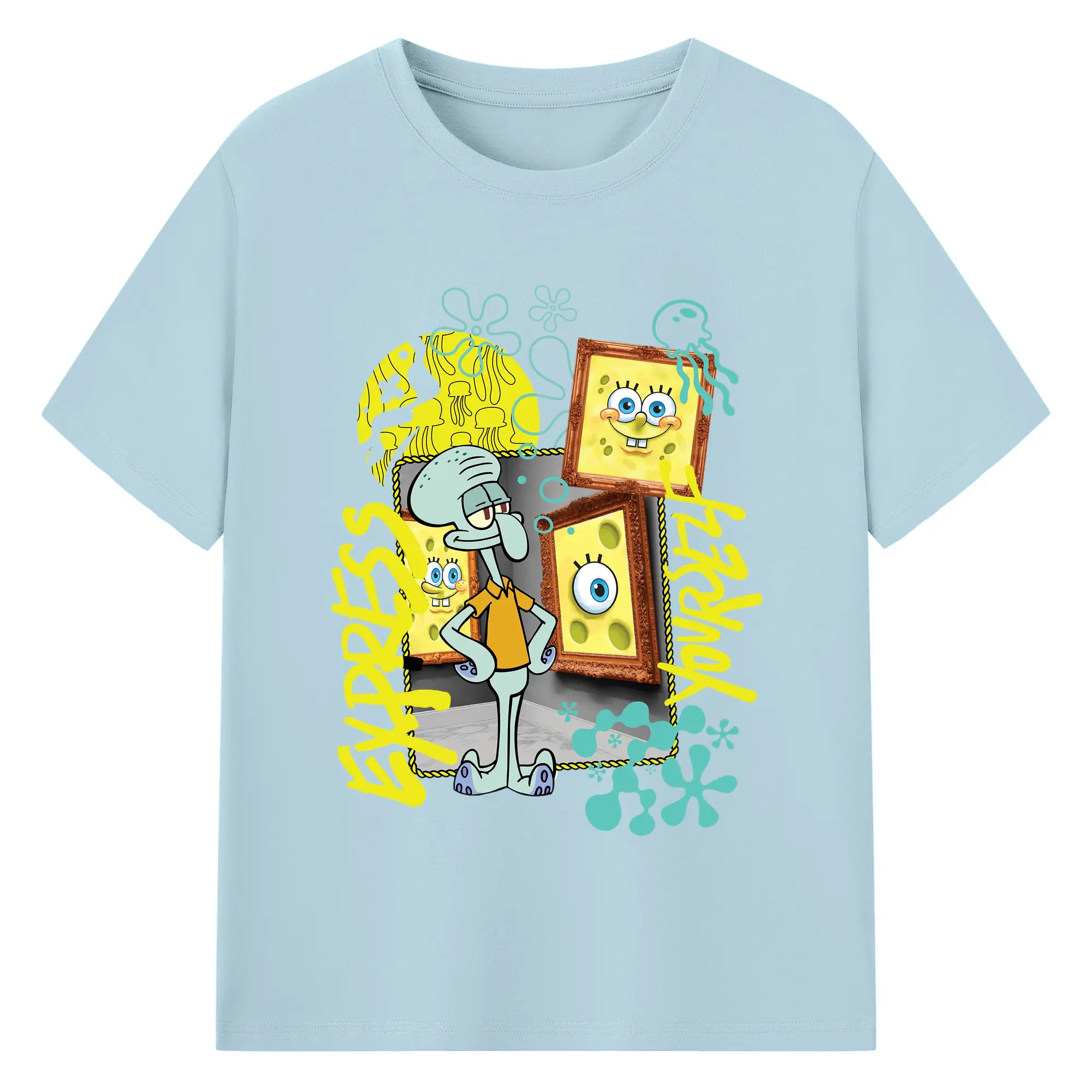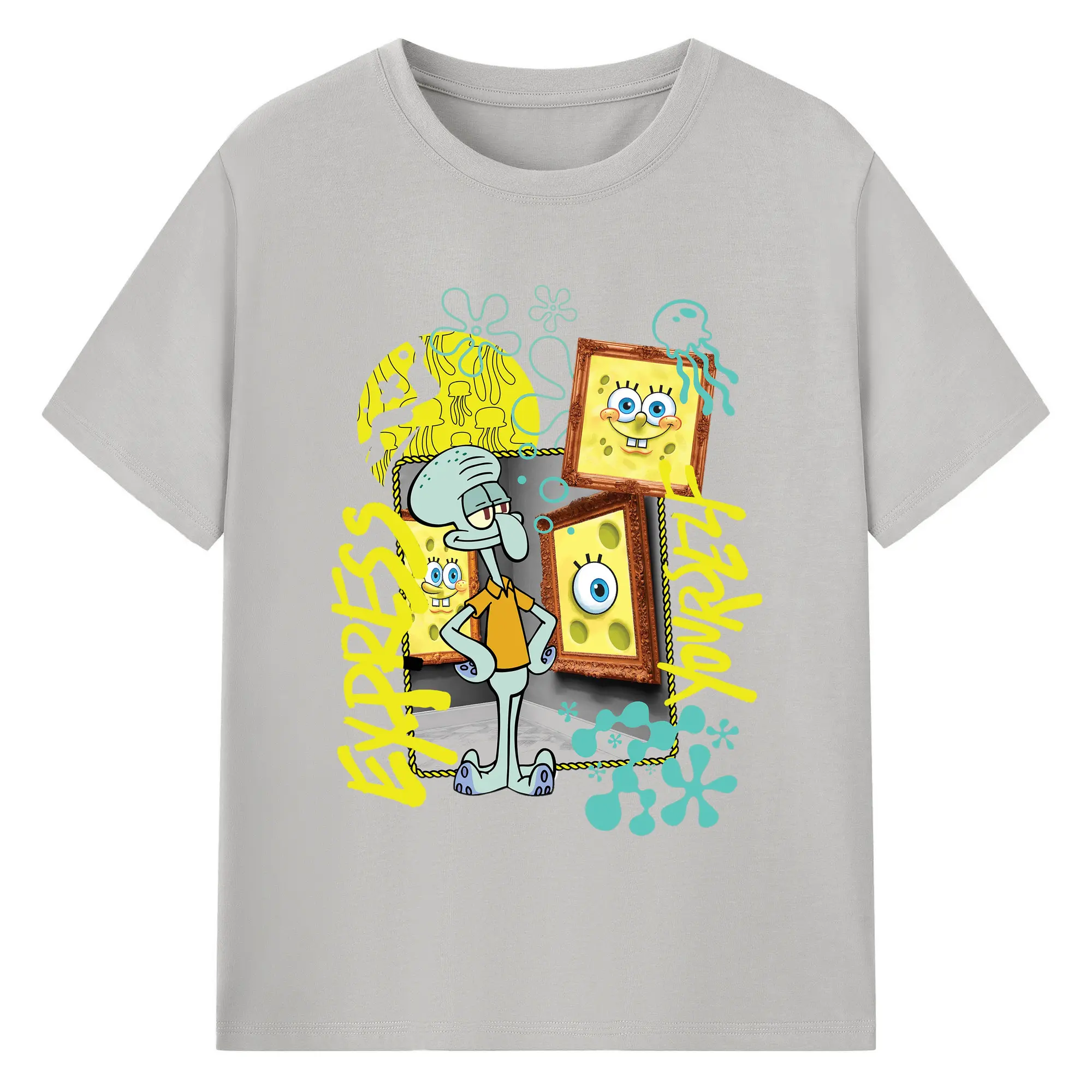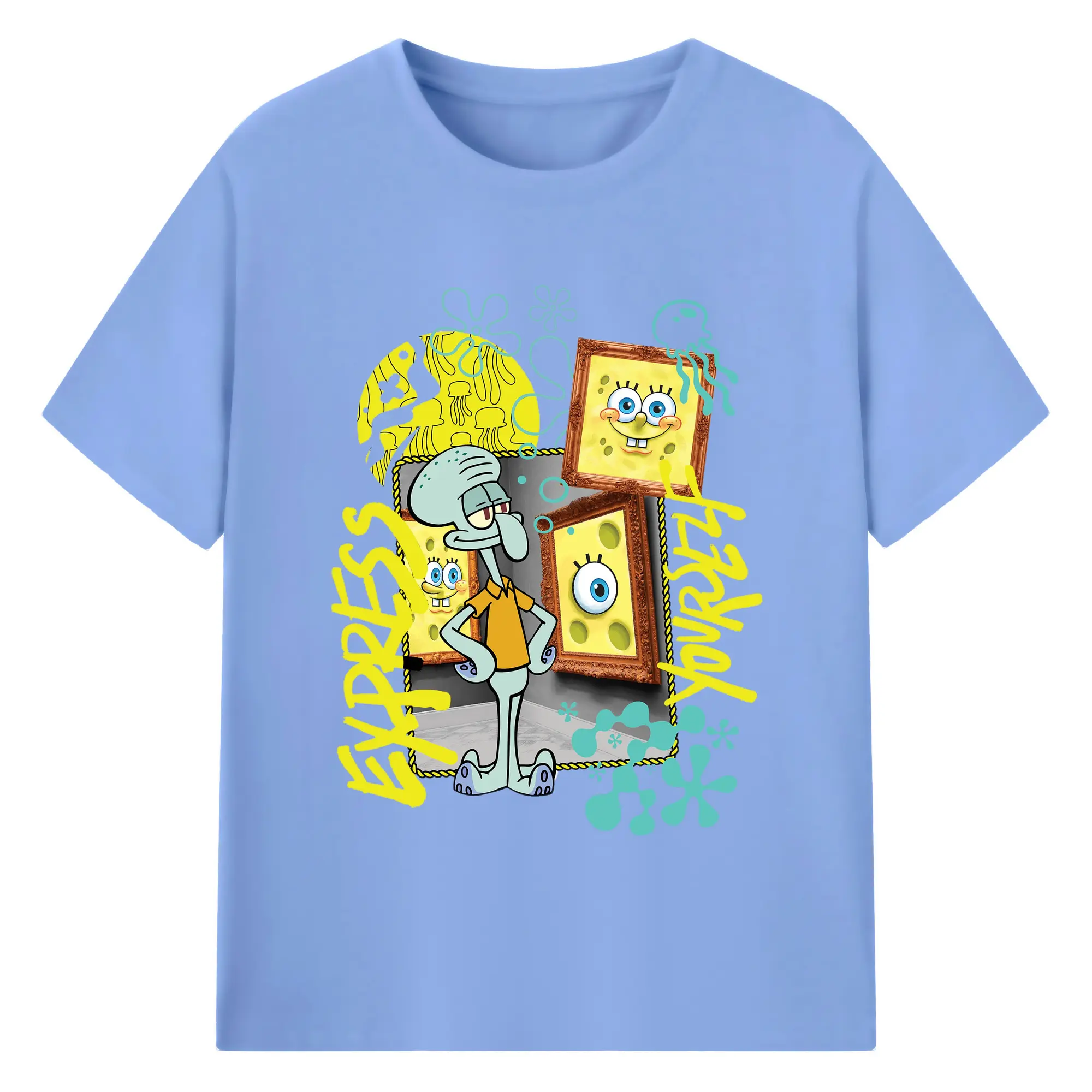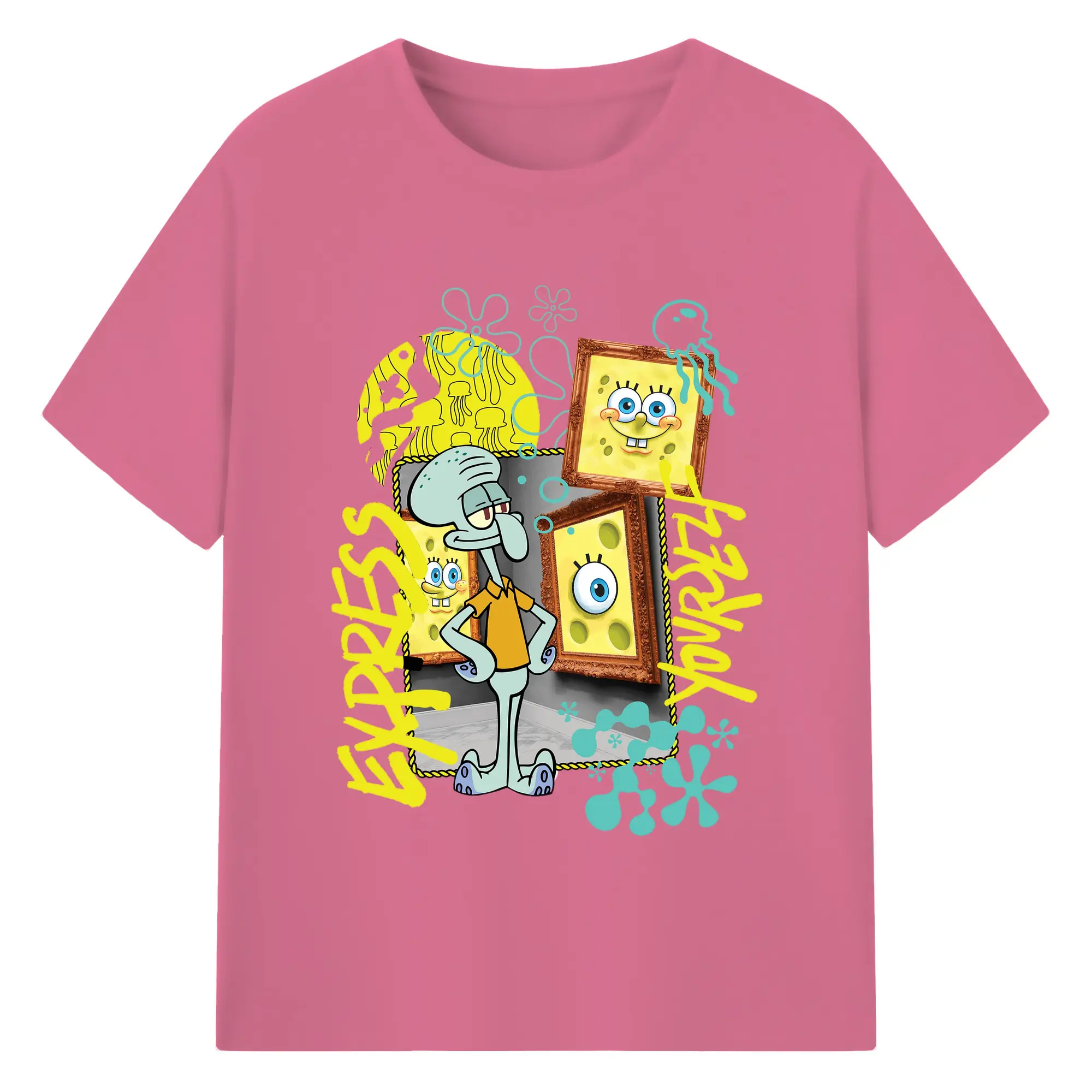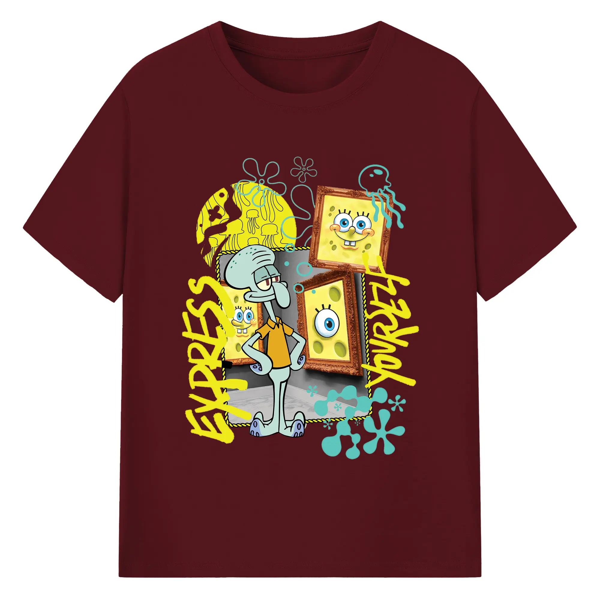 SpongeBob & Squidward Express Yourself DIY - 180g Cotton T-Shirt With Front Heat Transfer Print – Soft, Lightweight, Fitted Design – Comfortable Casual Wear For Sports & Everyday Use