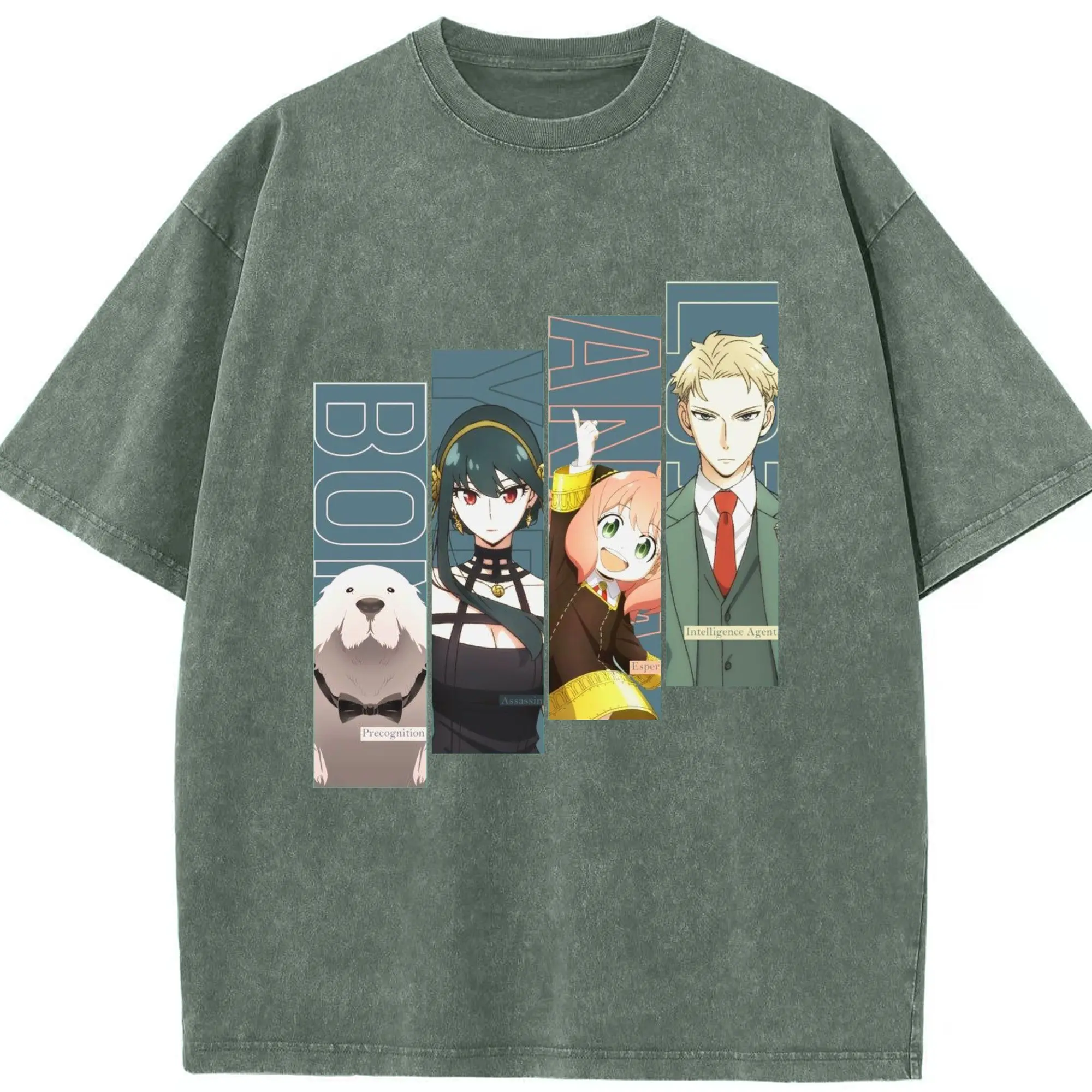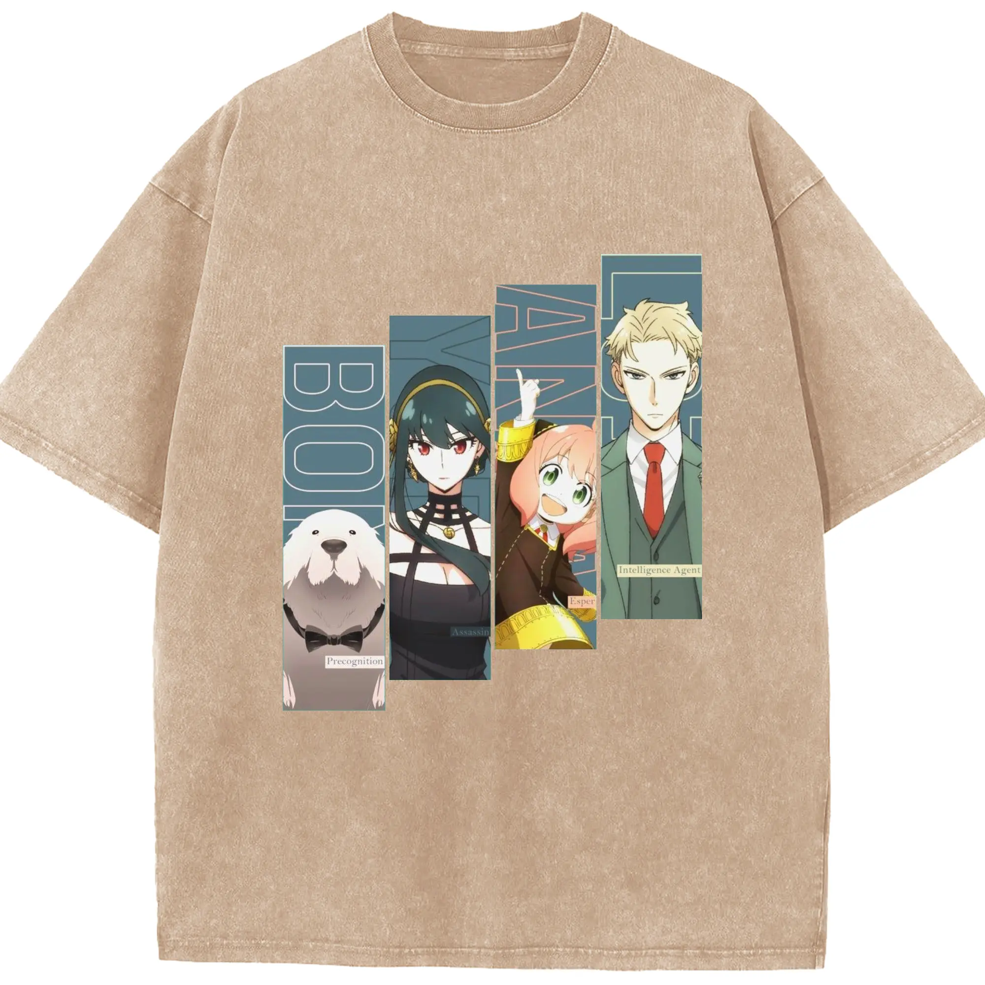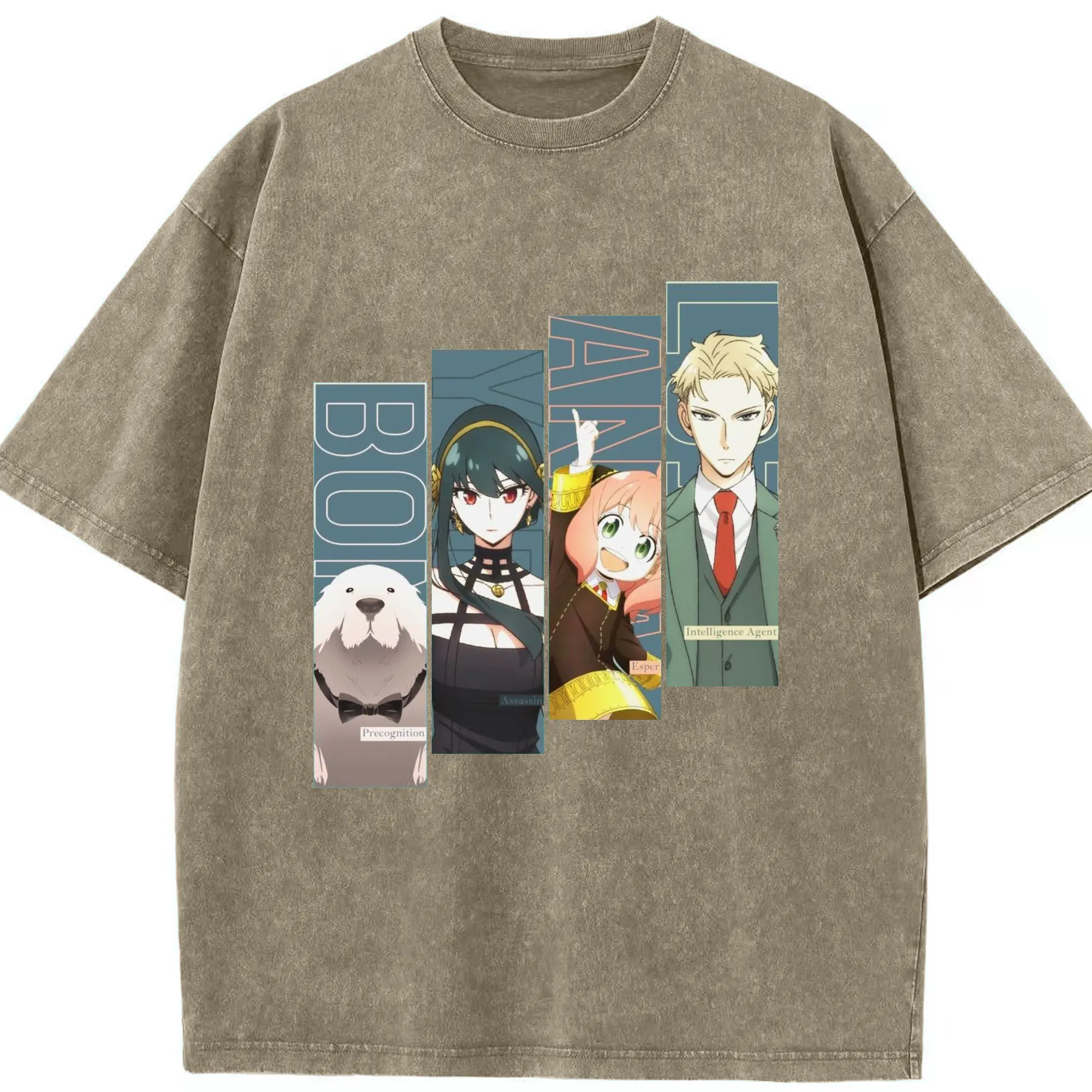 Spy×Family Modern Character Roles DIY Shirt - Washed Vintage Look 230g Cotton Oversized T-Shirt With Front Heat Transfer Print – Soft, Lightweight, Stylish Fit – Comfortable Casual Wear For Sports & Everyday Use