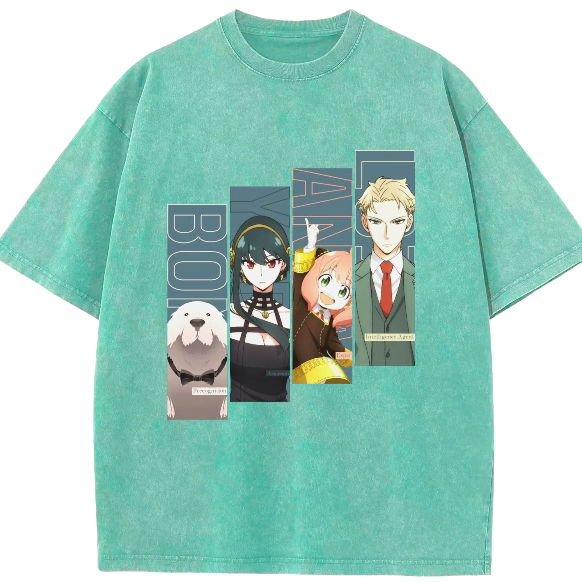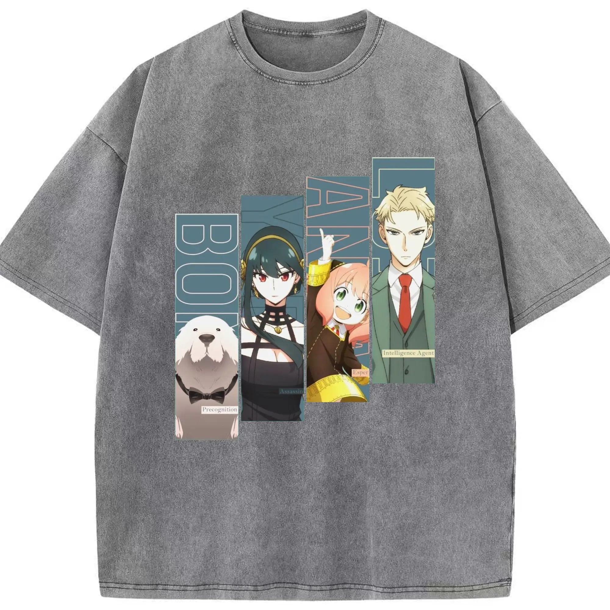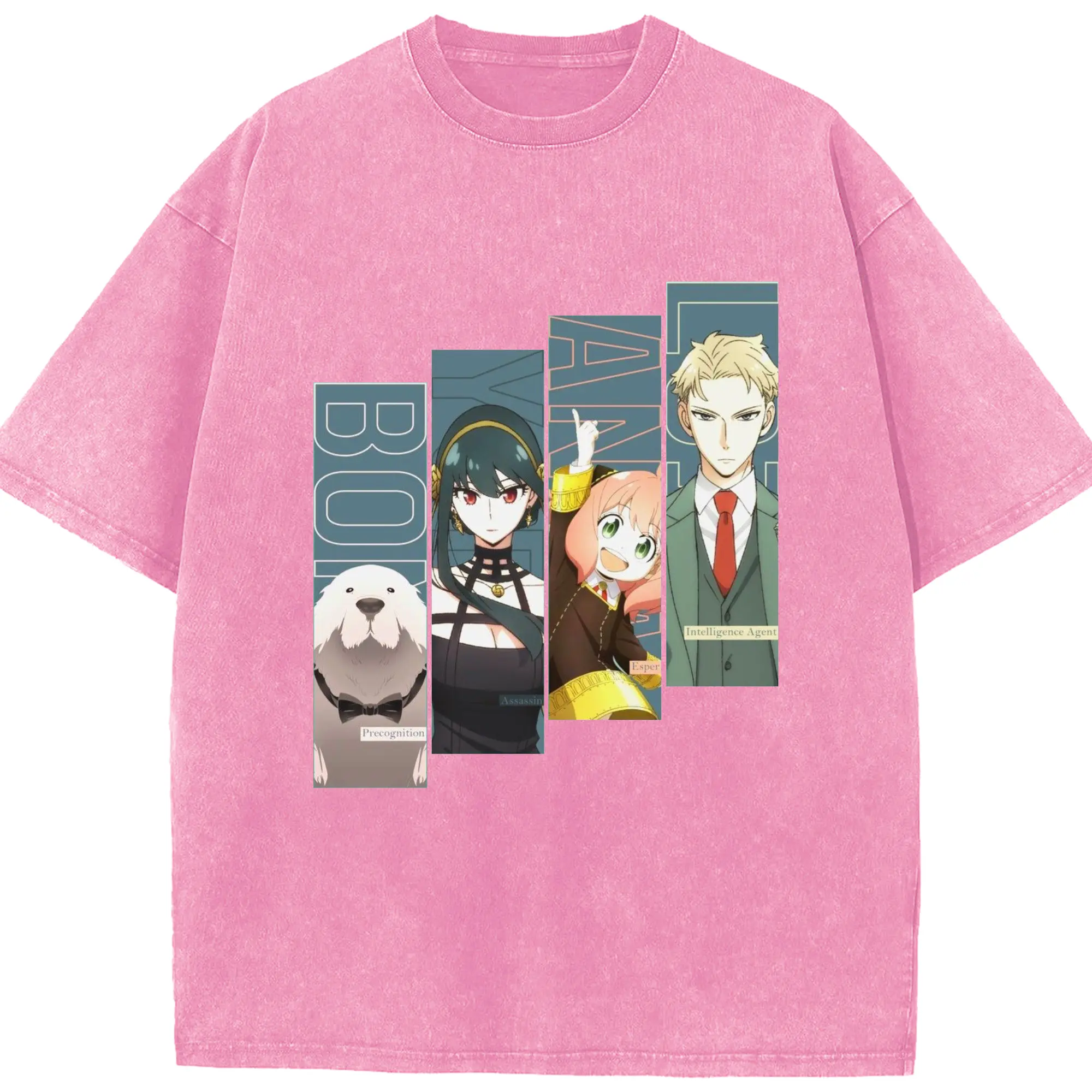 Spy×Family Modern Character Roles DIY Shirt - Washed Vintage Look 230g Cotton Oversized T-Shirt With Front Heat Transfer Print – Soft, Lightweight, Stylish Fit – Comfortable Casual Wear For Sports & Everyday Use