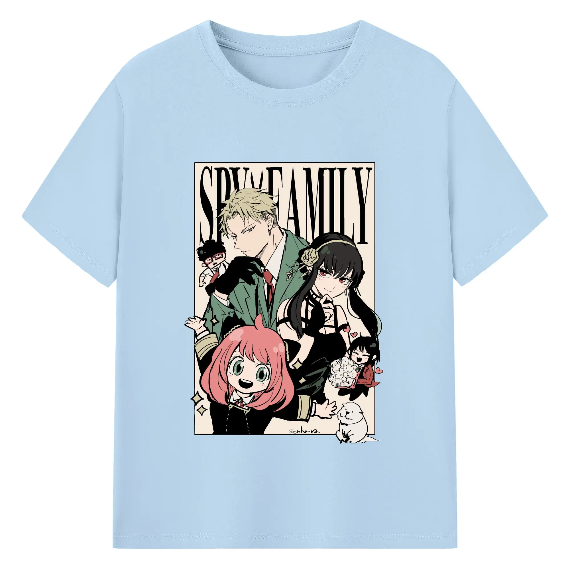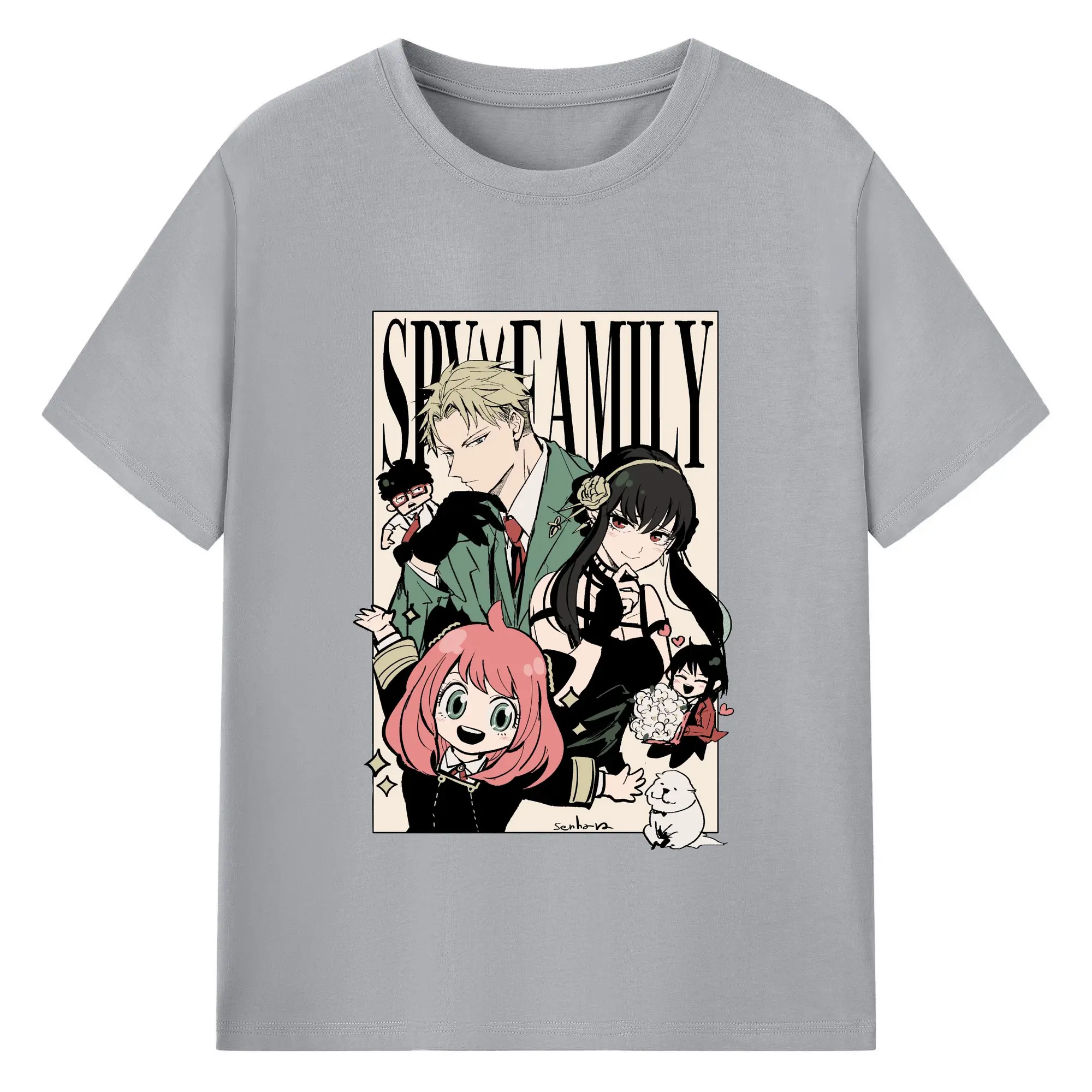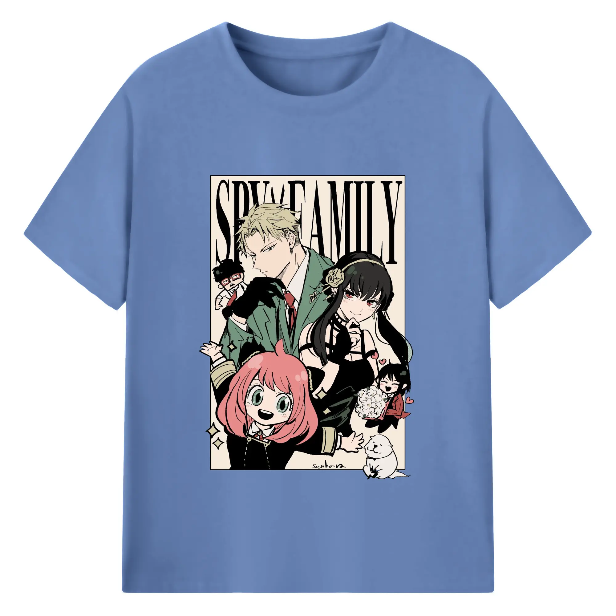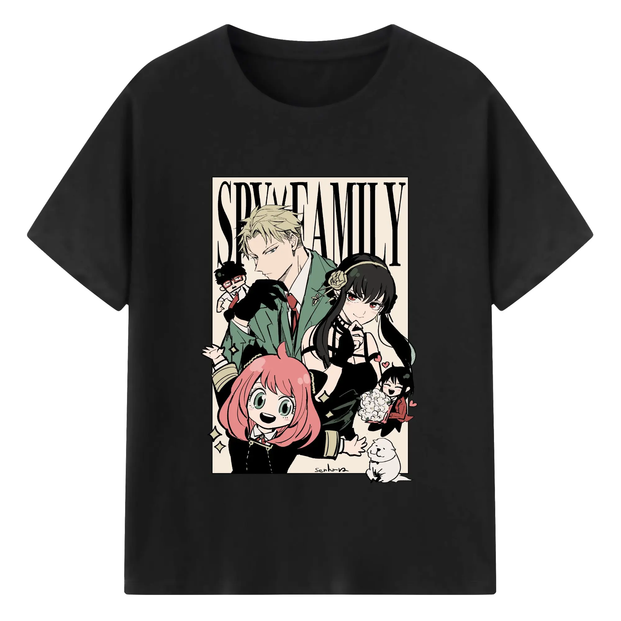 Spy×Family Retro Forger Family Group DIY Shirt - 180g Cotton T-Shirt With Front Heat Transfer Print – Soft, Lightweight, Fitted Design – Comfortable Casual Wear For Sports & Everyday Use