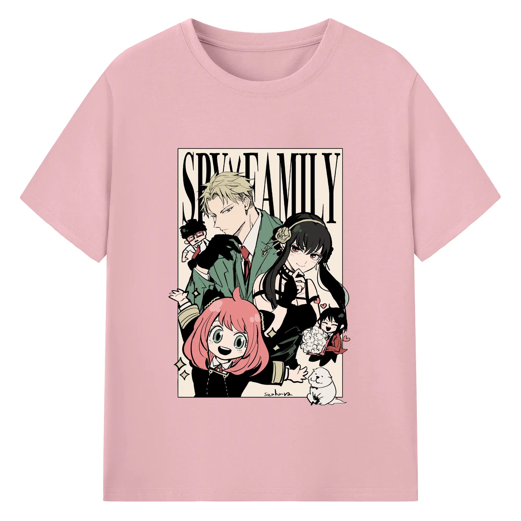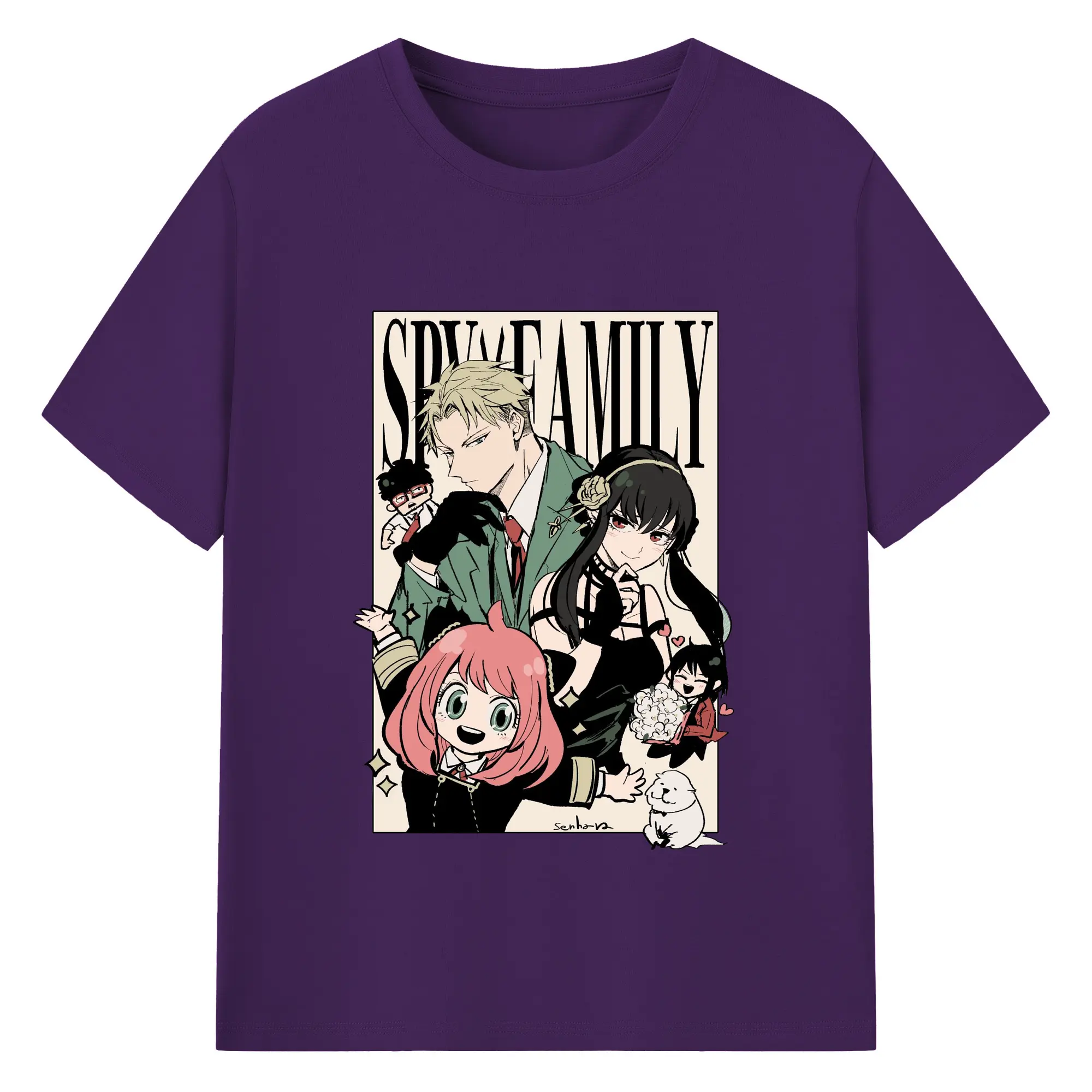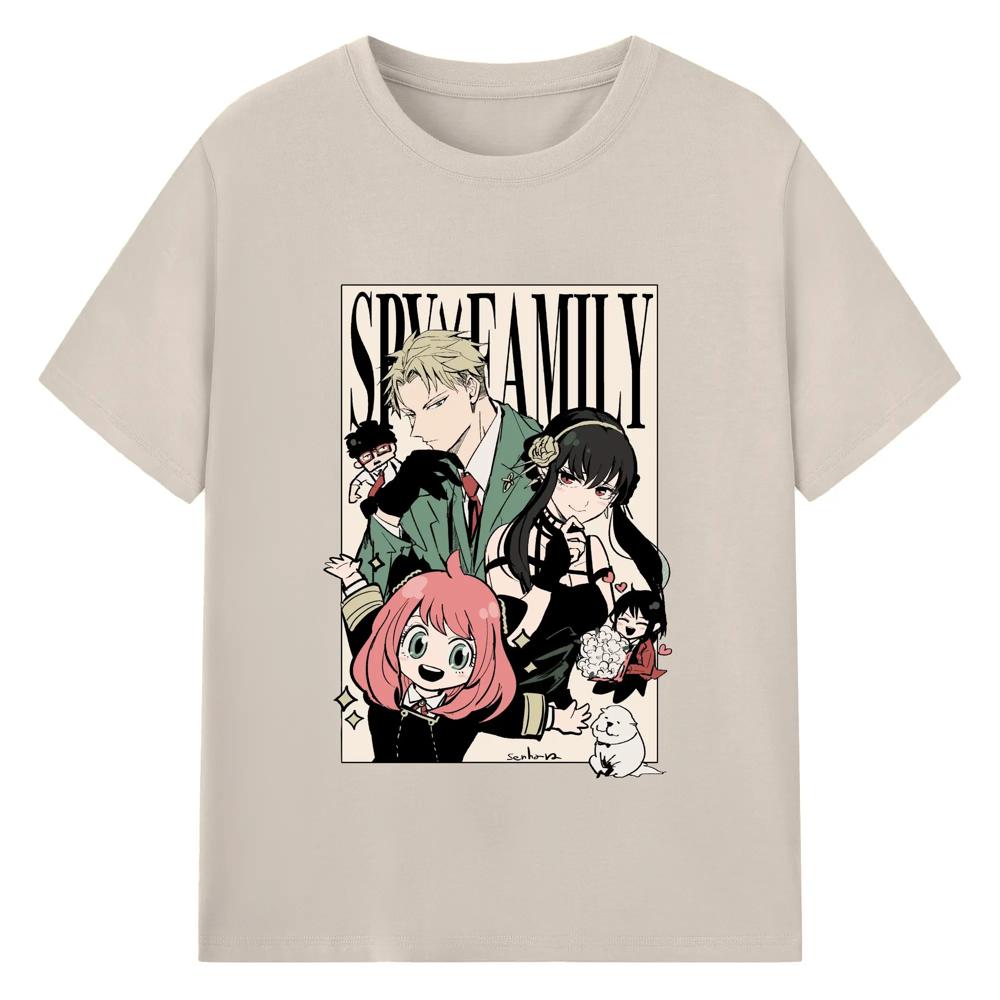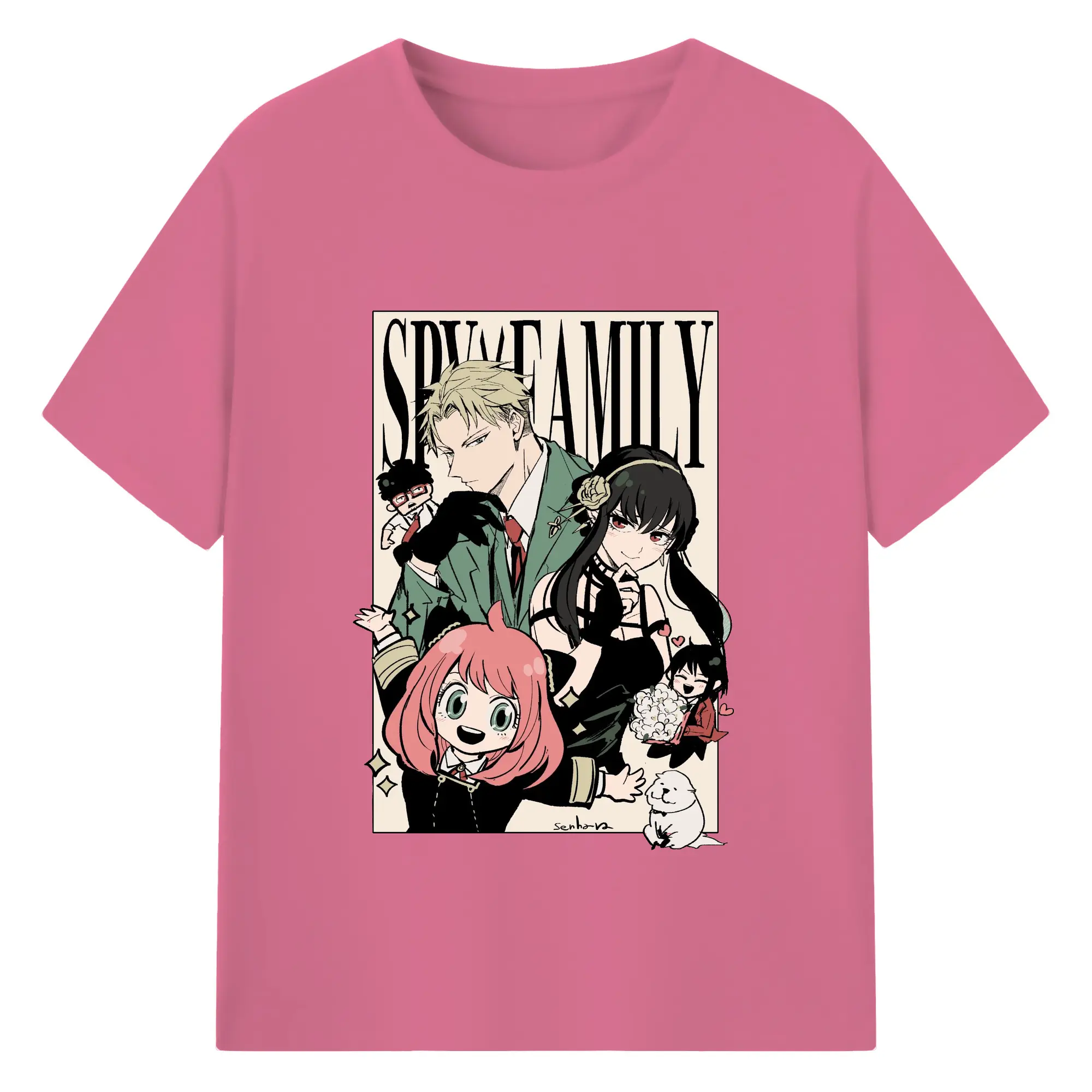 Spy×Family Retro Forger Family Group DIY Shirt - 180g Cotton T-Shirt With Front Heat Transfer Print – Soft, Lightweight, Fitted Design – Comfortable Casual Wear For Sports & Everyday Use