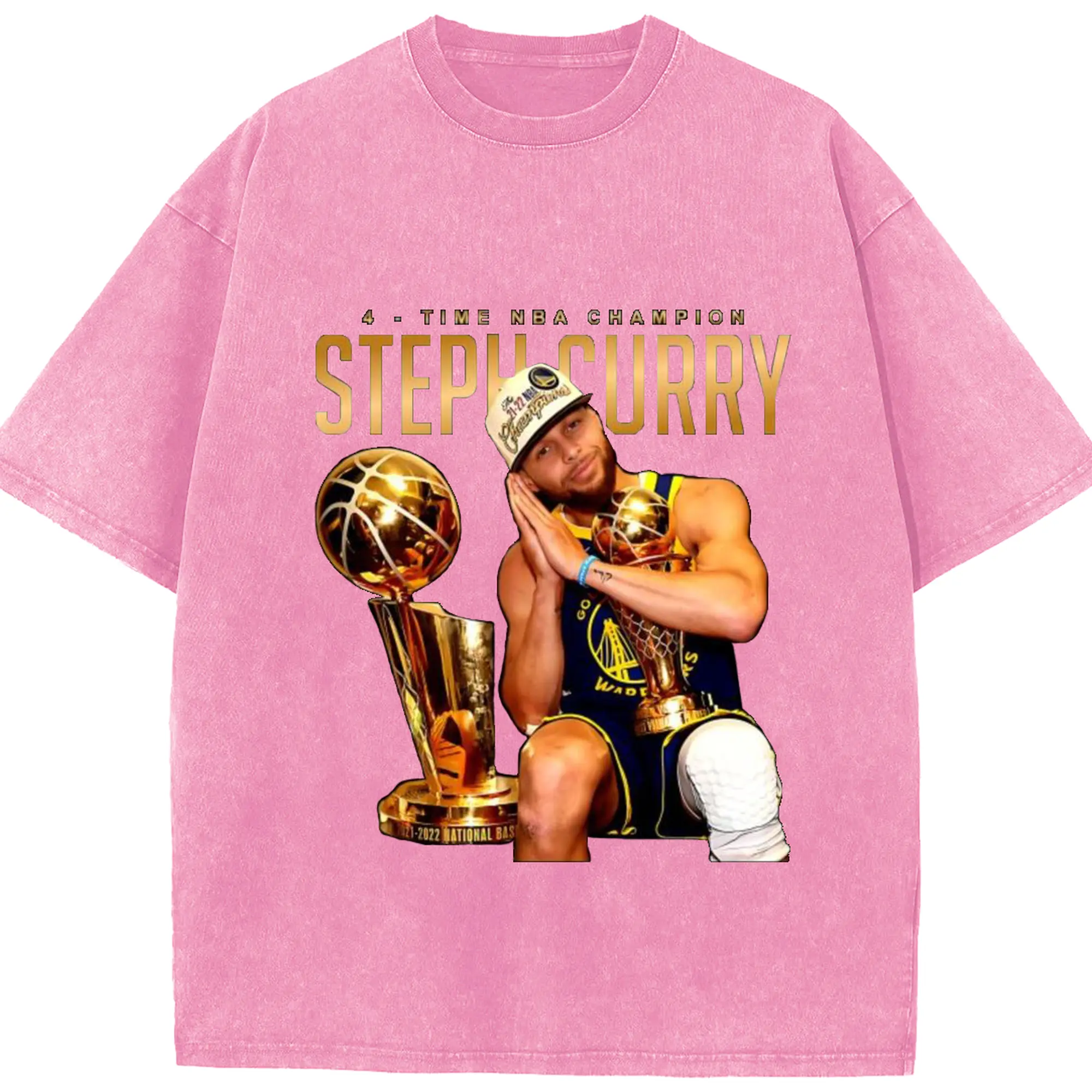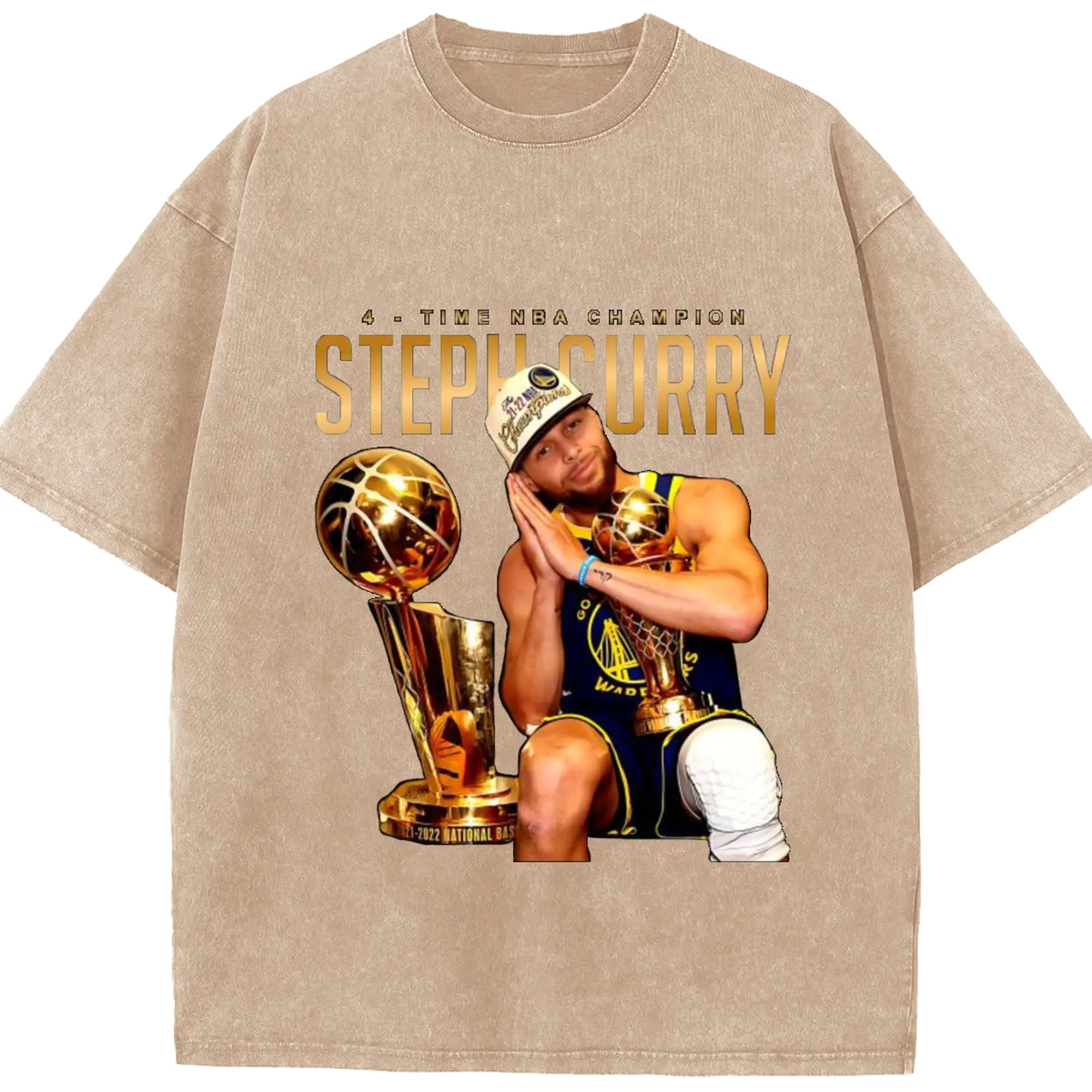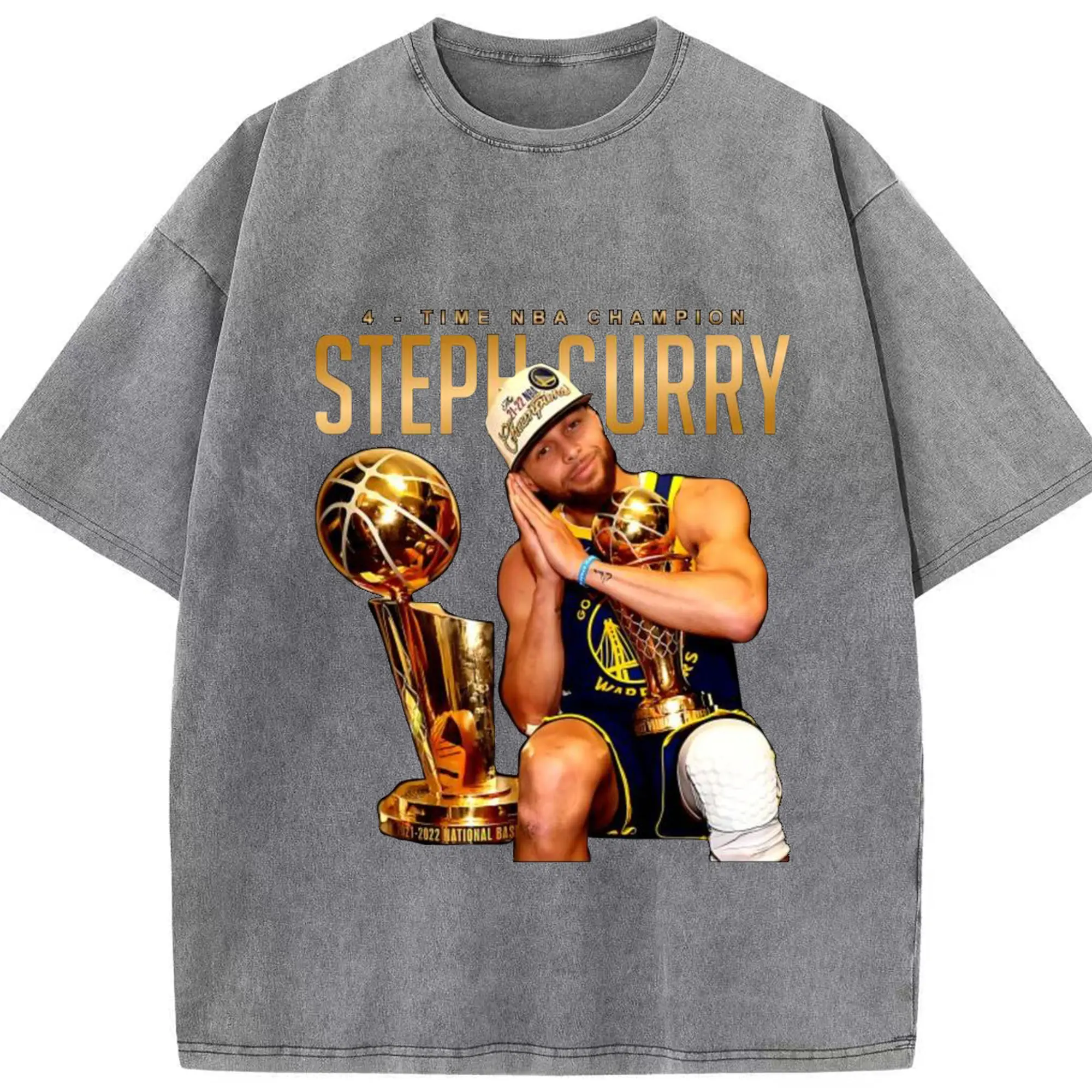 Stephen Curry 4-Time NBA Champion Shirt - Washed Vintage Look 230g Cotton Oversized T-Shirt With Front Heat Transfer Print – Soft, Lightweight, Stylish Fit – Comfortable Casual Wear For Sports & Everyday Use