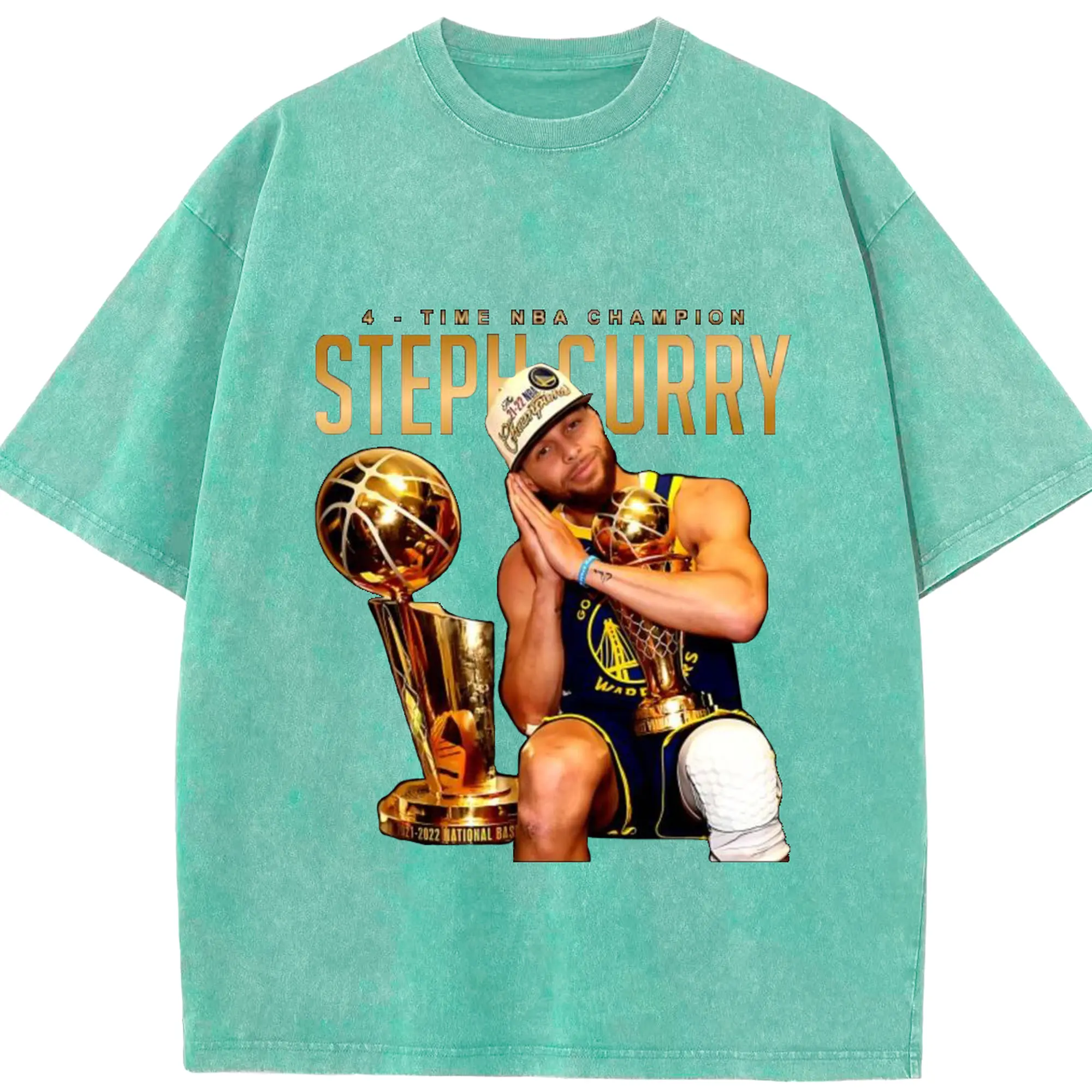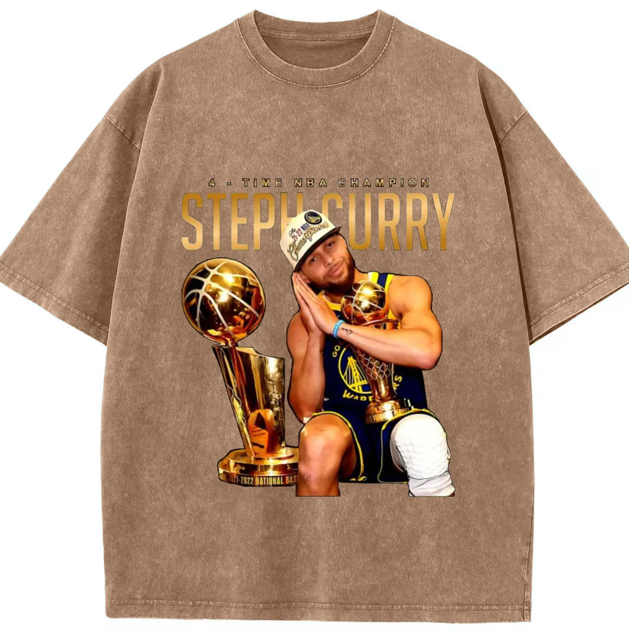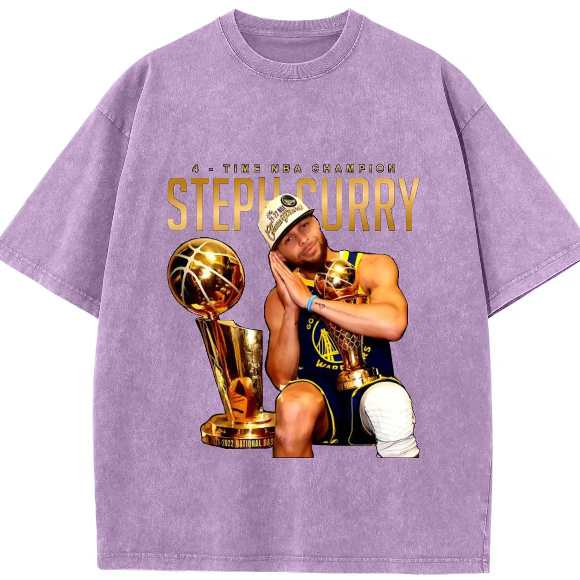 Stephen Curry 4-Time NBA Champion Shirt - Washed Vintage Look 230g Cotton Oversized T-Shirt With Front Heat Transfer Print – Soft, Lightweight, Stylish Fit – Comfortable Casual Wear For Sports & Everyday Use