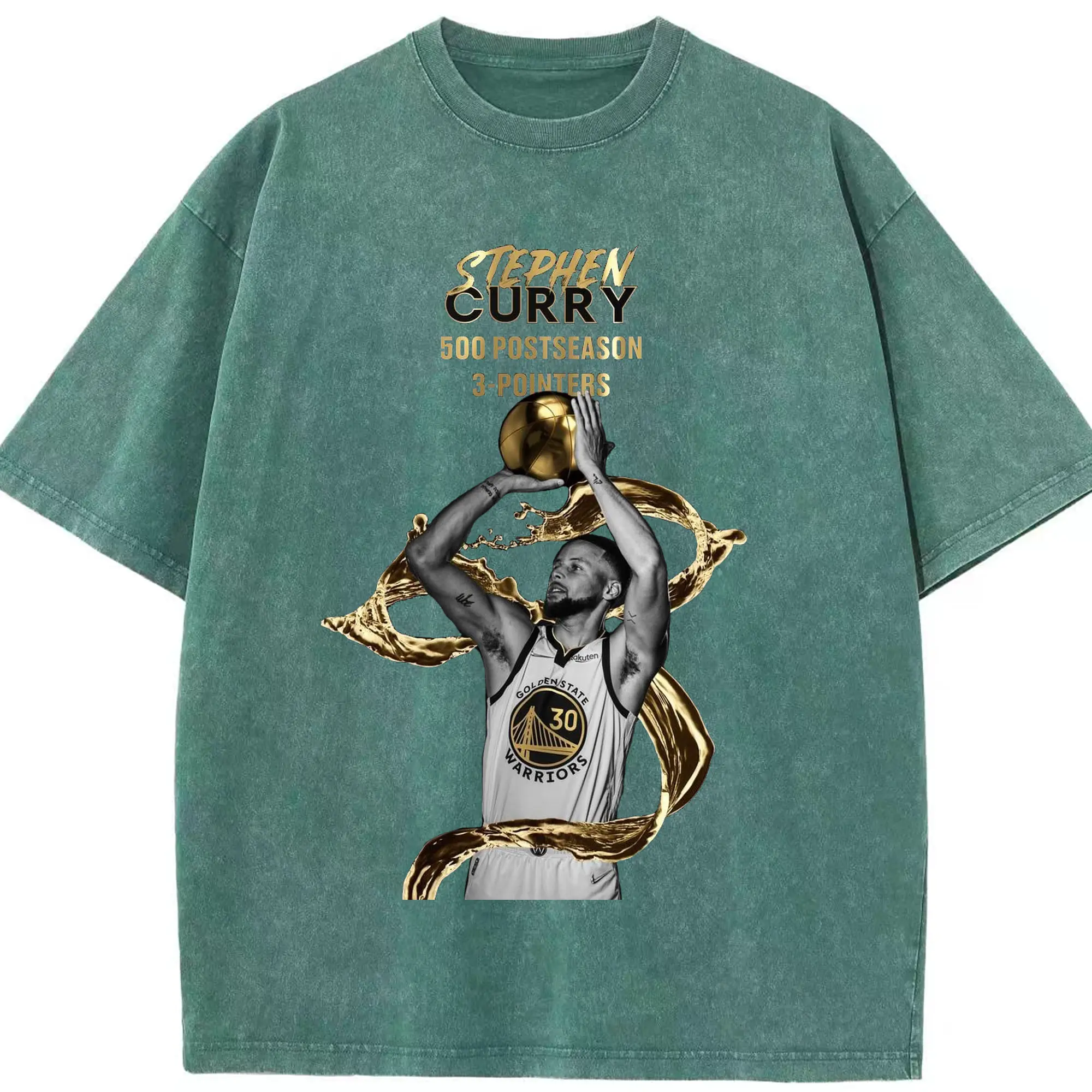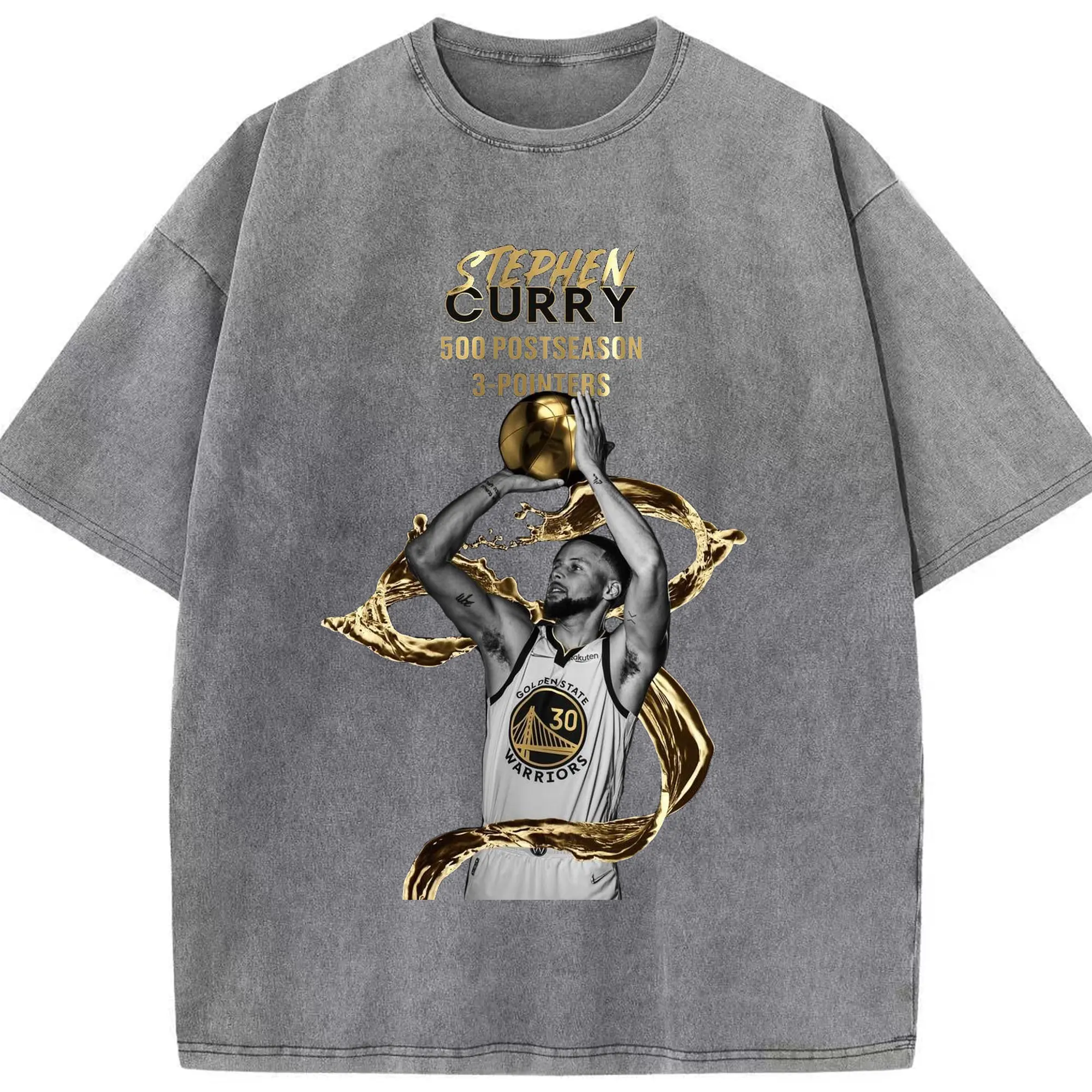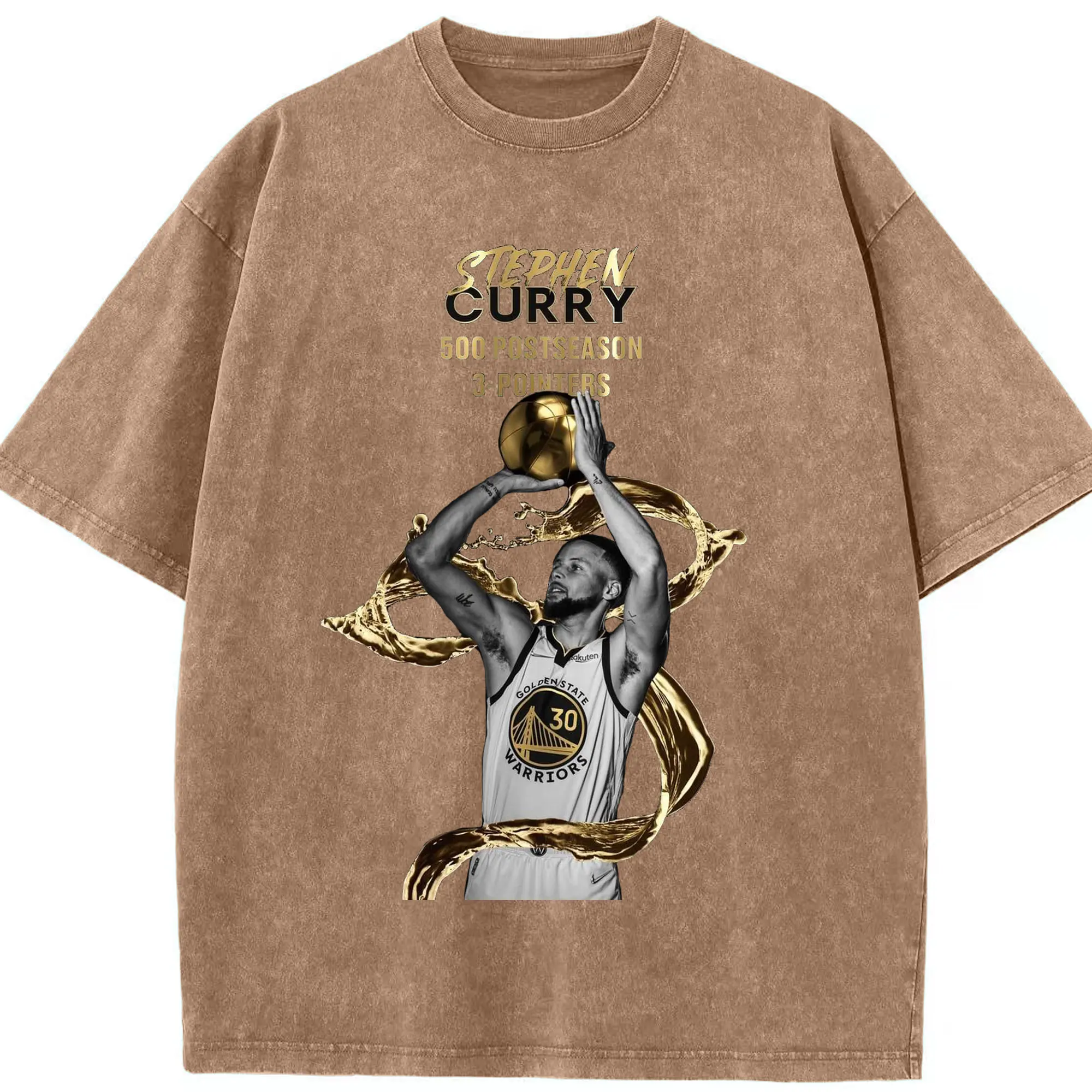 Stephen Curry 500 Playoff 3-Pointers Milestone Shirt - Washed Vintage Look 230g Cotton Oversized T-Shirt With Front Heat Transfer Print – Soft, Lightweight, Stylish Fit – Comfortable Casual Wear For Sports & Everyday Use