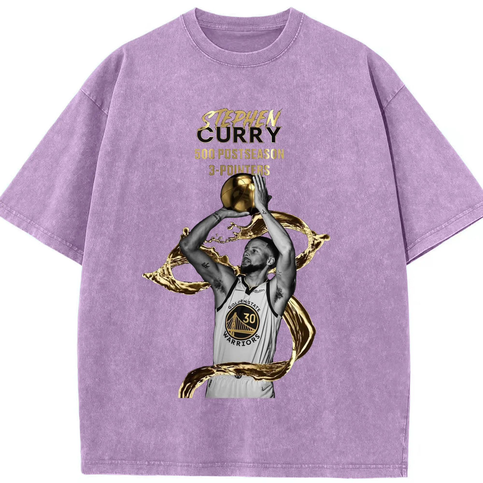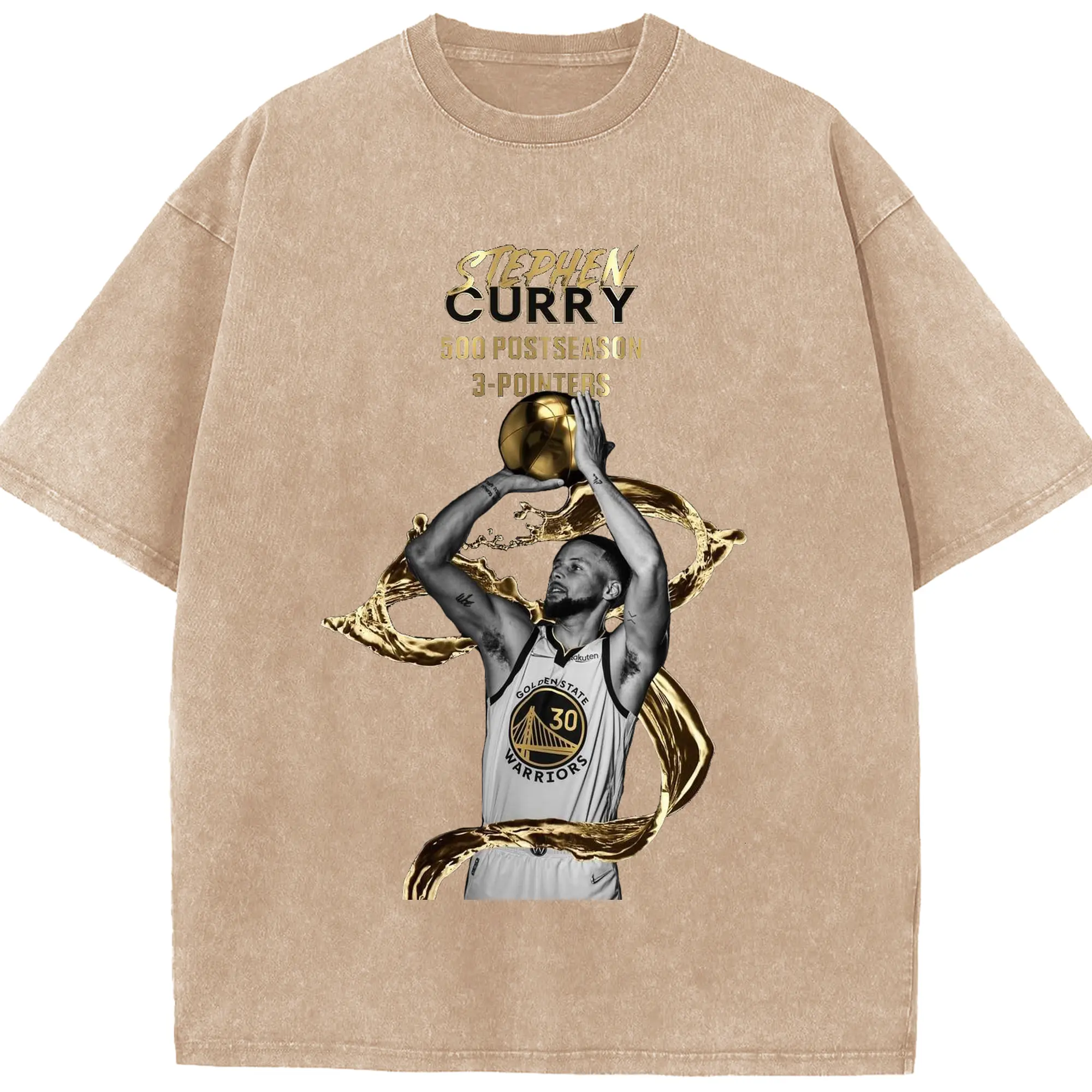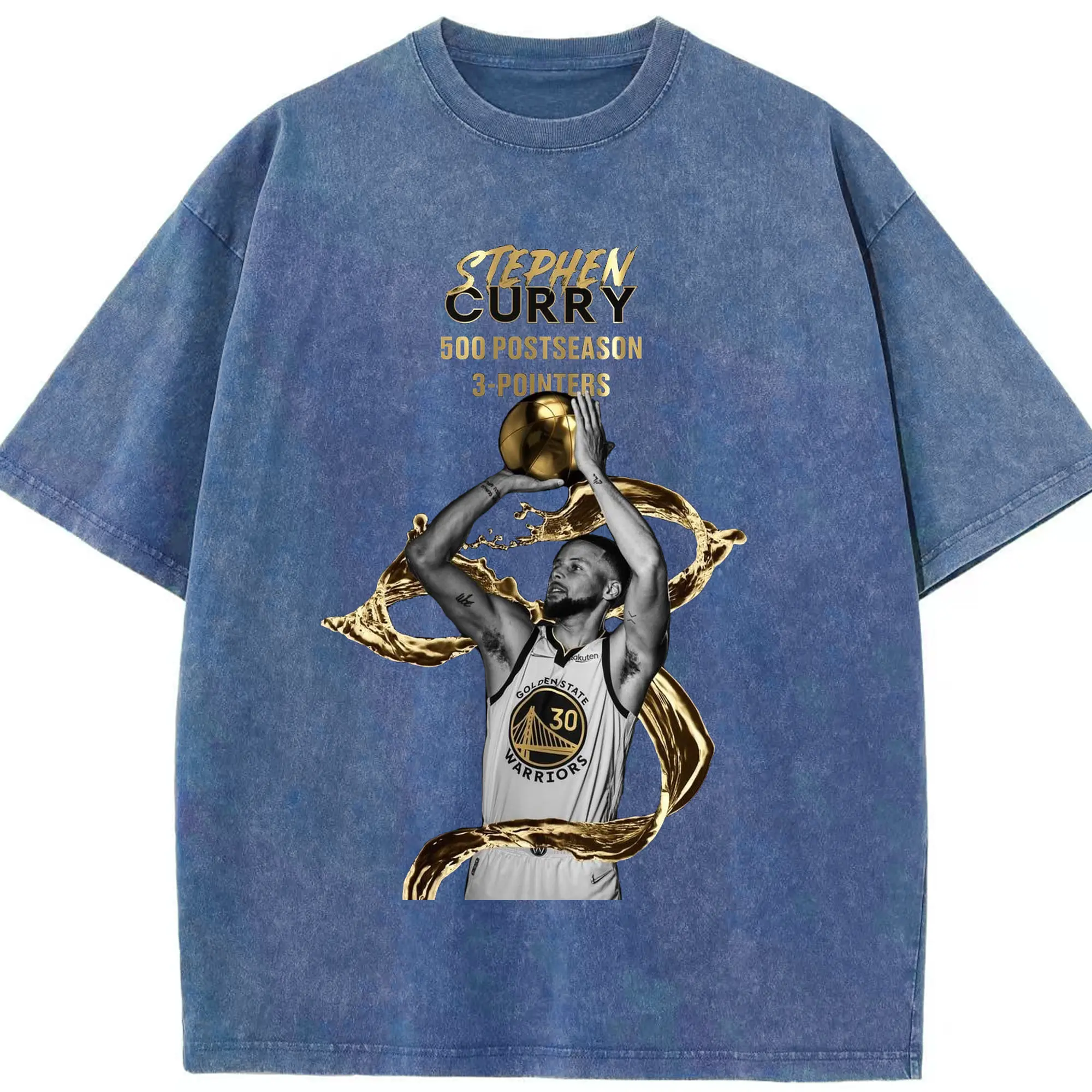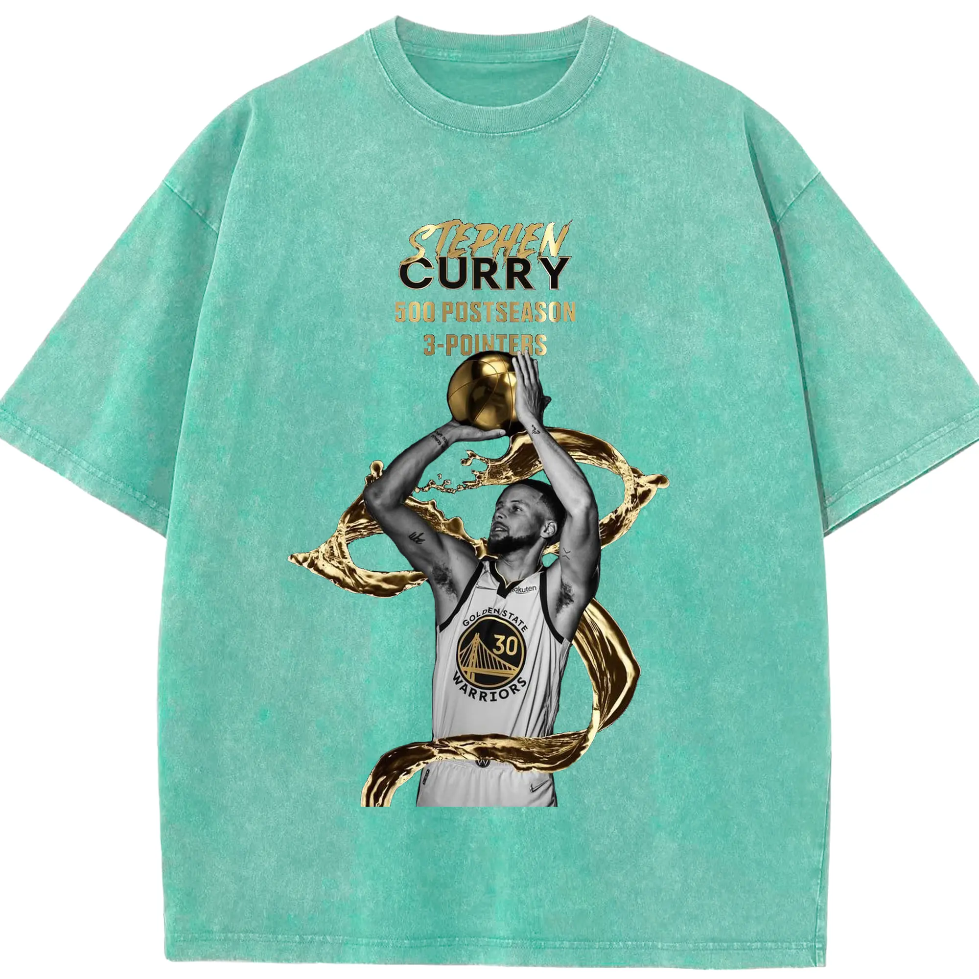 Stephen Curry 500 Playoff 3-Pointers Milestone Shirt - Washed Vintage Look 230g Cotton Oversized T-Shirt With Front Heat Transfer Print – Soft, Lightweight, Stylish Fit – Comfortable Casual Wear For Sports & Everyday Use