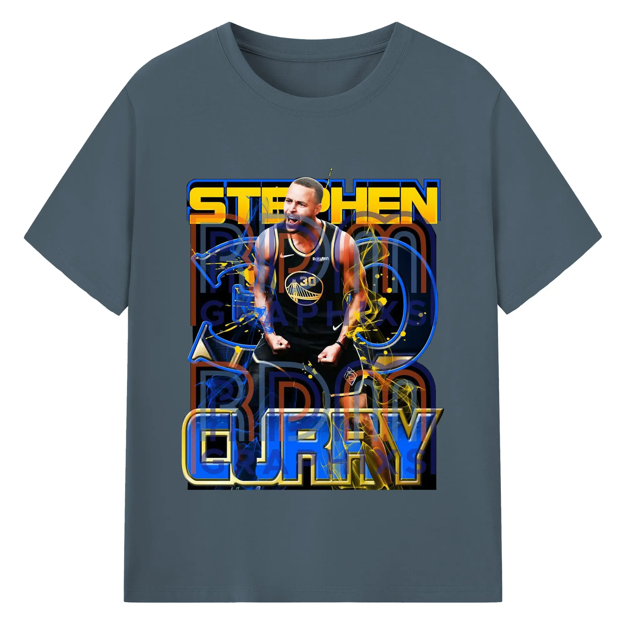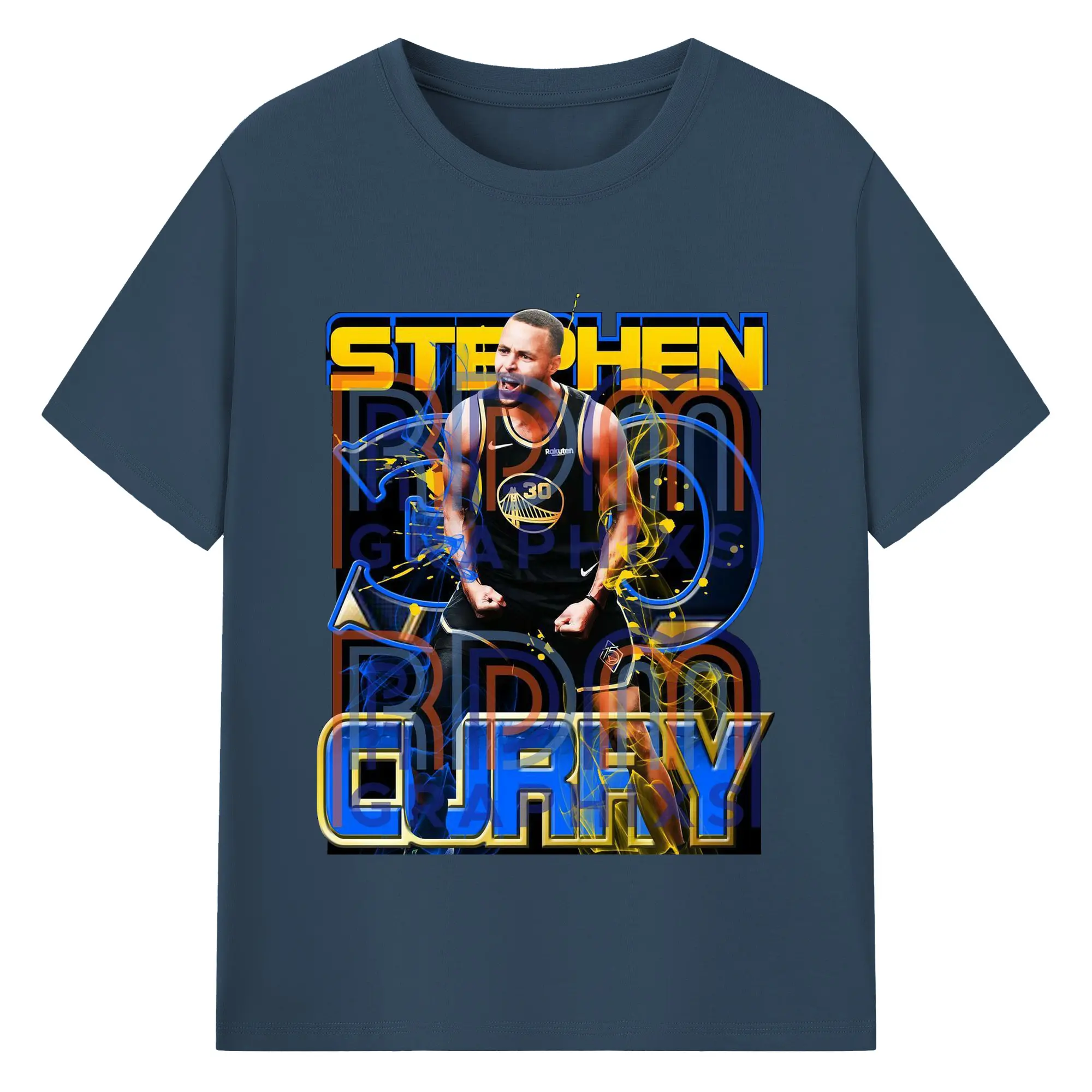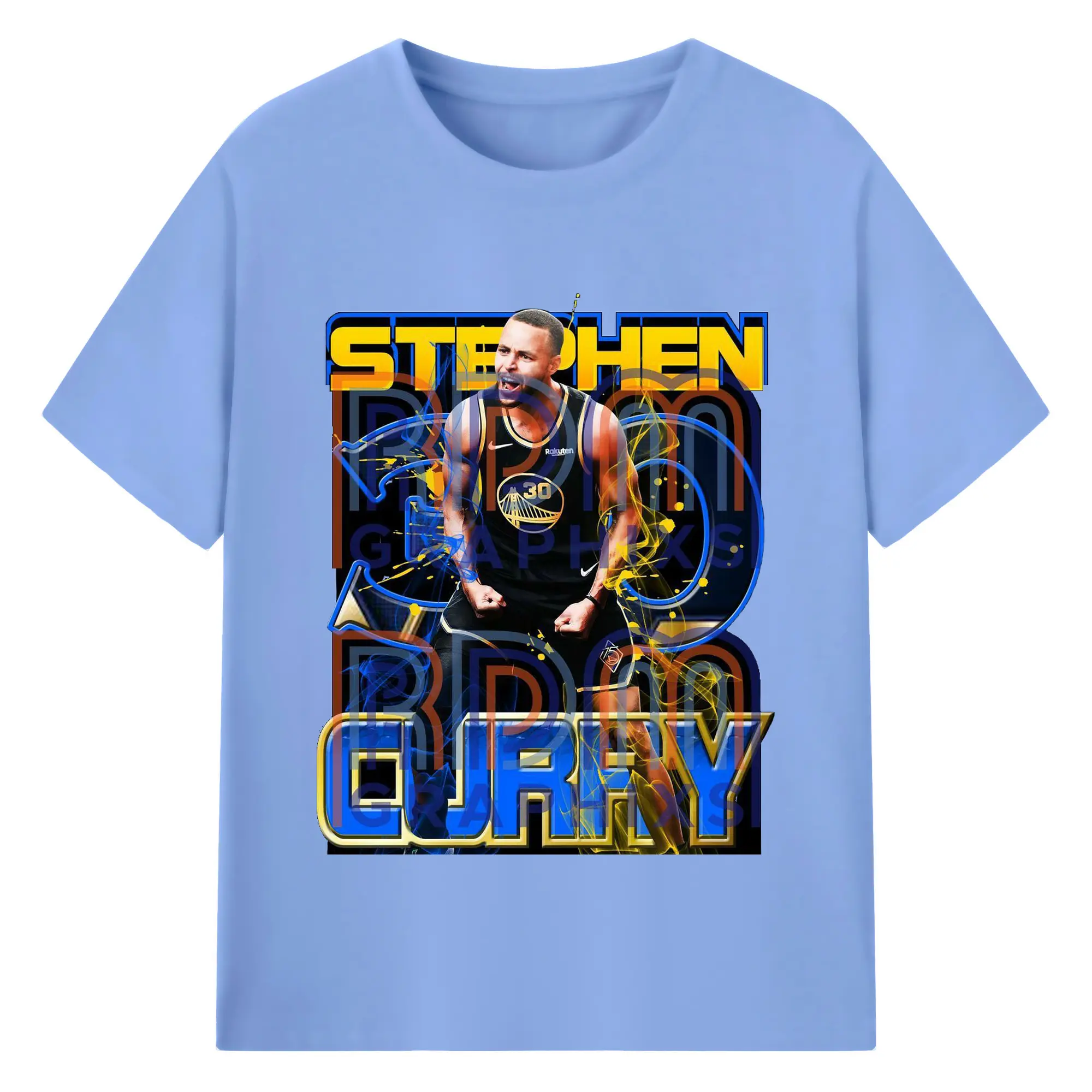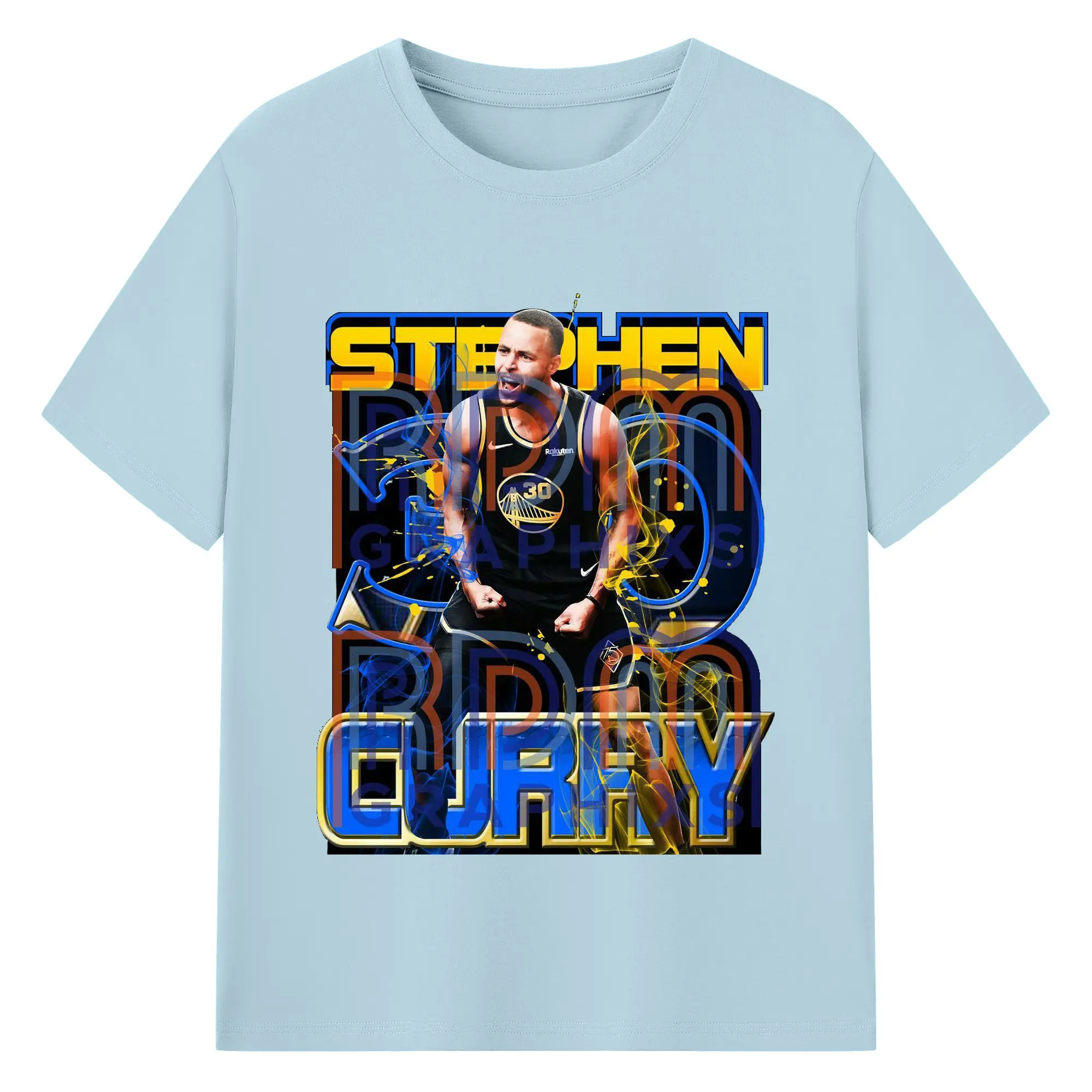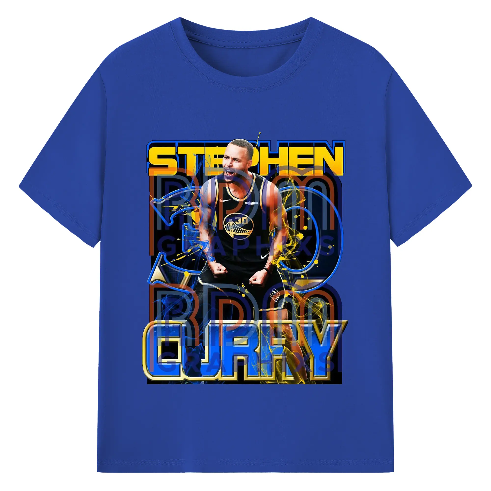 Stephen Curry Electric Blue Gold Streetwear Victory Roar Shirt - 180g Cotton T-Shirt With Front Heat Transfer Print – Soft, Lightweight, Fitted Design – Comfortable Casual Wear For Sports & Everyday Use