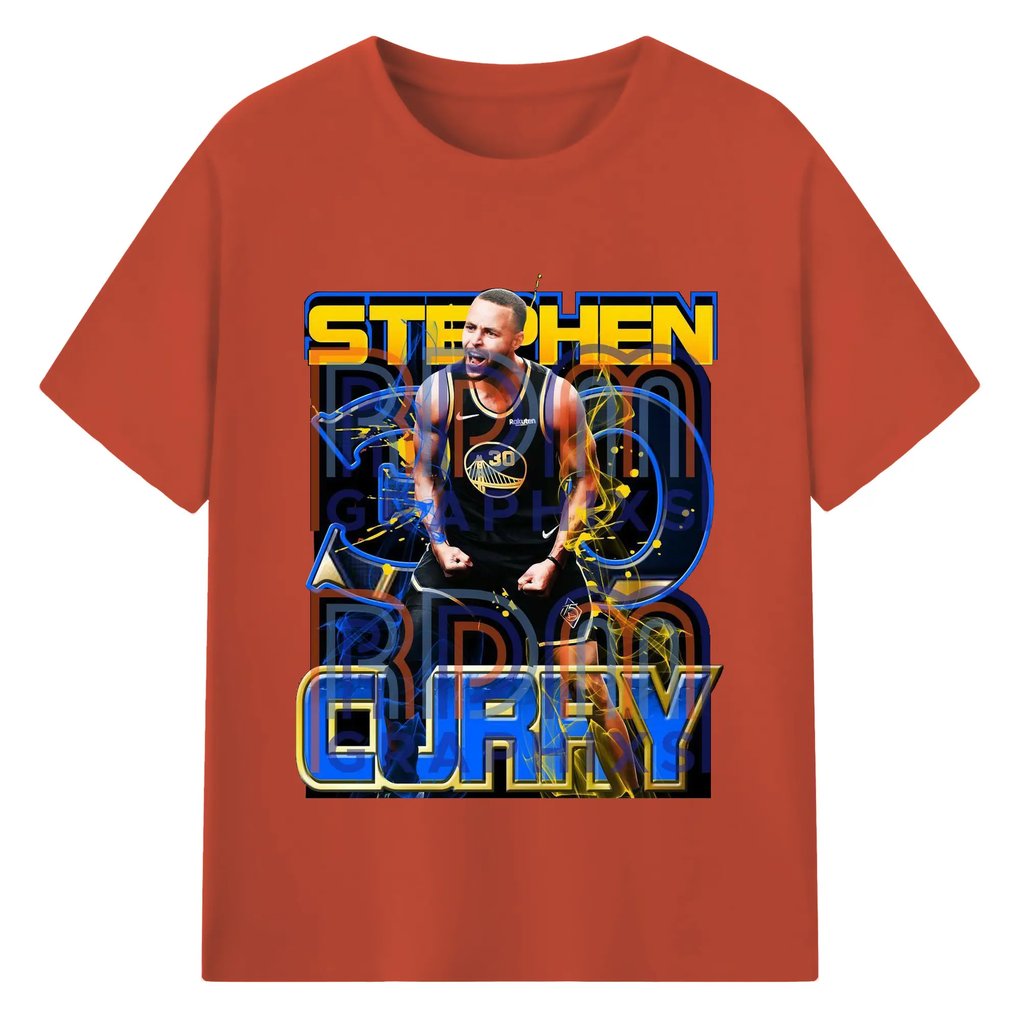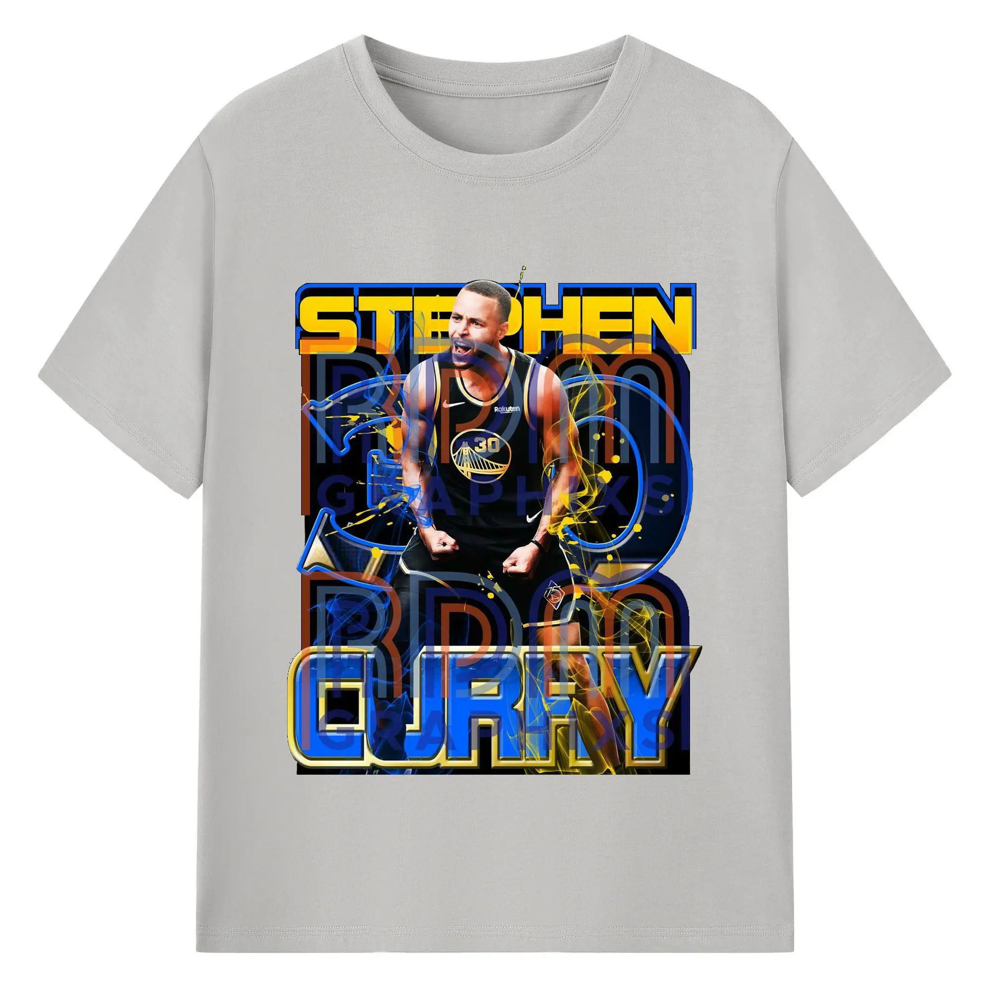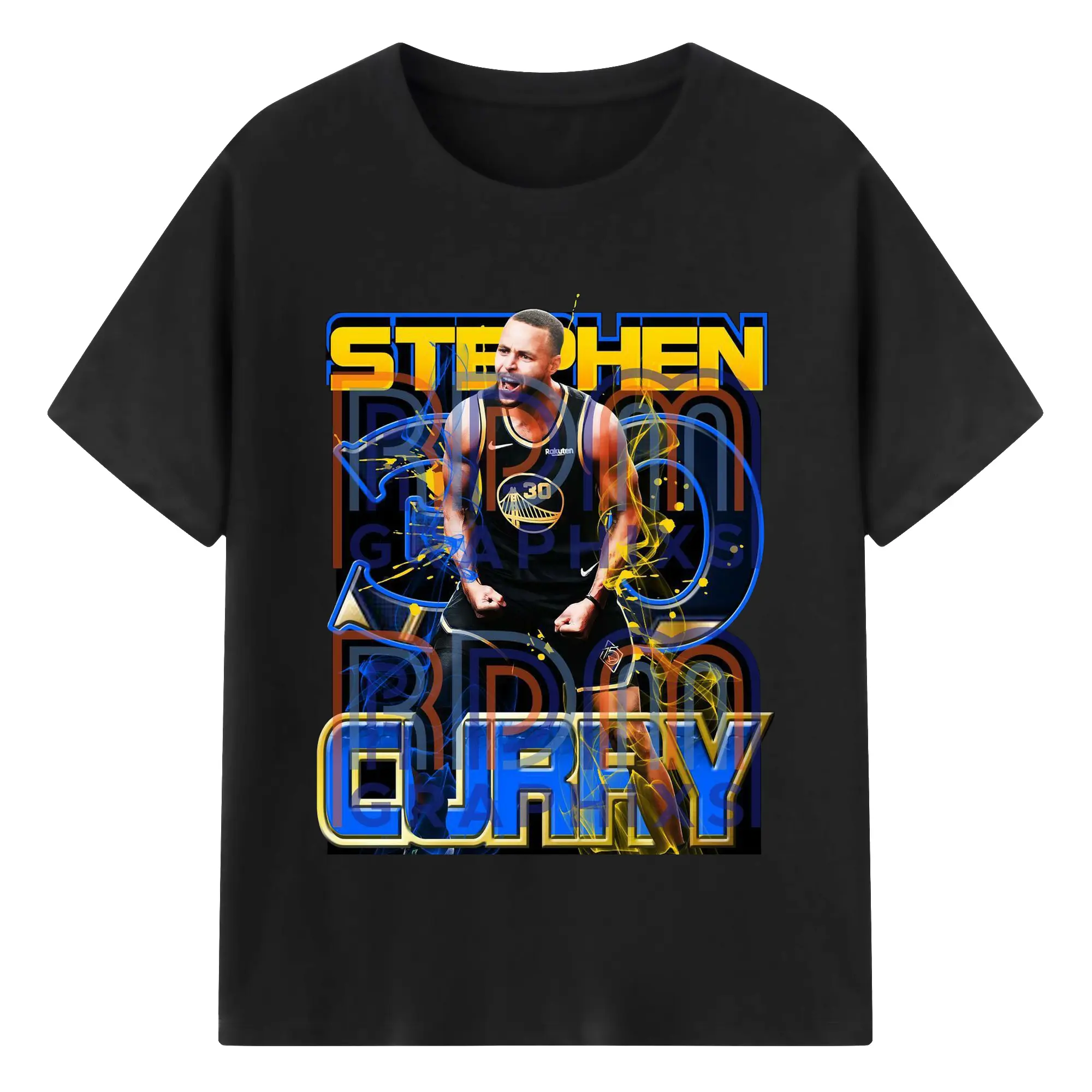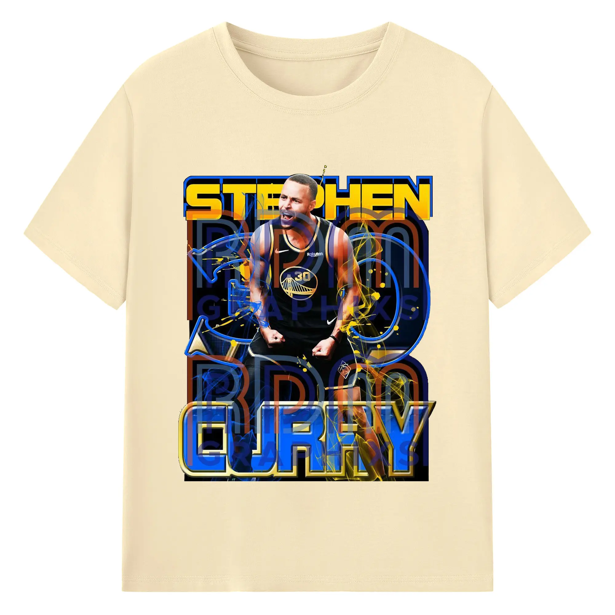 Stephen Curry Electric Blue Gold Streetwear Victory Roar Shirt - 180g Cotton T-Shirt With Front Heat Transfer Print – Soft, Lightweight, Fitted Design – Comfortable Casual Wear For Sports & Everyday Use