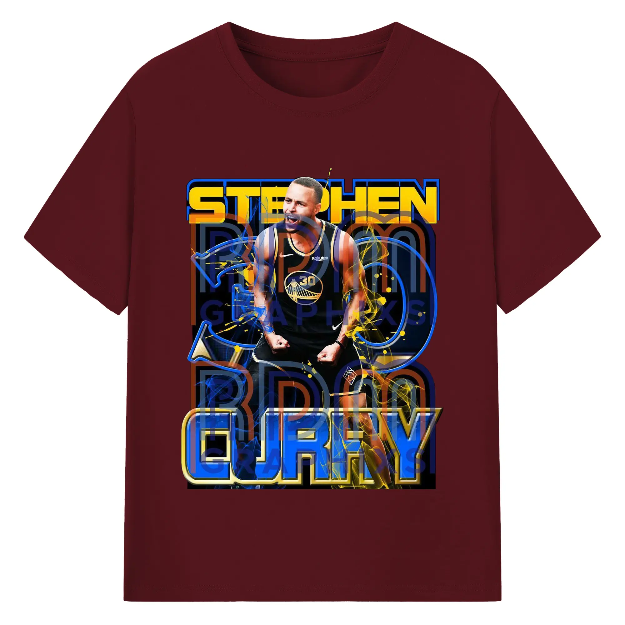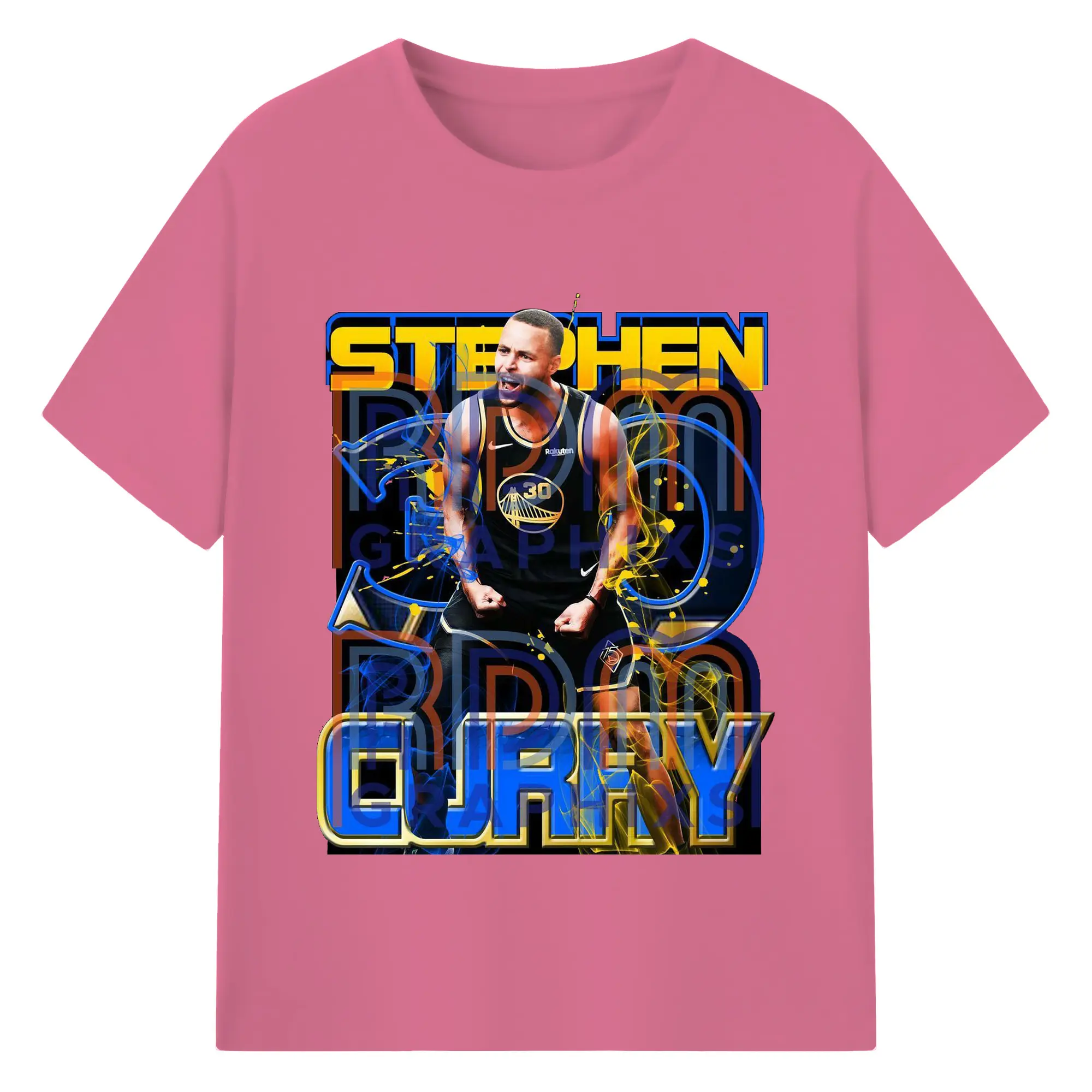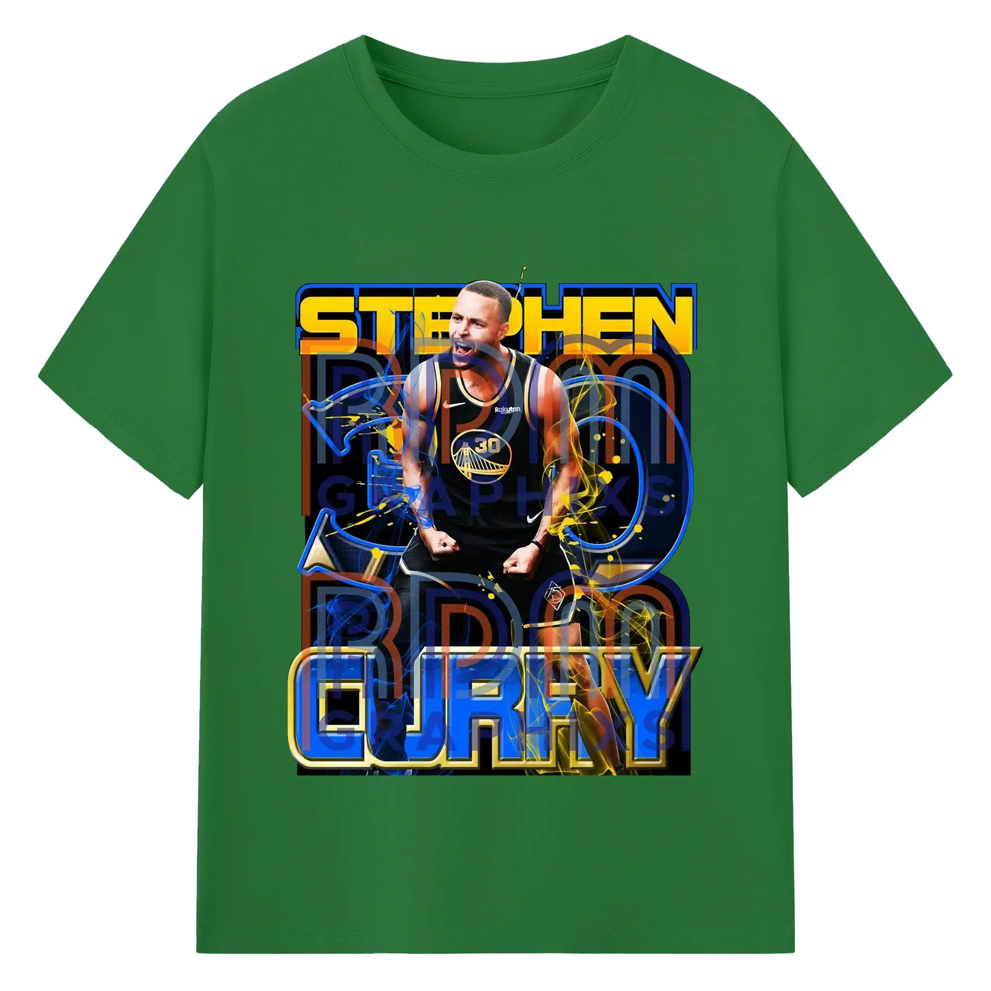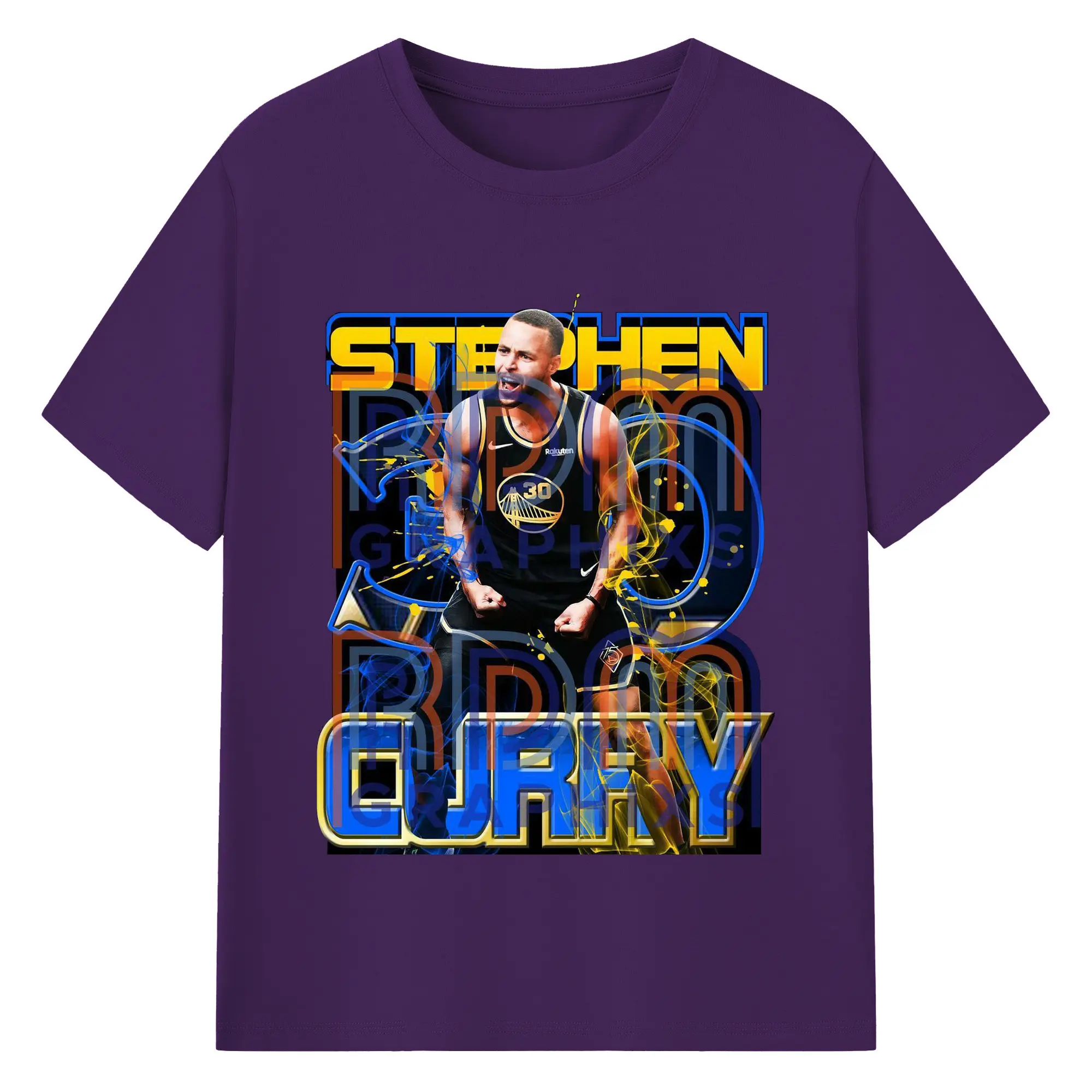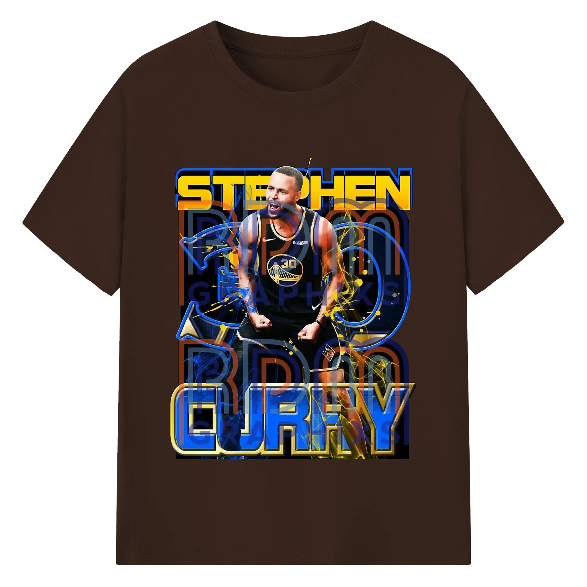 Stephen Curry Electric Blue Gold Streetwear Victory Roar Shirt - 180g Cotton T-Shirt With Front Heat Transfer Print – Soft, Lightweight, Fitted Design – Comfortable Casual Wear For Sports & Everyday Use