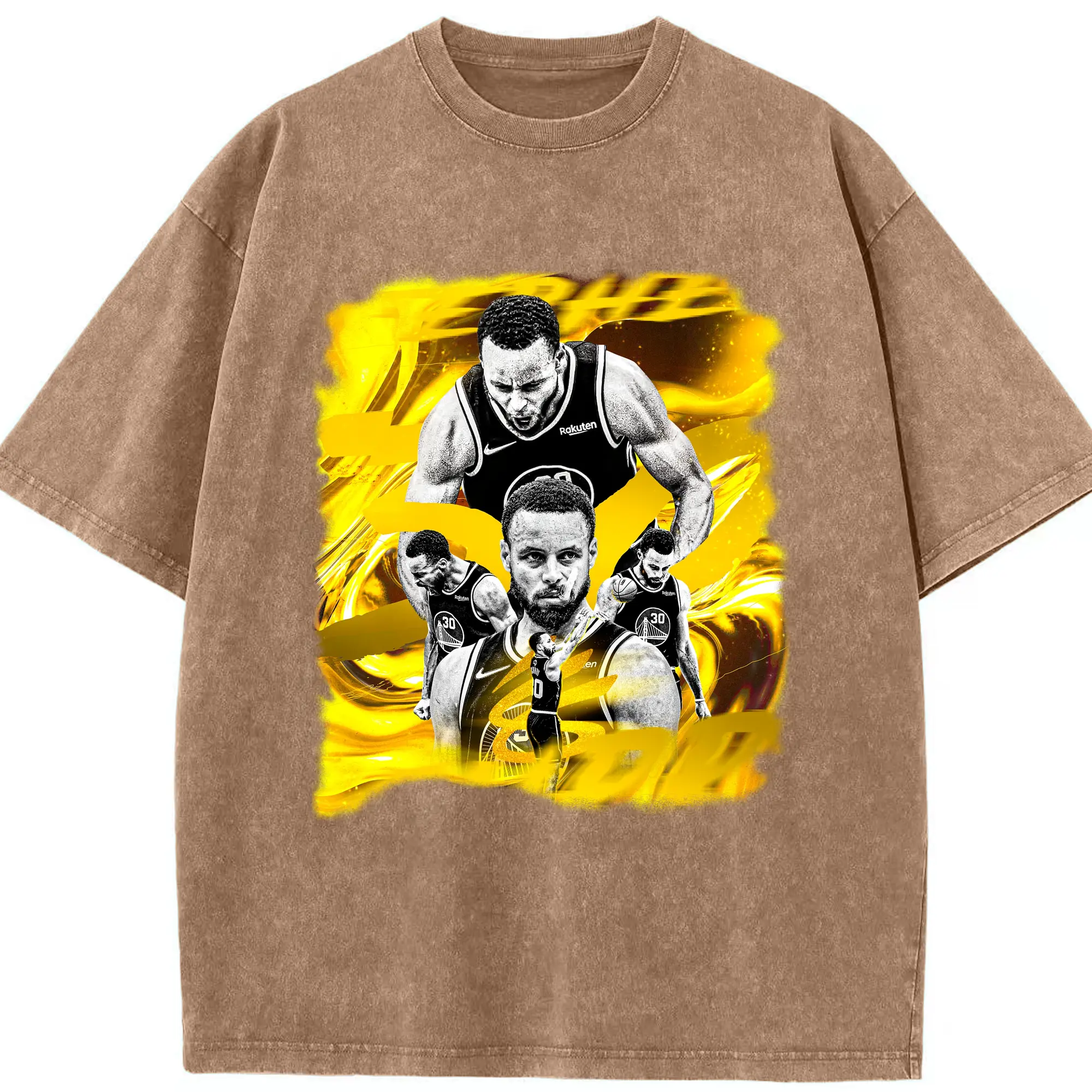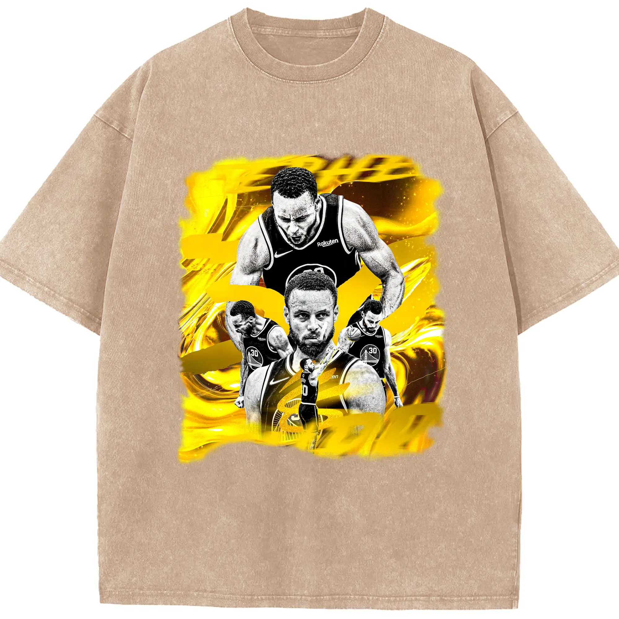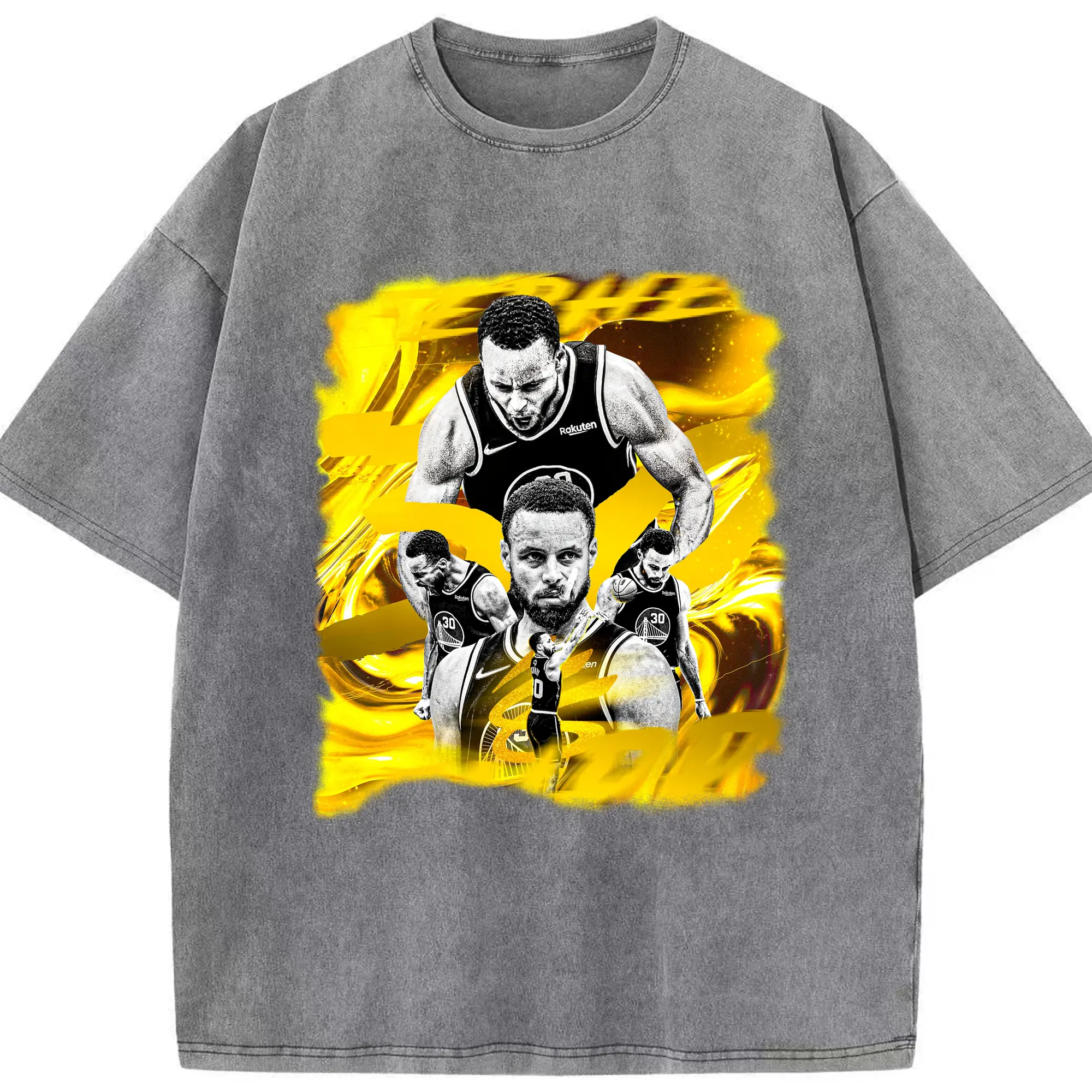 Stephen Curry Golden Swirl Art Shirt - Washed Vintage Look 230g Cotton Oversized T-Shirt With Front Heat Transfer Print – Soft, Lightweight, Stylish Fit – Comfortable Casual Wear For Sports & Everyday Use