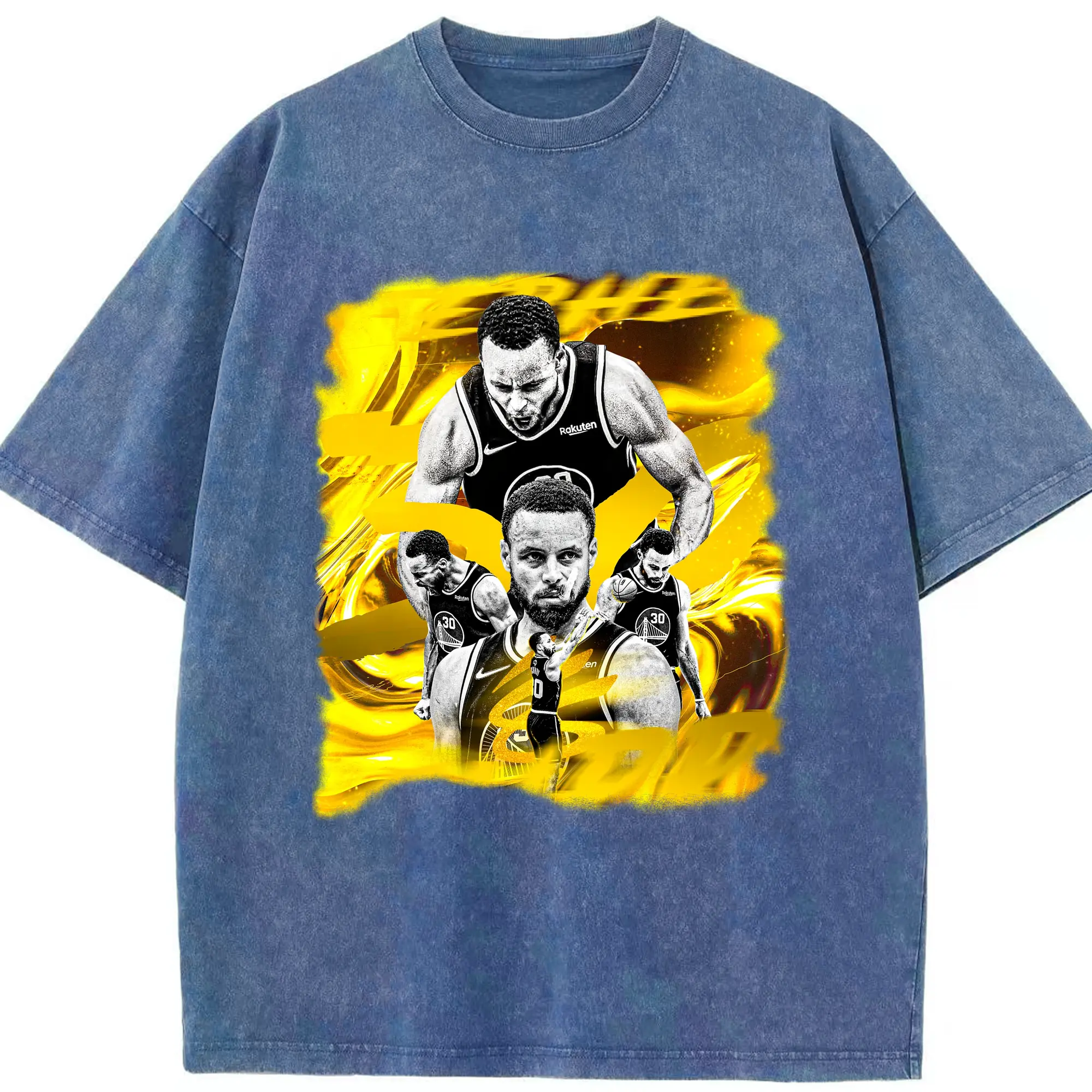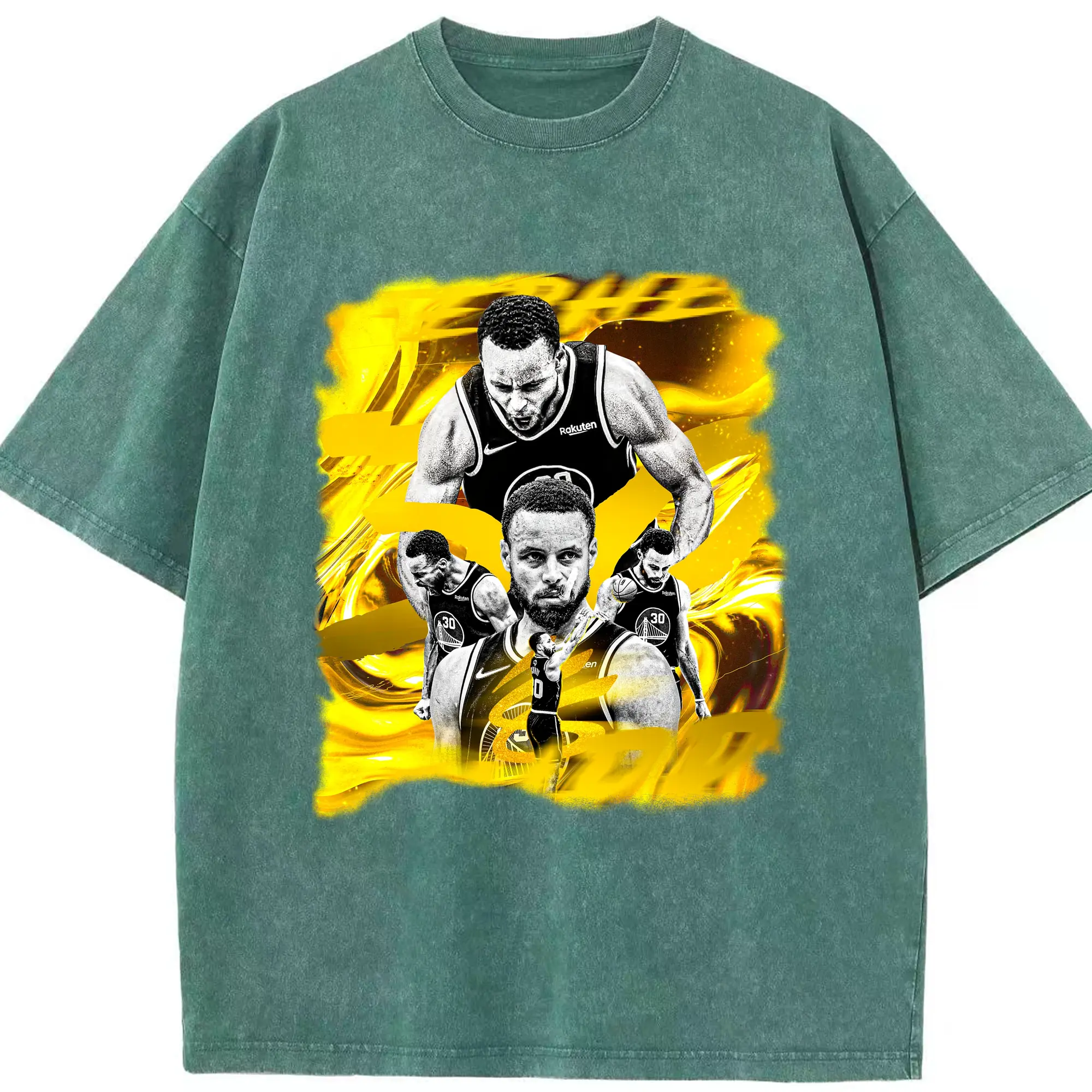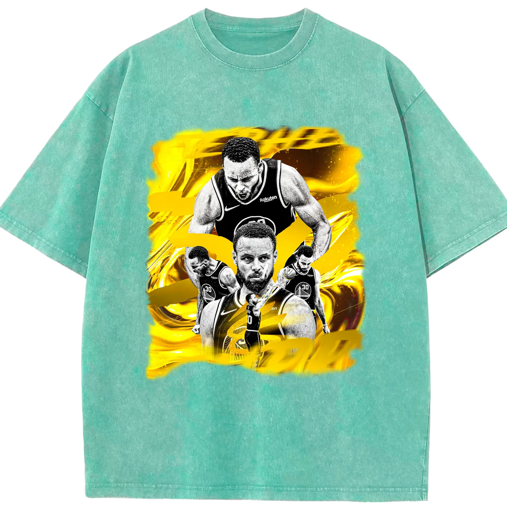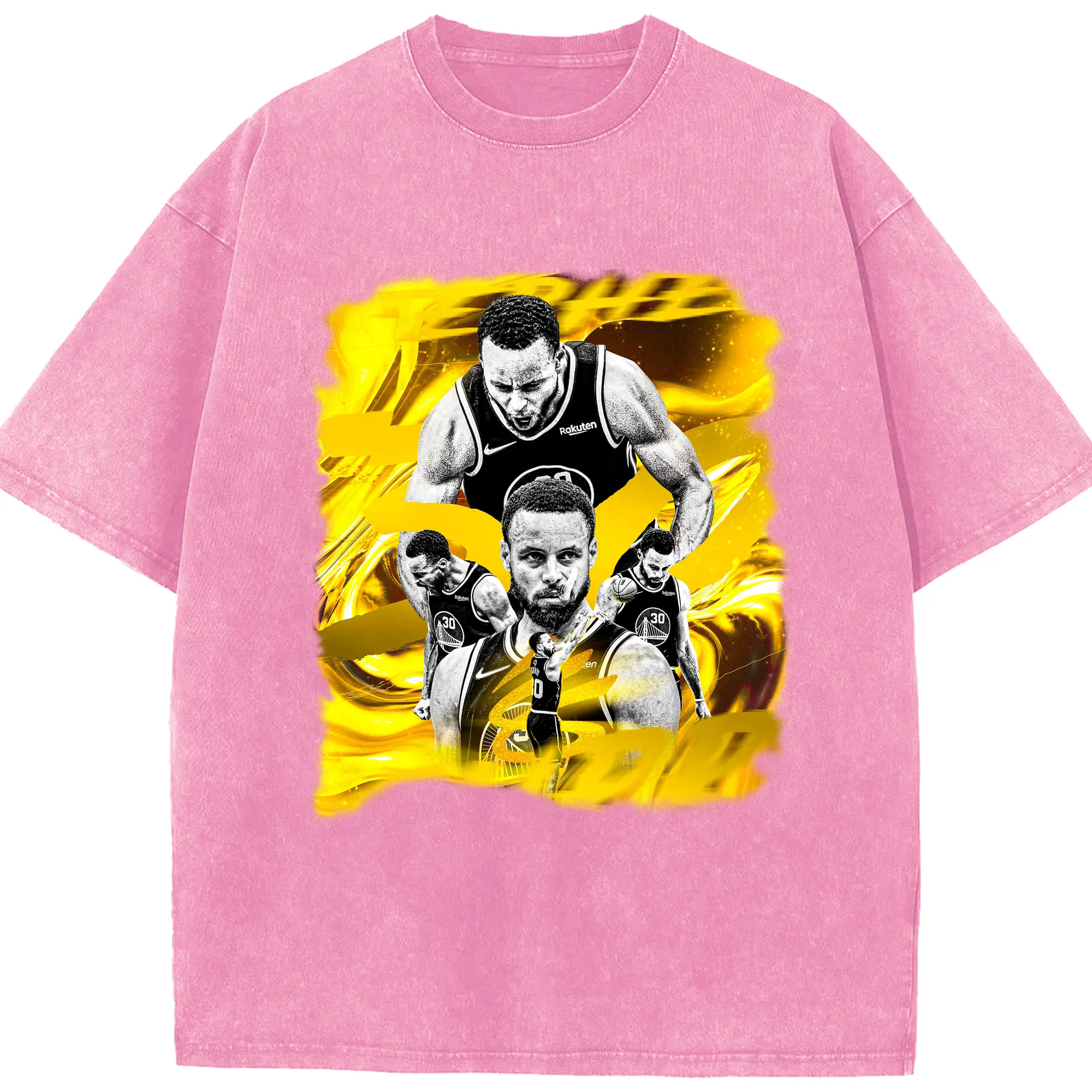 Stephen Curry Golden Swirl Art Shirt - Washed Vintage Look 230g Cotton Oversized T-Shirt With Front Heat Transfer Print – Soft, Lightweight, Stylish Fit – Comfortable Casual Wear For Sports & Everyday Use
