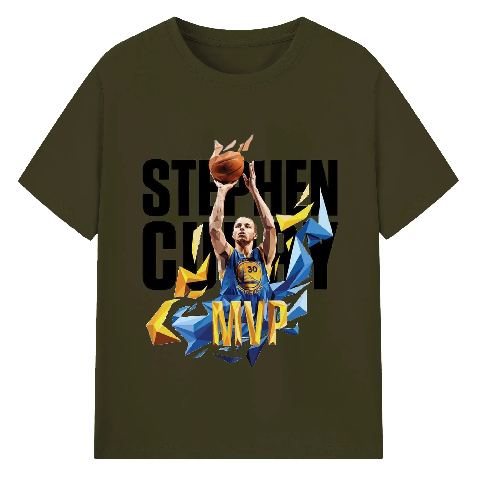 Stephen Curry MVP Polygon Art Shirt - 180g Cotton T-Shirt With Front Heat Transfer Print – Soft, Lightweight, Fitted Design – Comfortable Casual Wear For Sports & Everyday Use