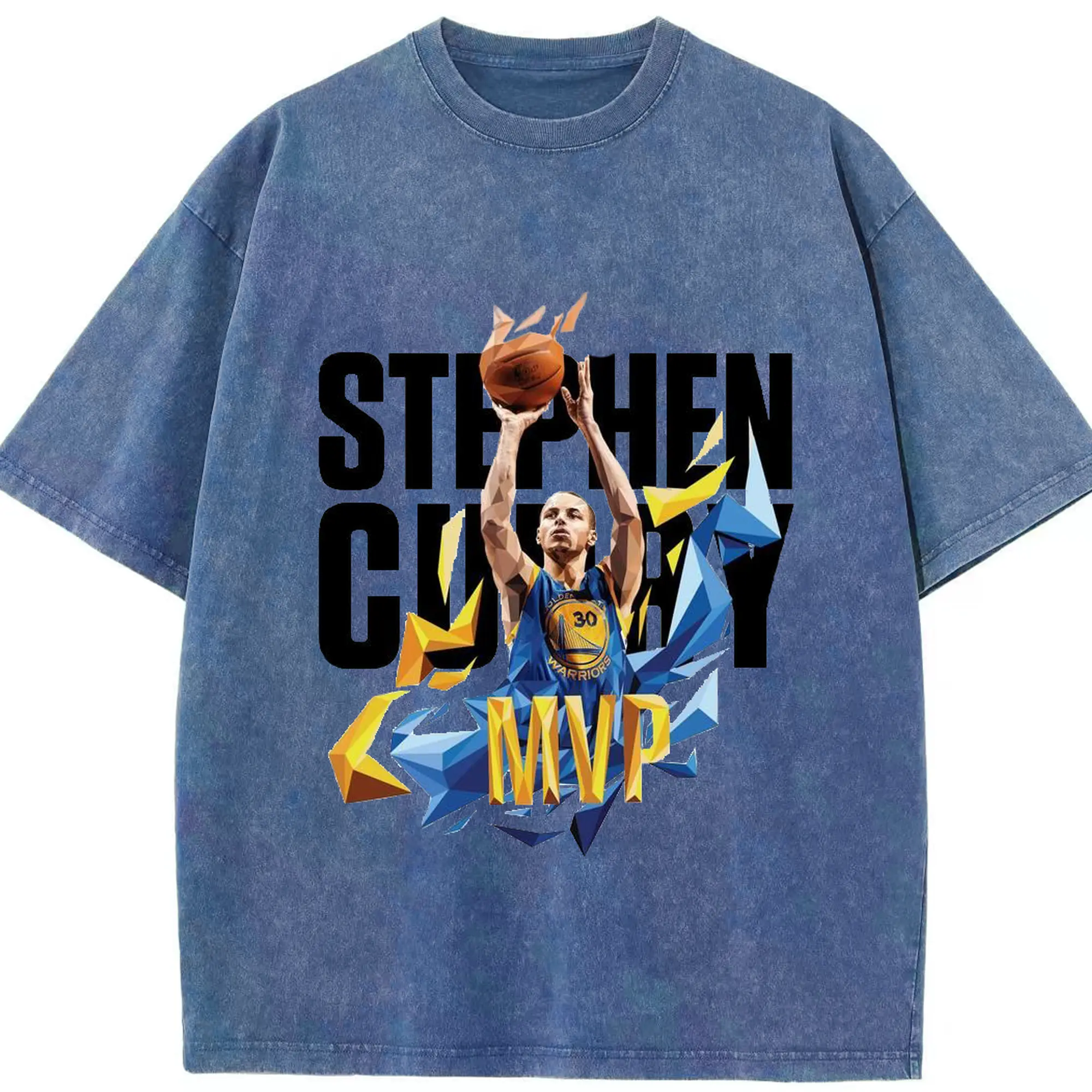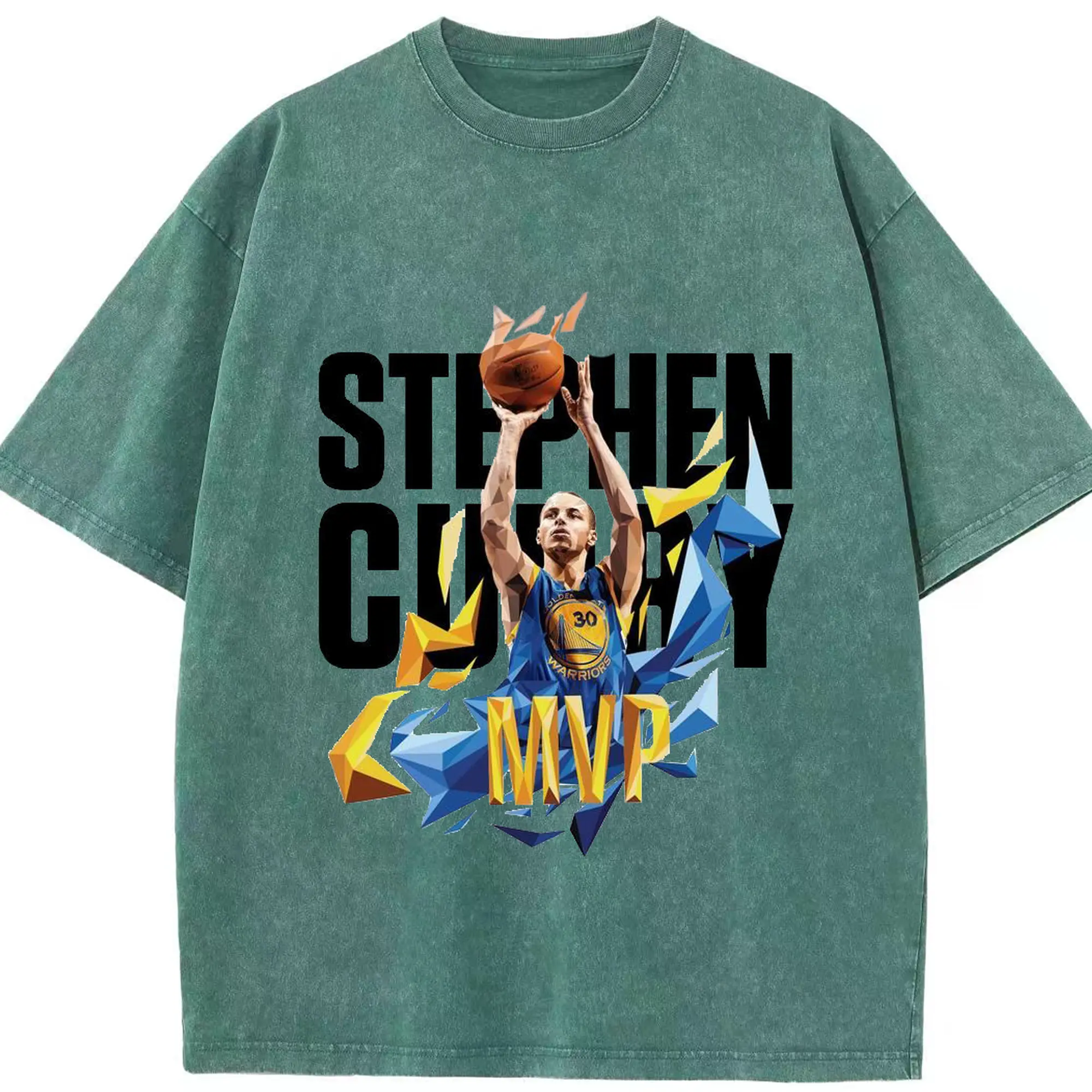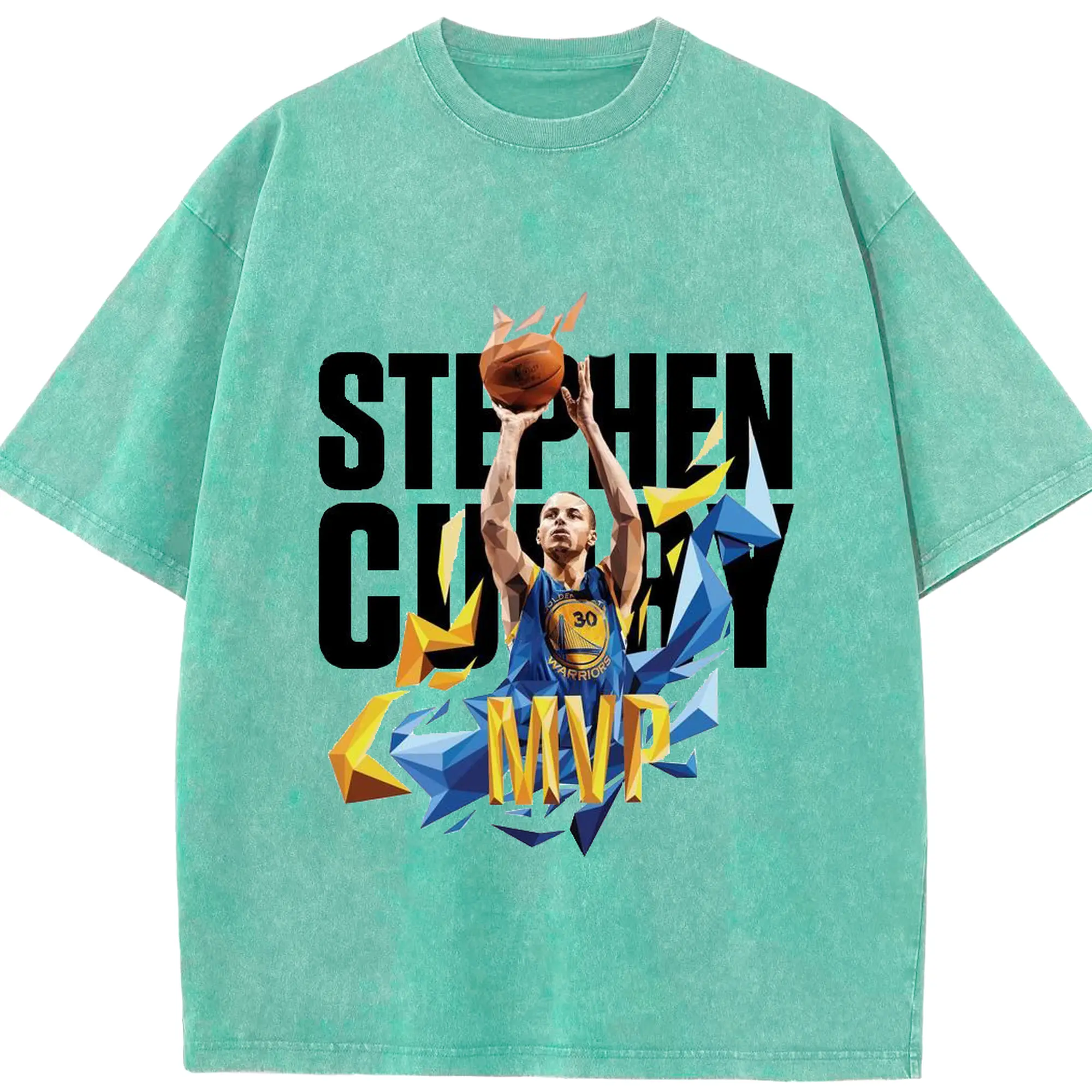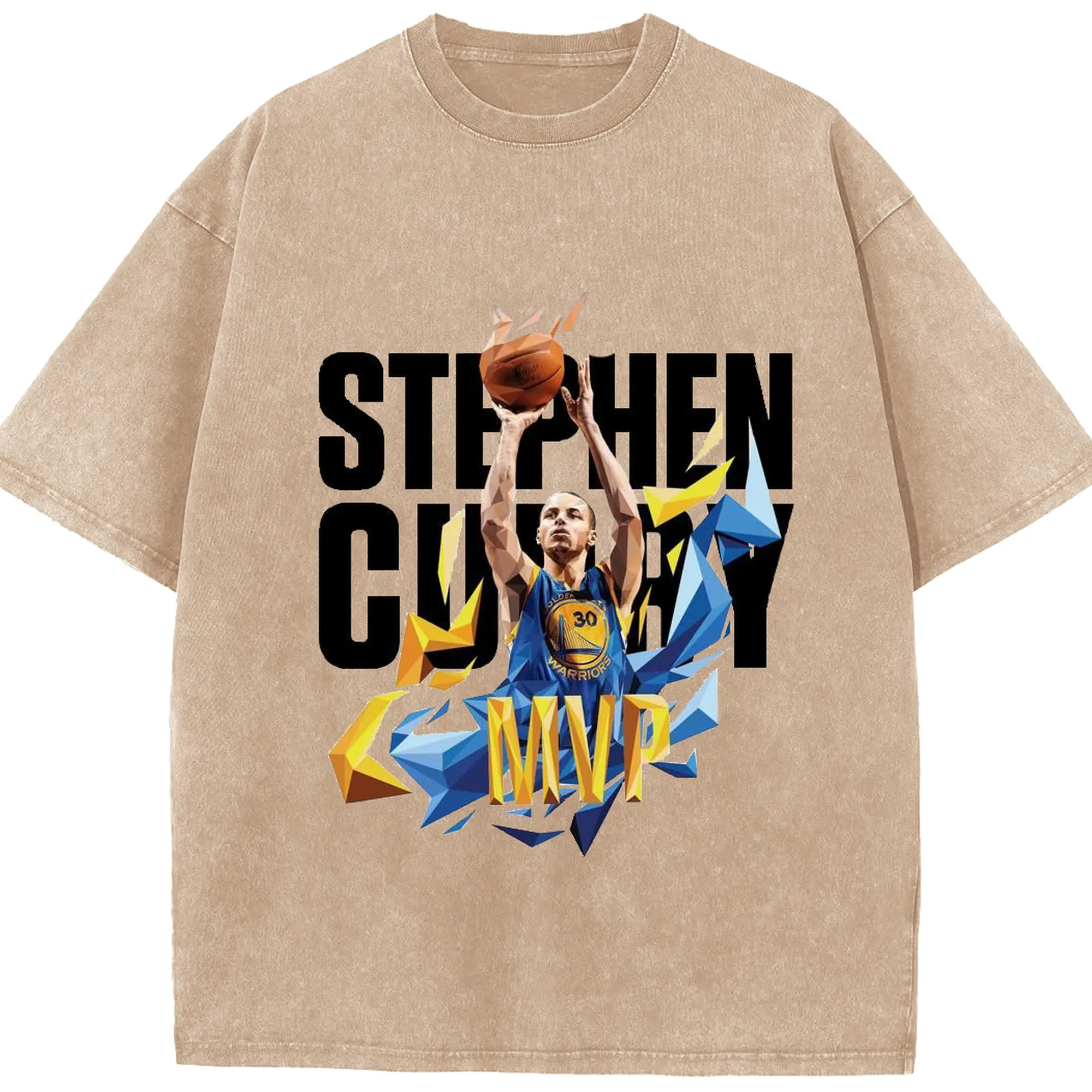 Stephen Curry MVP Polygon Art Shirt - Washed Vintage Look 230g Cotton Oversized T-Shirt With Front Heat Transfer Print – Soft, Lightweight, Stylish Fit – Comfortable Casual Wear For Sports & Everyday Use