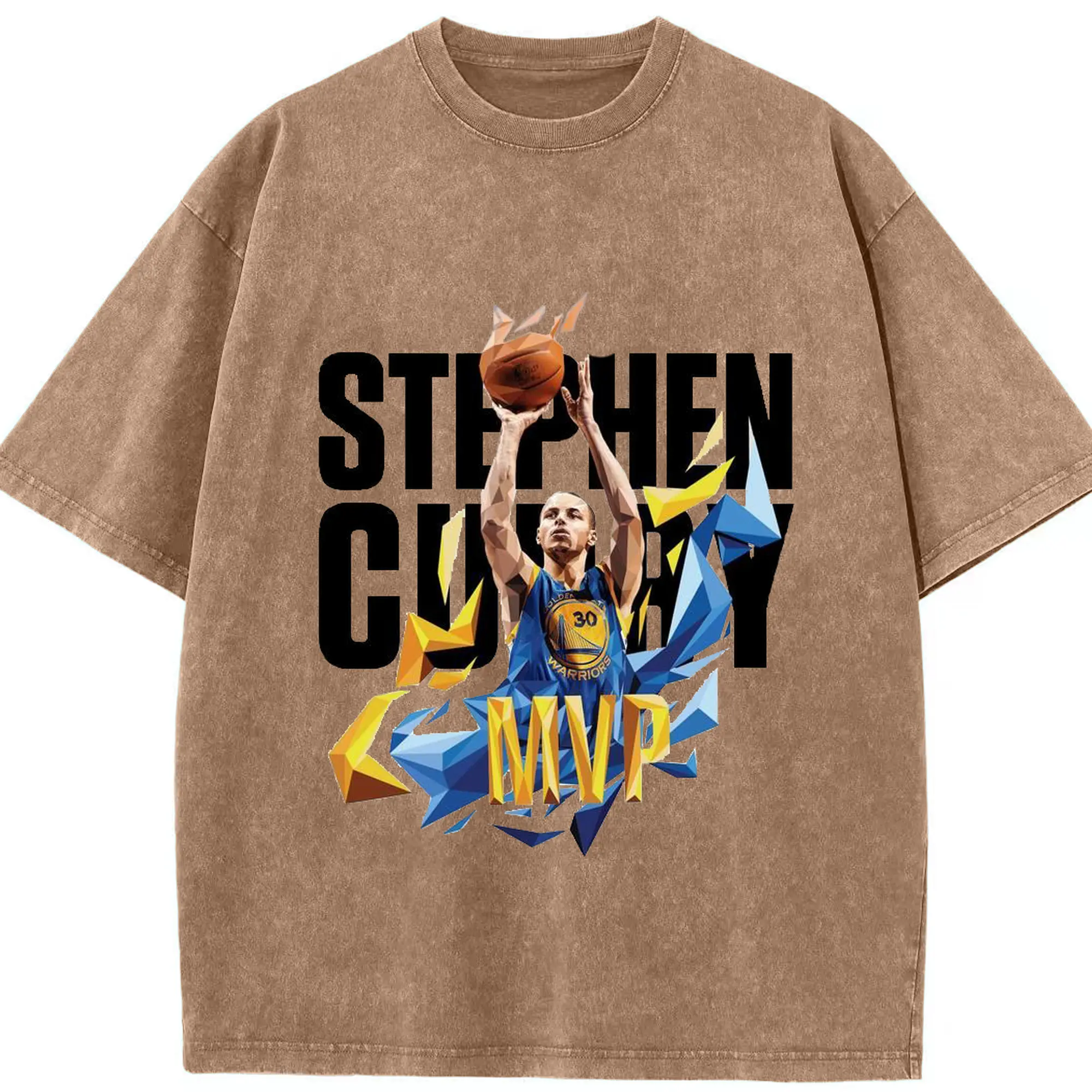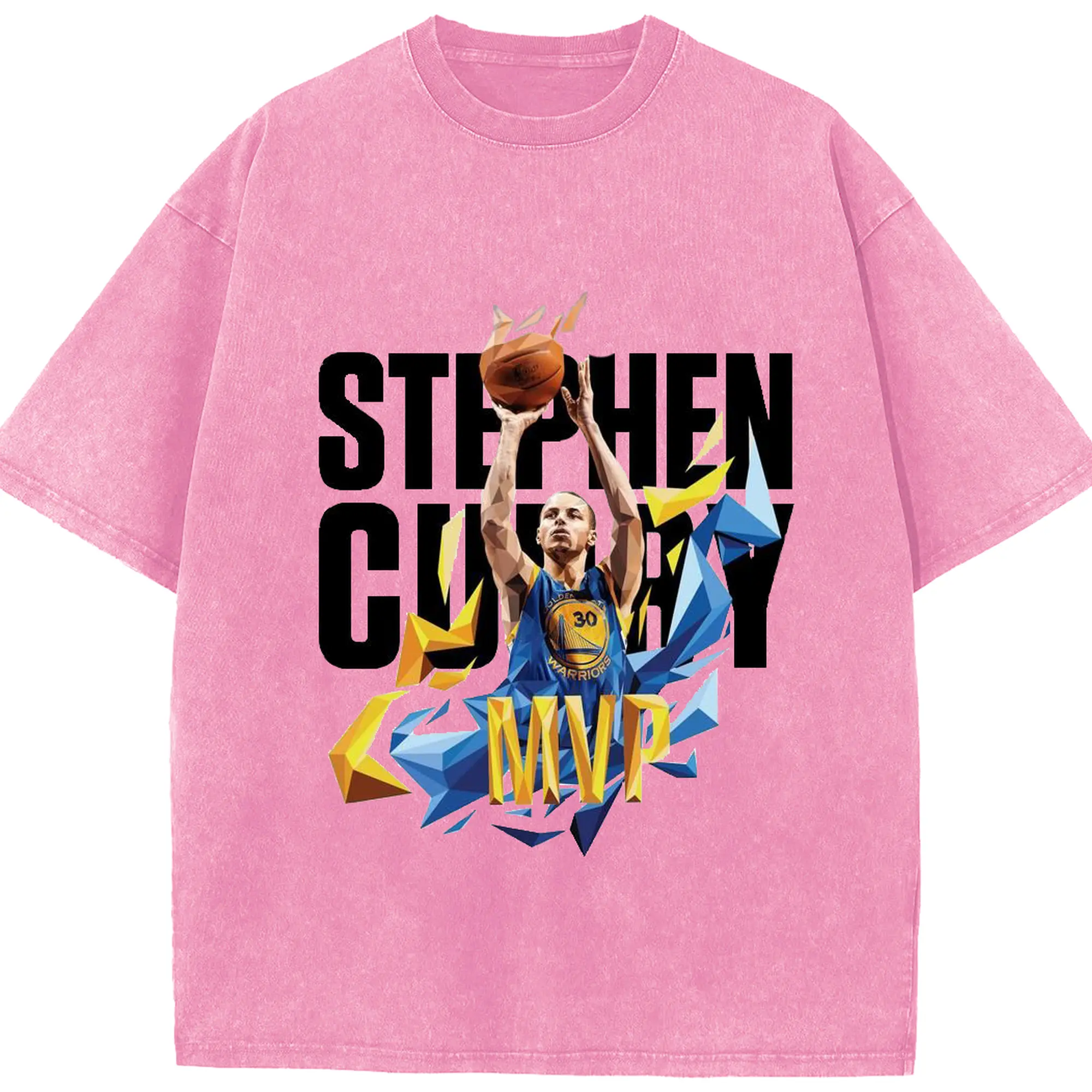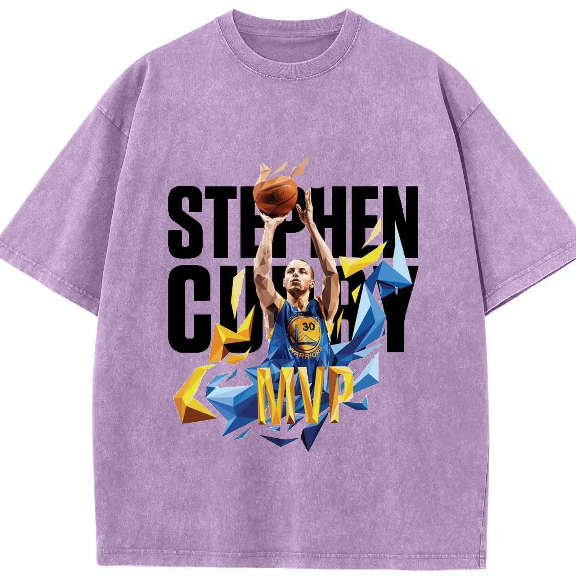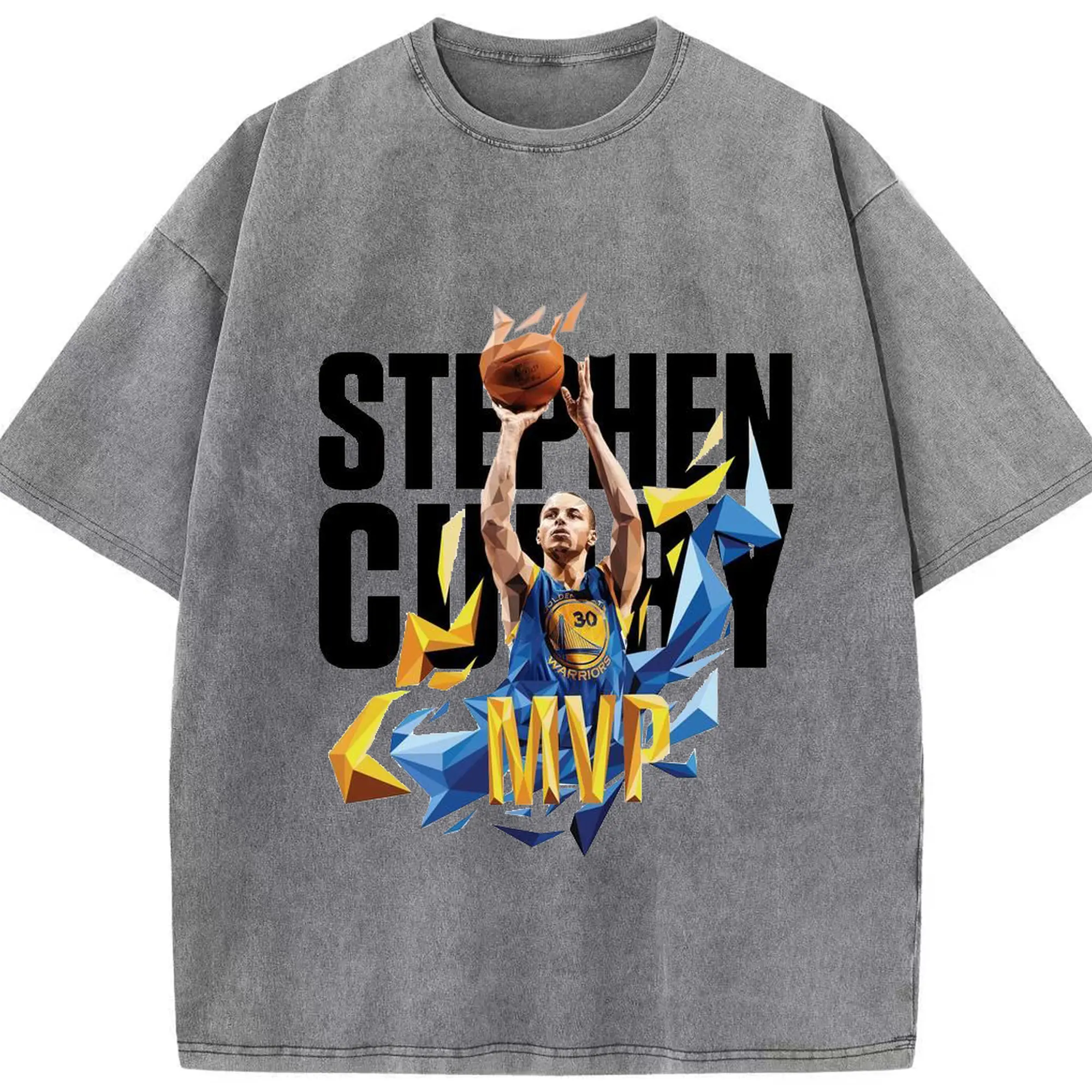 Stephen Curry MVP Polygon Art Shirt - Washed Vintage Look 230g Cotton Oversized T-Shirt With Front Heat Transfer Print – Soft, Lightweight, Stylish Fit – Comfortable Casual Wear For Sports & Everyday Use