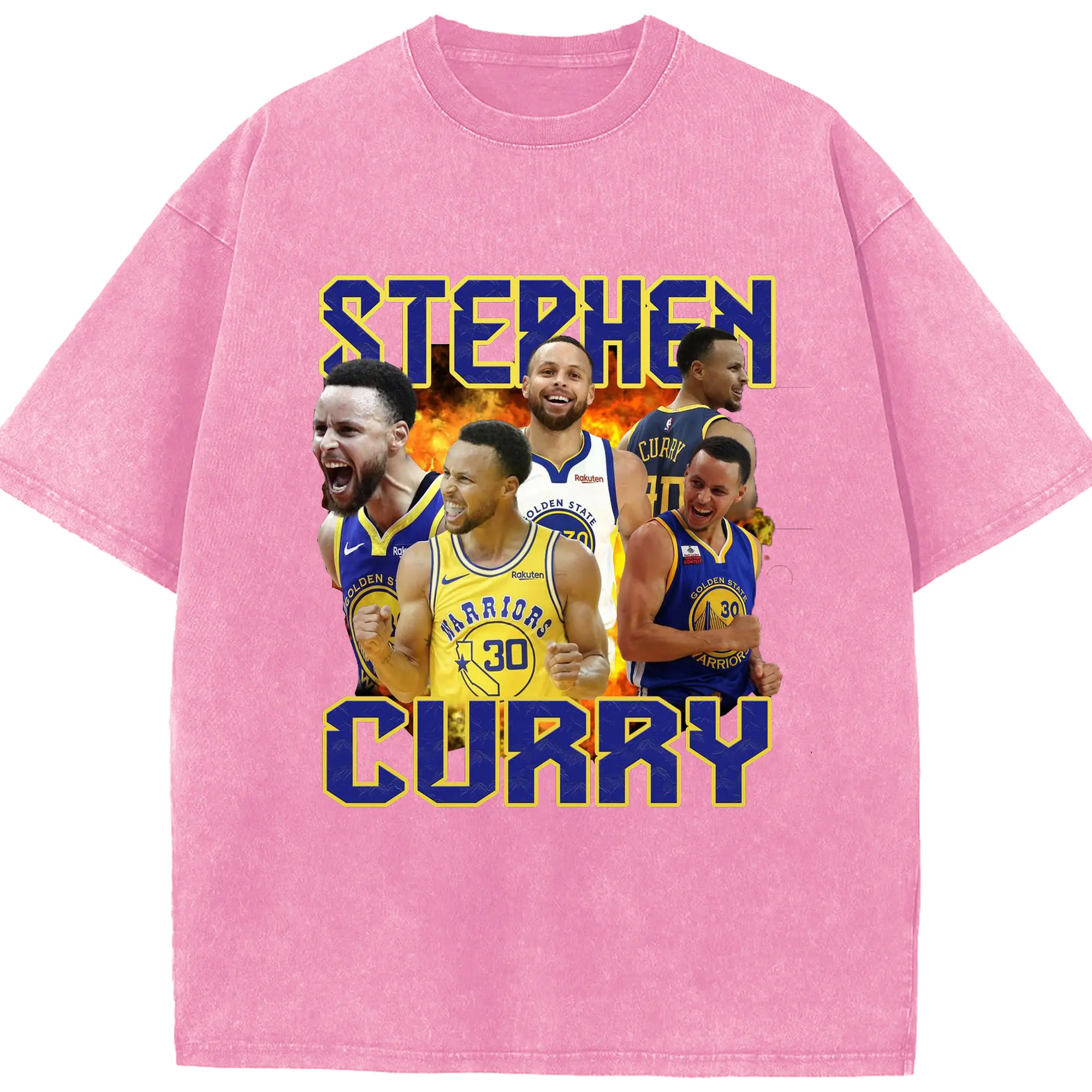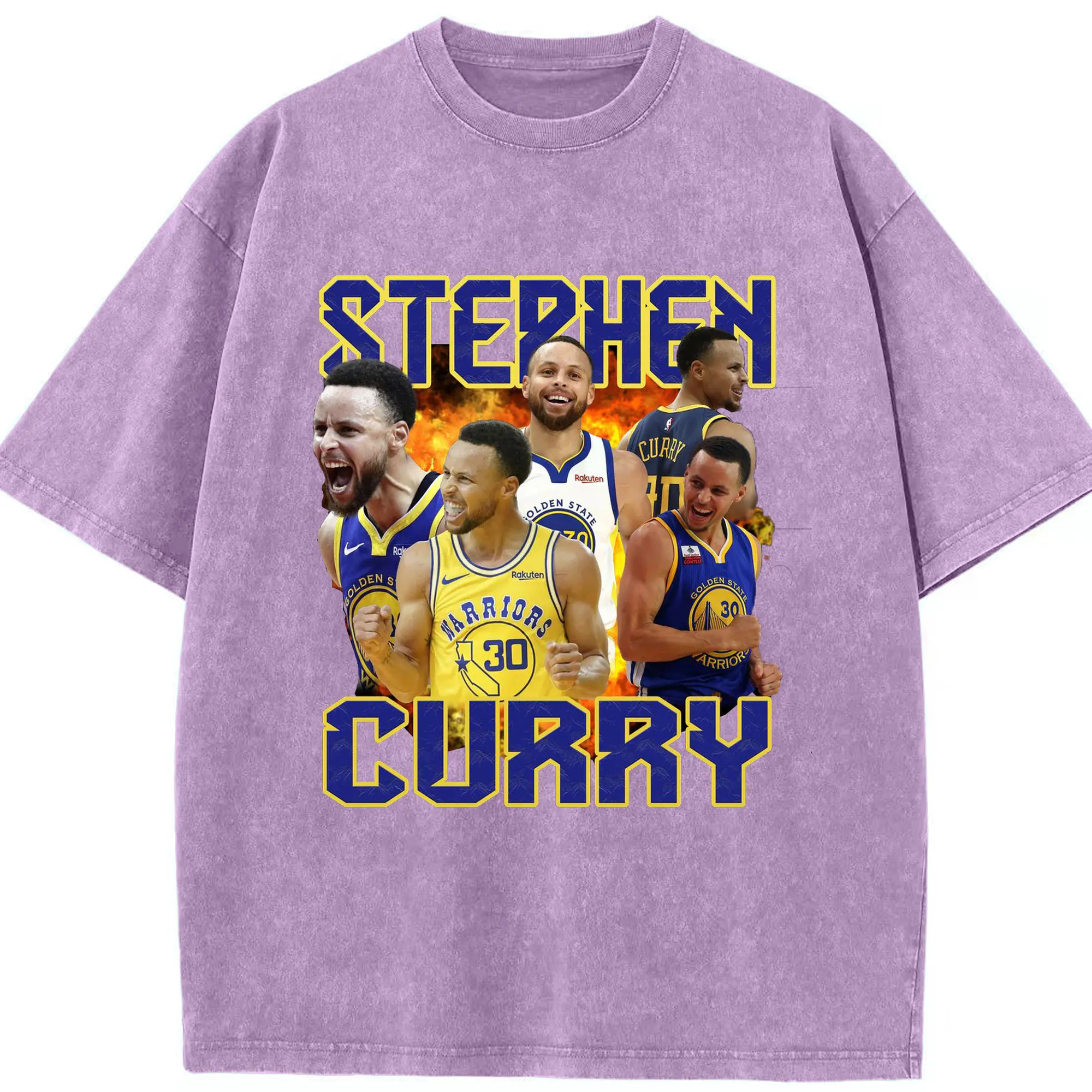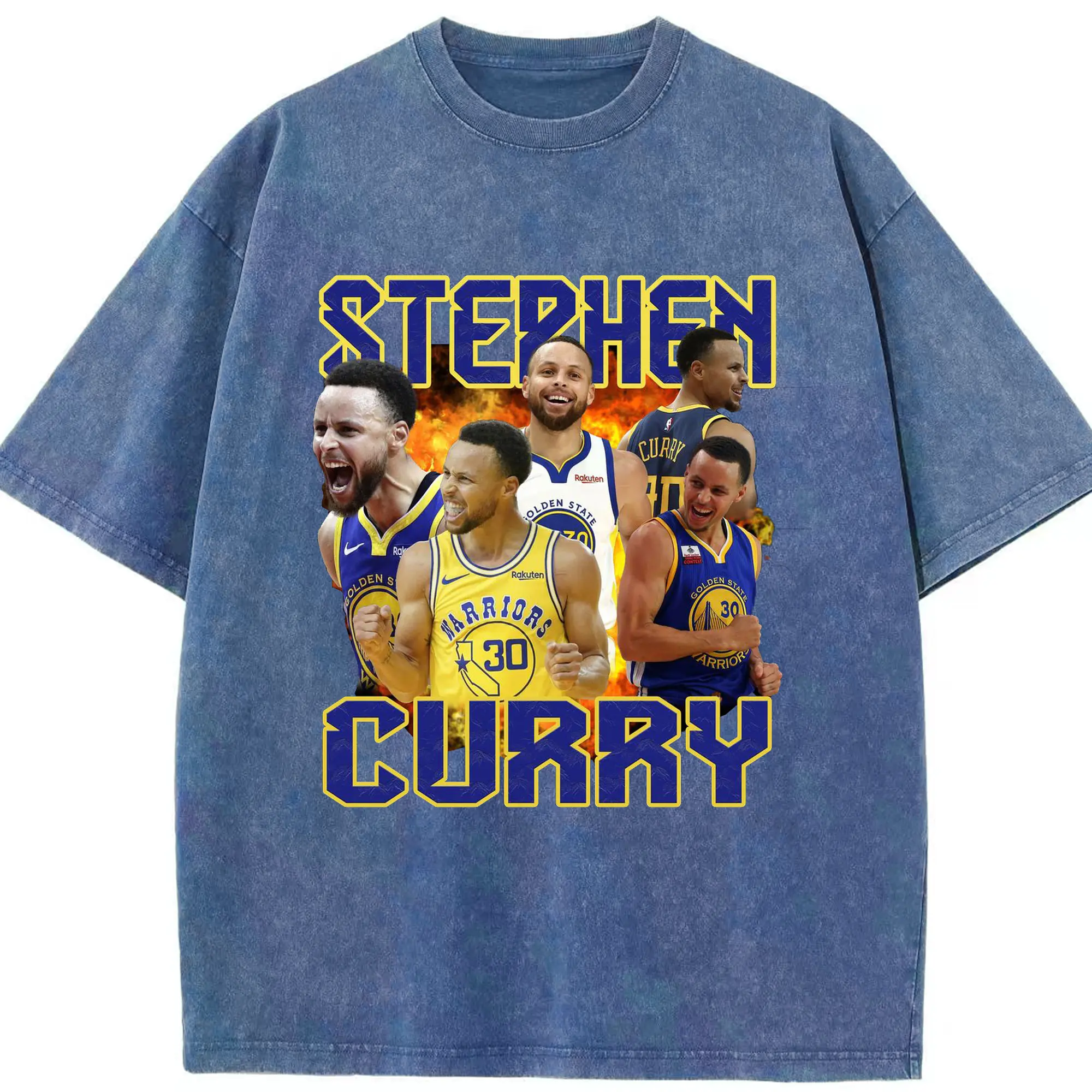 Stephen Curry Warrior Fire Shirt - Washed Vintage Look 230g Cotton Oversized T-Shirt With Front Heat Transfer Print – Soft, Lightweight, Stylish Fit – Comfortable Casual Wear For Sports & Everyday Use