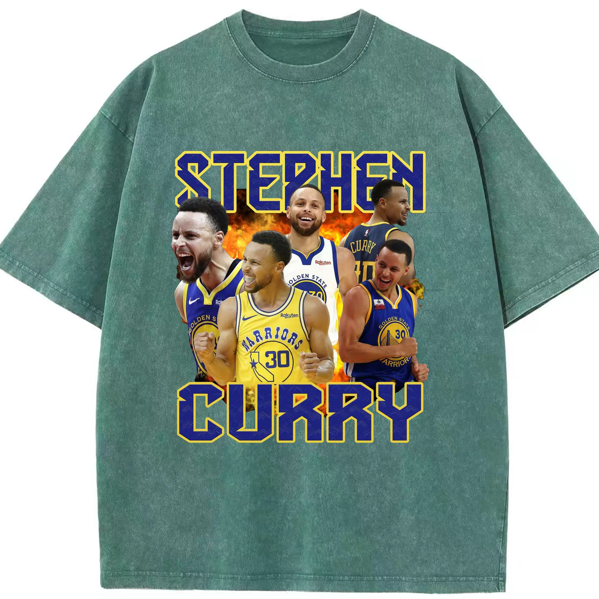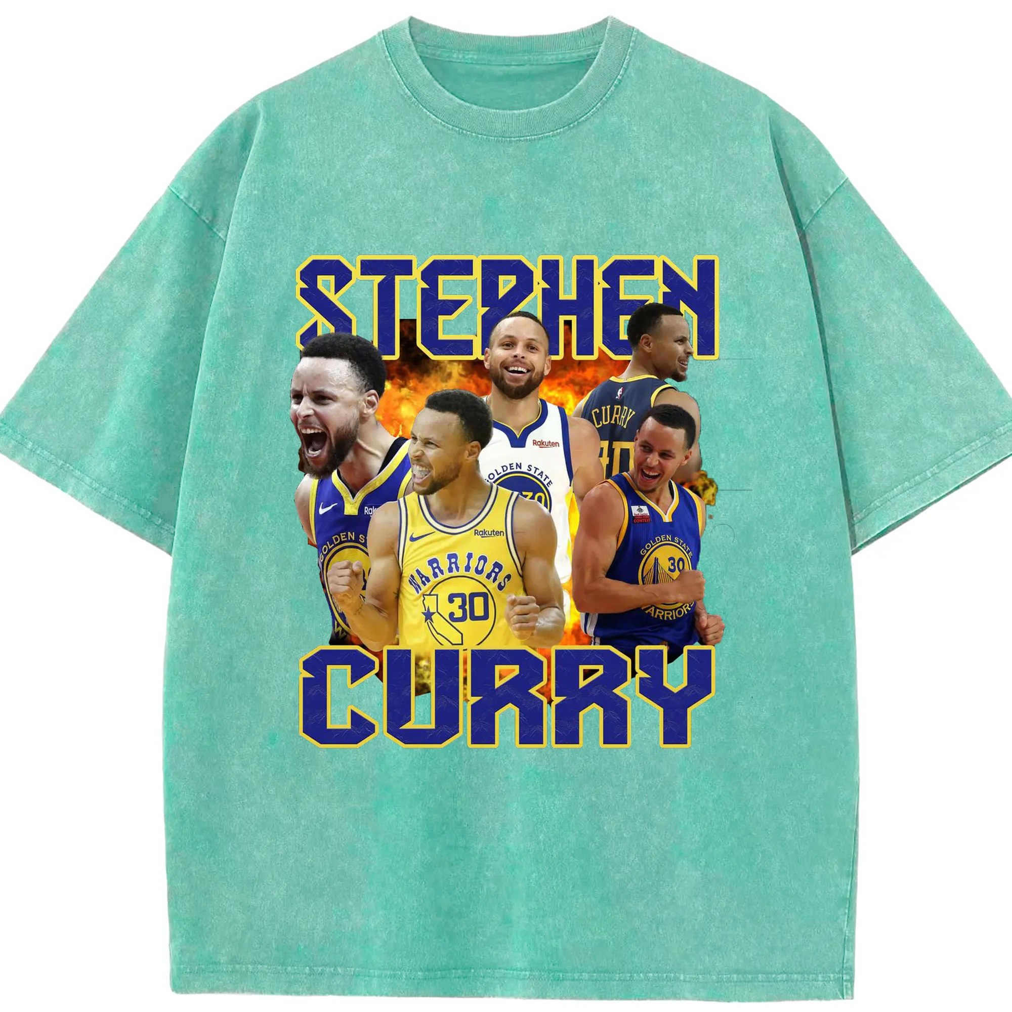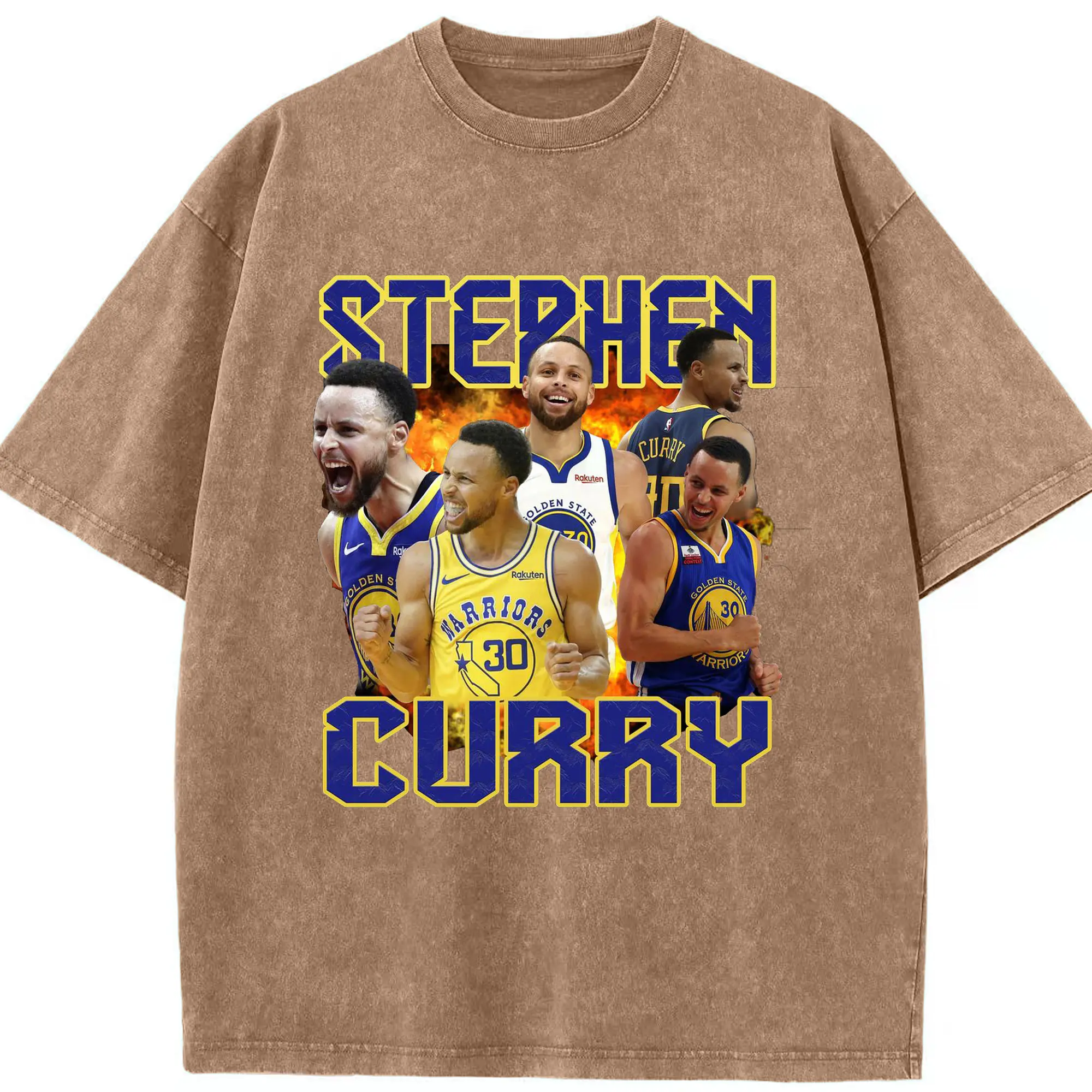 Stephen Curry Warrior Fire Shirt - Washed Vintage Look 230g Cotton Oversized T-Shirt With Front Heat Transfer Print – Soft, Lightweight, Stylish Fit – Comfortable Casual Wear For Sports & Everyday Use