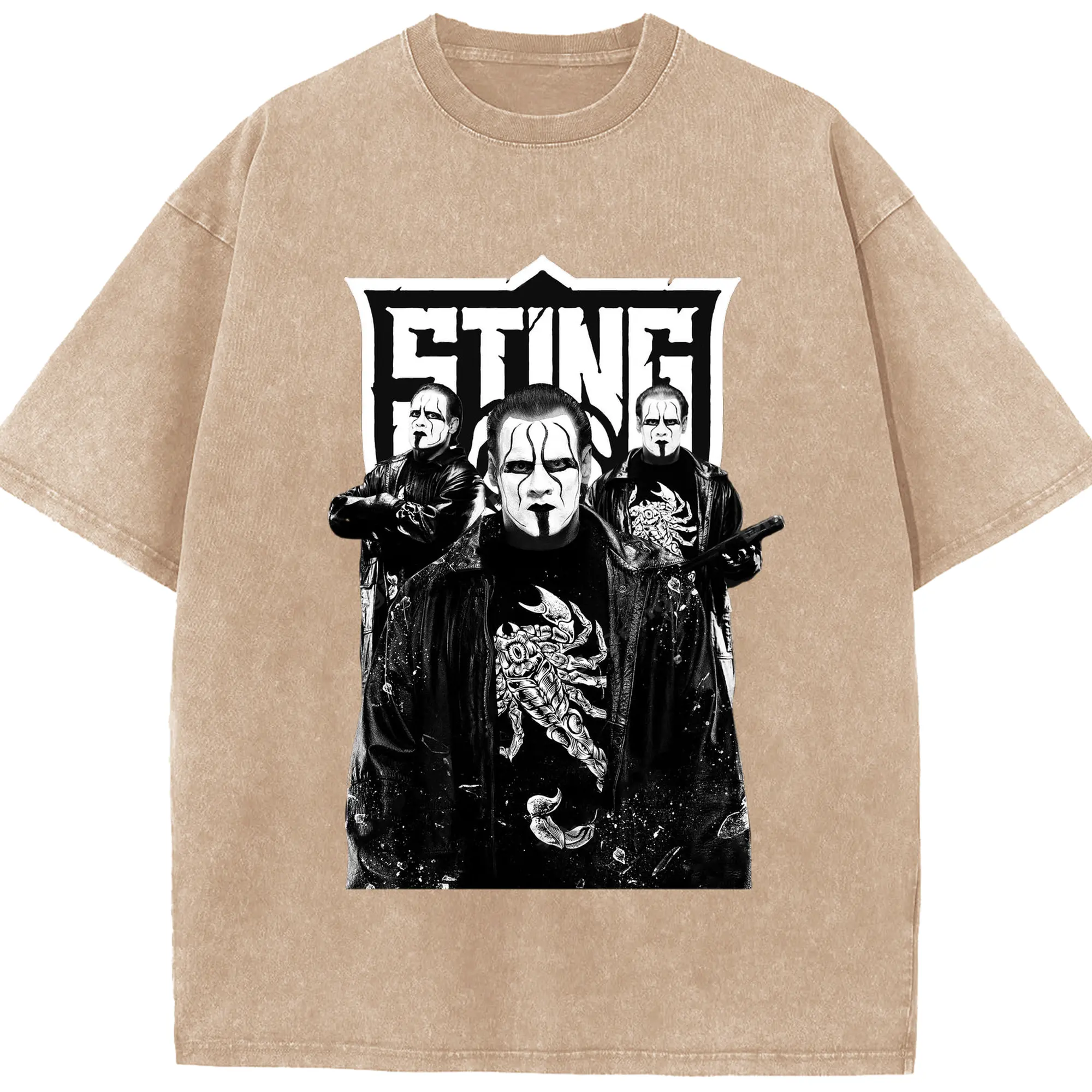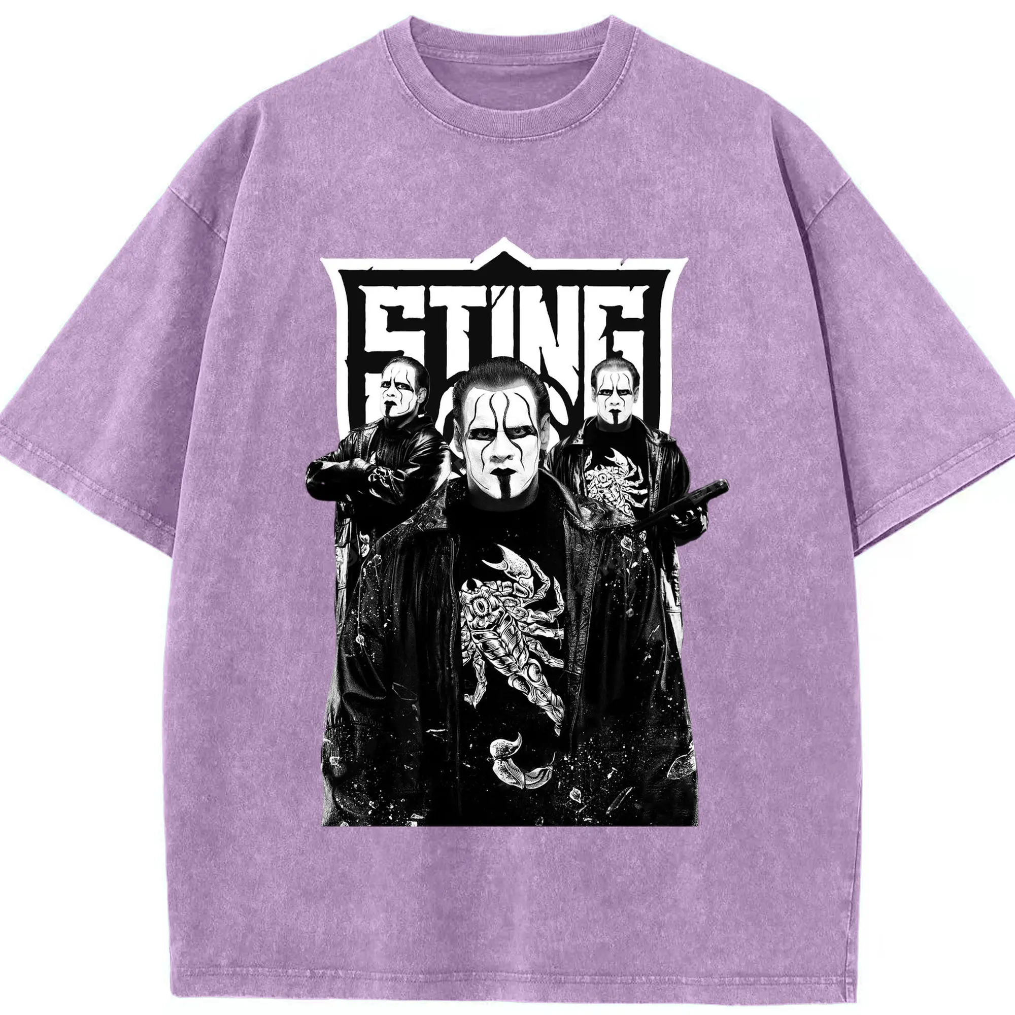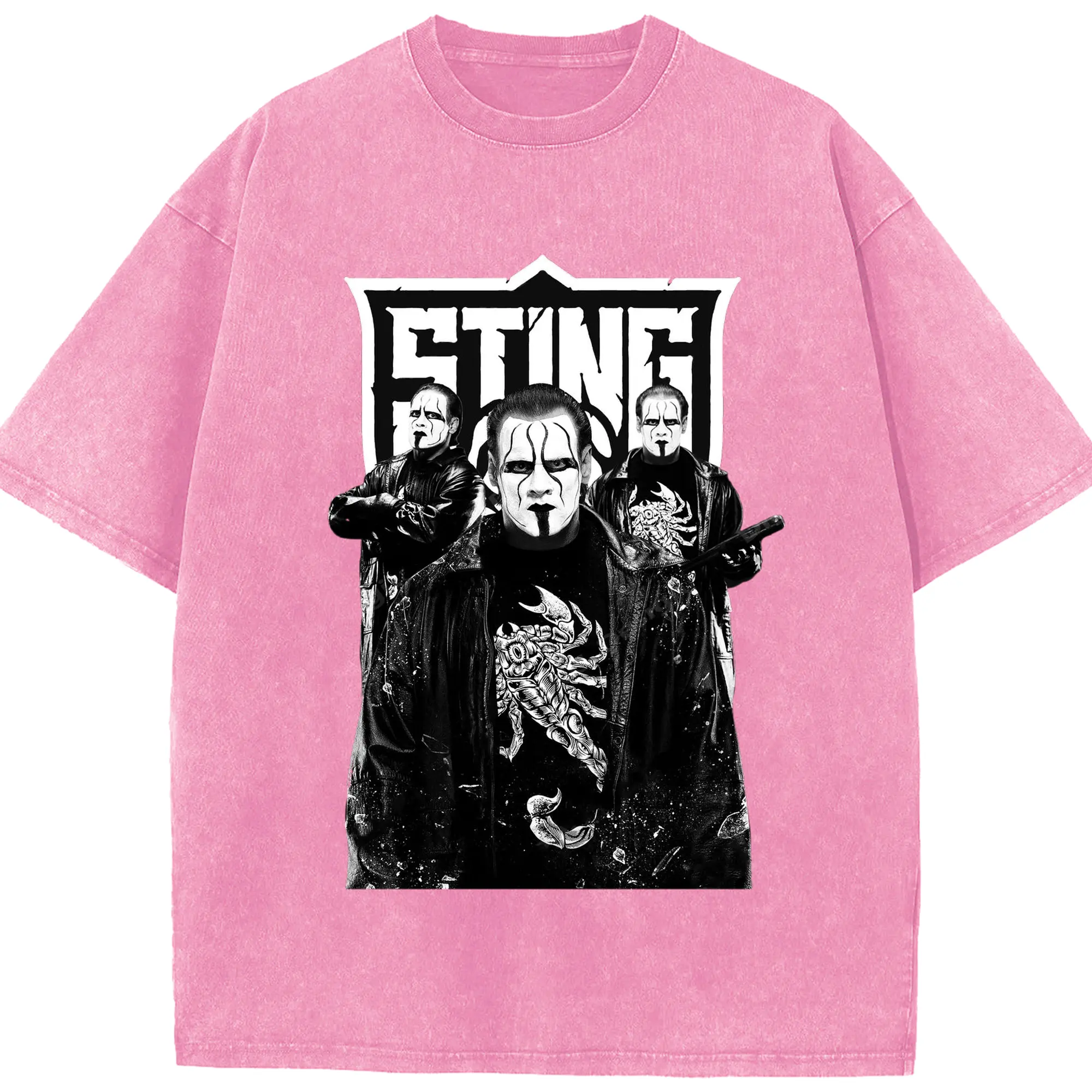 Sting WWE Dark Hardcore Wrestling Legend DIY Shirt - Washed Vintage Look 230g Cotton Oversized T-Shirt With Front Heat Transfer Print – Soft, Lightweight, Stylish Fit – Comfortable Casual Wear For Sports & Everyday Use