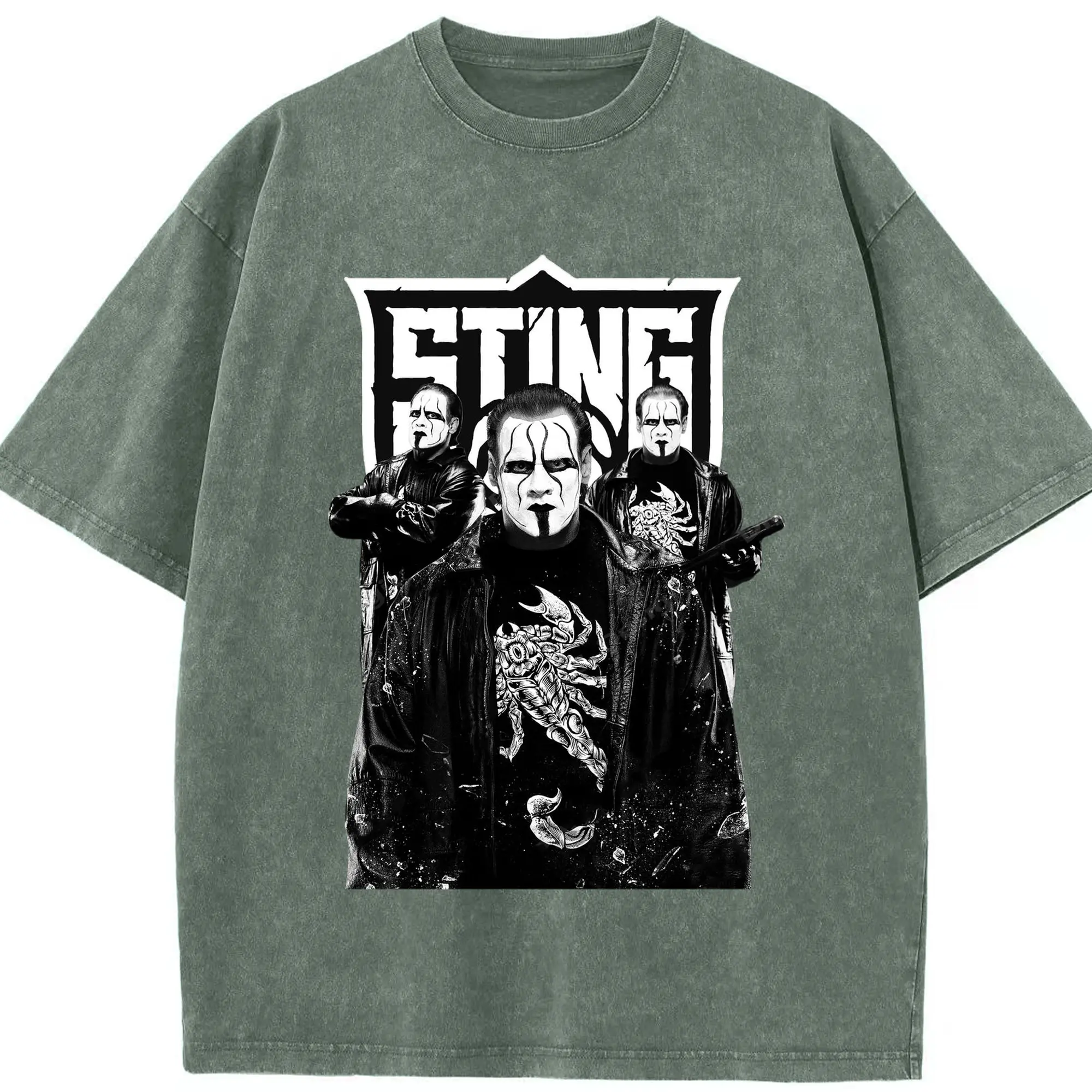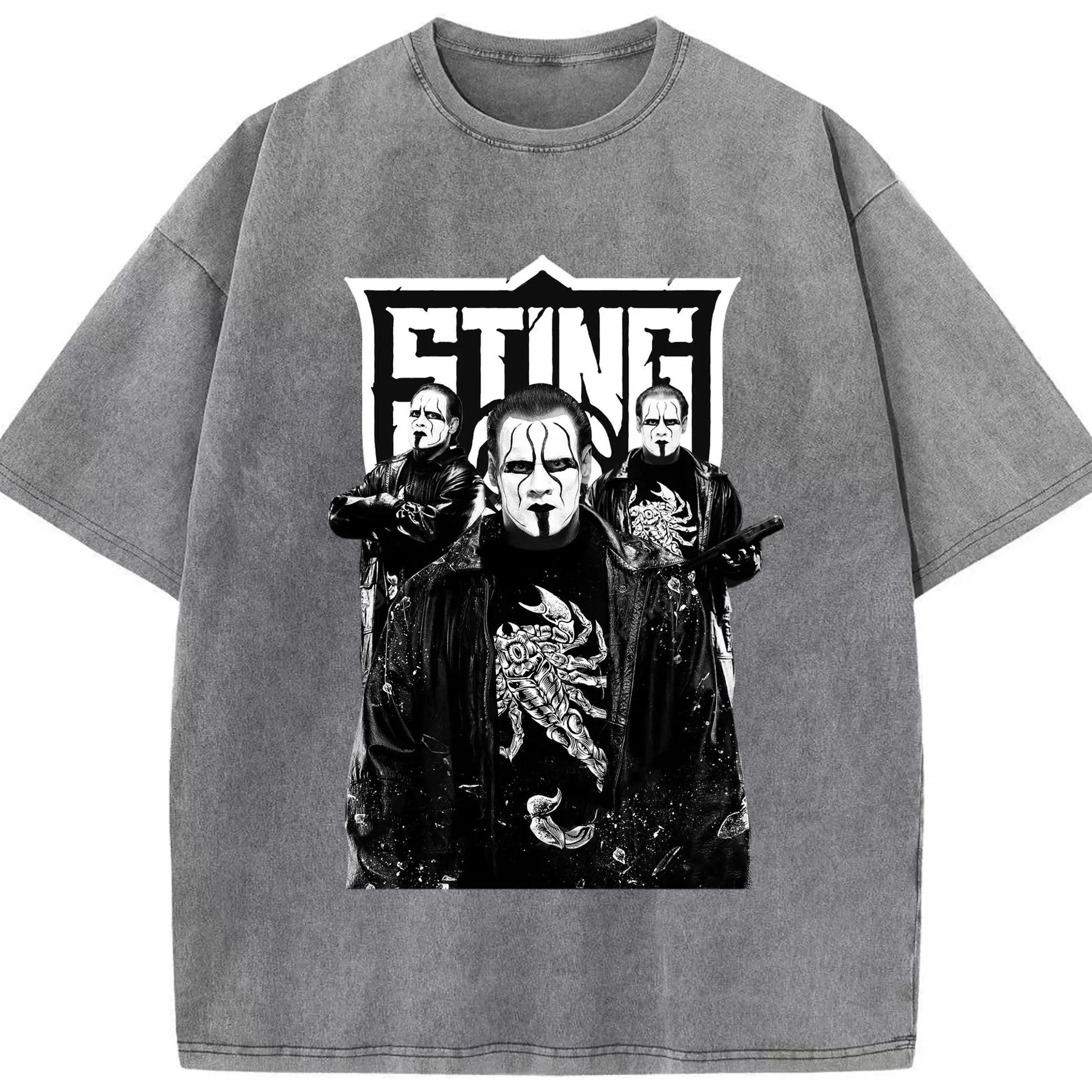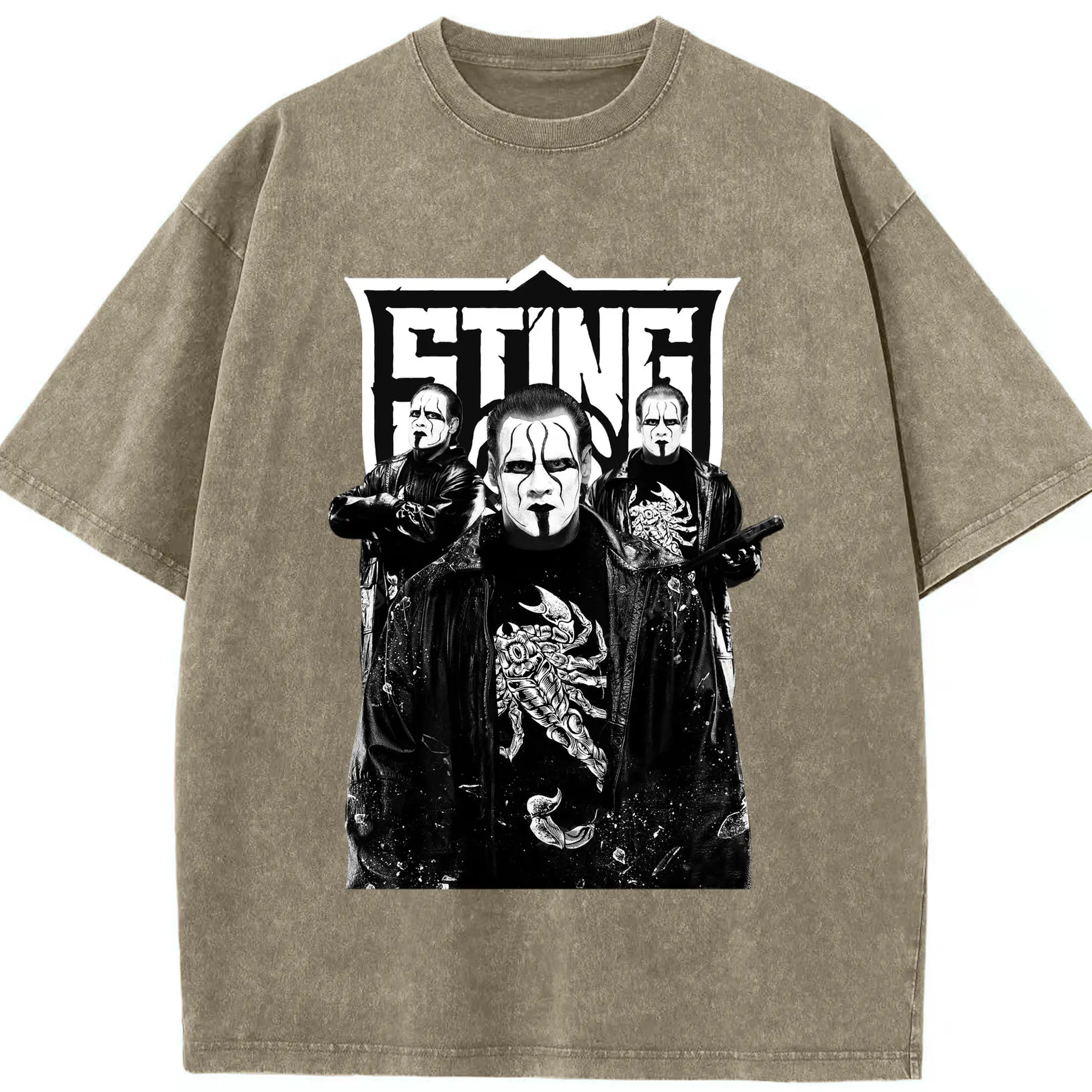 Sting WWE Dark Hardcore Wrestling Legend DIY Shirt - Washed Vintage Look 230g Cotton Oversized T-Shirt With Front Heat Transfer Print – Soft, Lightweight, Stylish Fit – Comfortable Casual Wear For Sports & Everyday Use
