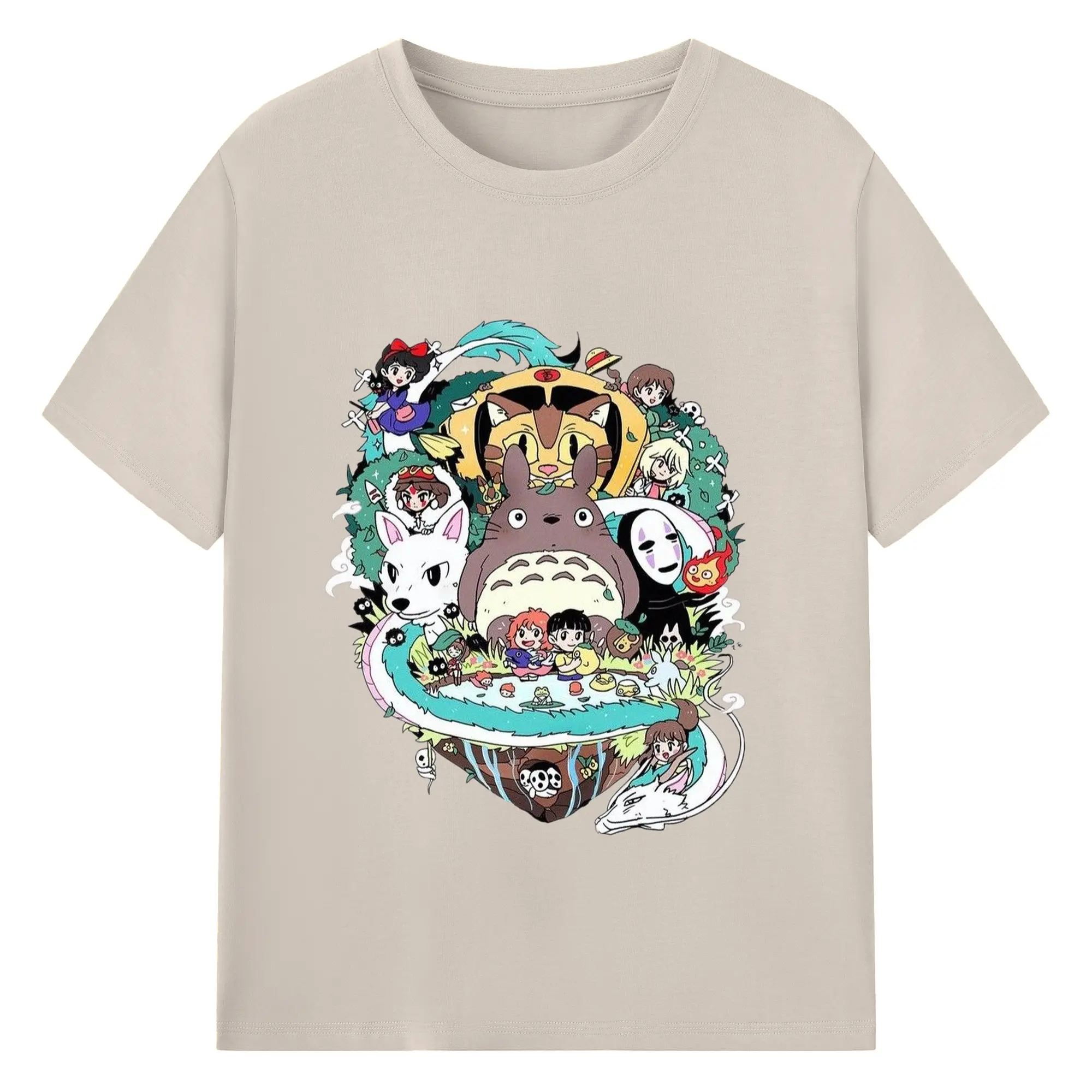 Studio Ghibli Classic Characters DIY - 180g Cotton T-Shirt With Front Heat Transfer Print – Soft, Lightweight, Fitted Design – Comfortable Casual Wear For Sports & Everyday Use