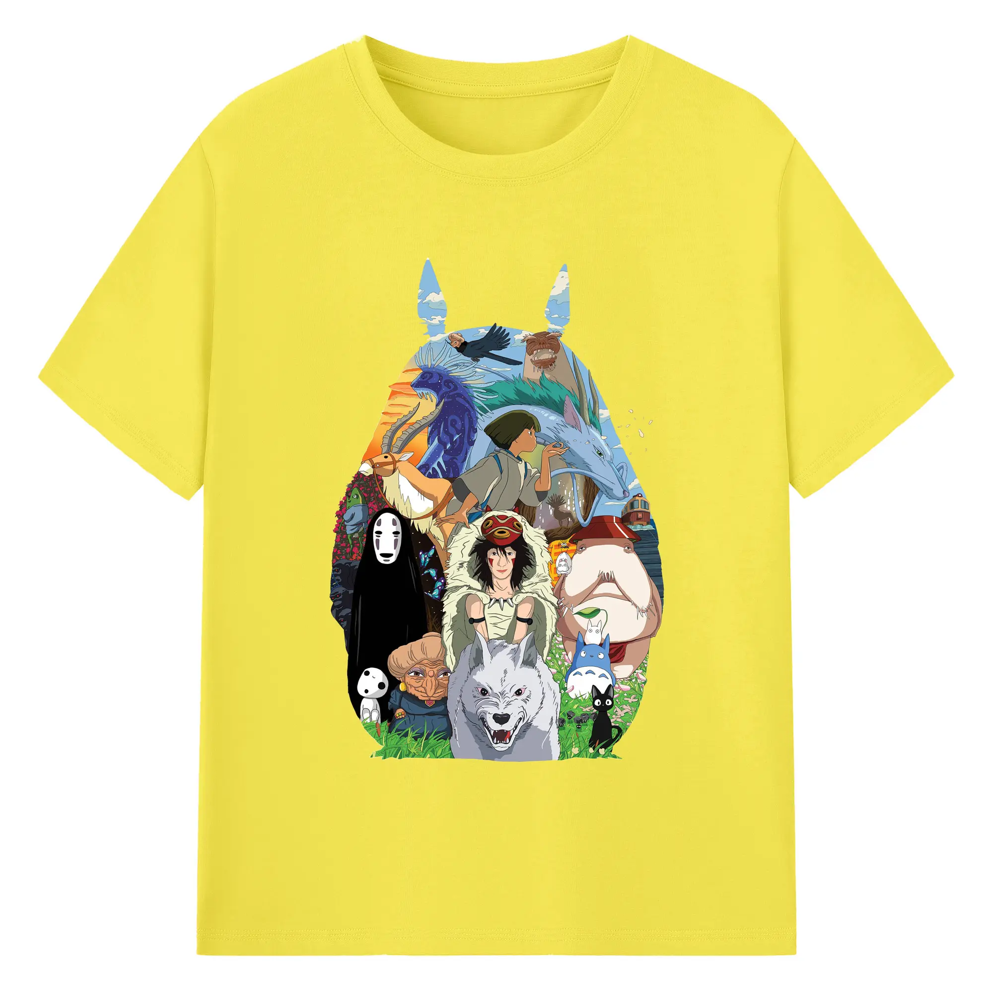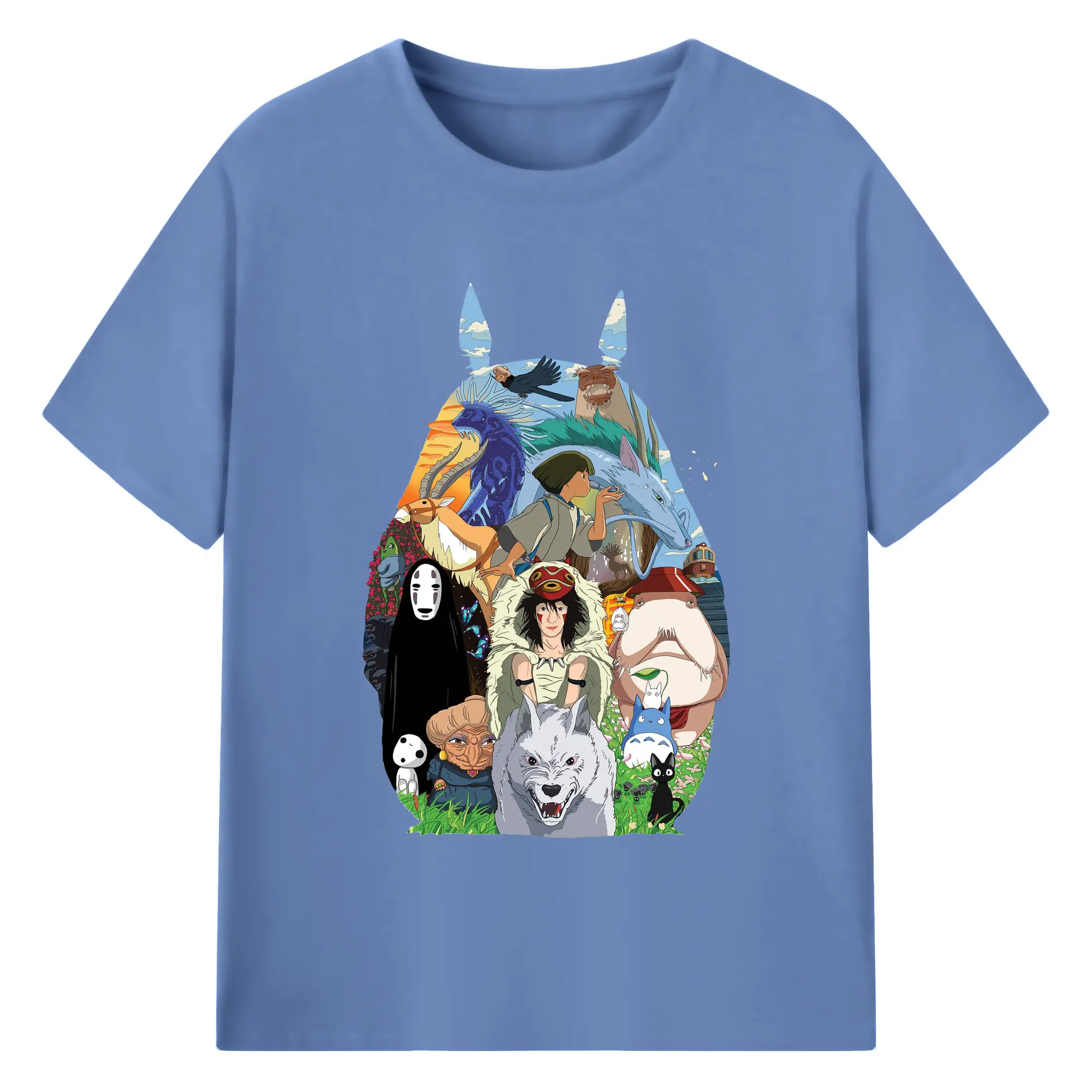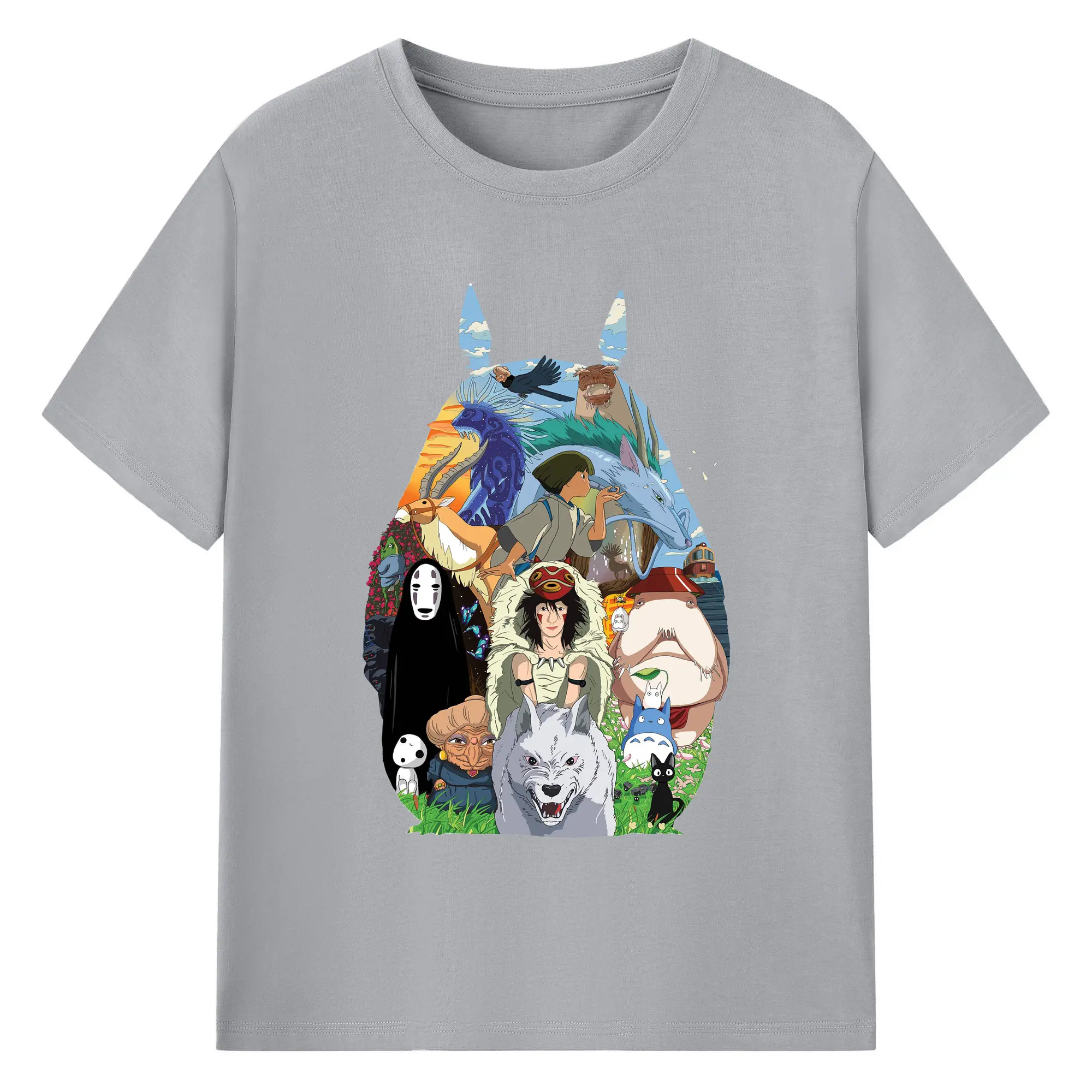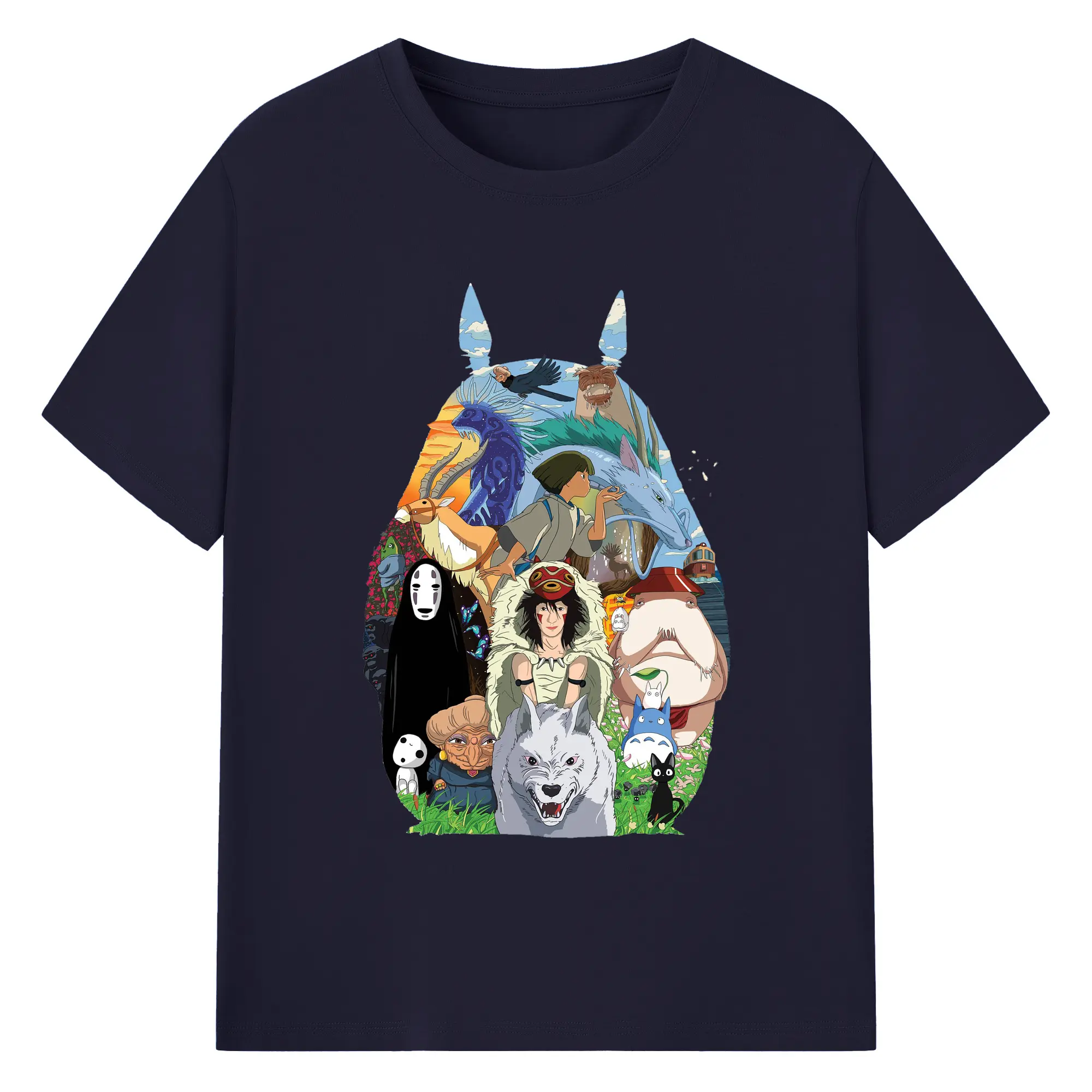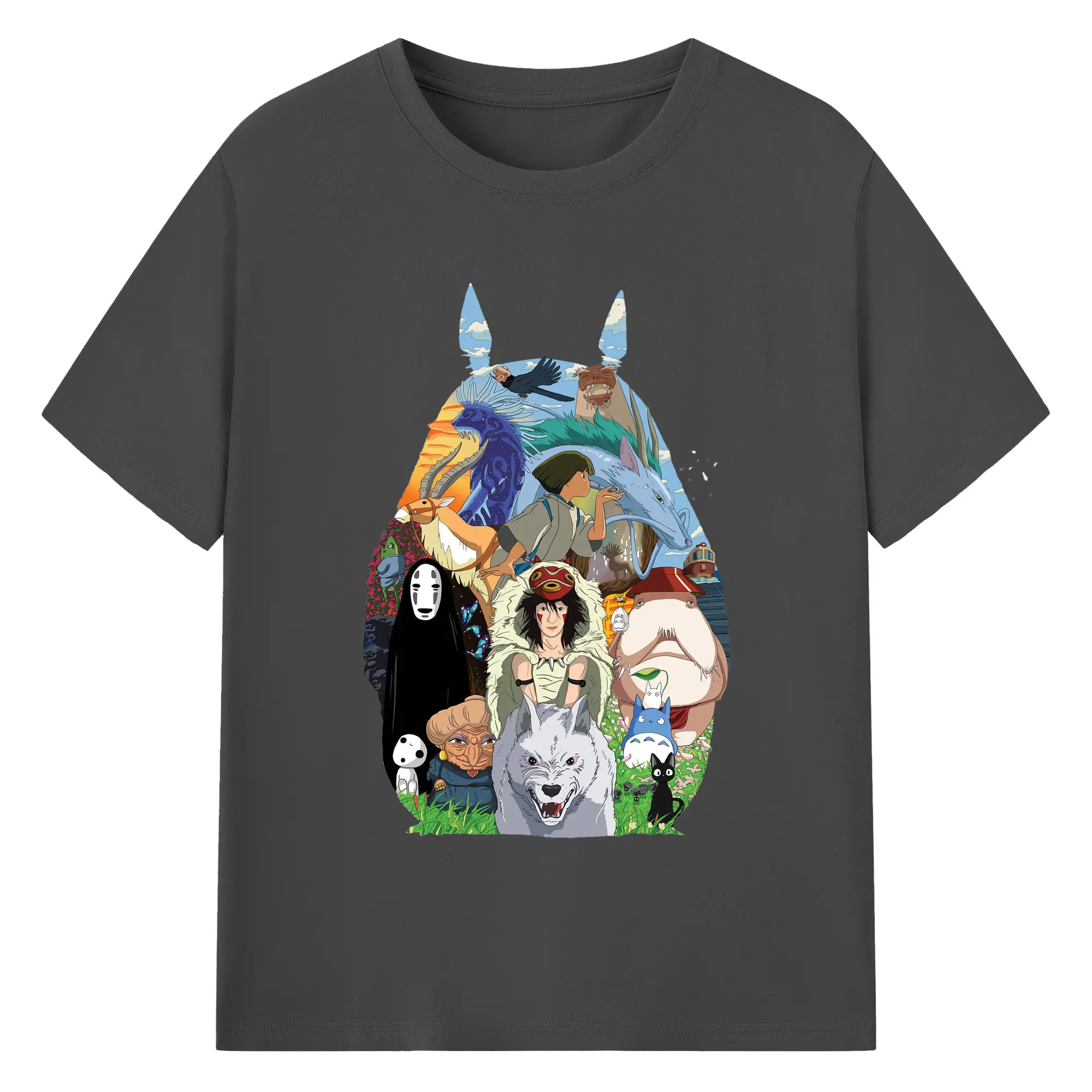 Studio Ghibli Classic Characters Totoro Silhouette DIY - 180g Cotton T-Shirt With Front Heat Transfer Print – Soft, Lightweight, Fitted Design – Comfortable Casual Wear For Sports & Everyday Use