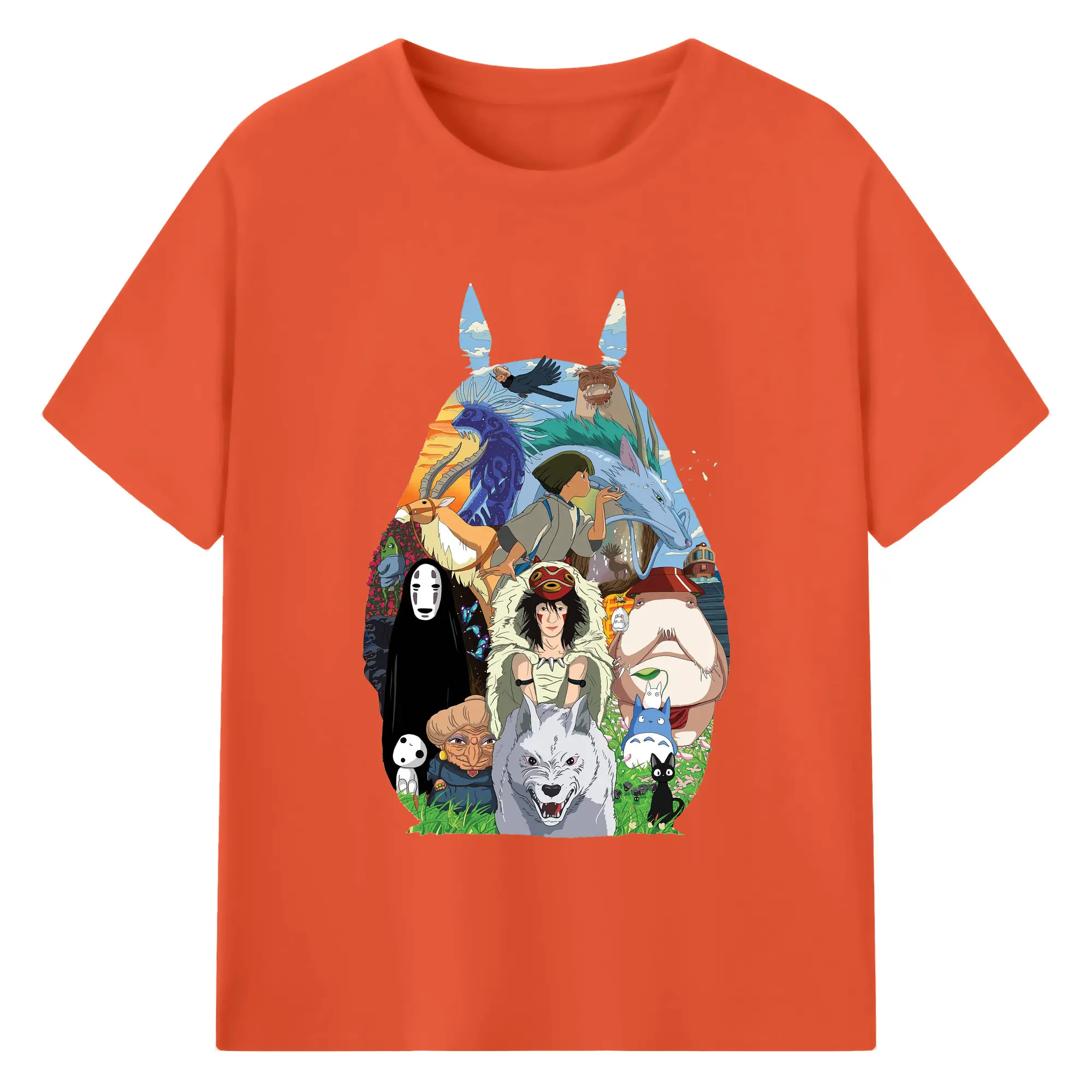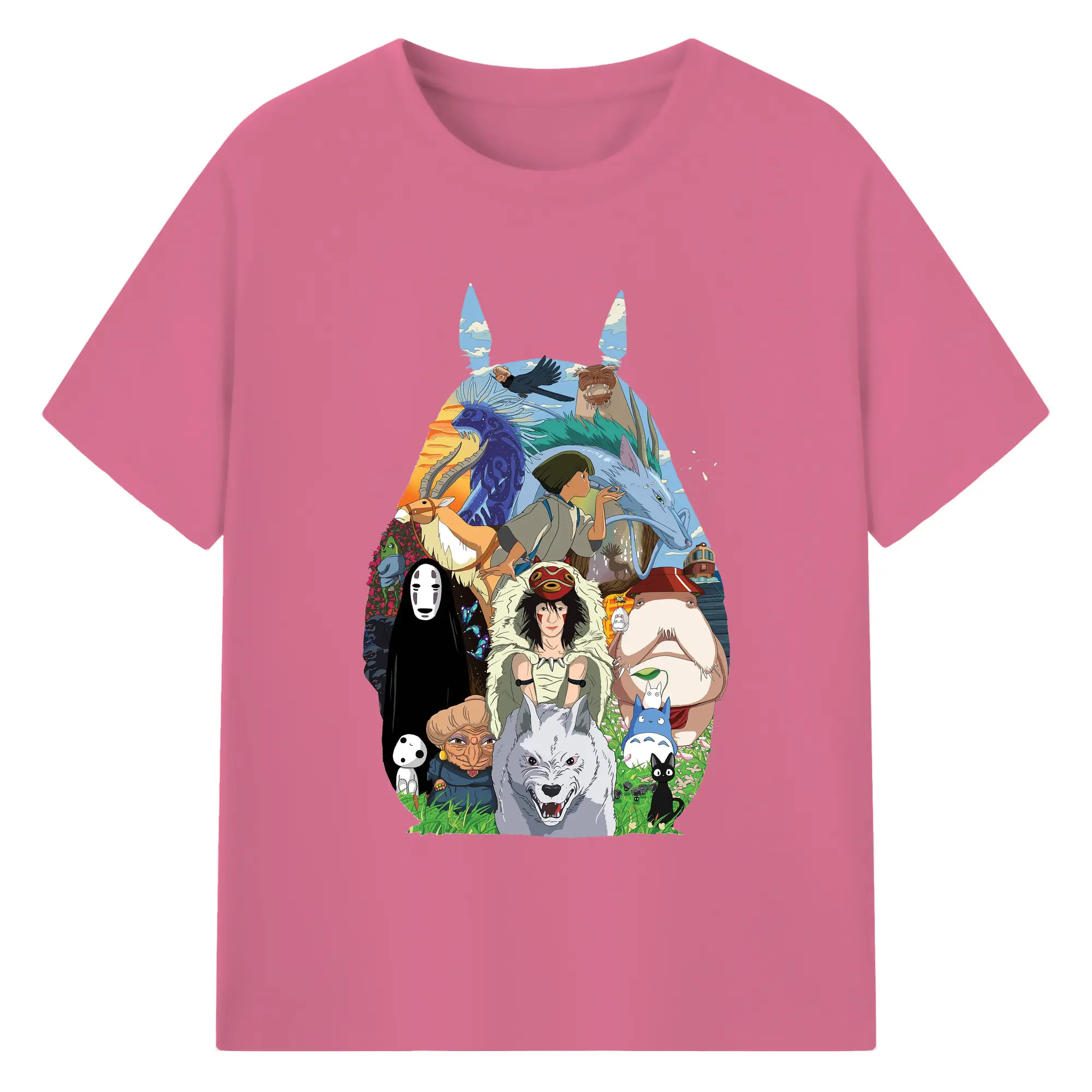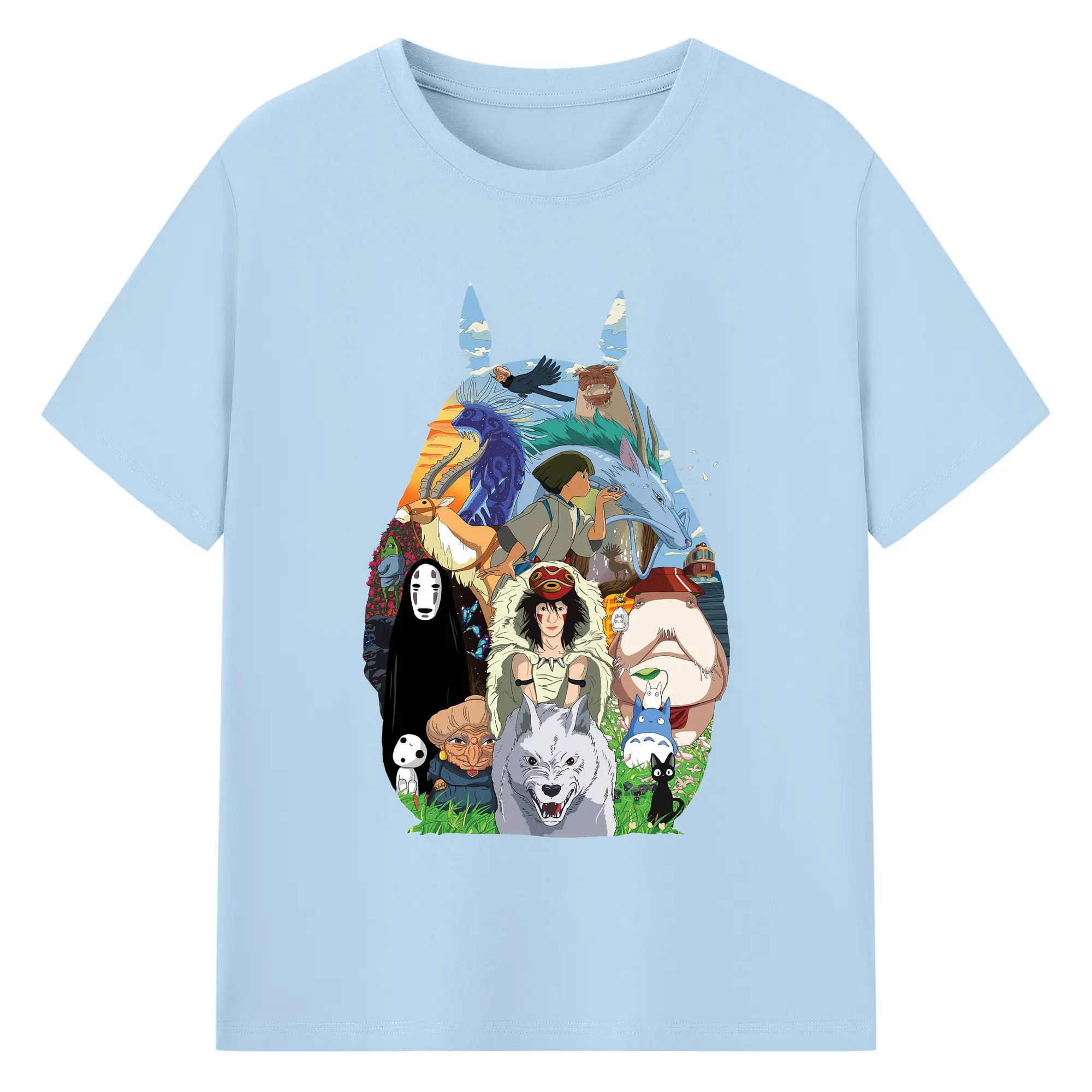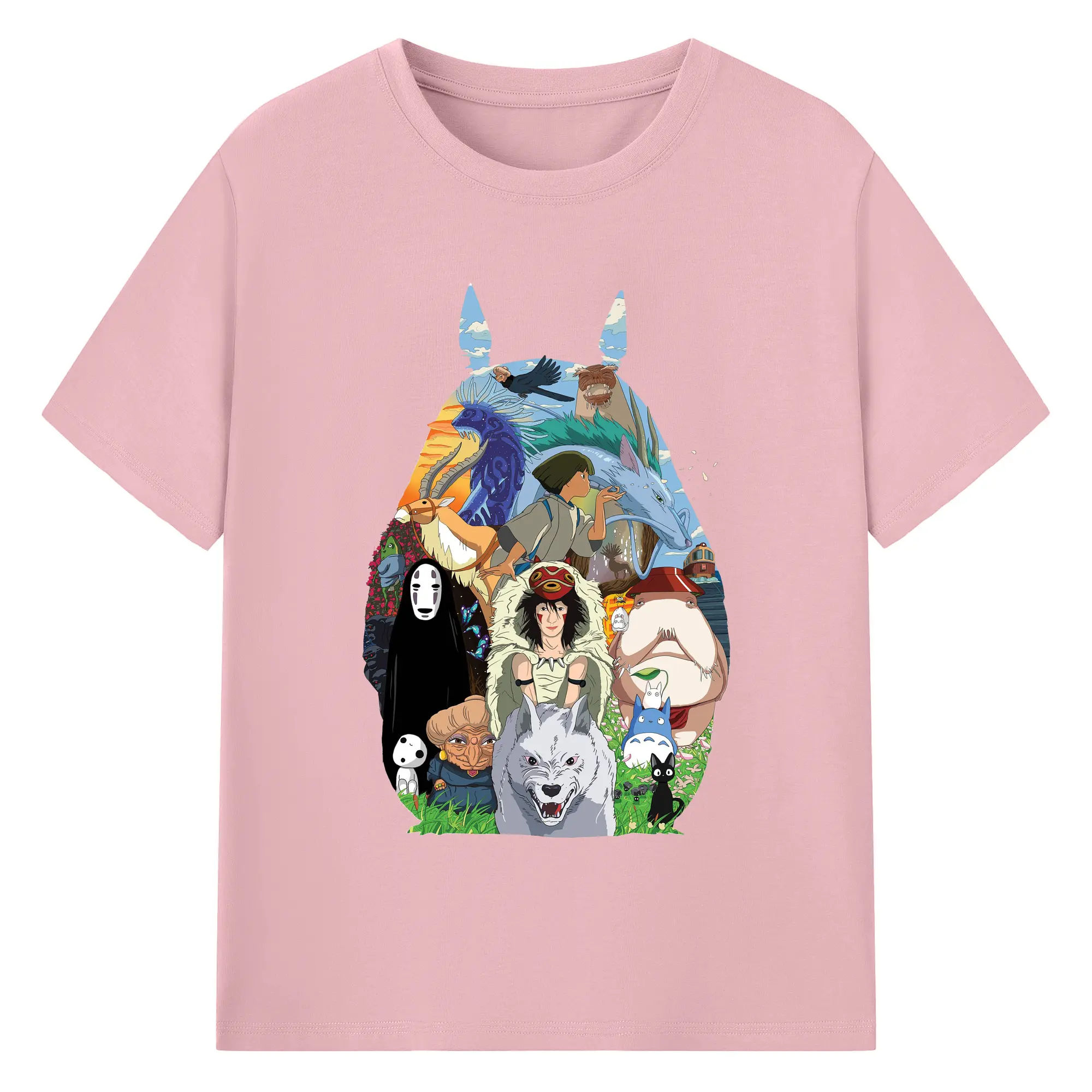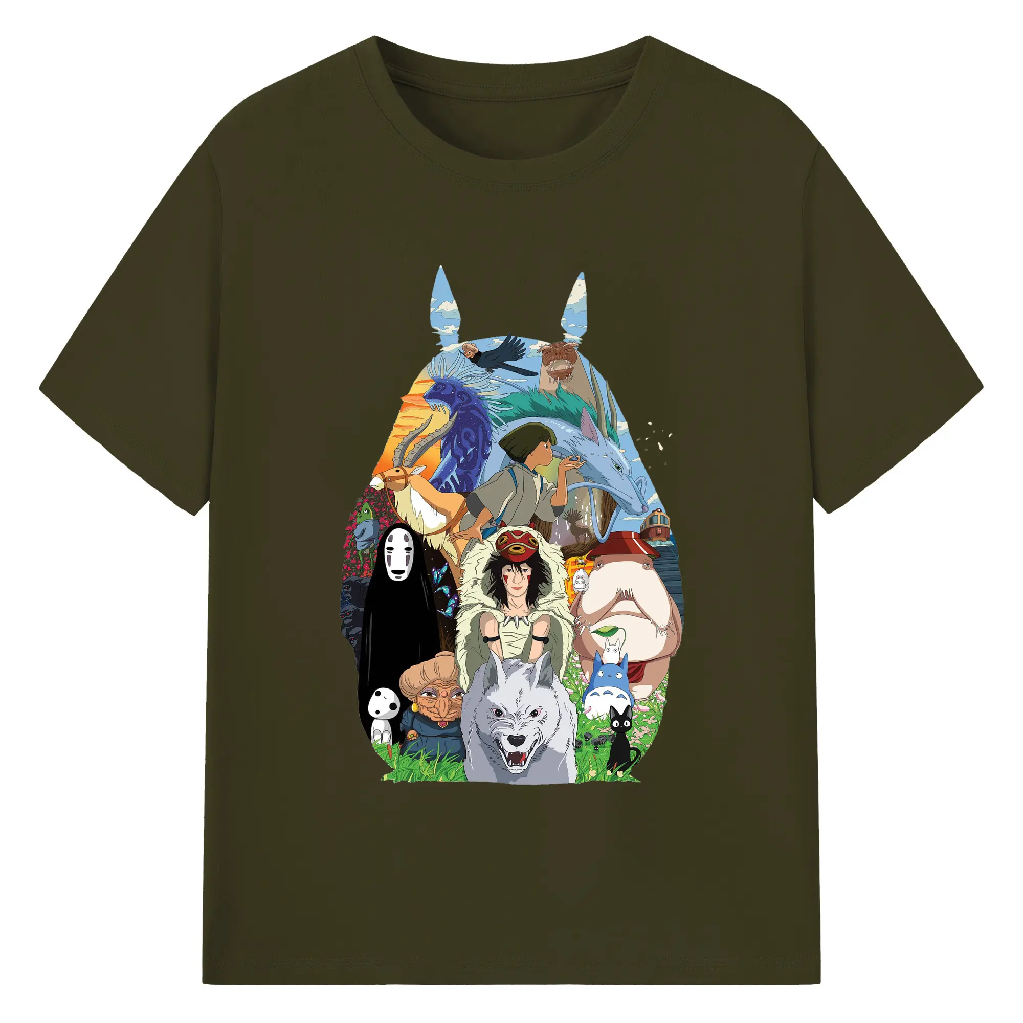 Studio Ghibli Classic Characters Totoro Silhouette DIY - 180g Cotton T-Shirt With Front Heat Transfer Print – Soft, Lightweight, Fitted Design – Comfortable Casual Wear For Sports & Everyday Use