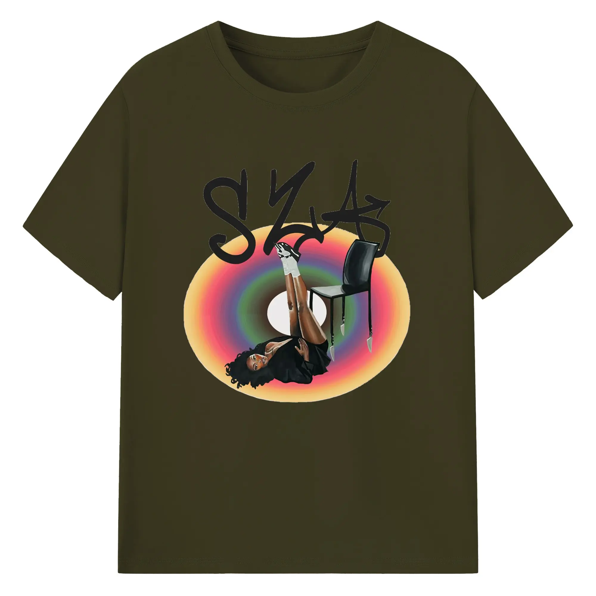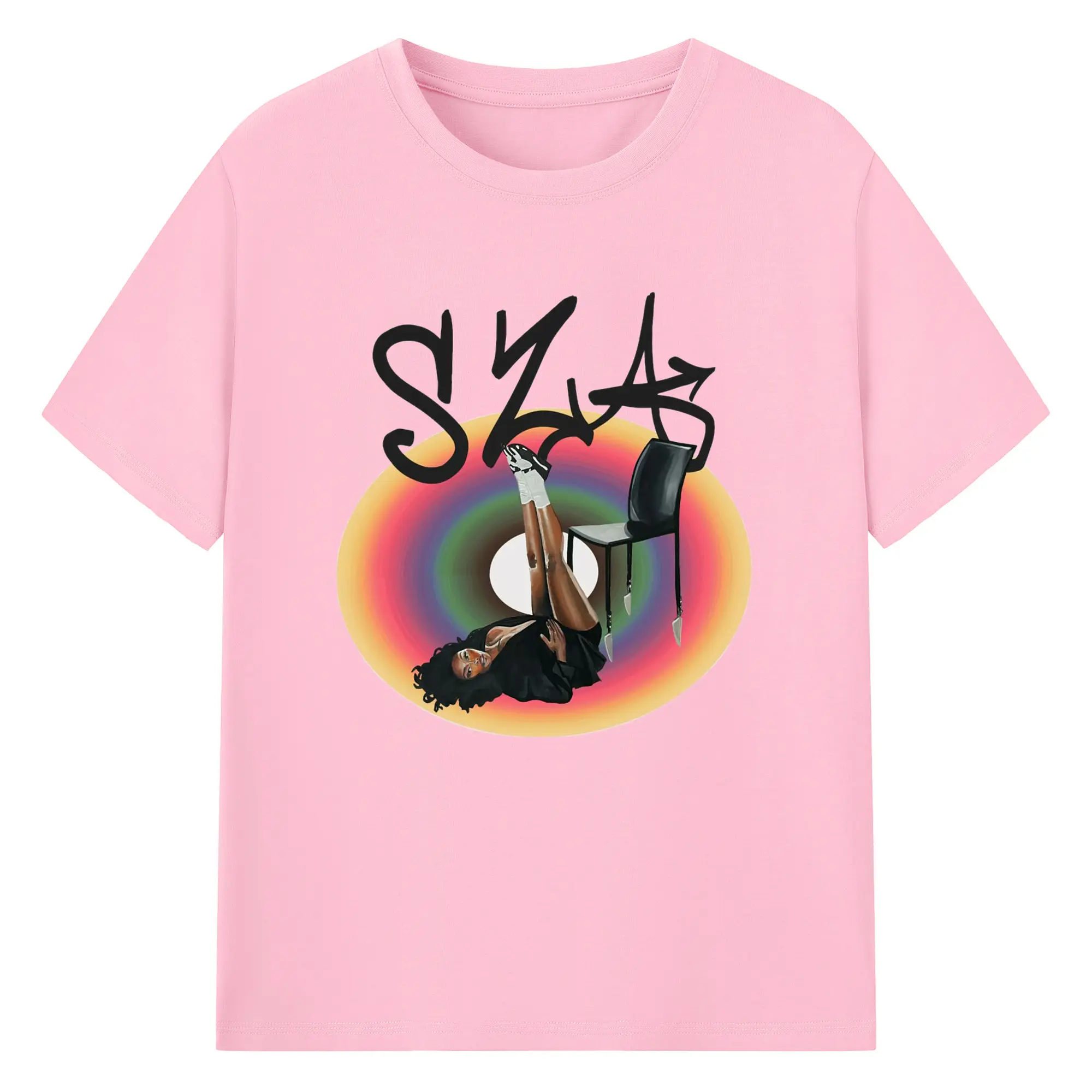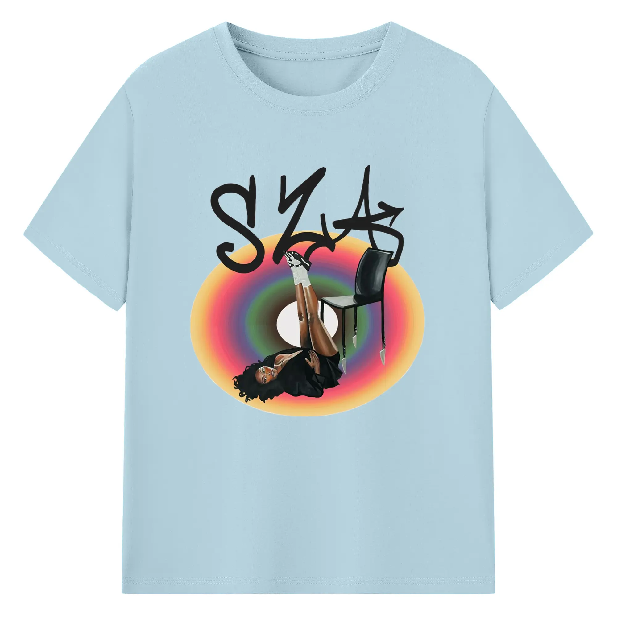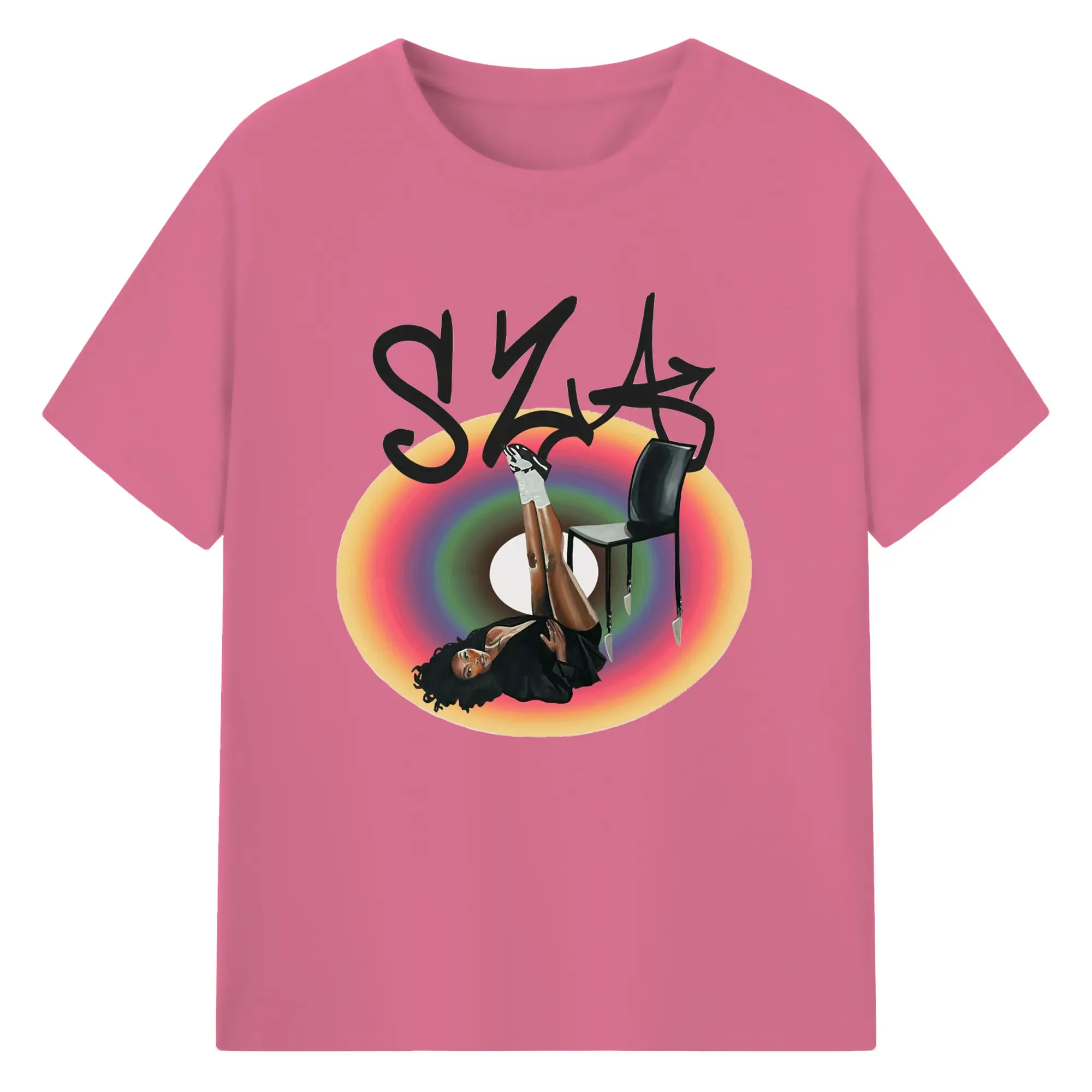 “SZA Rainbow Gradient” Music Art DIY Shirt - 180g Cotton T-Shirt With Front Heat Transfer Print – Soft, Lightweight, Fitted Design – Comfortable Casual Wear For Sports & Everyday Use