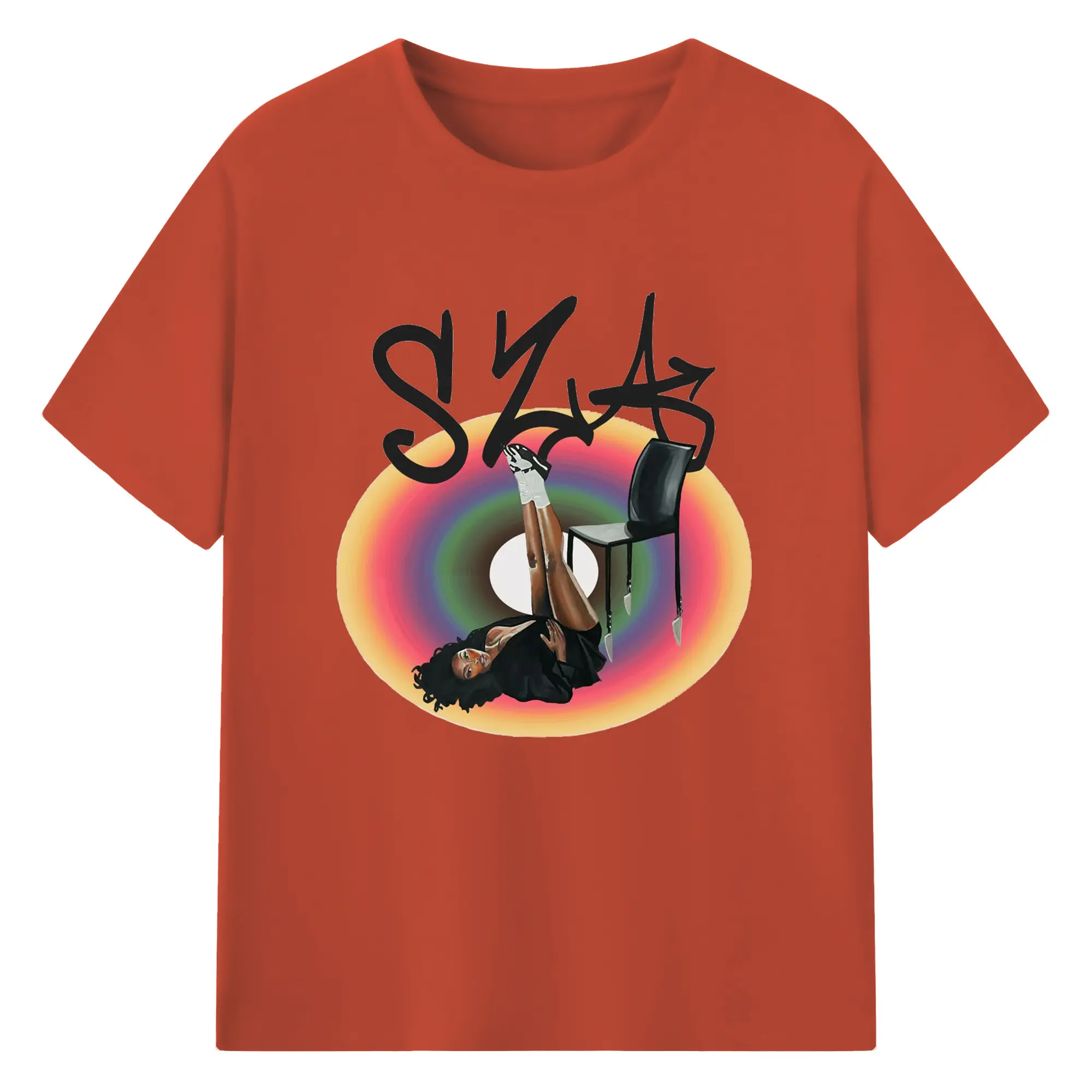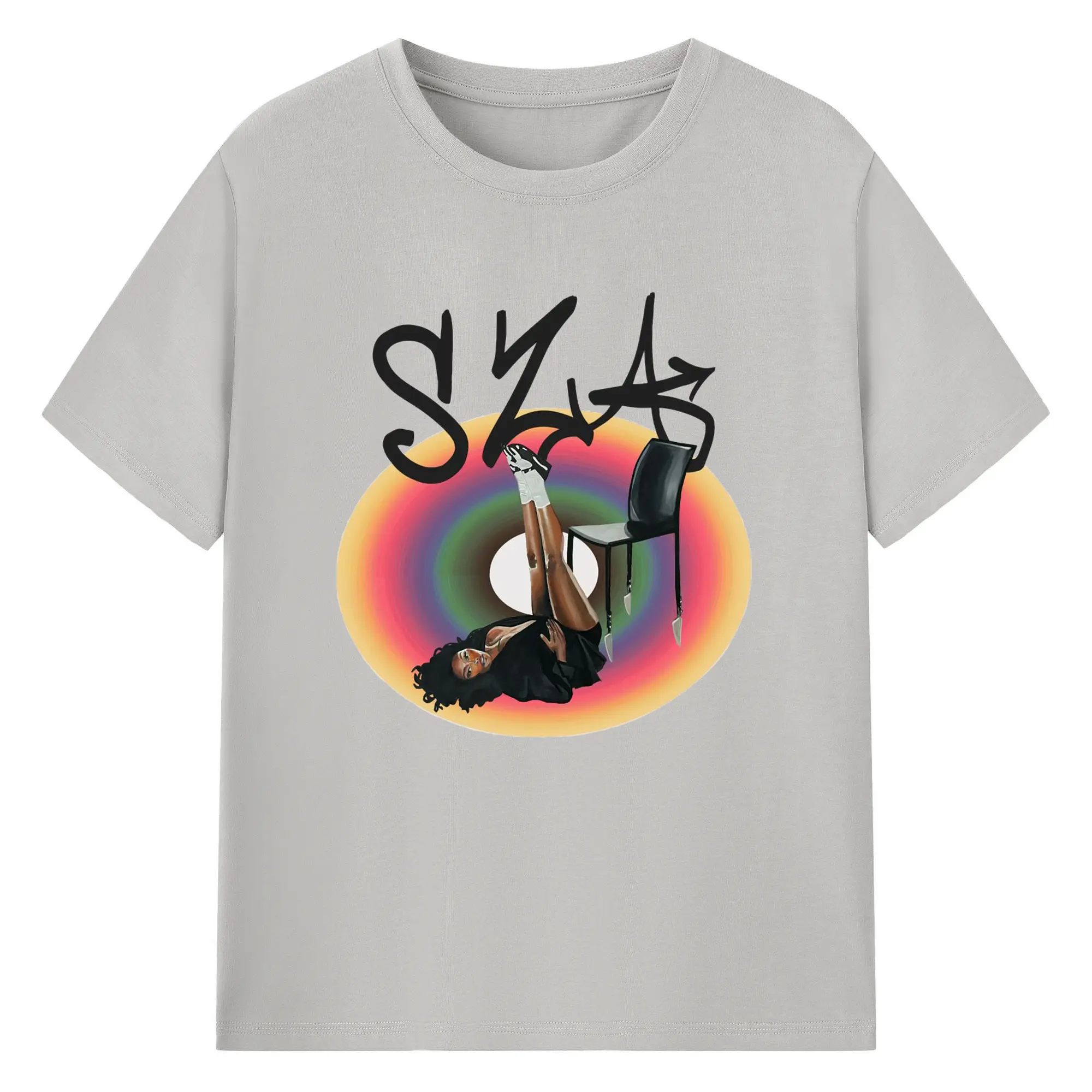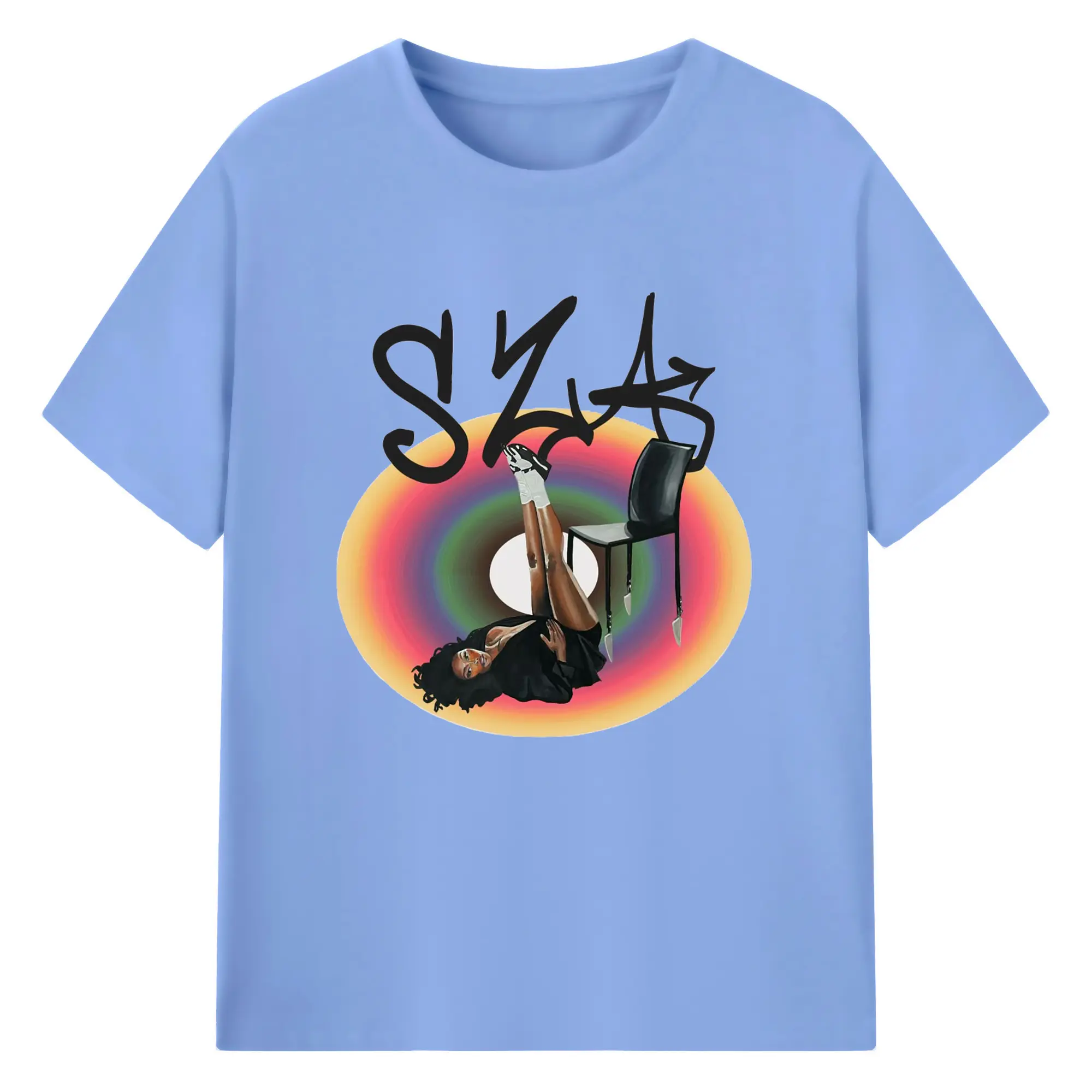 “SZA Rainbow Gradient” Music Art DIY Shirt - 180g Cotton T-Shirt With Front Heat Transfer Print – Soft, Lightweight, Fitted Design – Comfortable Casual Wear For Sports & Everyday Use