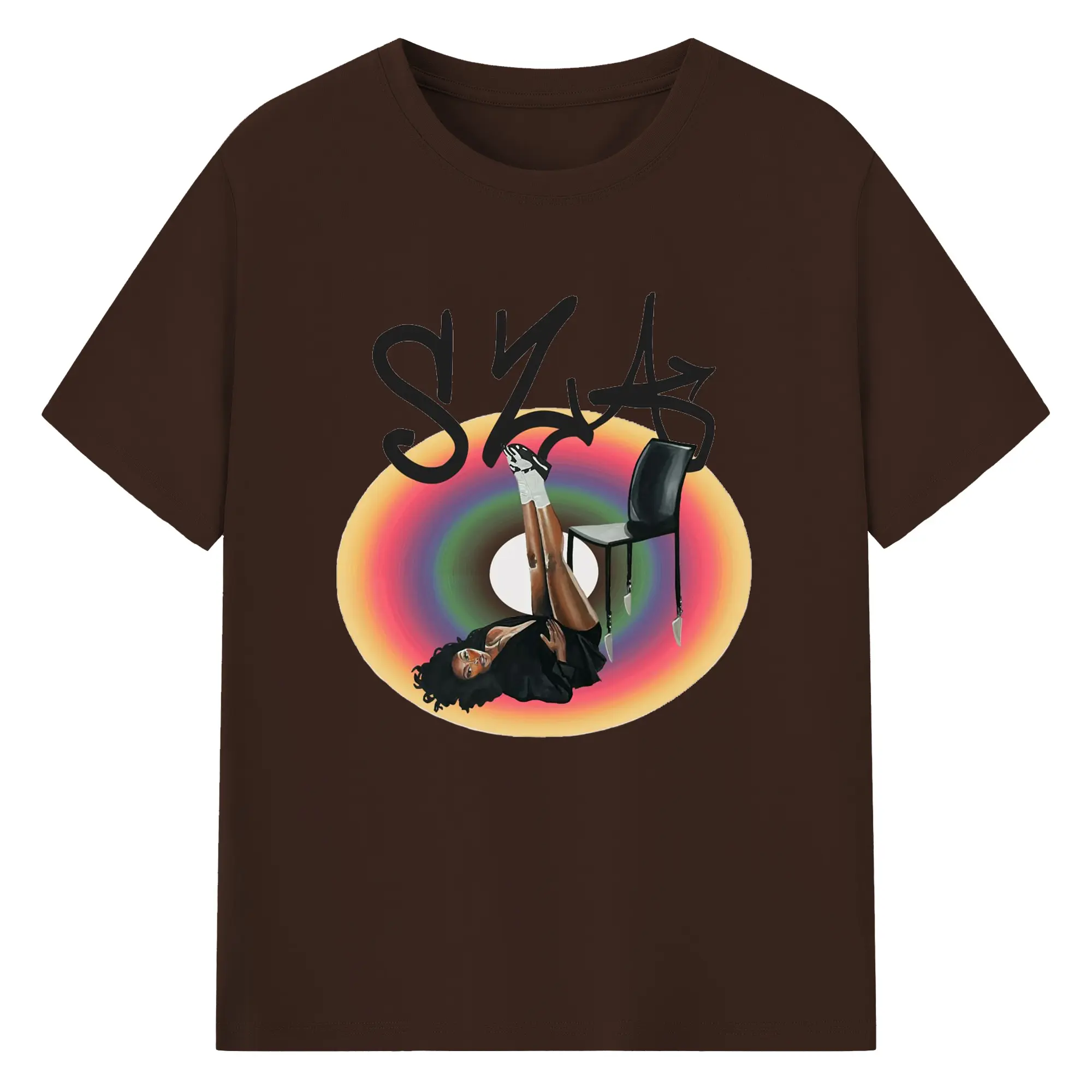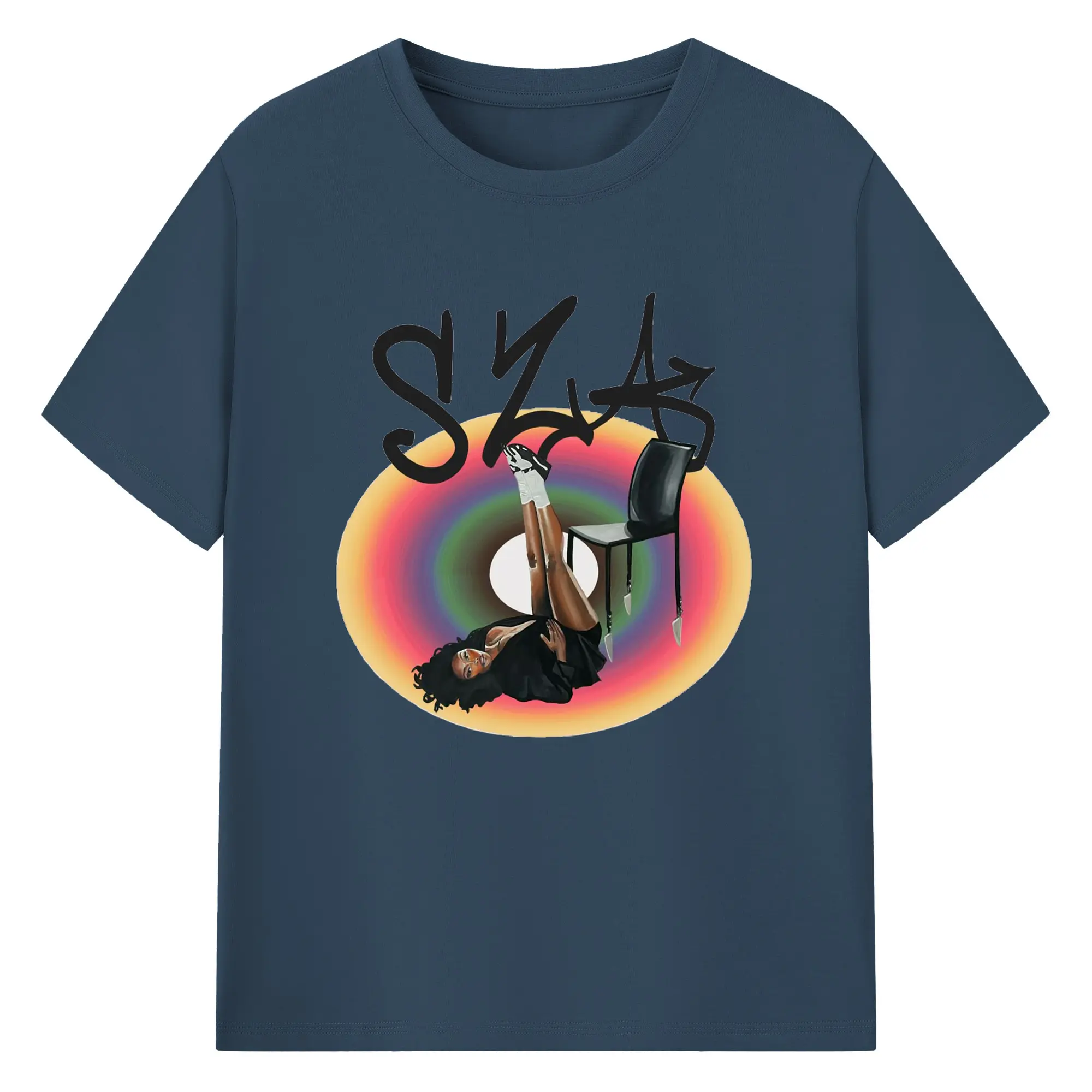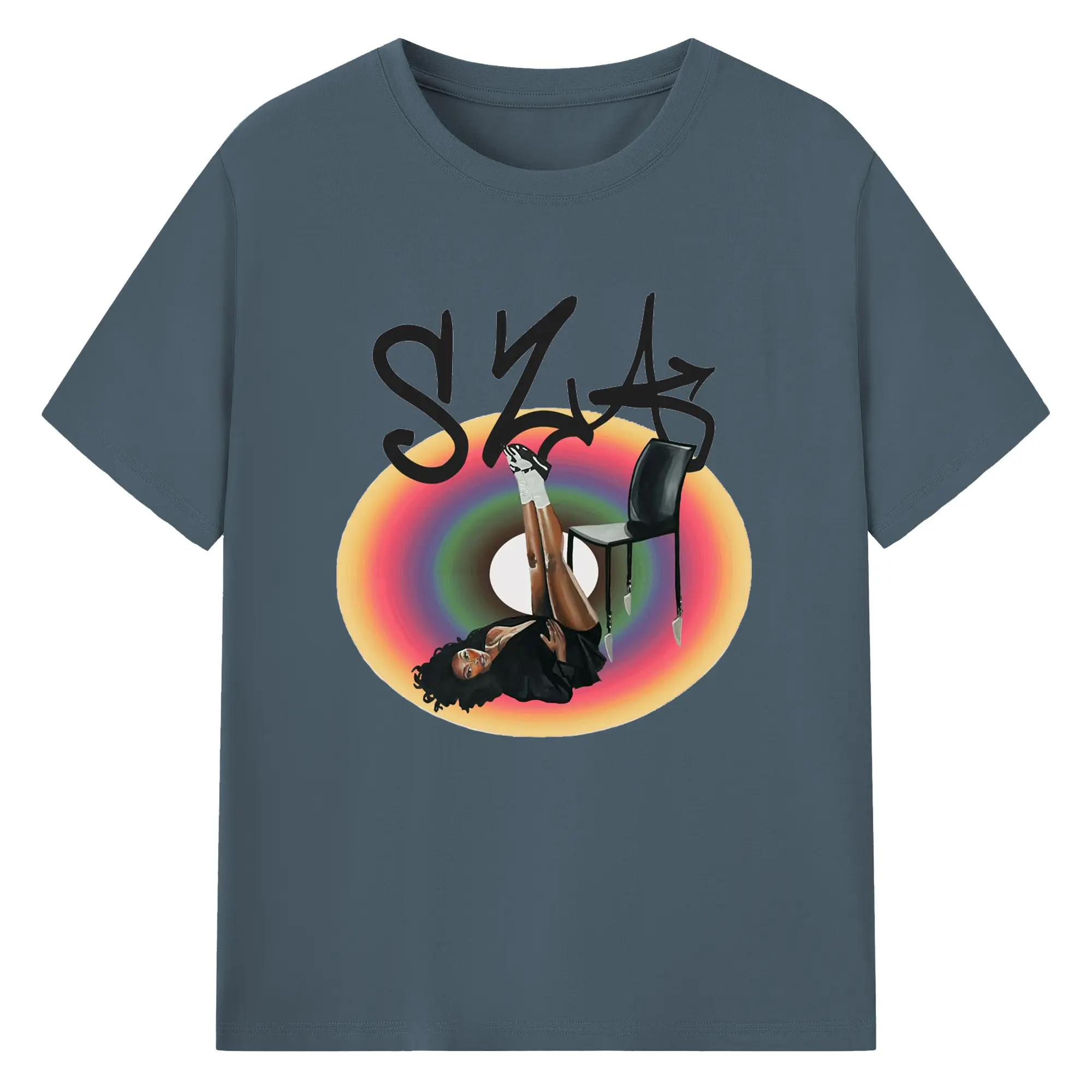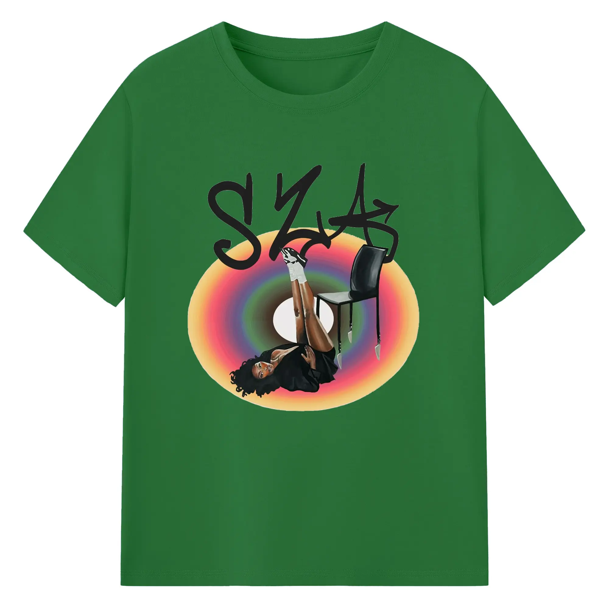 “SZA Rainbow Gradient” Music Art DIY Shirt - 180g Cotton T-Shirt With Front Heat Transfer Print – Soft, Lightweight, Fitted Design – Comfortable Casual Wear For Sports & Everyday Use