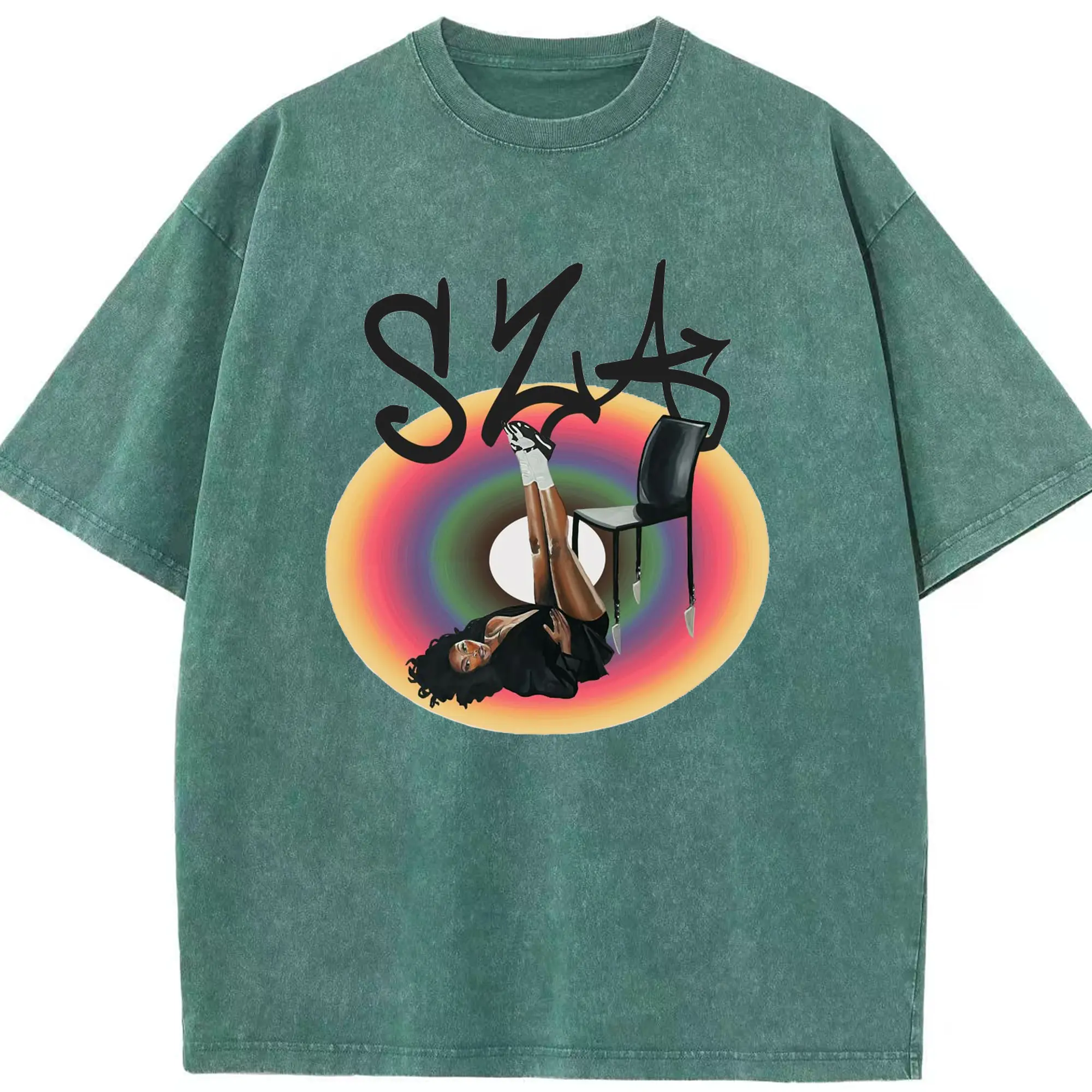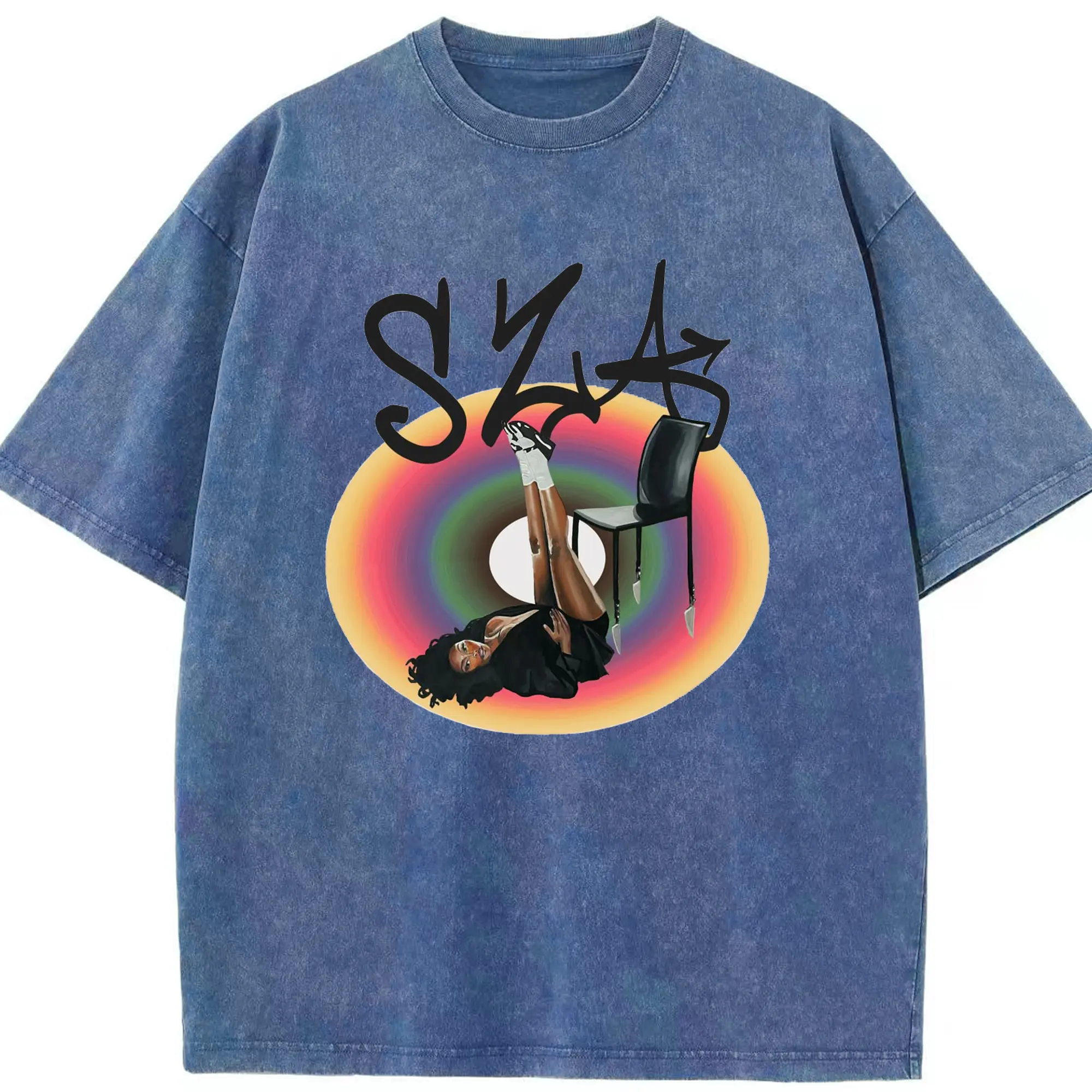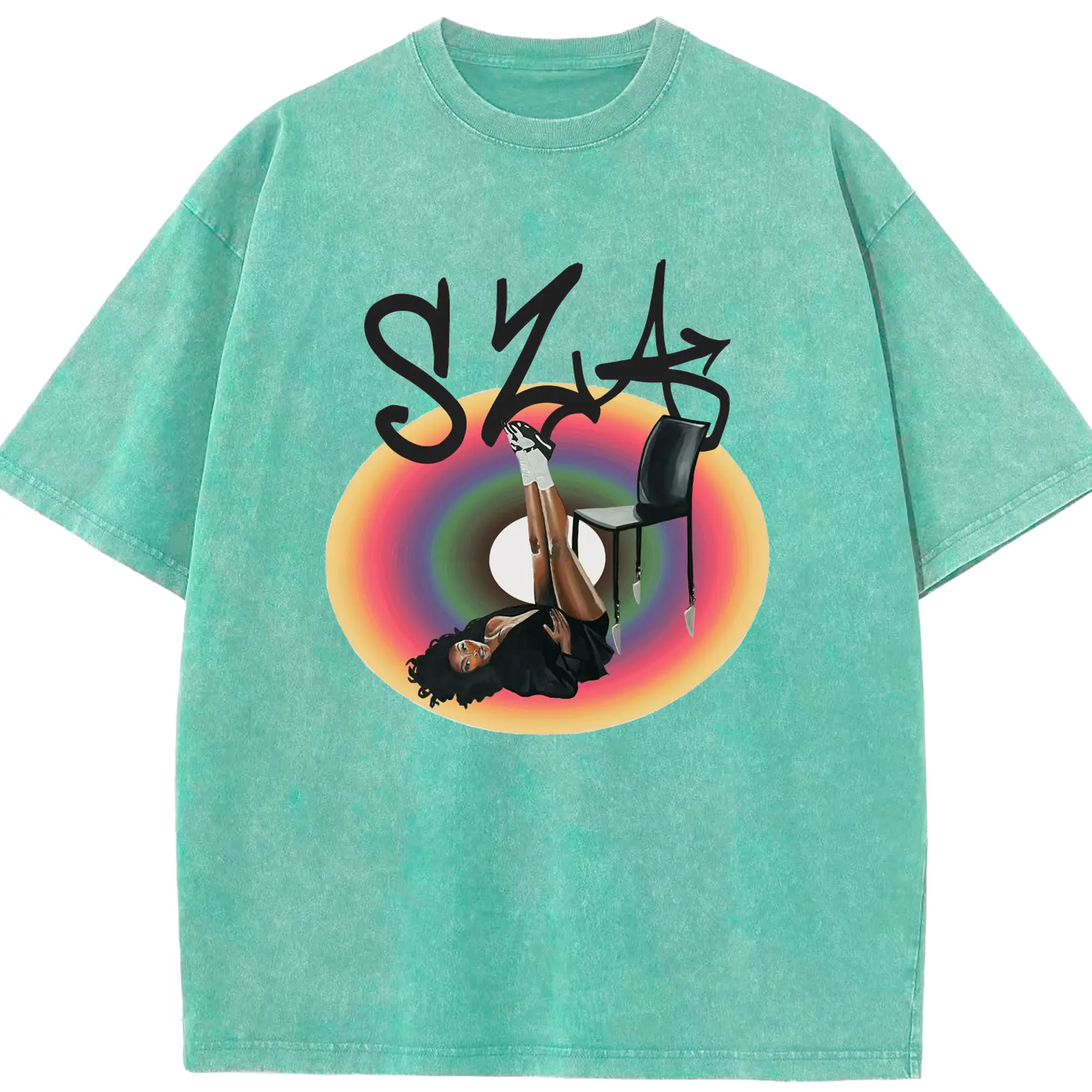 “SZA Rainbow Gradient” Music Art DIY Shirt - Washed Vintage Look 230g Cotton Oversized T-Shirt With Front Heat Transfer Print – Soft, Lightweight, Stylish Fit – Comfortable Casual Wear For Sports & Everyday Use