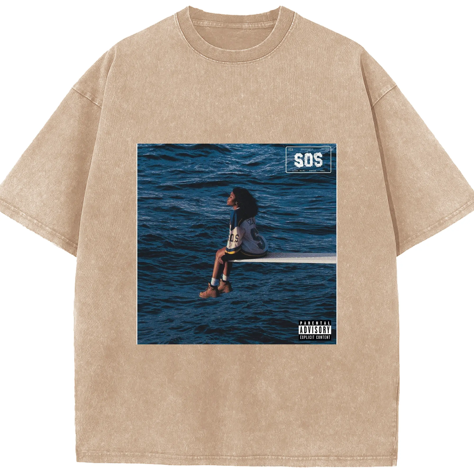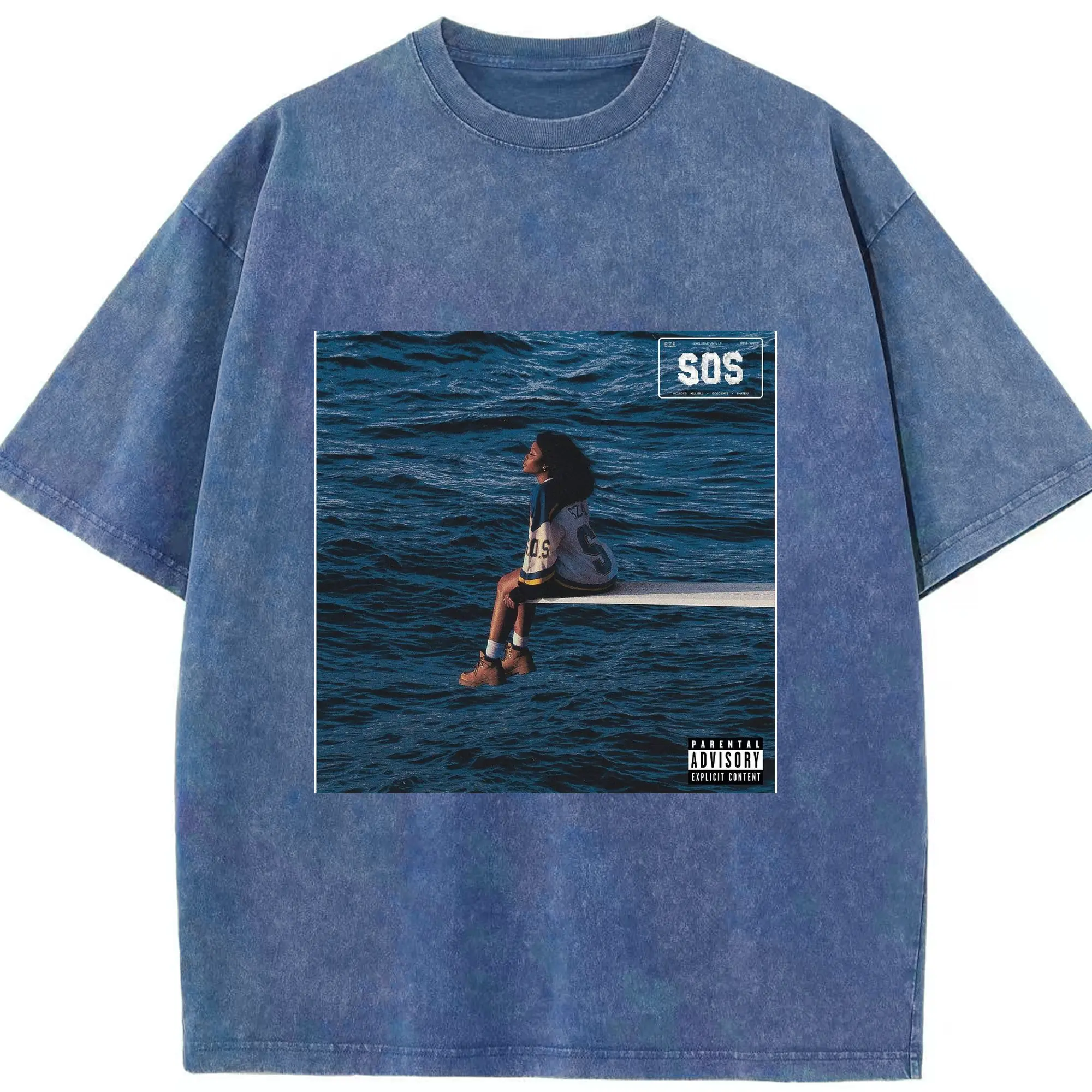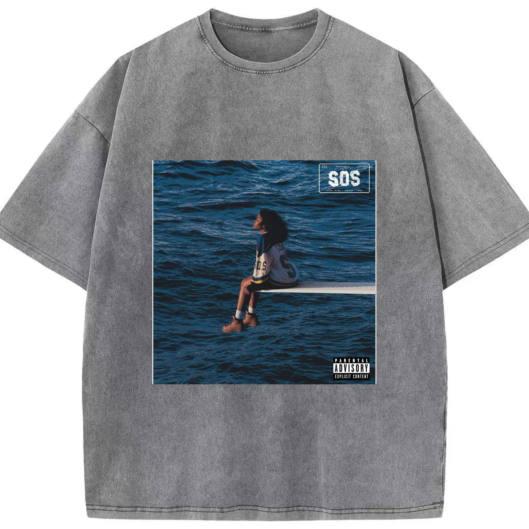 SZA SOS Album Cover DIY Shirt - Washed Vintage Look 230g Cotton Oversized T-Shirt With Front Heat Transfer Print – Soft, Lightweight, Stylish Fit – Comfortable Casual Wear For Sports & Everyday Use