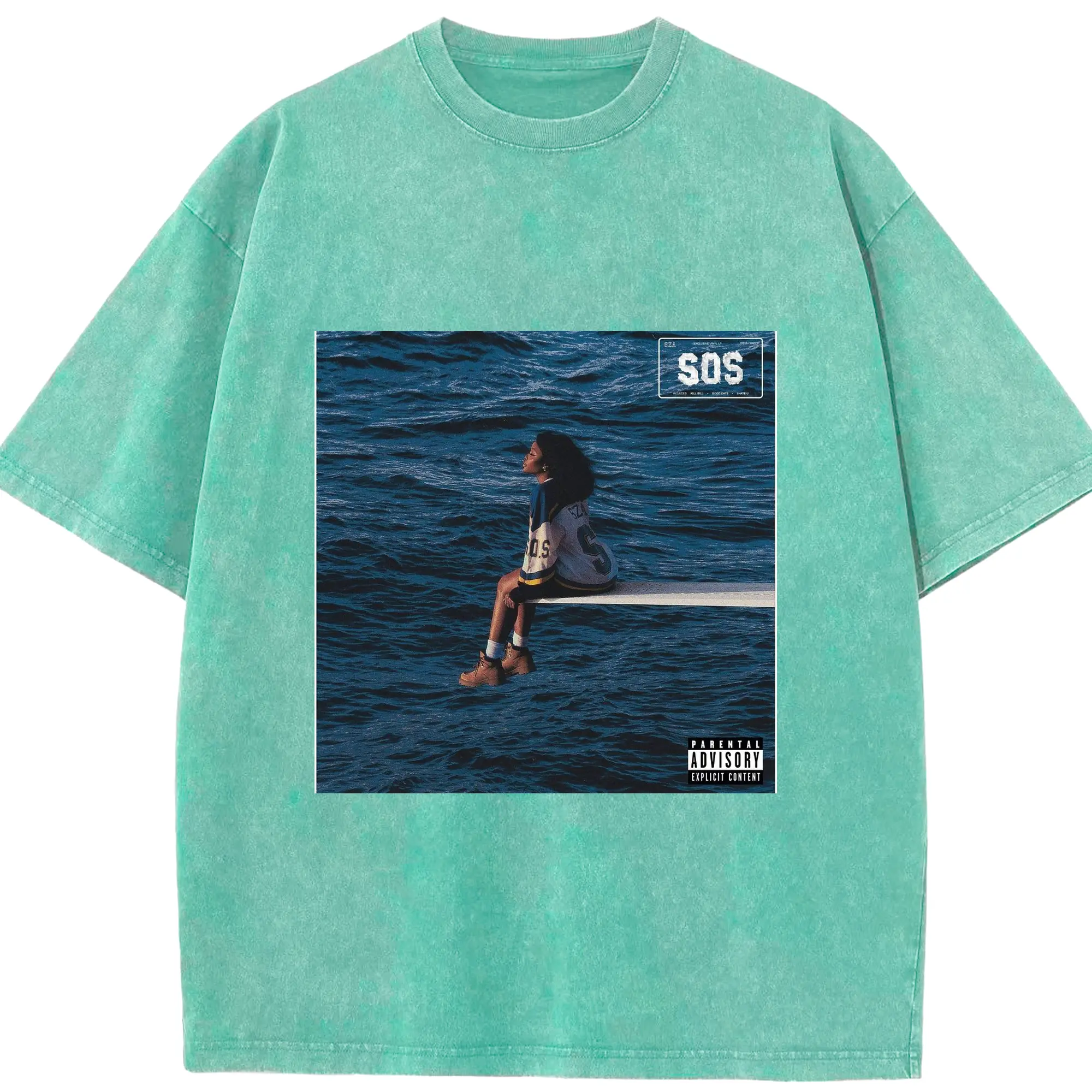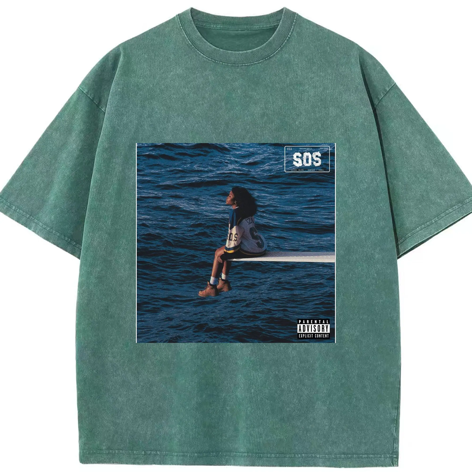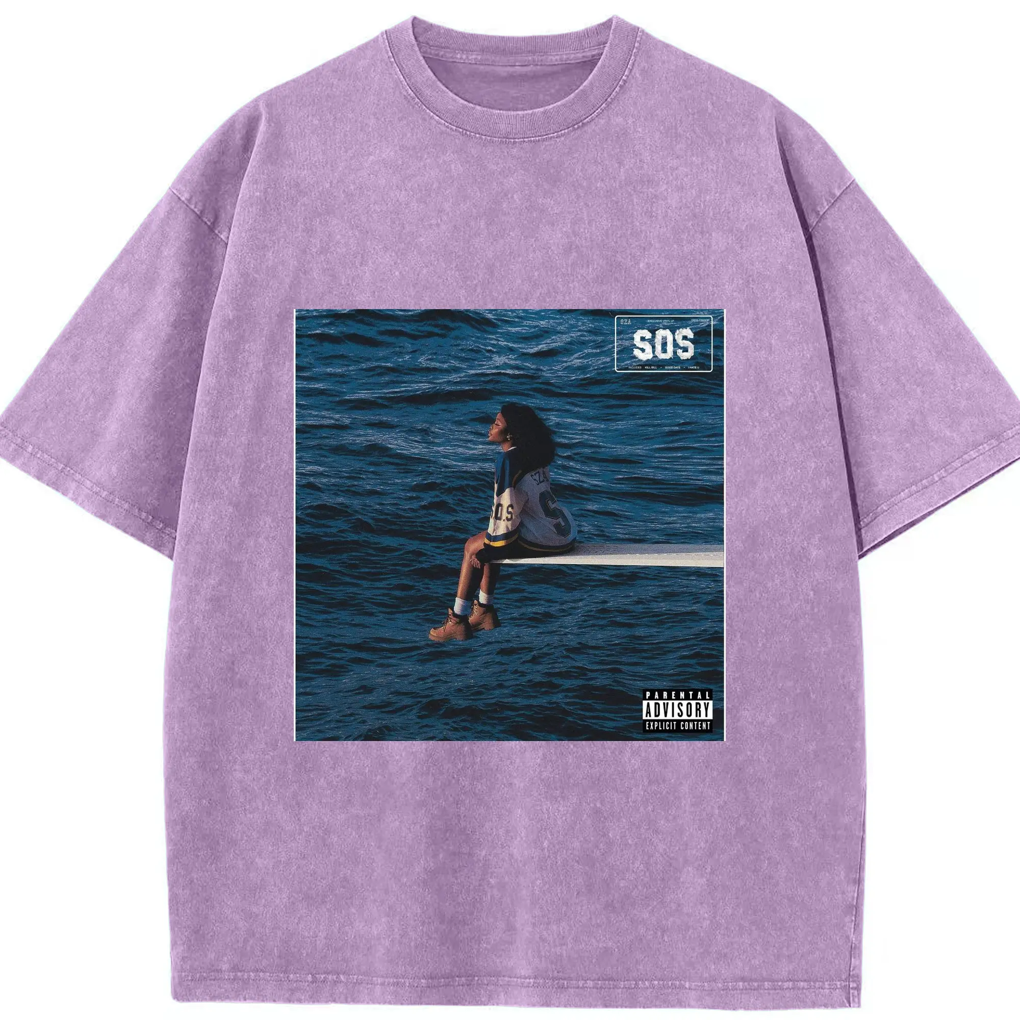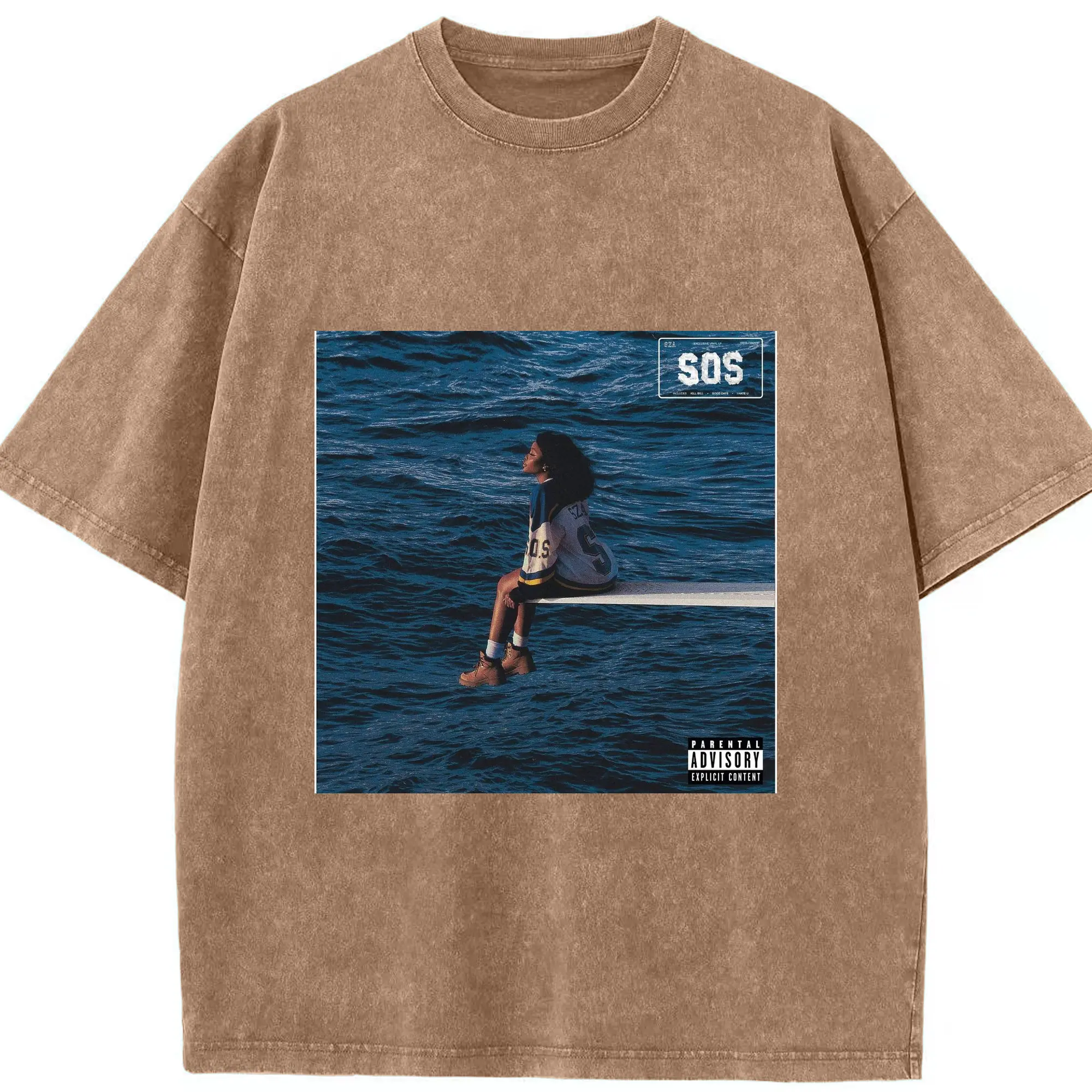 SZA SOS Album Cover DIY Shirt - Washed Vintage Look 230g Cotton Oversized T-Shirt With Front Heat Transfer Print – Soft, Lightweight, Stylish Fit – Comfortable Casual Wear For Sports & Everyday Use