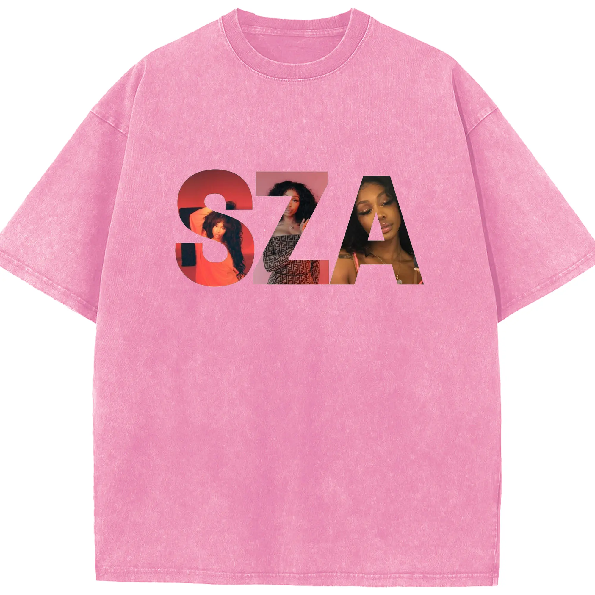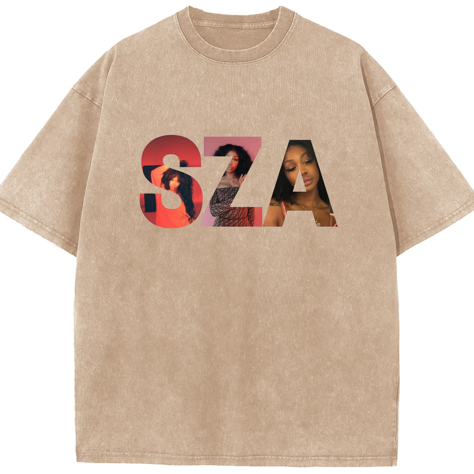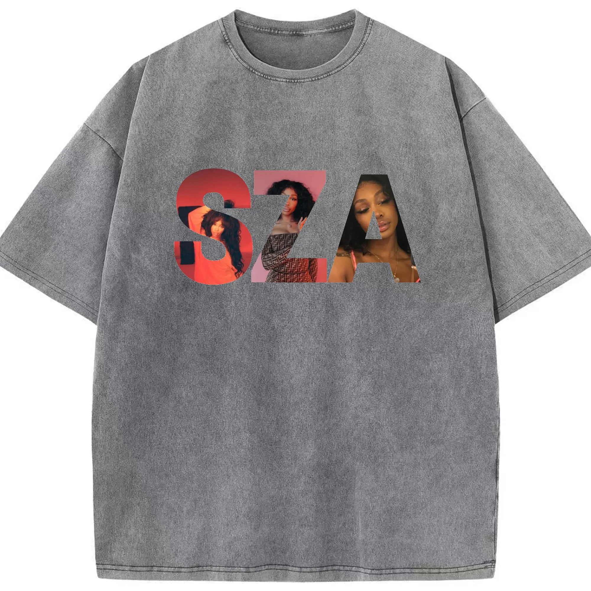 SZA Trendy Art Letter DIY - Washed Vintage Look 230g Cotton Oversized T-Shirt With Front Heat Transfer Print – Soft, Lightweight, Stylish Fit – Comfortable Casual Wear For Sports & Everyday Use