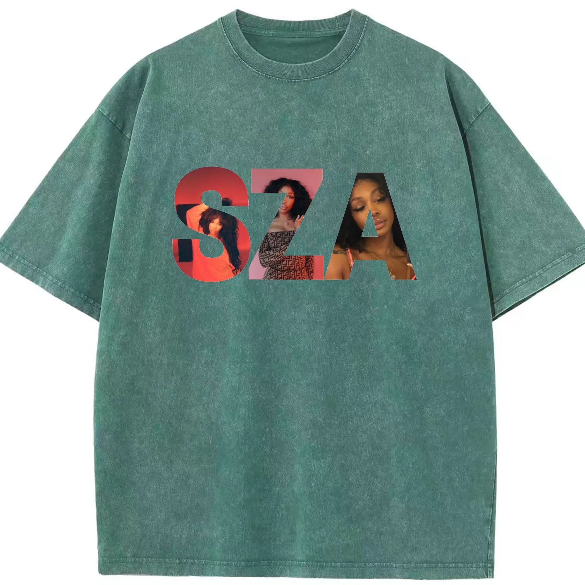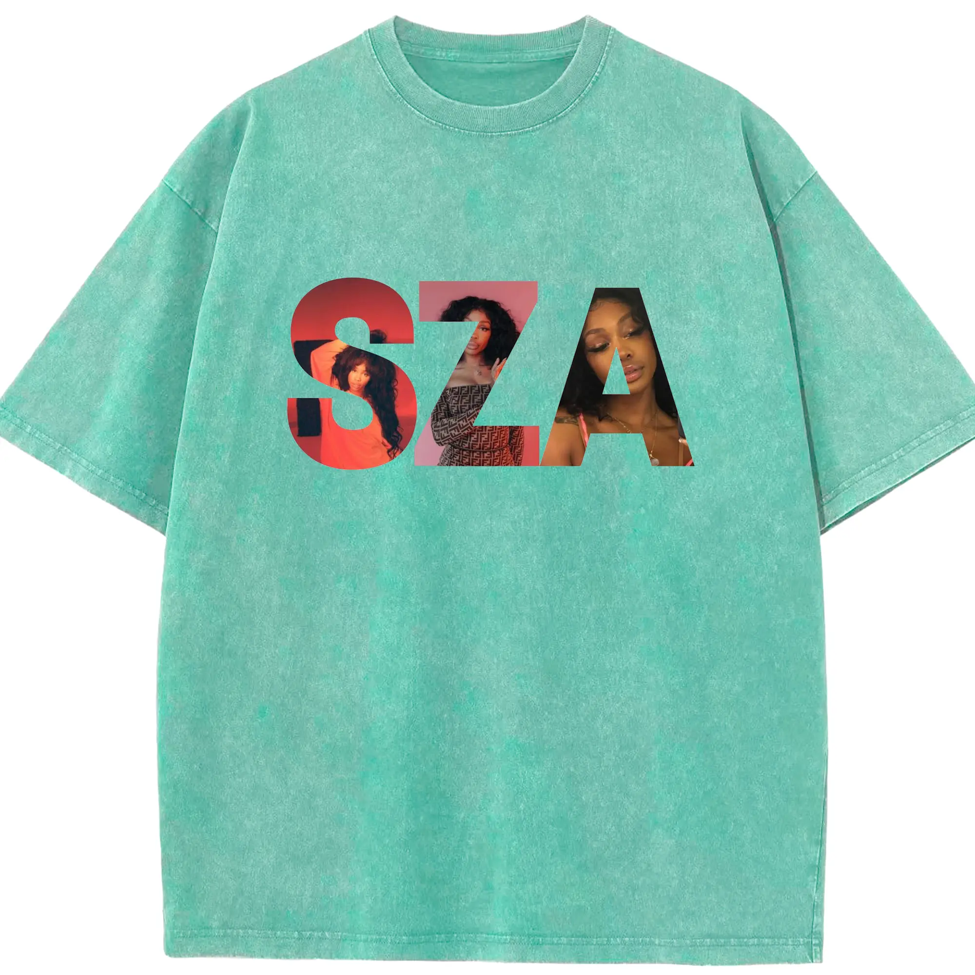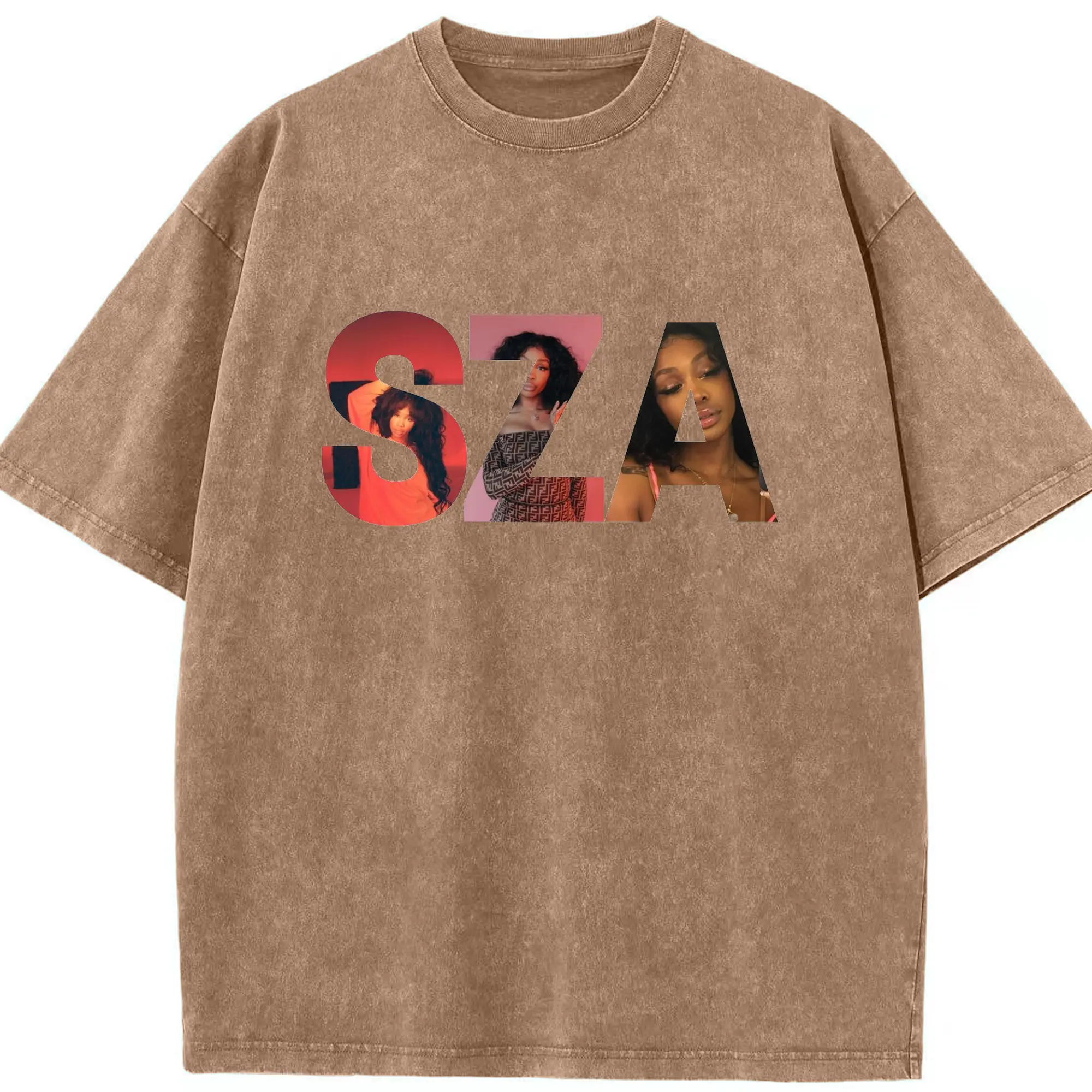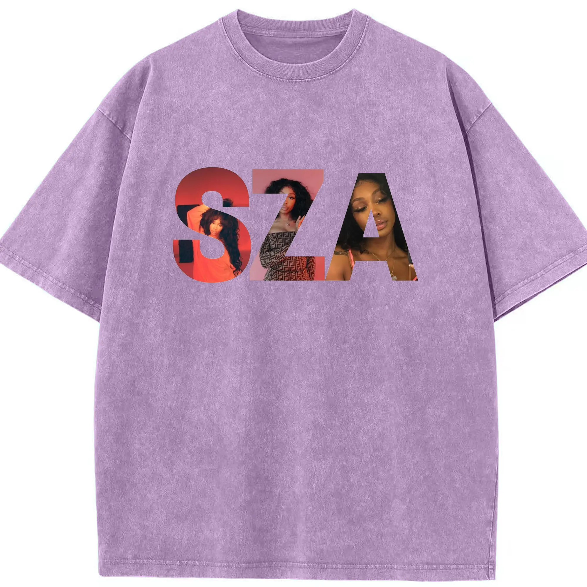 SZA Trendy Art Letter DIY - Washed Vintage Look 230g Cotton Oversized T-Shirt With Front Heat Transfer Print – Soft, Lightweight, Stylish Fit – Comfortable Casual Wear For Sports & Everyday Use