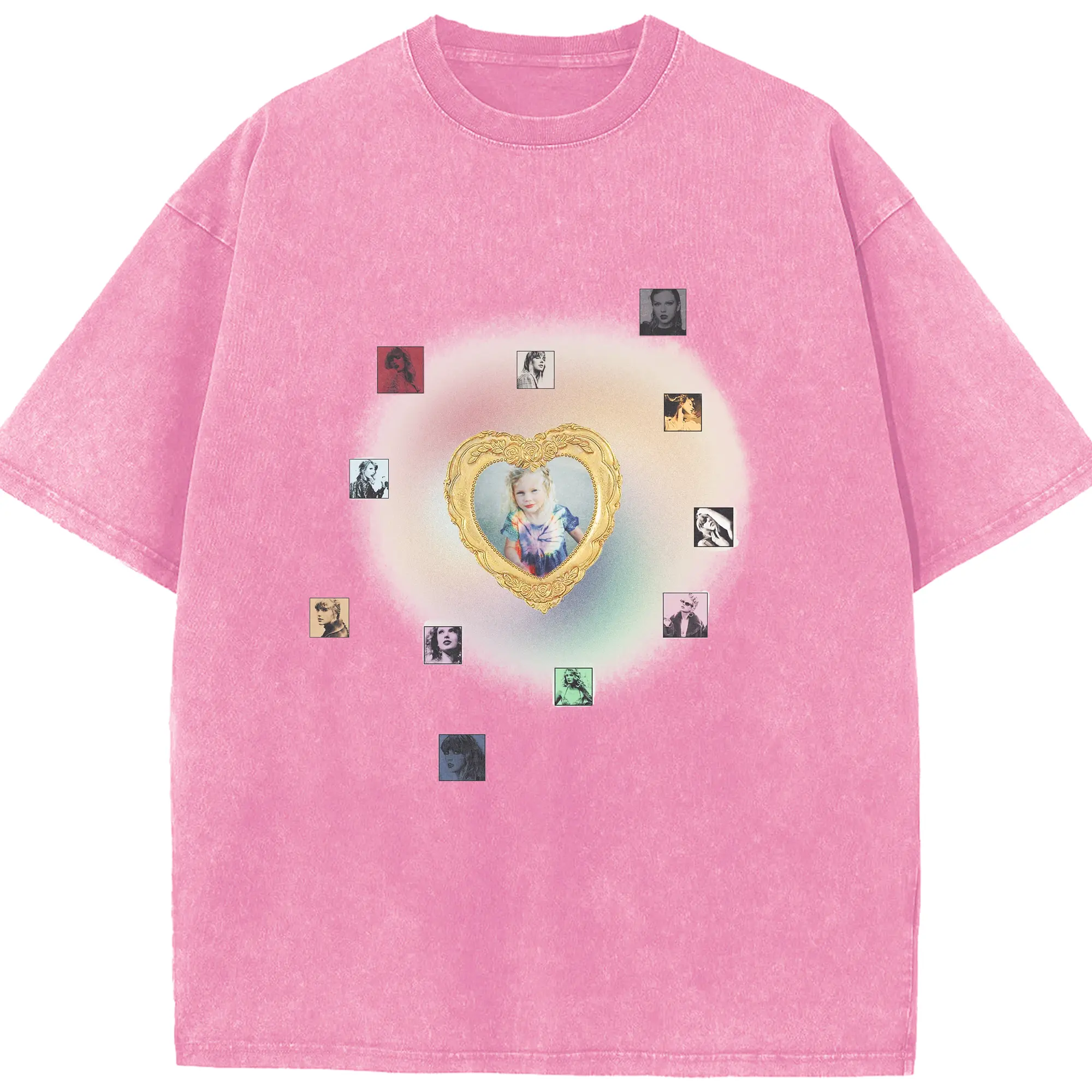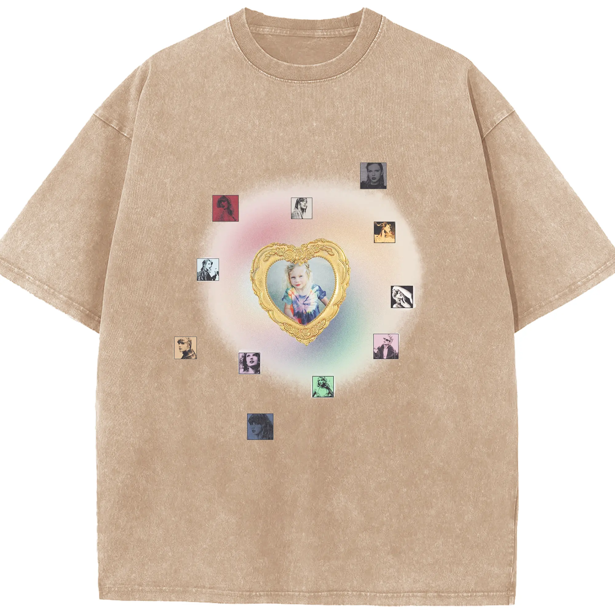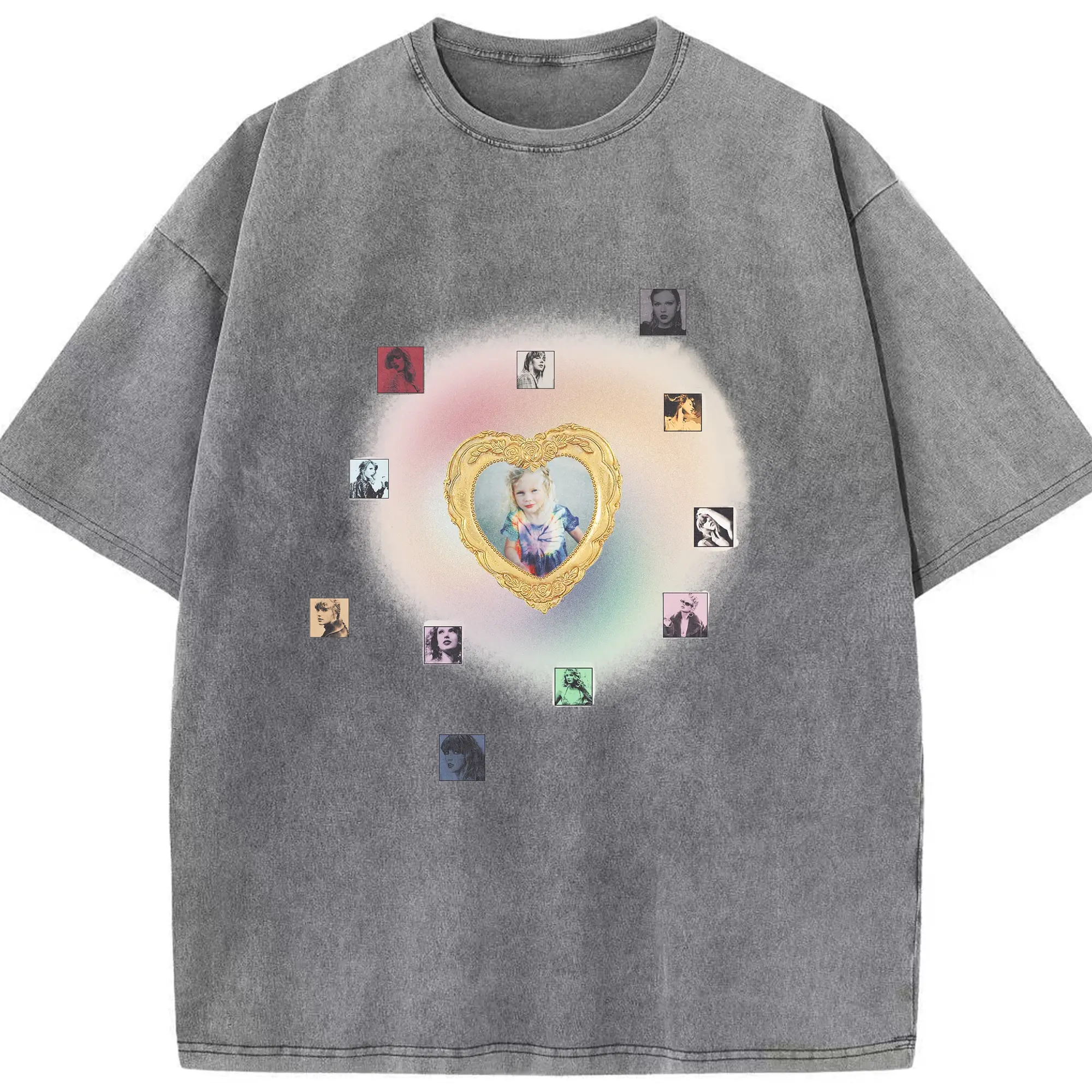 Taylor Swift Vintage Heart Frame DIY - Washed Vintage Look 230g Cotton Oversized T-Shirt With Front Heat Transfer Print – Soft, Lightweight, Stylish Fit – Comfortable Casual Wear For Sports & Everyday Use