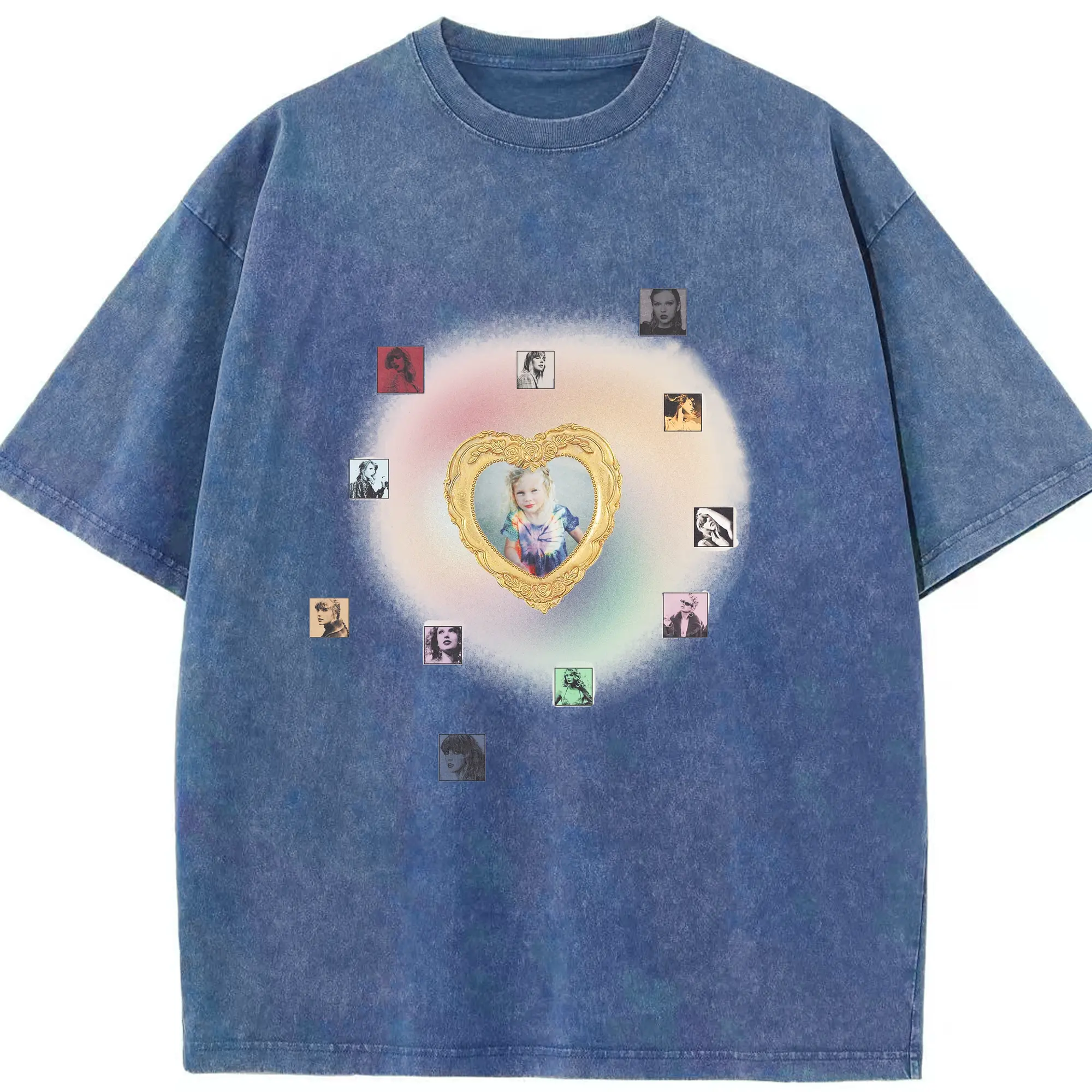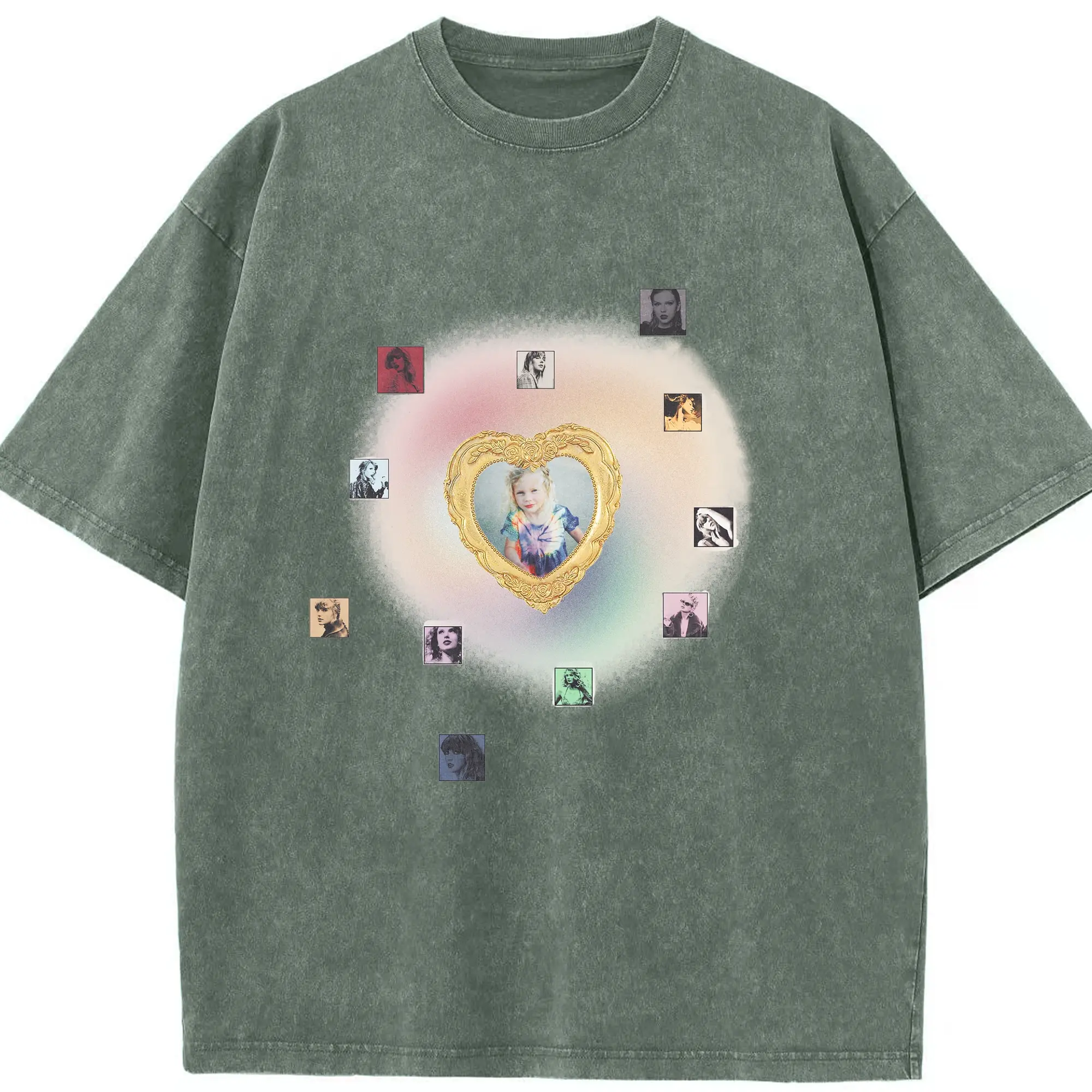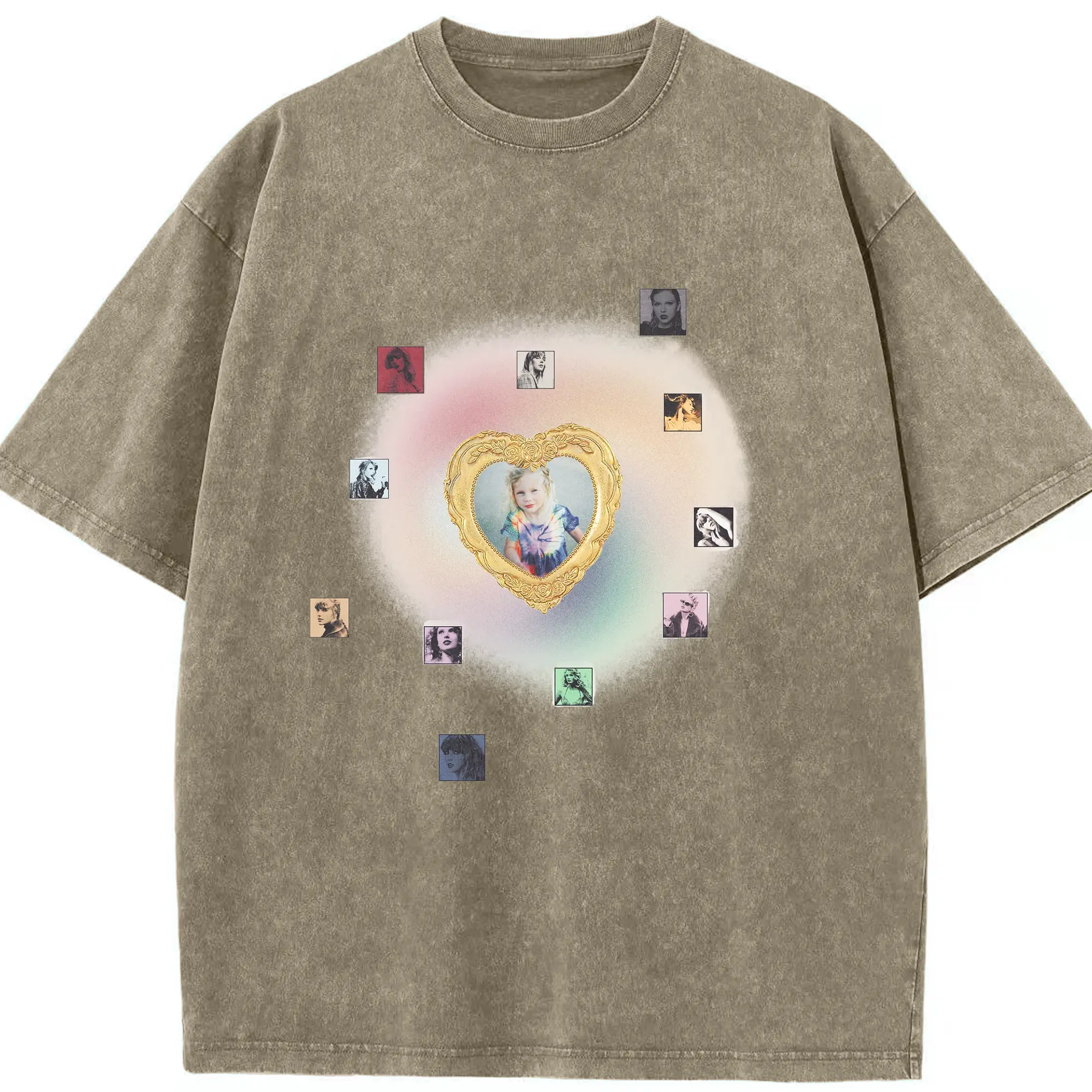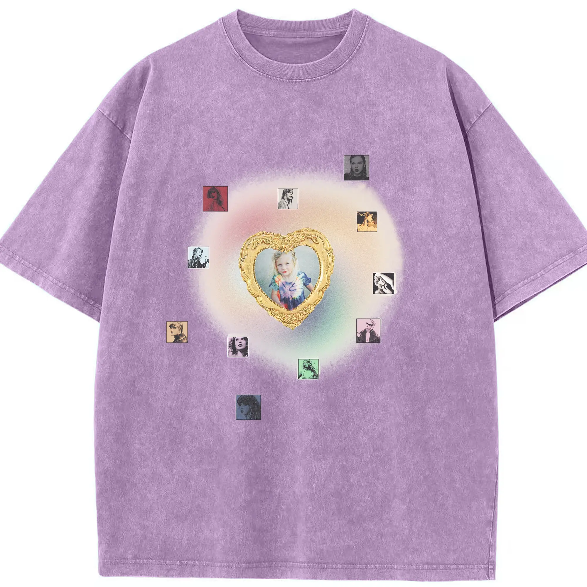 Taylor Swift Vintage Heart Frame DIY - Washed Vintage Look 230g Cotton Oversized T-Shirt With Front Heat Transfer Print – Soft, Lightweight, Stylish Fit – Comfortable Casual Wear For Sports & Everyday Use