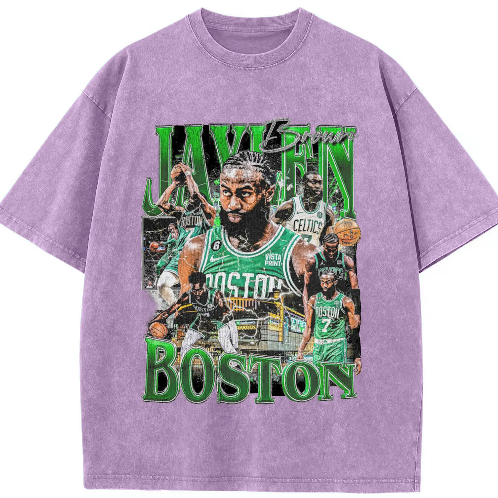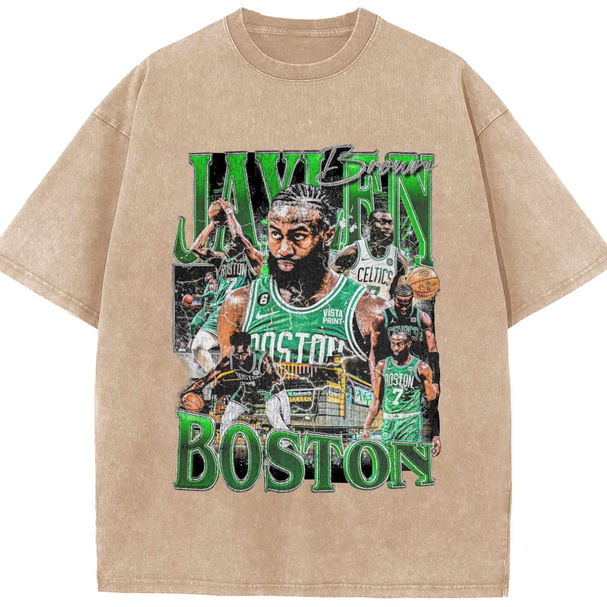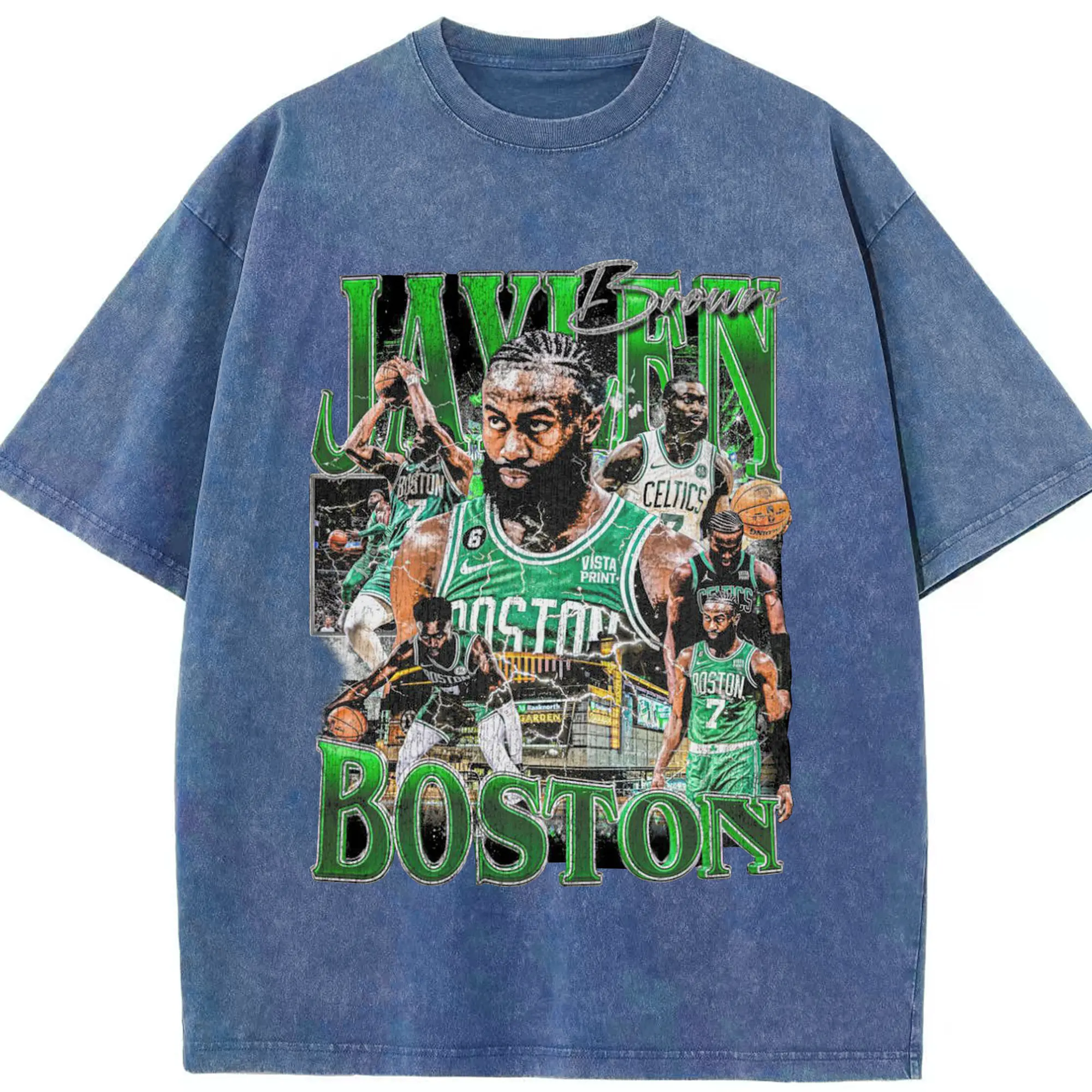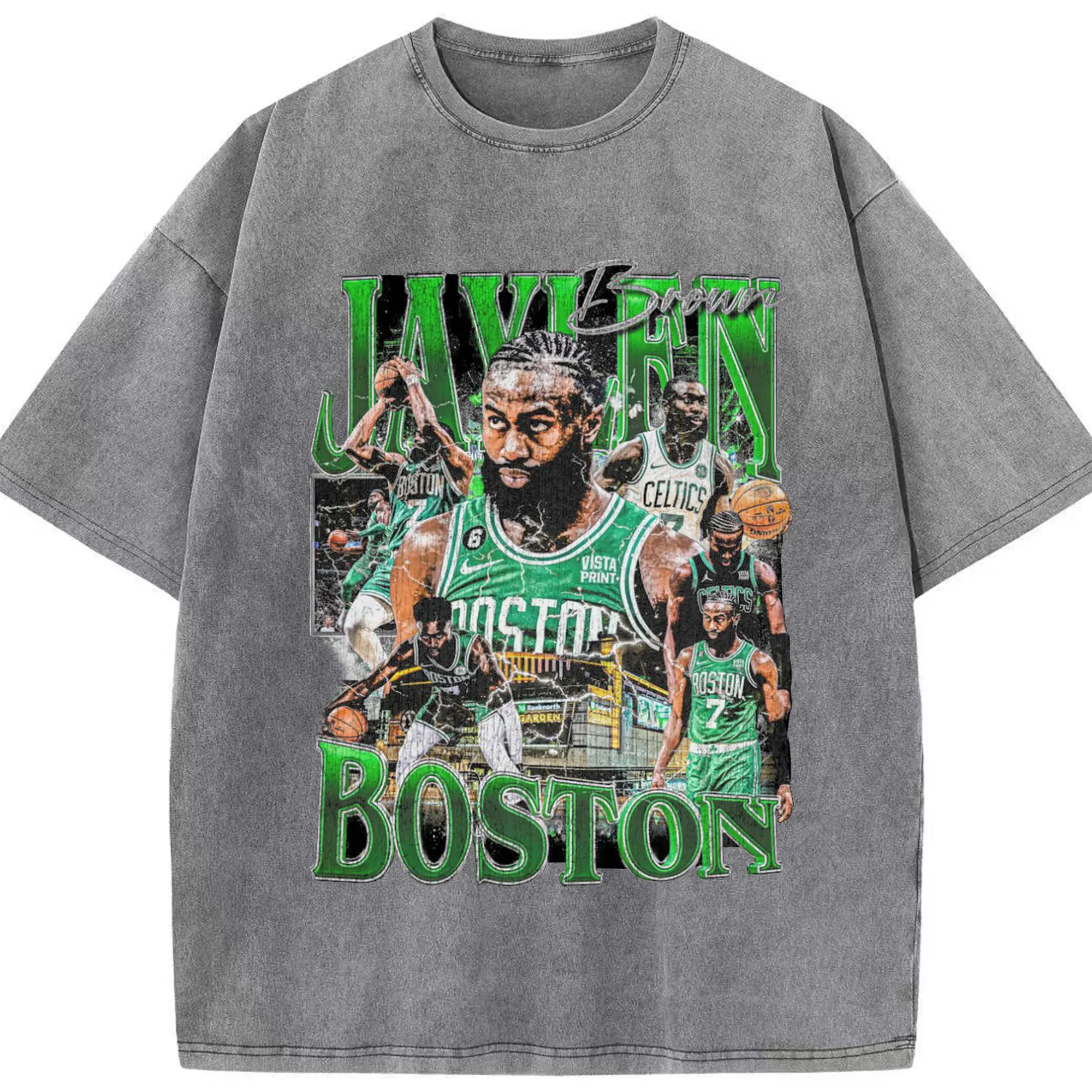 “TD Garden Demon” Jaylen Brown Vintage Shirt - Washed Vintage Look 230g Cotton Oversized T-Shirt With Front Heat Transfer Print – Soft, Lightweight, Stylish Fit – Comfortable Casual Wear For Sports & Everyday Use