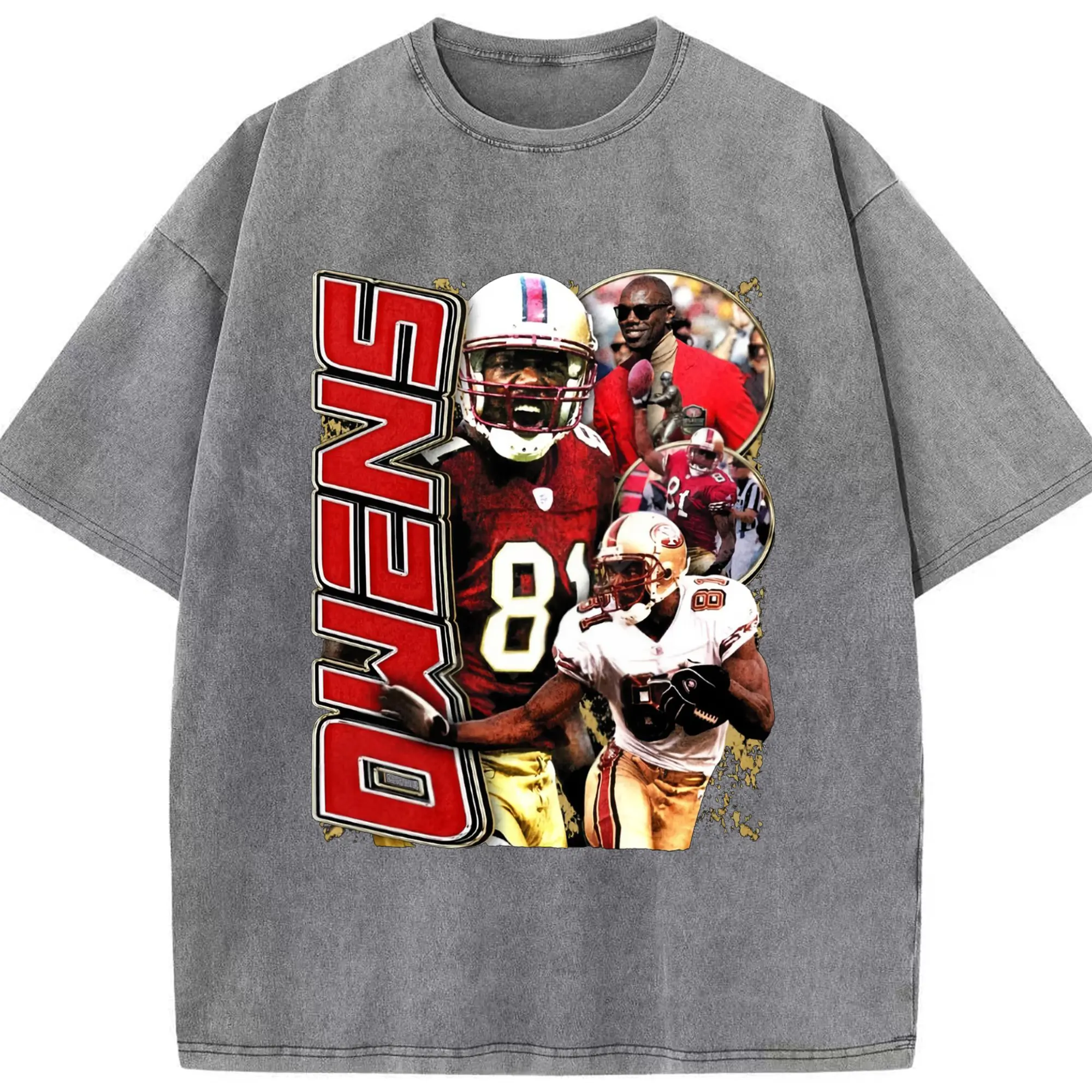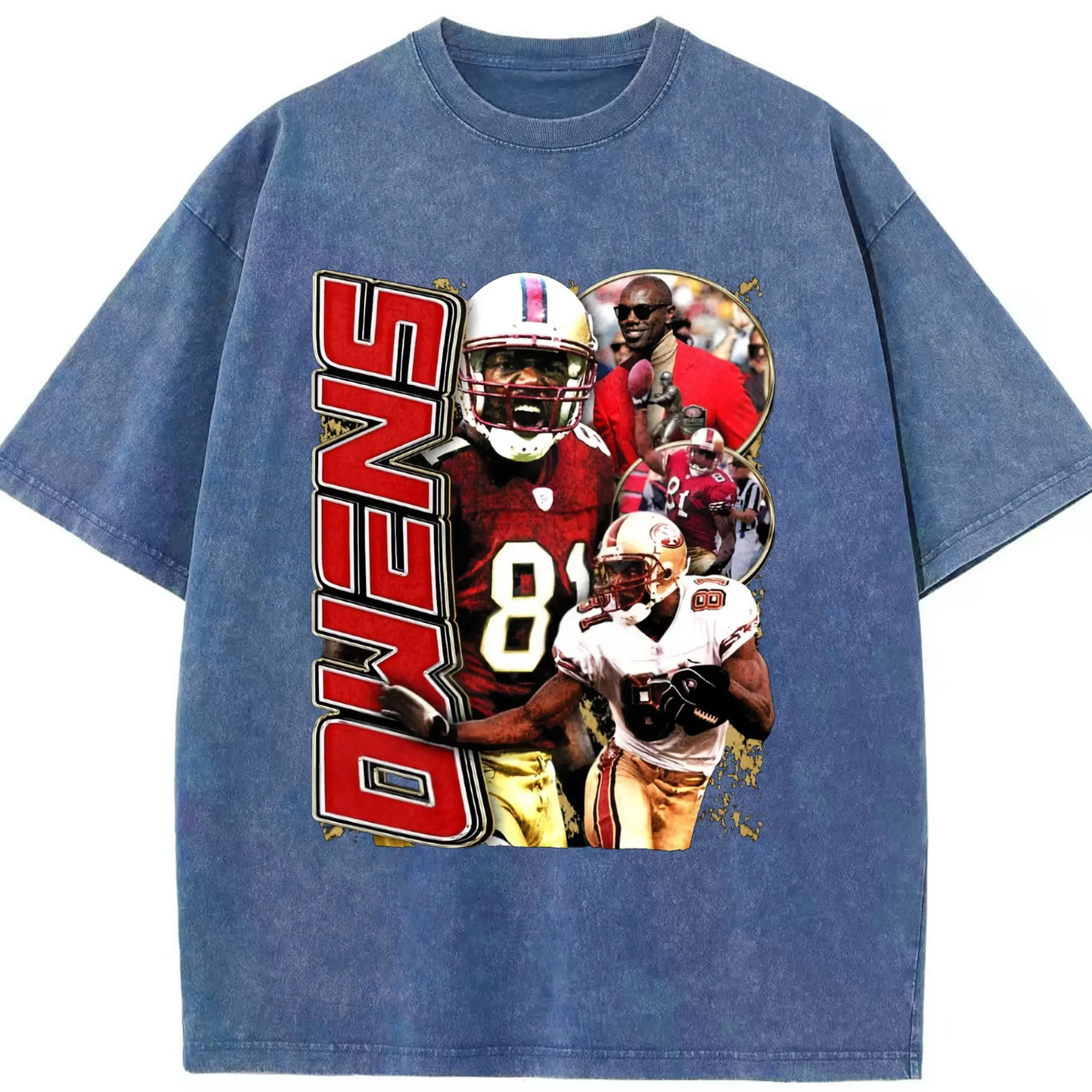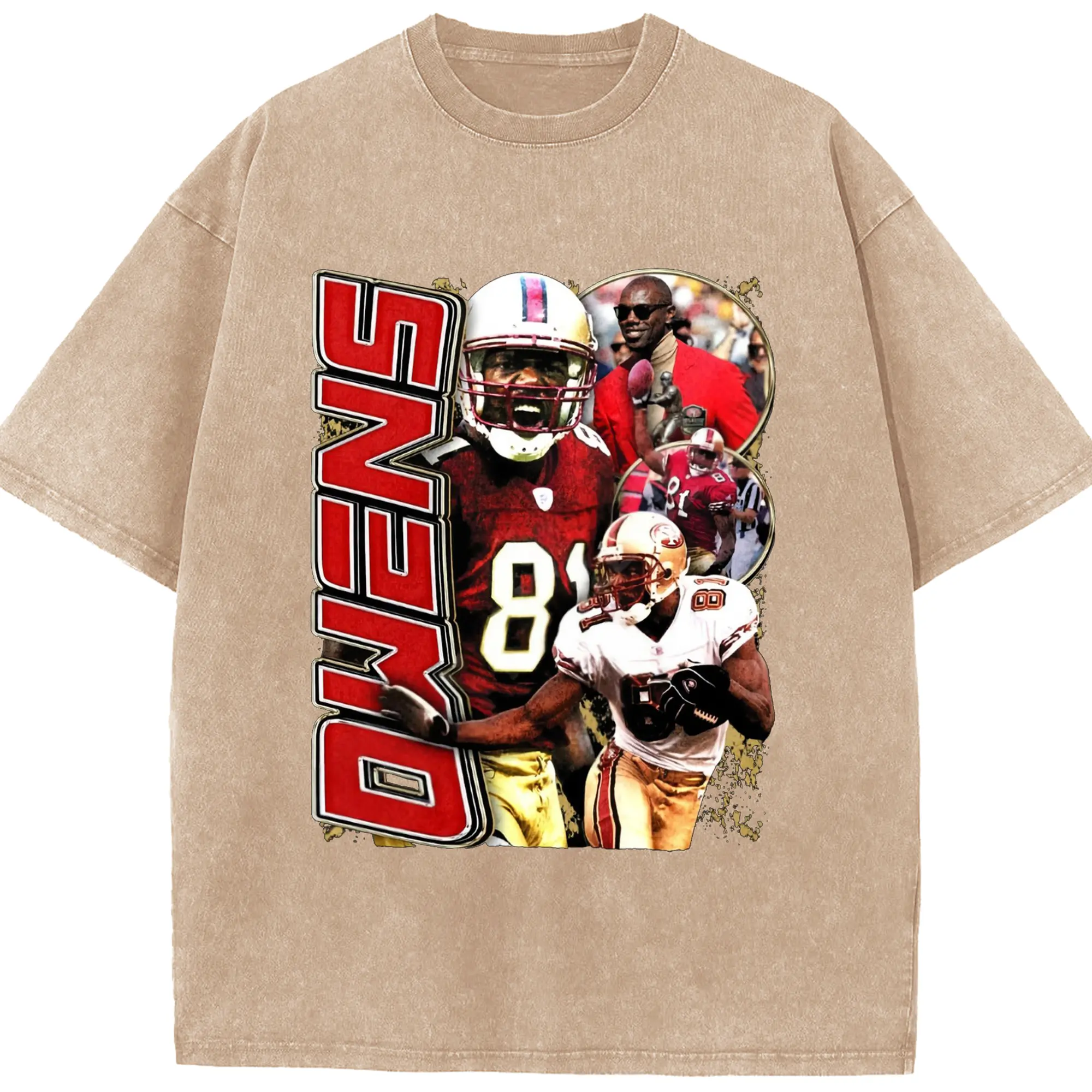 Terrell Owens San Francisco 49ers #81 NFL Legend DIY Shirt - Washed Vintage Look 230g Cotton Oversized T-Shirt With Front Heat Transfer Print – Soft, Lightweight, Stylish Fit – Comfortable Casual Wear For Sports & Everyday Use