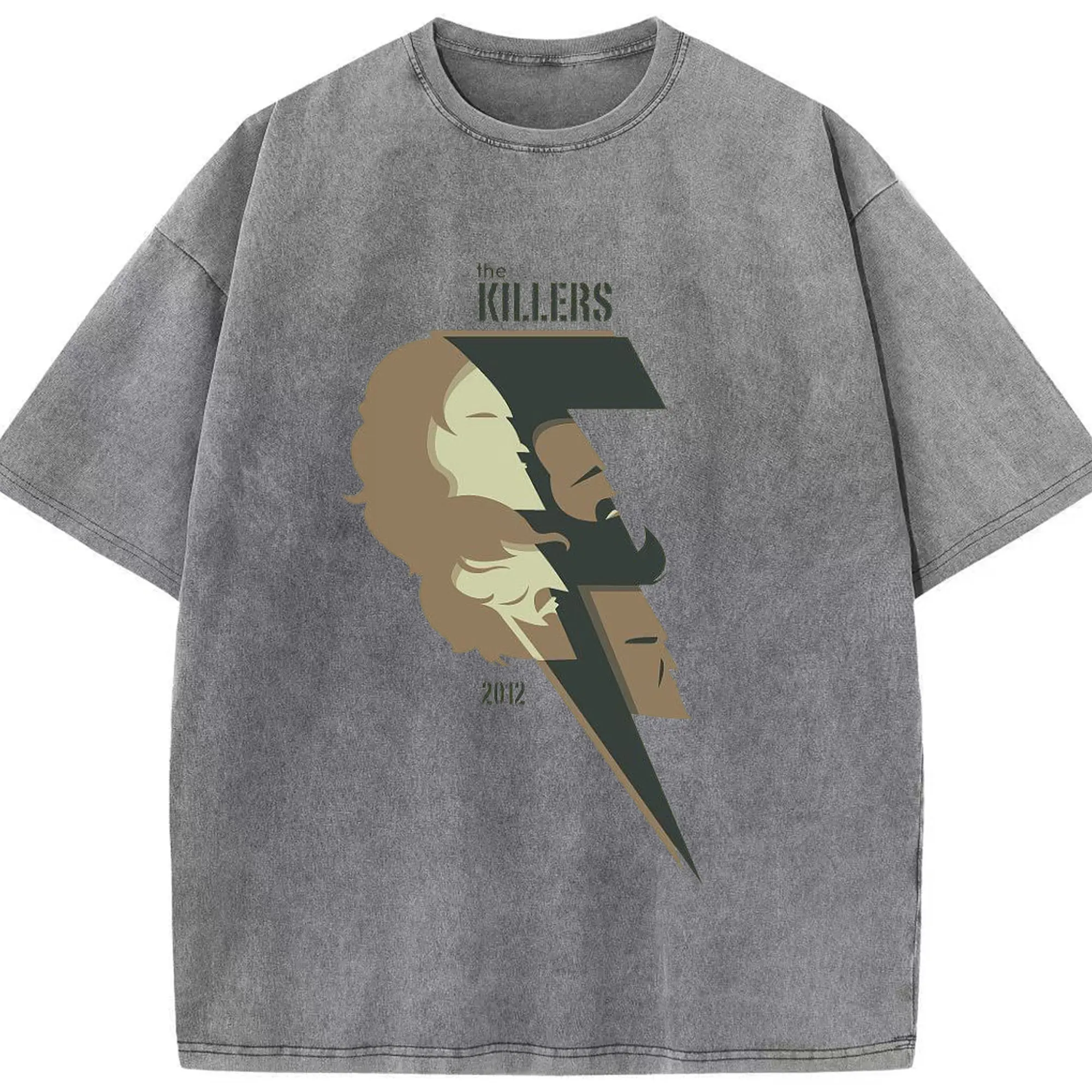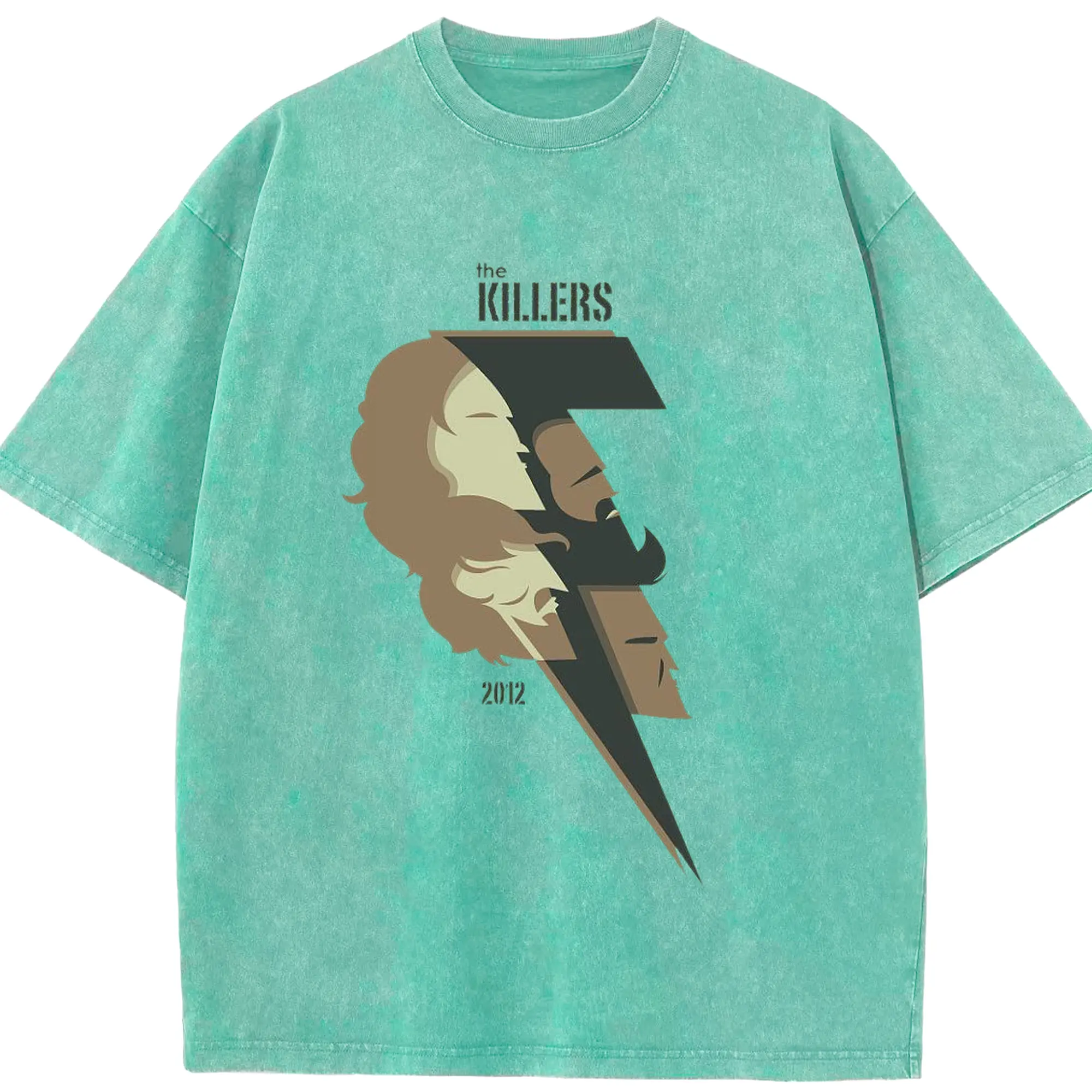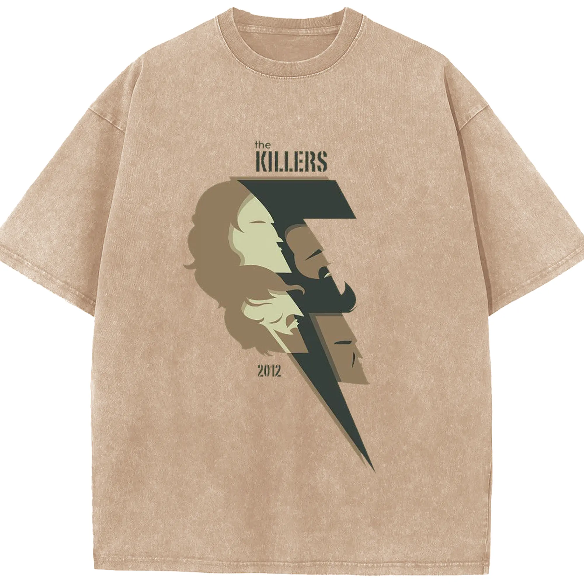 The Killers Alternative Rock 2012 DIY - Washed Vintage Look 230g Cotton Oversized T-Shirt With Front Heat Transfer Print – Soft, Lightweight, Stylish Fit – Comfortable Casual Wear For Sports & Everyday Use
