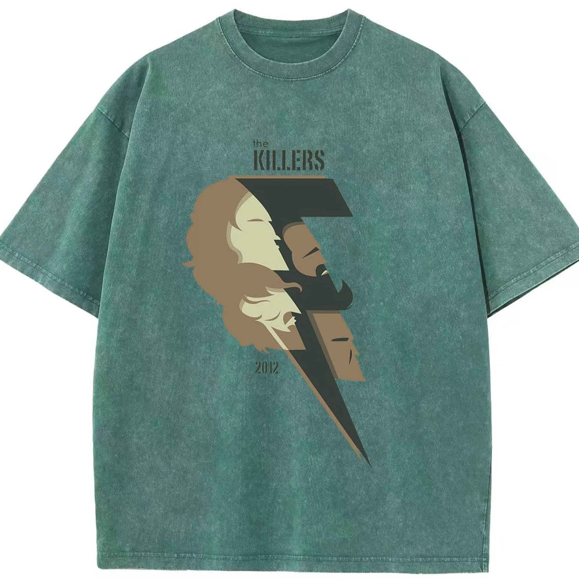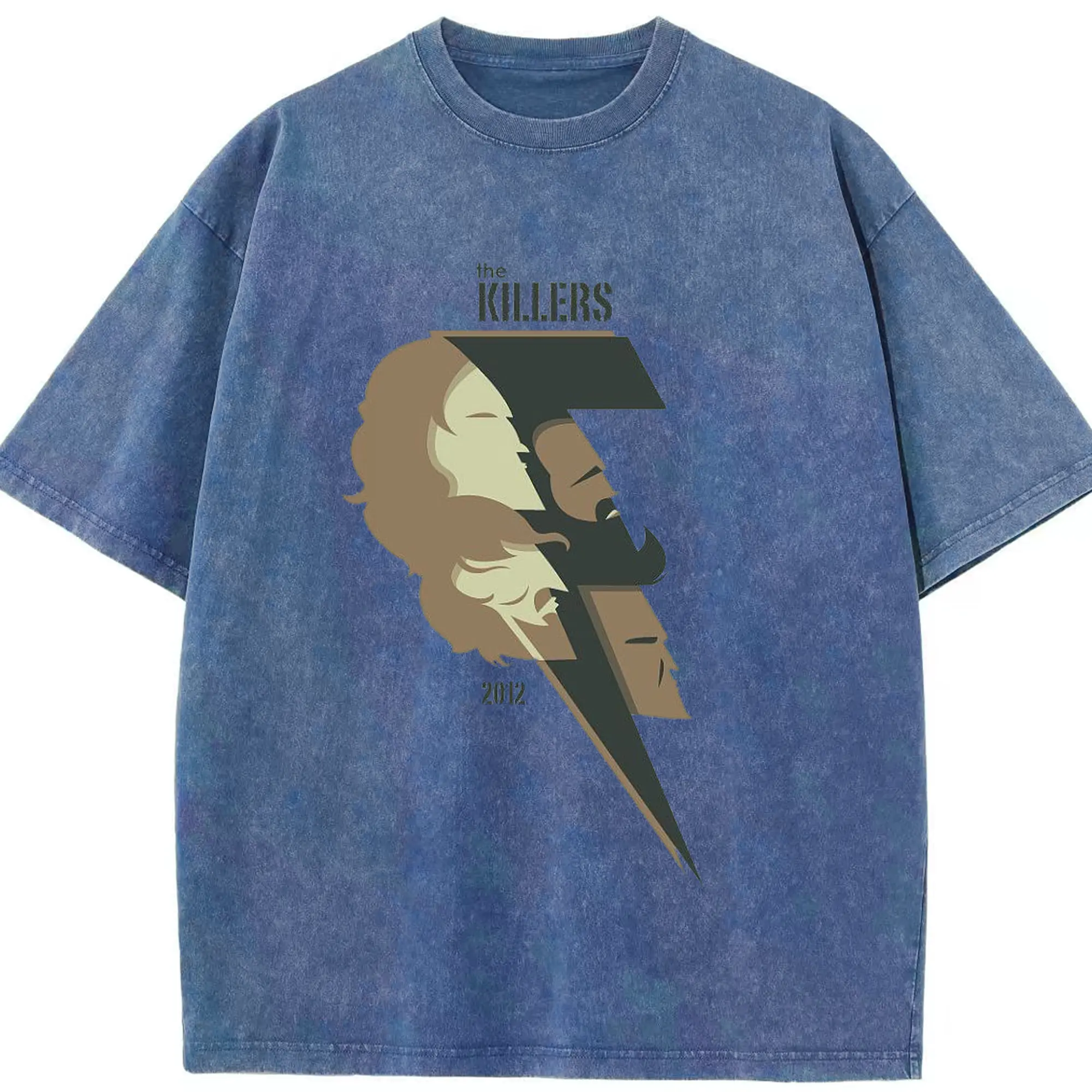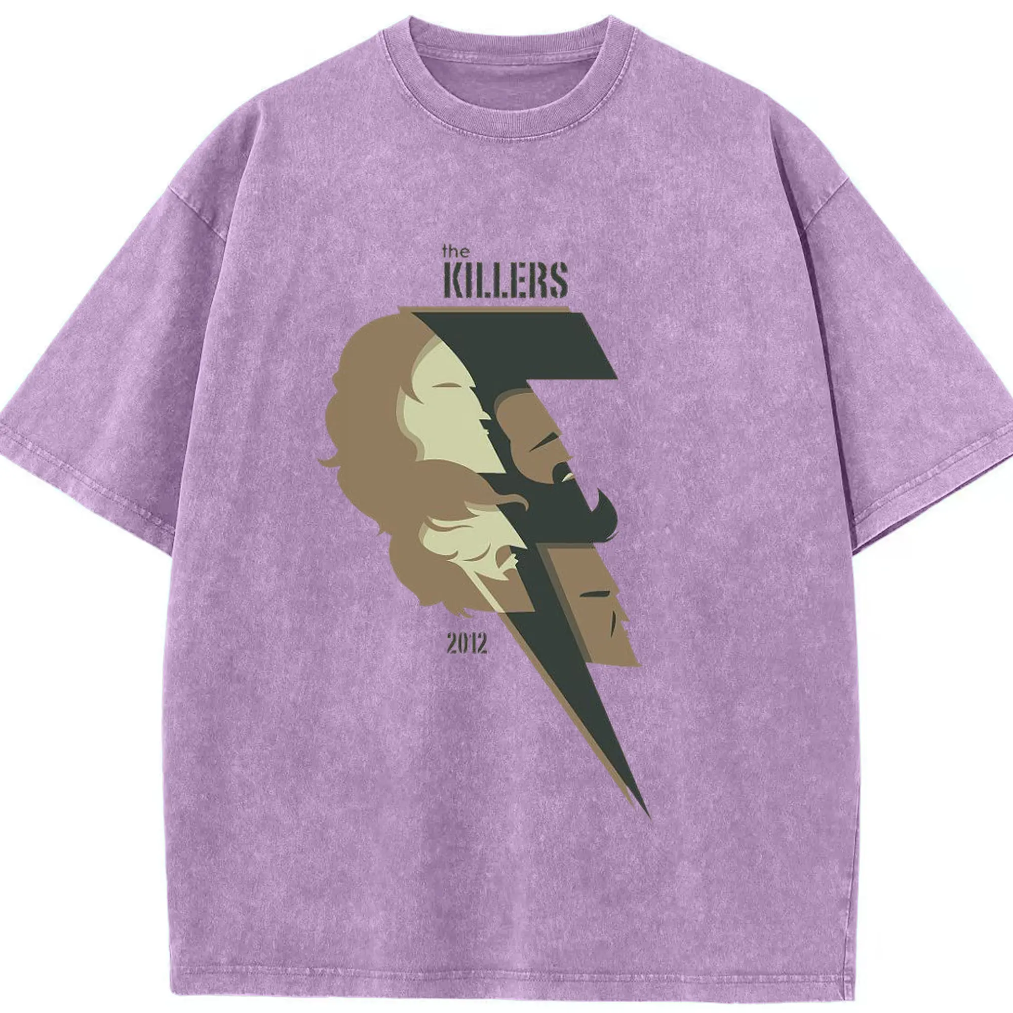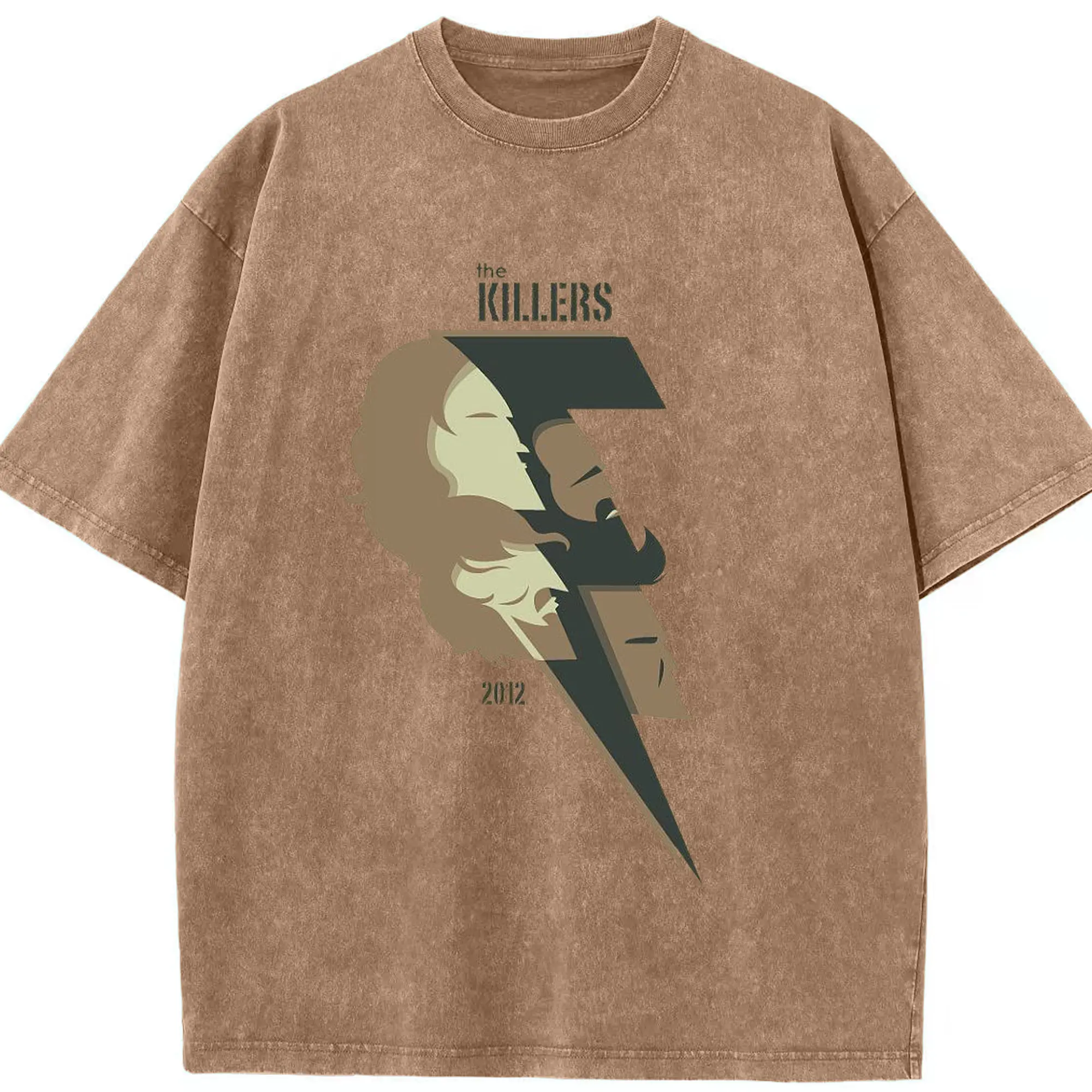 The Killers Alternative Rock 2012 DIY - Washed Vintage Look 230g Cotton Oversized T-Shirt With Front Heat Transfer Print – Soft, Lightweight, Stylish Fit – Comfortable Casual Wear For Sports & Everyday Use