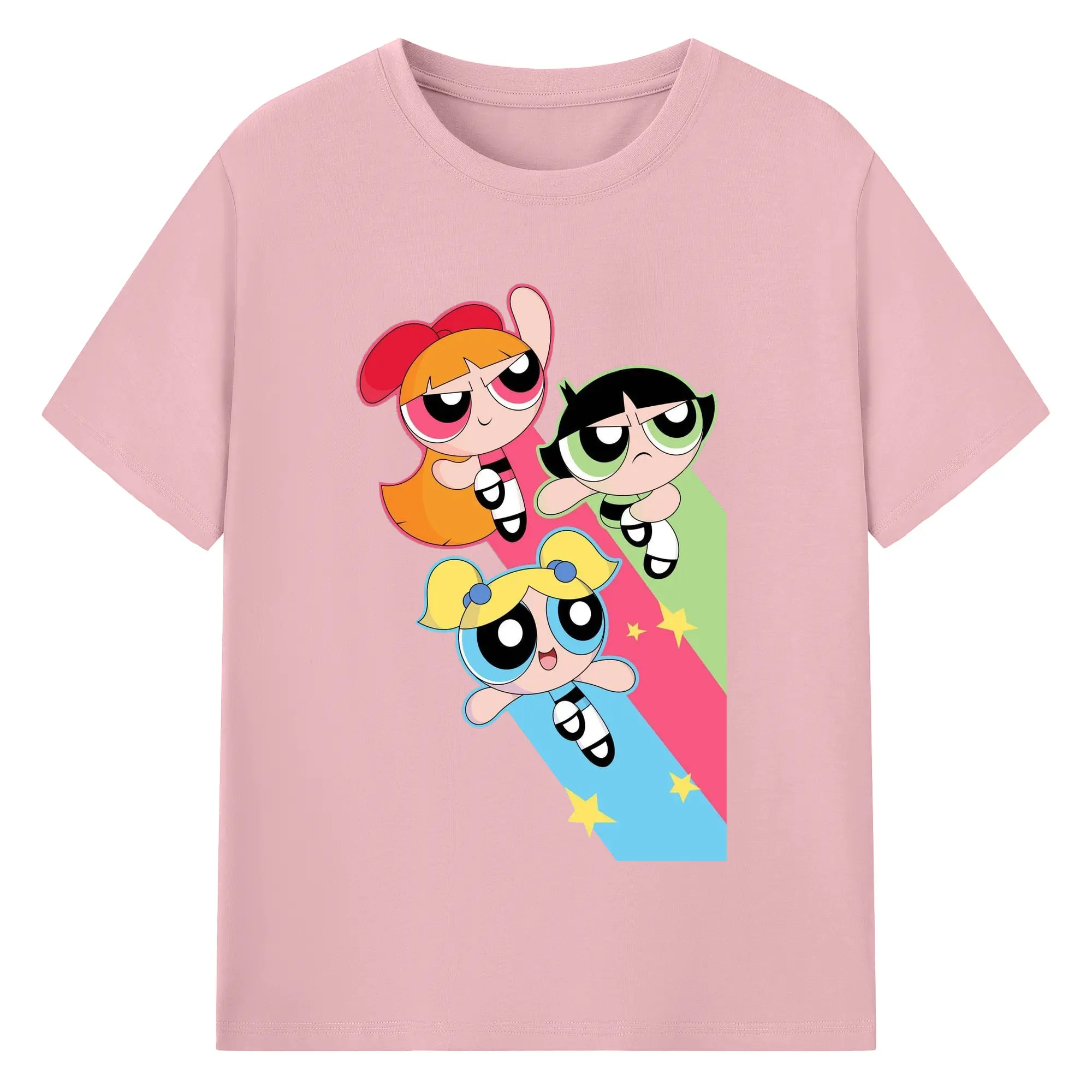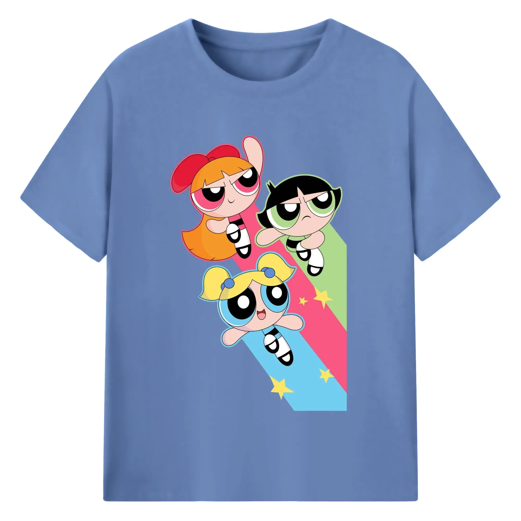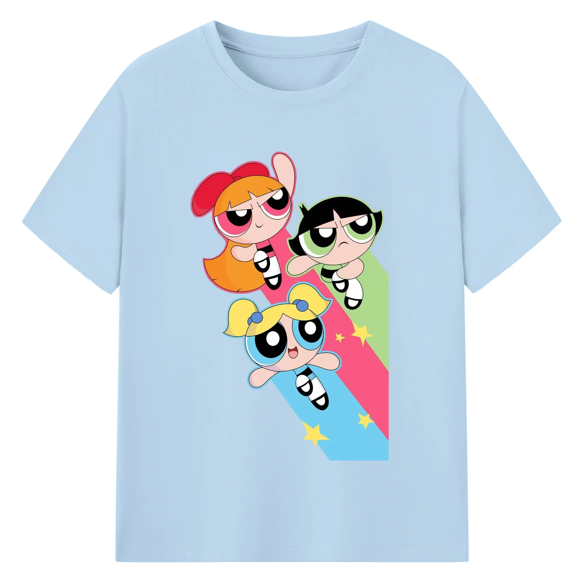 The Powerpuff Girls Cute Style DIY Shirt - 180g Cotton T-Shirt With Front Heat Transfer Print – Soft, Lightweight, Fitted Design – Comfortable Casual Wear For Sports & Everyday Use