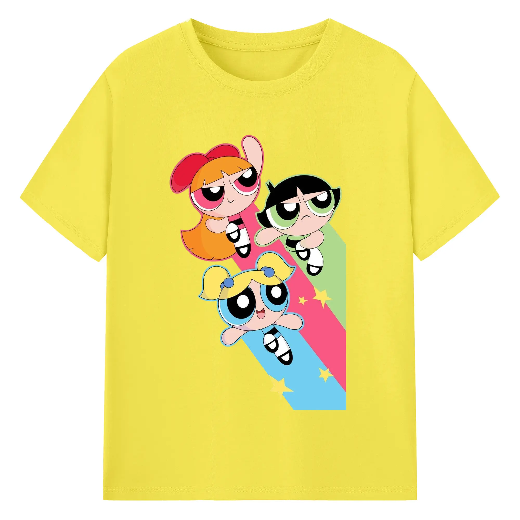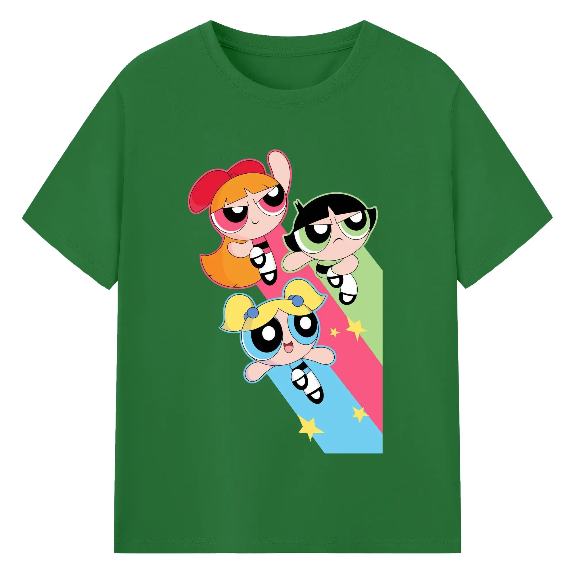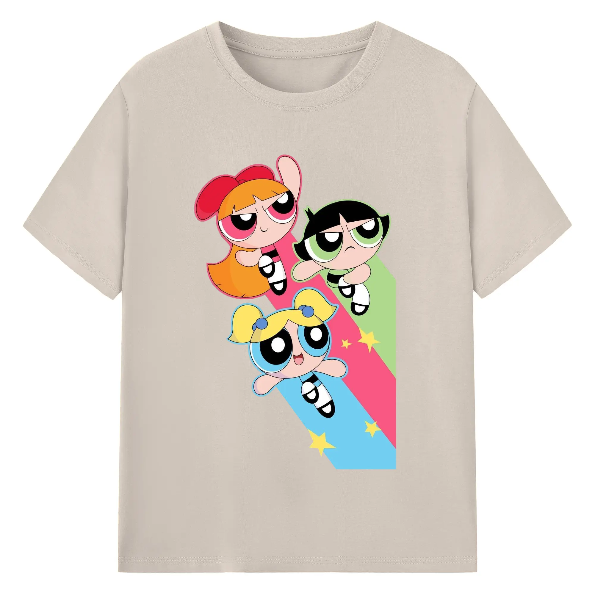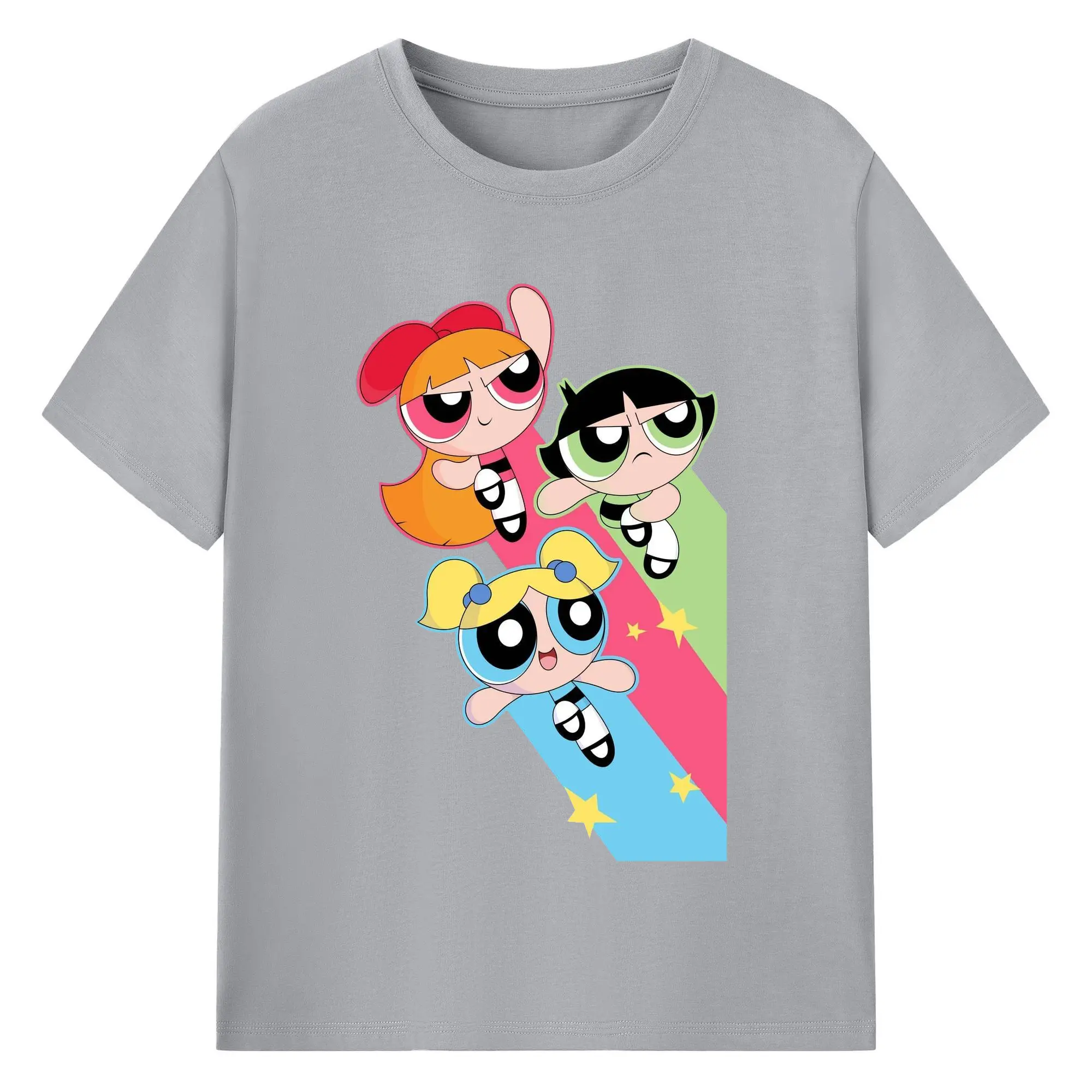 The Powerpuff Girls Cute Style DIY Shirt - 180g Cotton T-Shirt With Front Heat Transfer Print – Soft, Lightweight, Fitted Design – Comfortable Casual Wear For Sports & Everyday Use