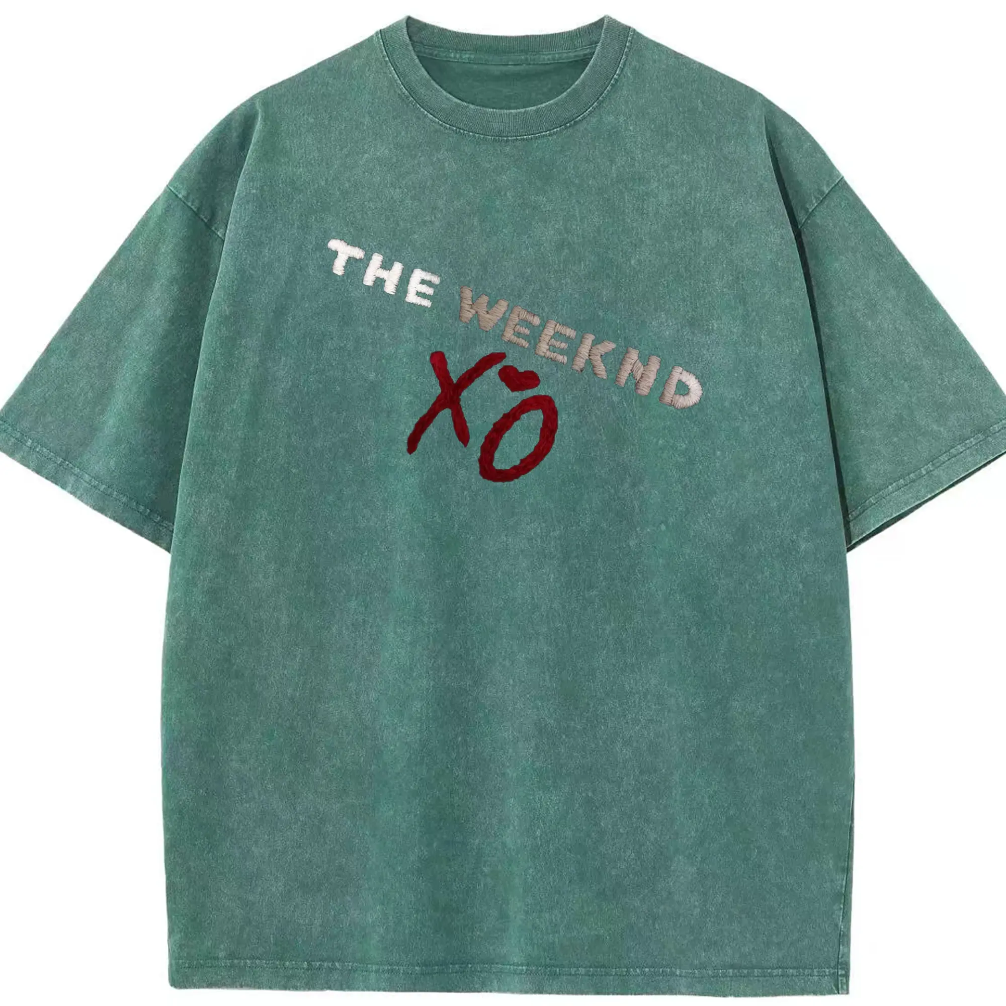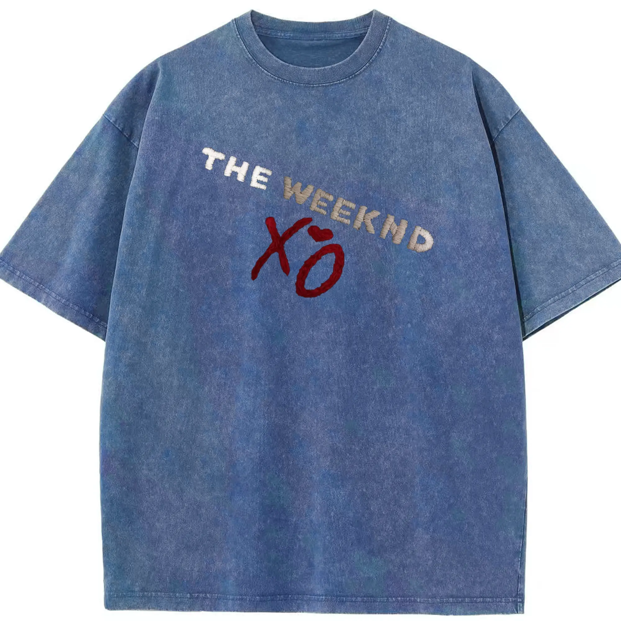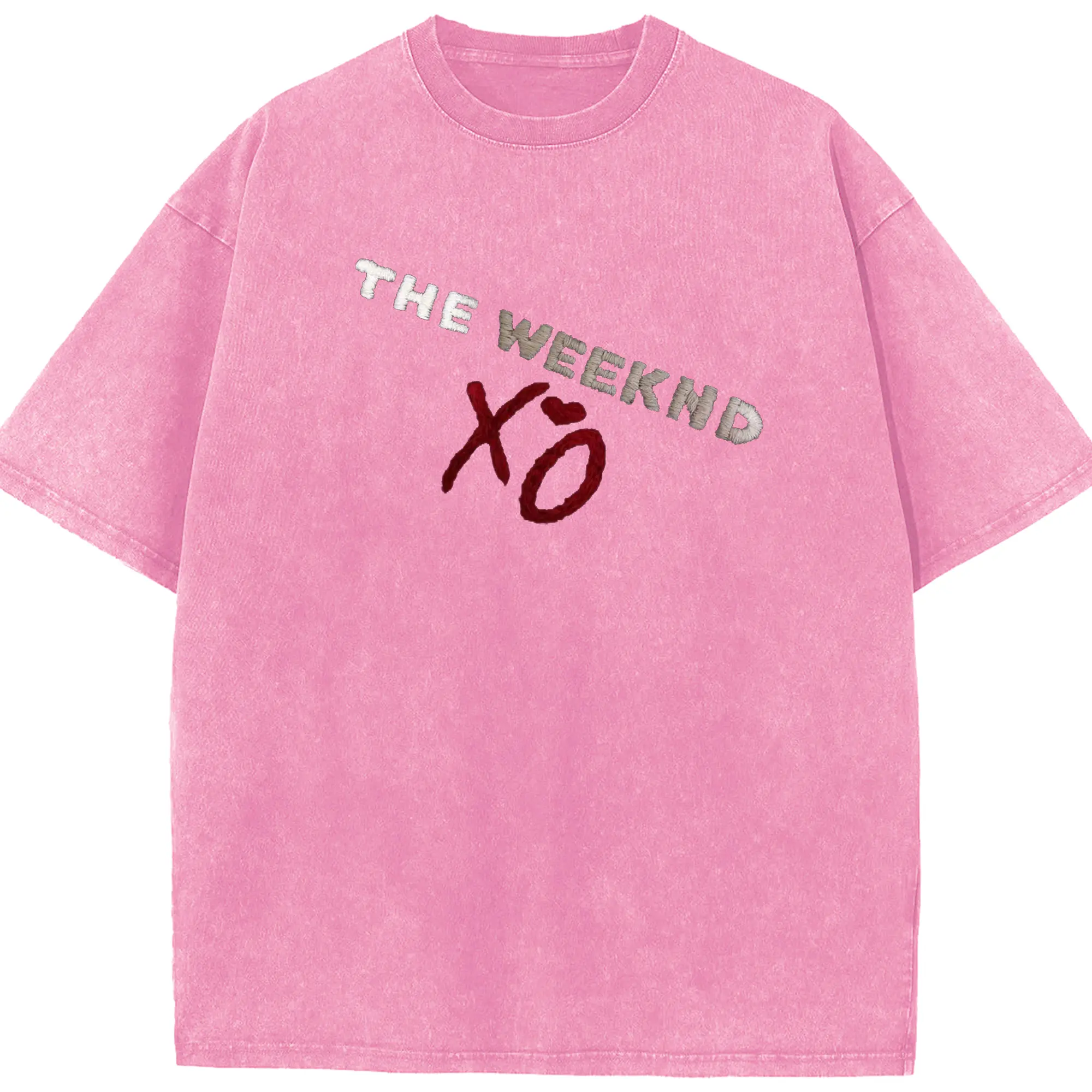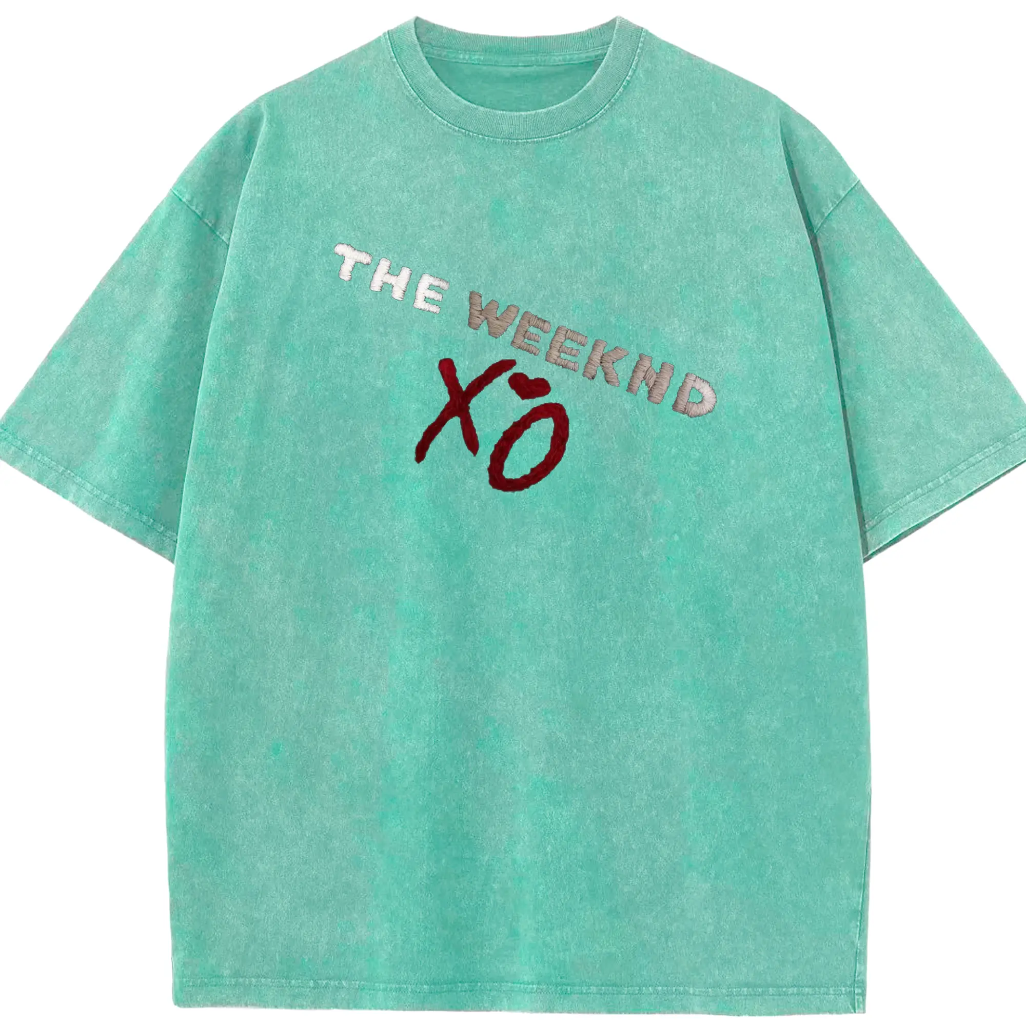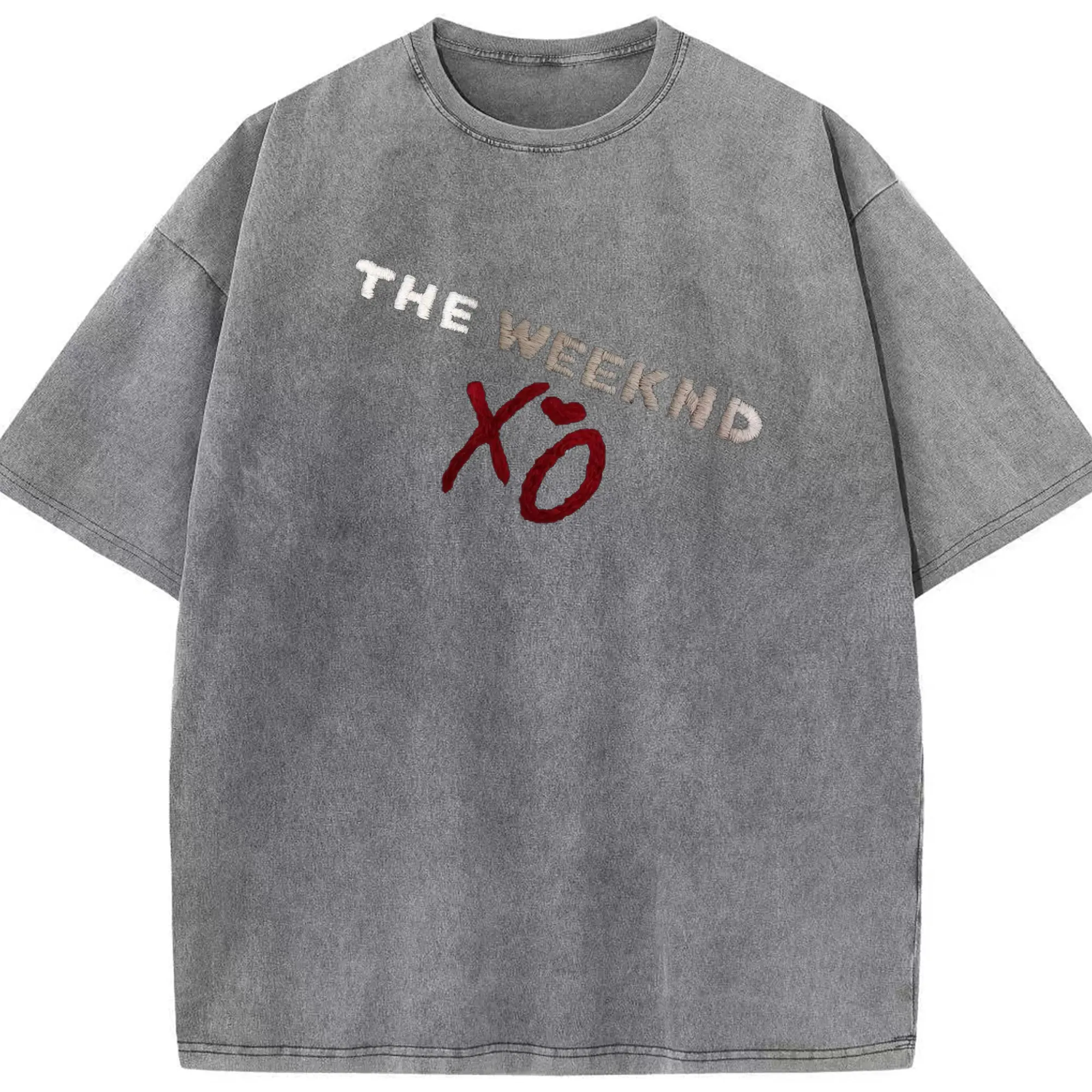 The Weeknd XO Embroidered DIY - Washed Vintage Look 230g Cotton Oversized T-Shirt With Front Heat Transfer Print – Soft, Lightweight, Stylish Fit – Comfortable Casual Wear For Sports & Everyday Use