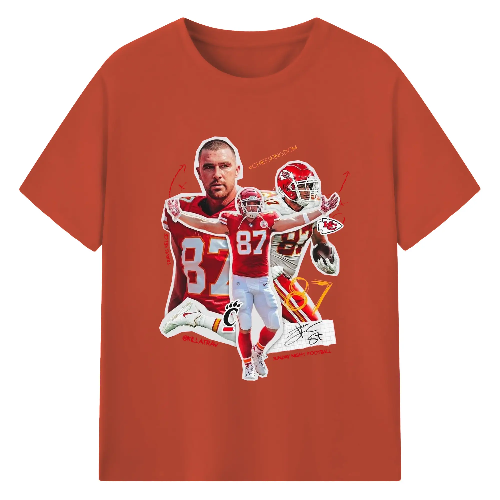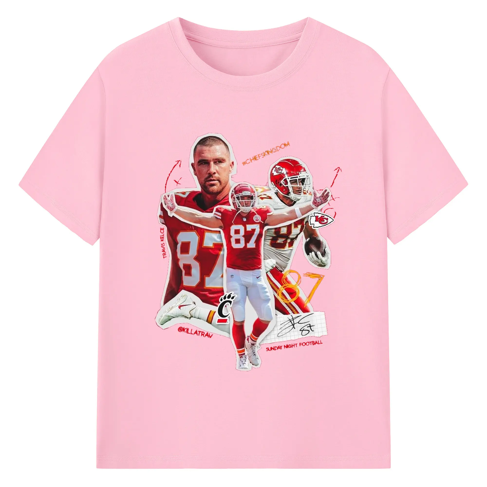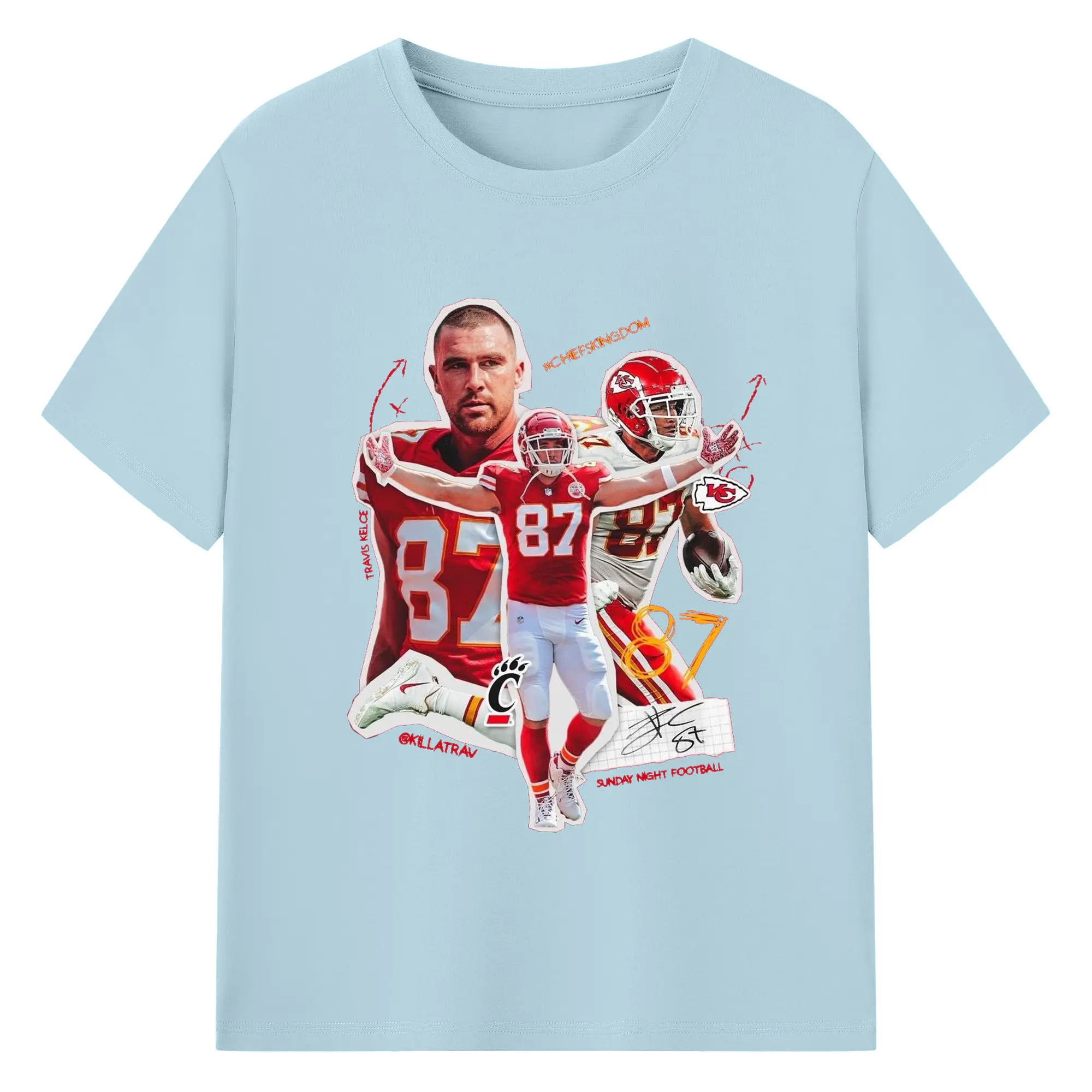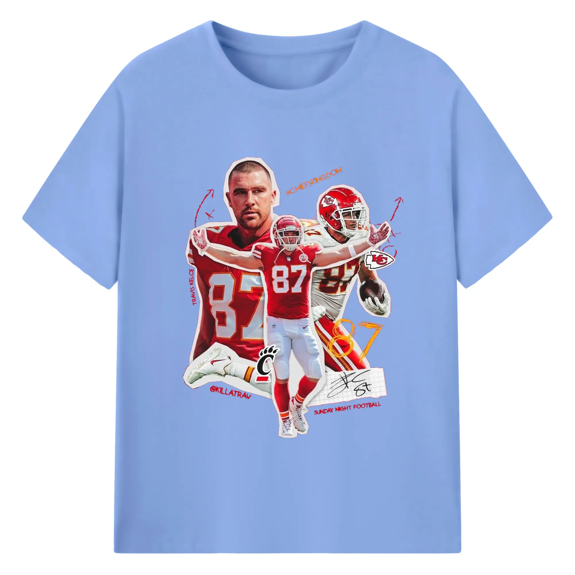 “Travis Kelce #87 Chiefs Kingdom” DIY Shirt - 180g Cotton T-Shirt With Front Heat Transfer Print – Soft, Lightweight, Fitted Design – Comfortable Casual Wear For Sports & Everyday Use