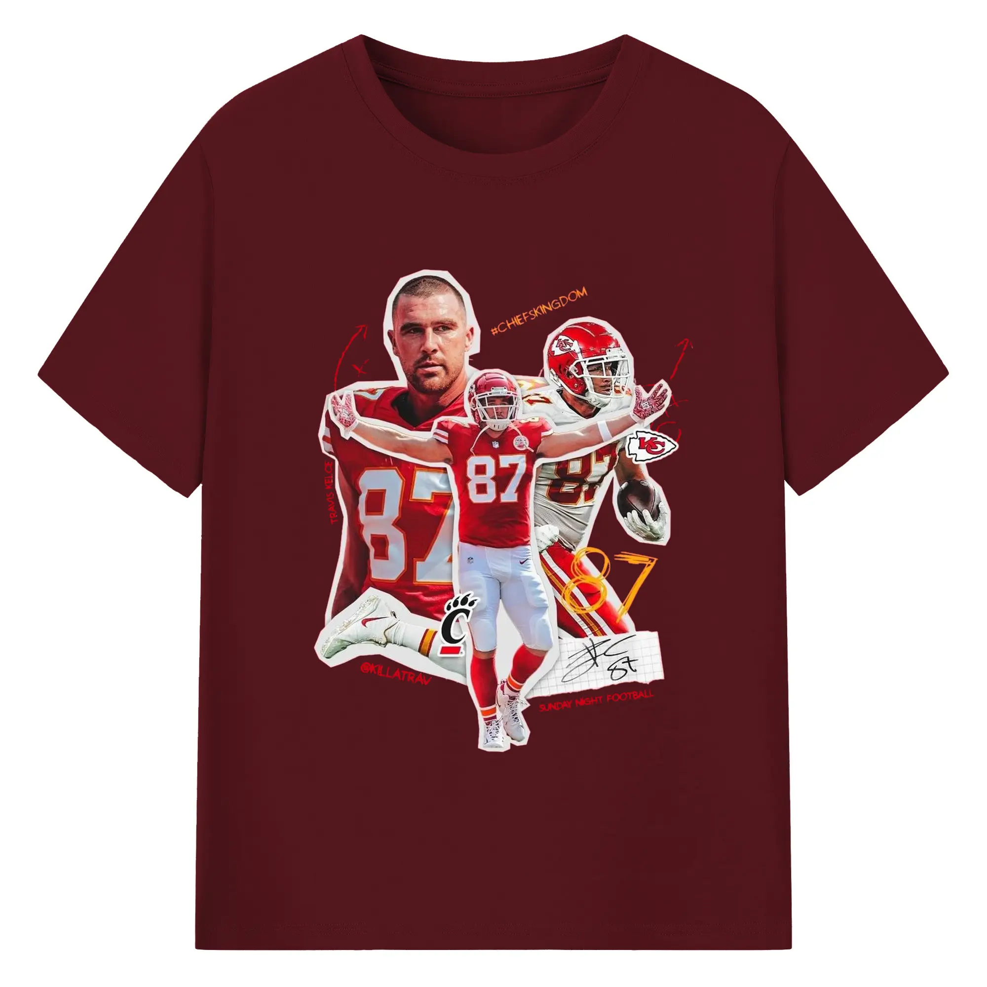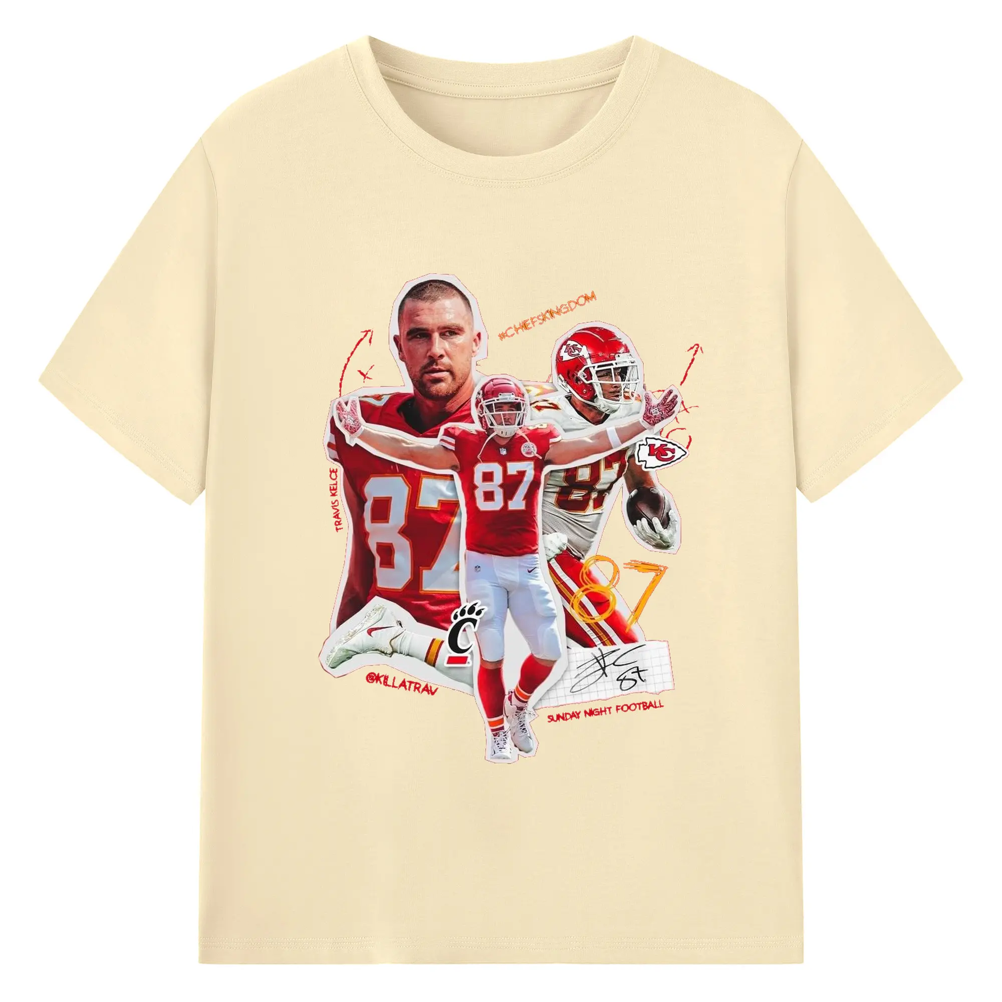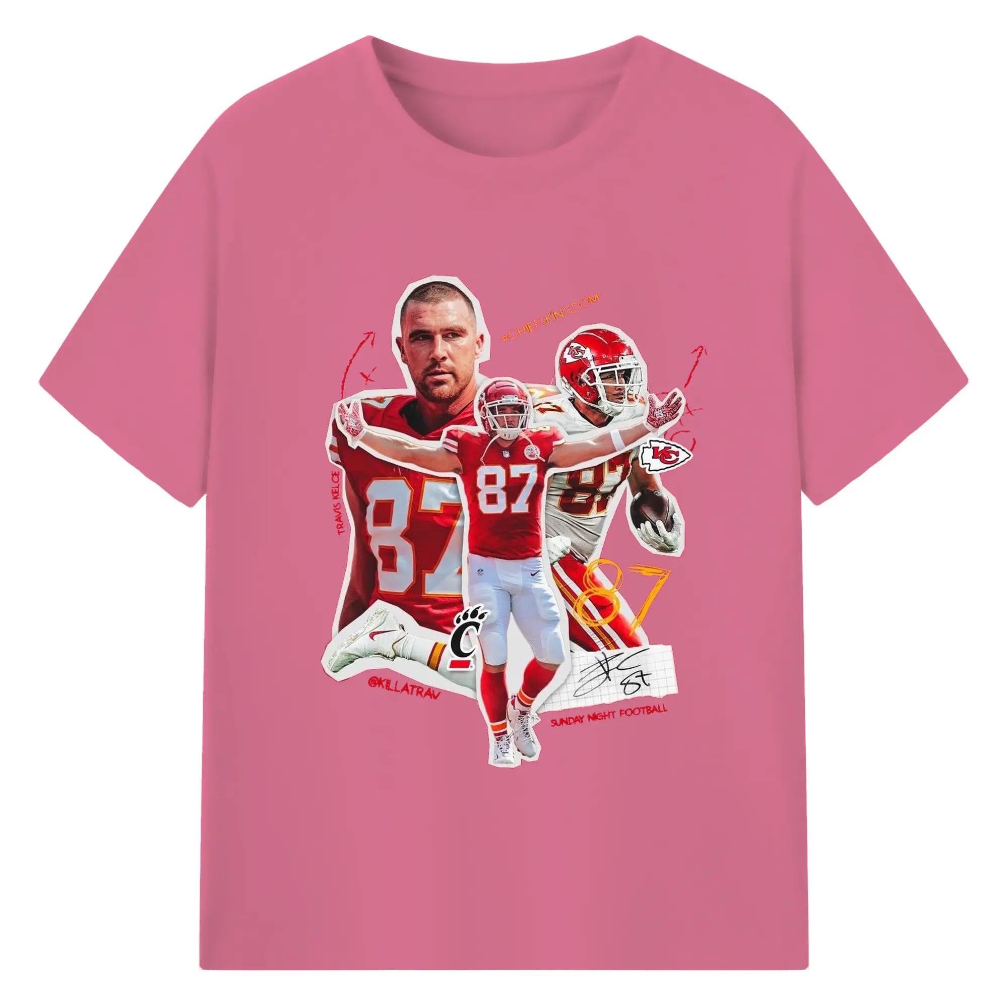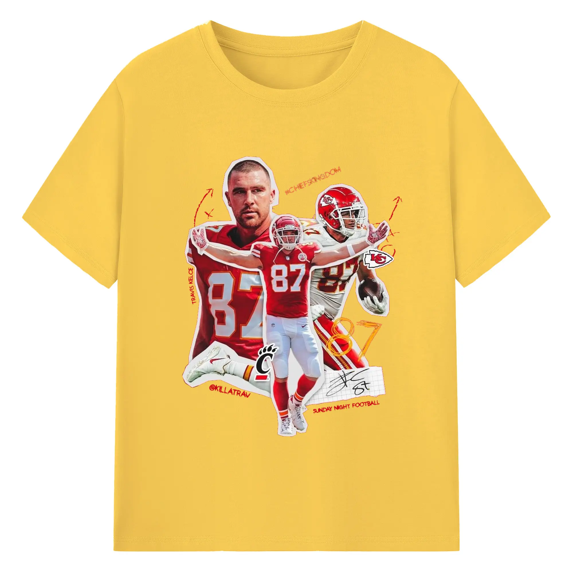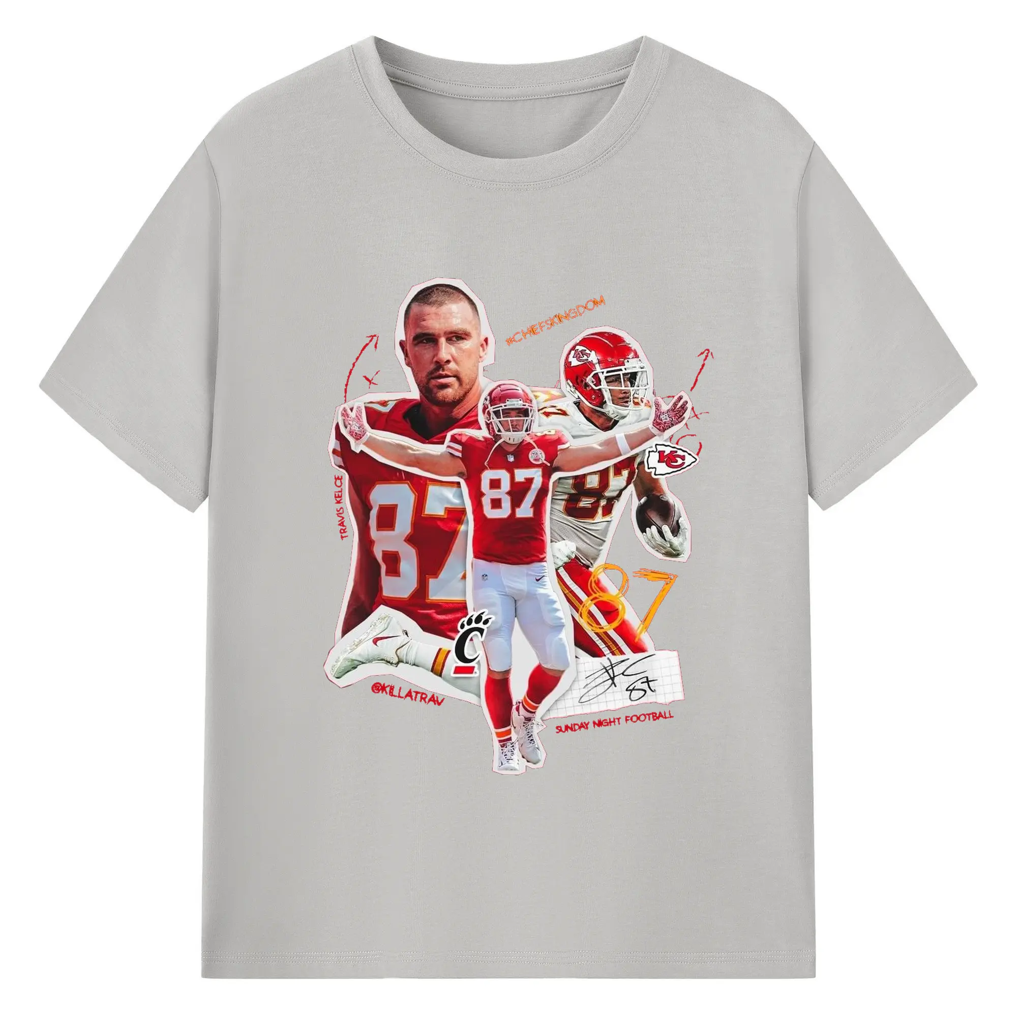 “Travis Kelce #87 Chiefs Kingdom” DIY Shirt - 180g Cotton T-Shirt With Front Heat Transfer Print – Soft, Lightweight, Fitted Design – Comfortable Casual Wear For Sports & Everyday Use