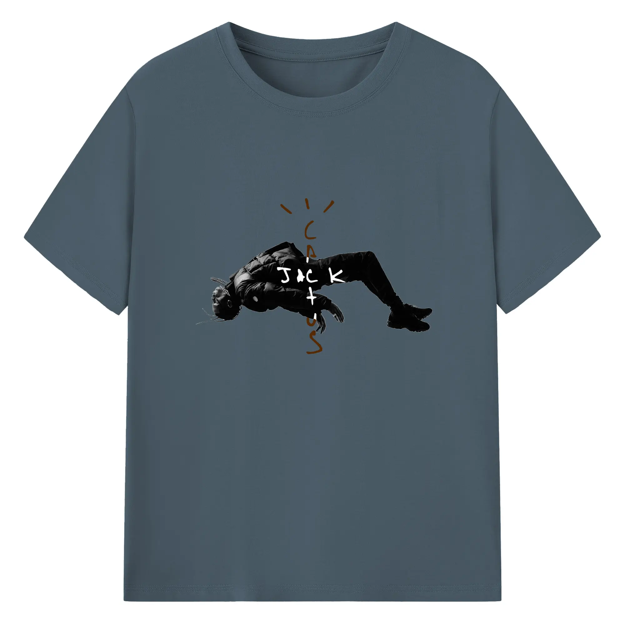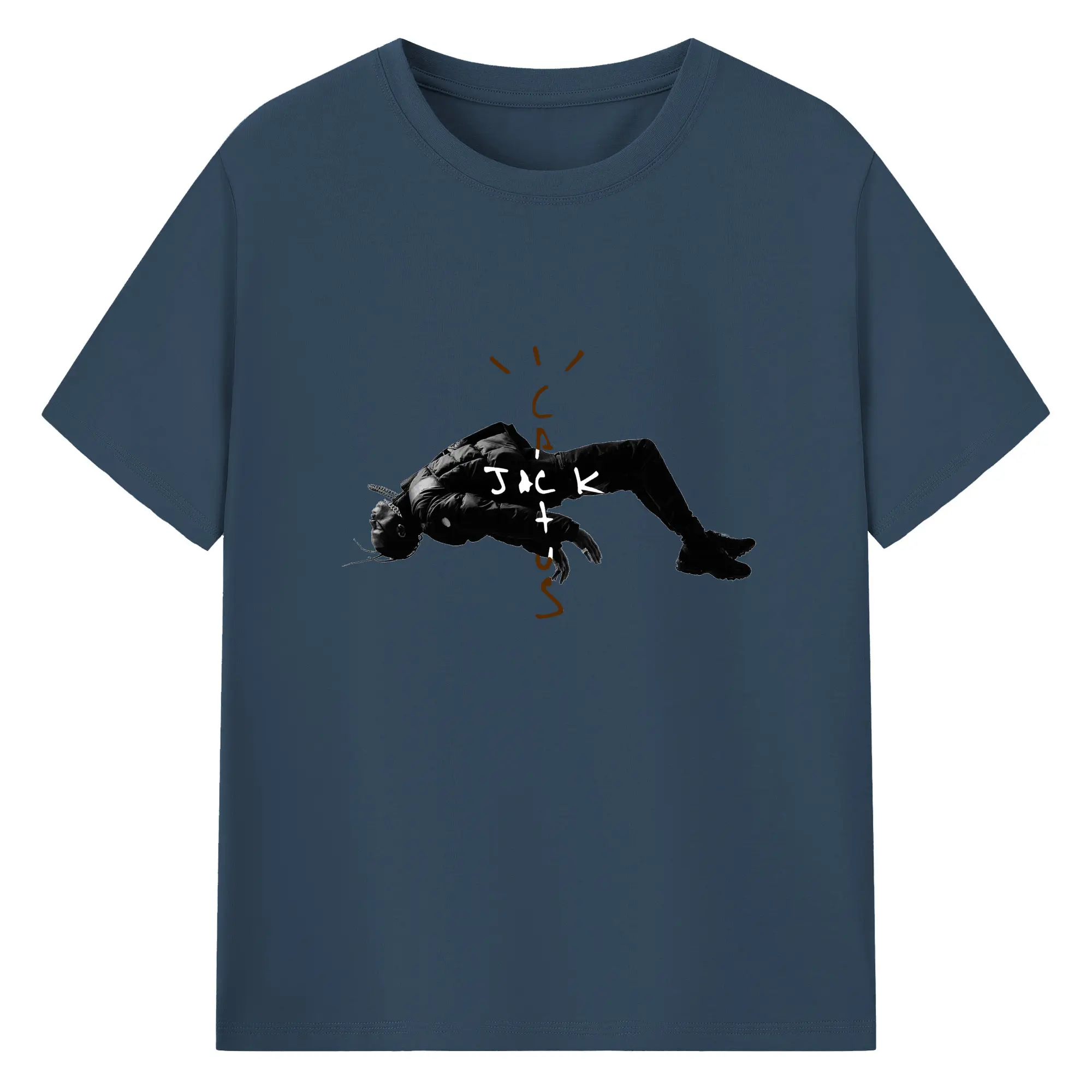 Travis Scott Cactus Jack Dark Streetwear DIY - 180g Cotton T-Shirt With Front Heat Transfer Print – Soft, Lightweight, Fitted Design – Comfortable Casual Wear For Sports & Everyday Use
