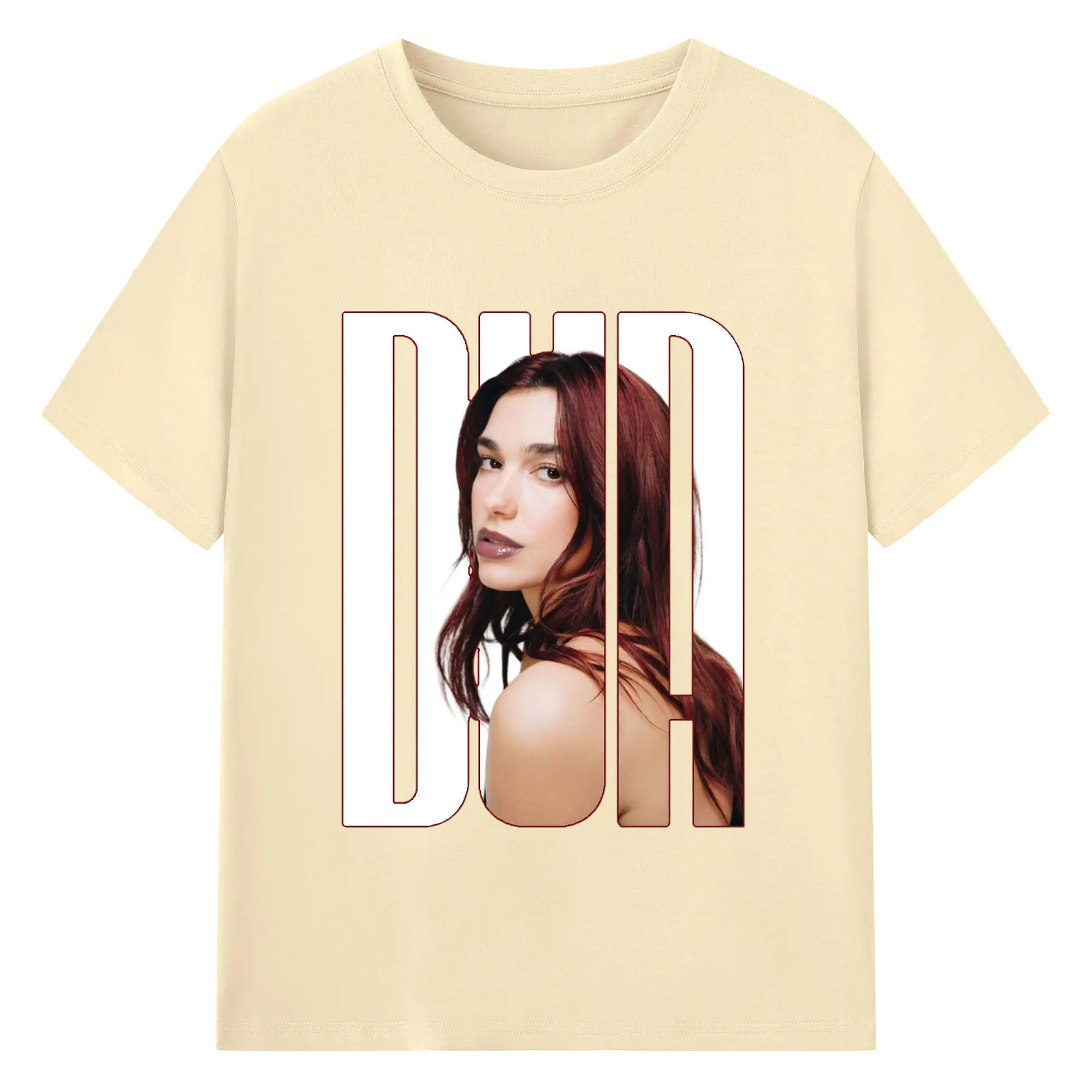 Trendy Dua Lipa-Inspired Artistic DIY - 180g Cotton T-Shirt With Front Heat Transfer Print – Soft, Lightweight, Fitted Design – Comfortable Casual Wear For Sports & Everyday Use