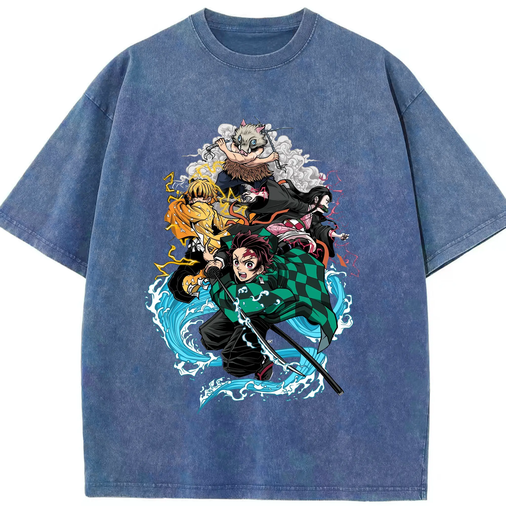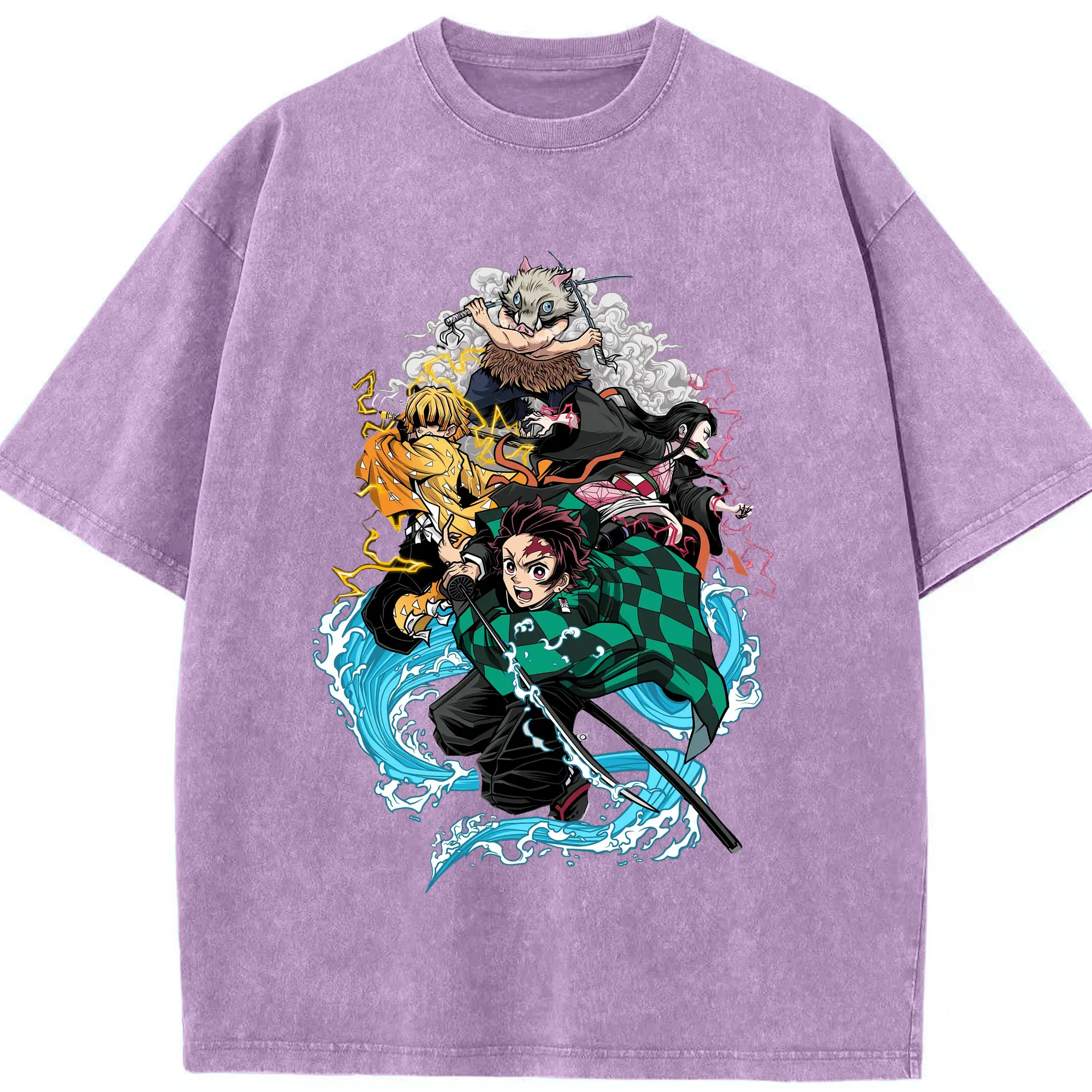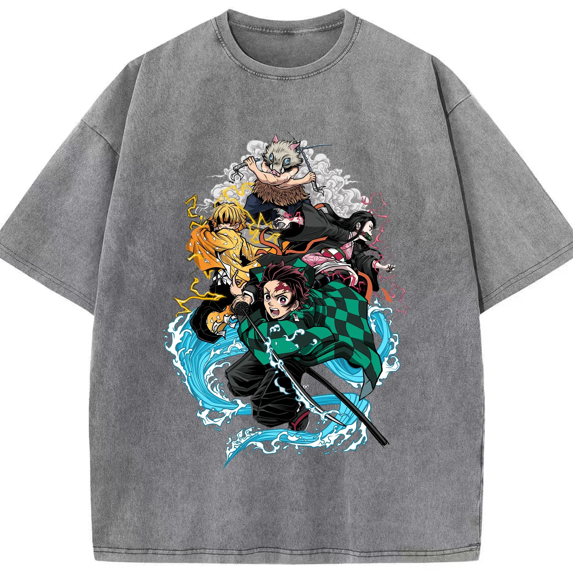 Trendy “Kimetsu no Yaiba Group Battle” DIY Shirt - Washed Vintage Look 230g Cotton Oversized T-Shirt With Front Heat Transfer Print – Soft, Lightweight, Stylish Fit – Comfortable Casual Wear For Sports & Everyday Use
