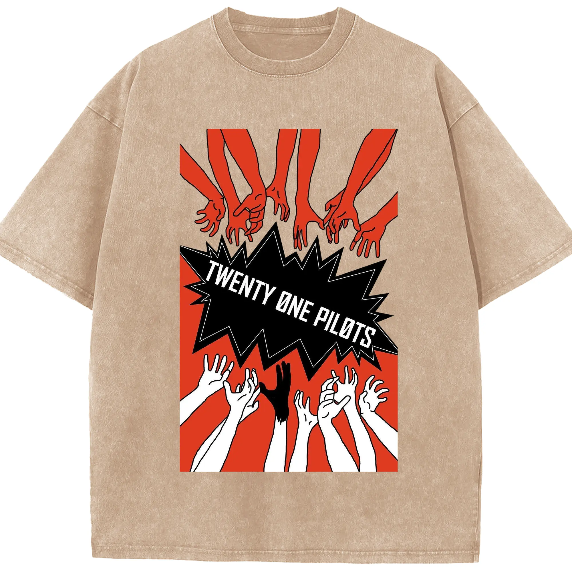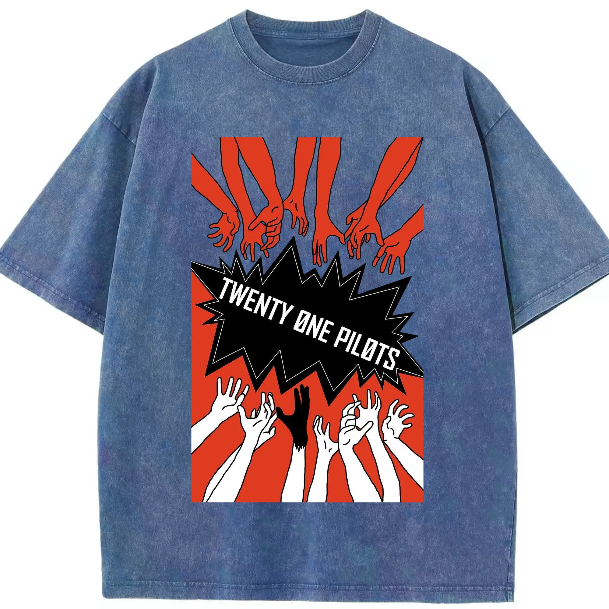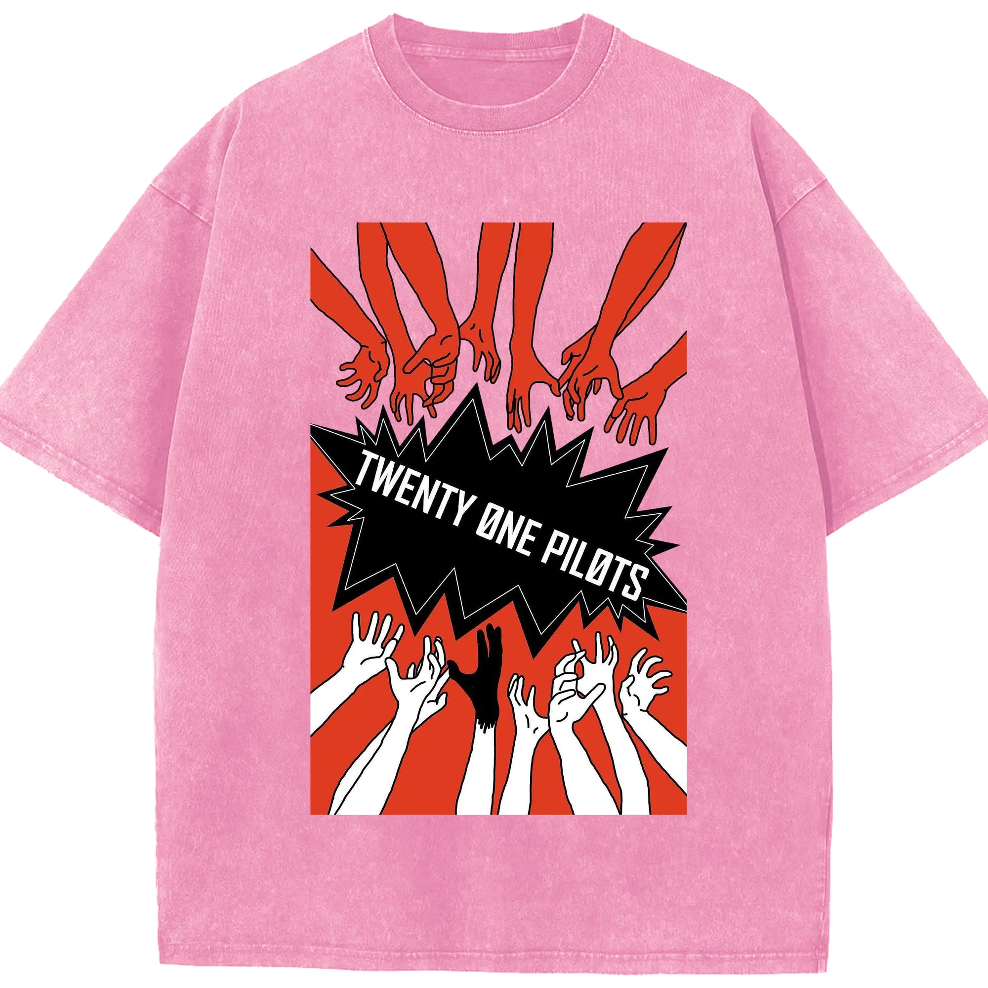 Twenty One Pilots Comic Art Rock DIY - Washed Vintage Look 230g Cotton Oversized T-Shirt With Front Heat Transfer Print – Soft, Lightweight, Stylish Fit – Comfortable Casual Wear For Sports & Everyday Use