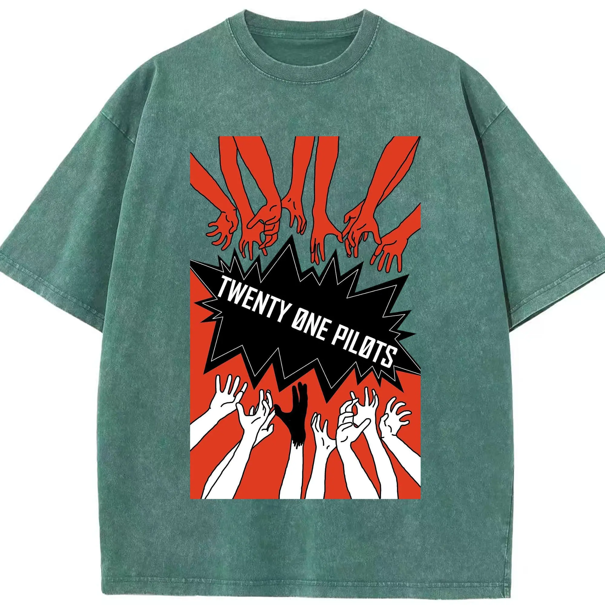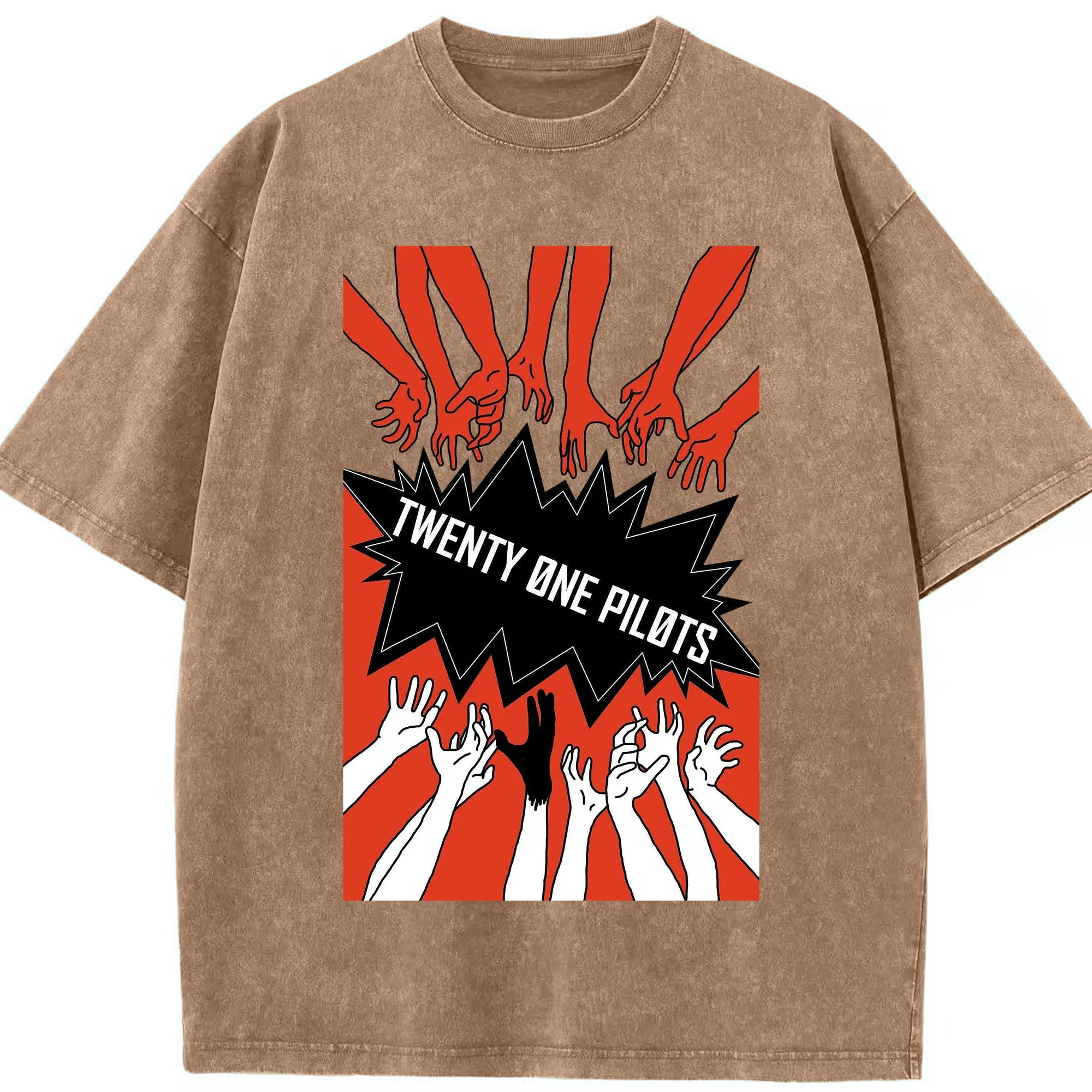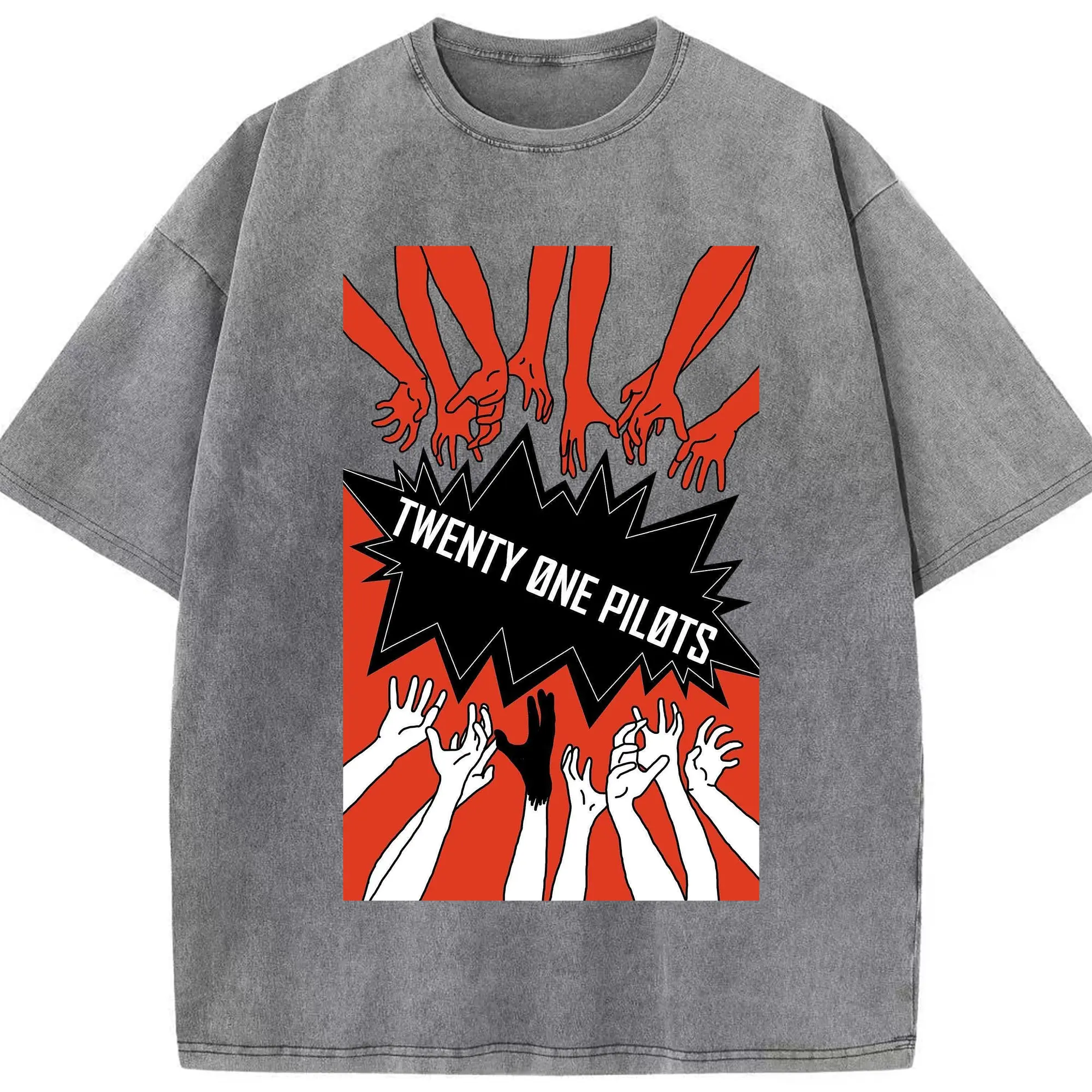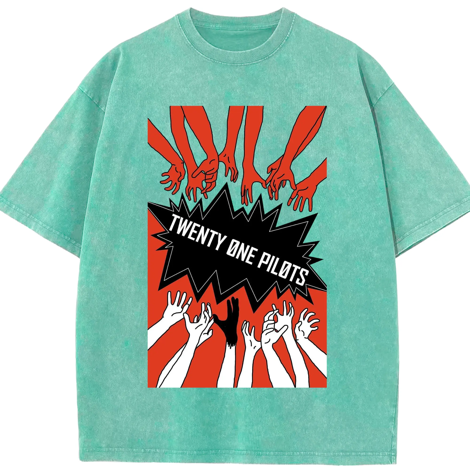 Twenty One Pilots Comic Art Rock DIY - Washed Vintage Look 230g Cotton Oversized T-Shirt With Front Heat Transfer Print – Soft, Lightweight, Stylish Fit – Comfortable Casual Wear For Sports & Everyday Use