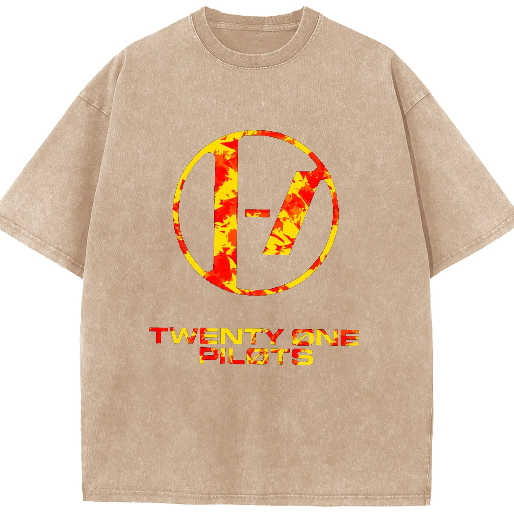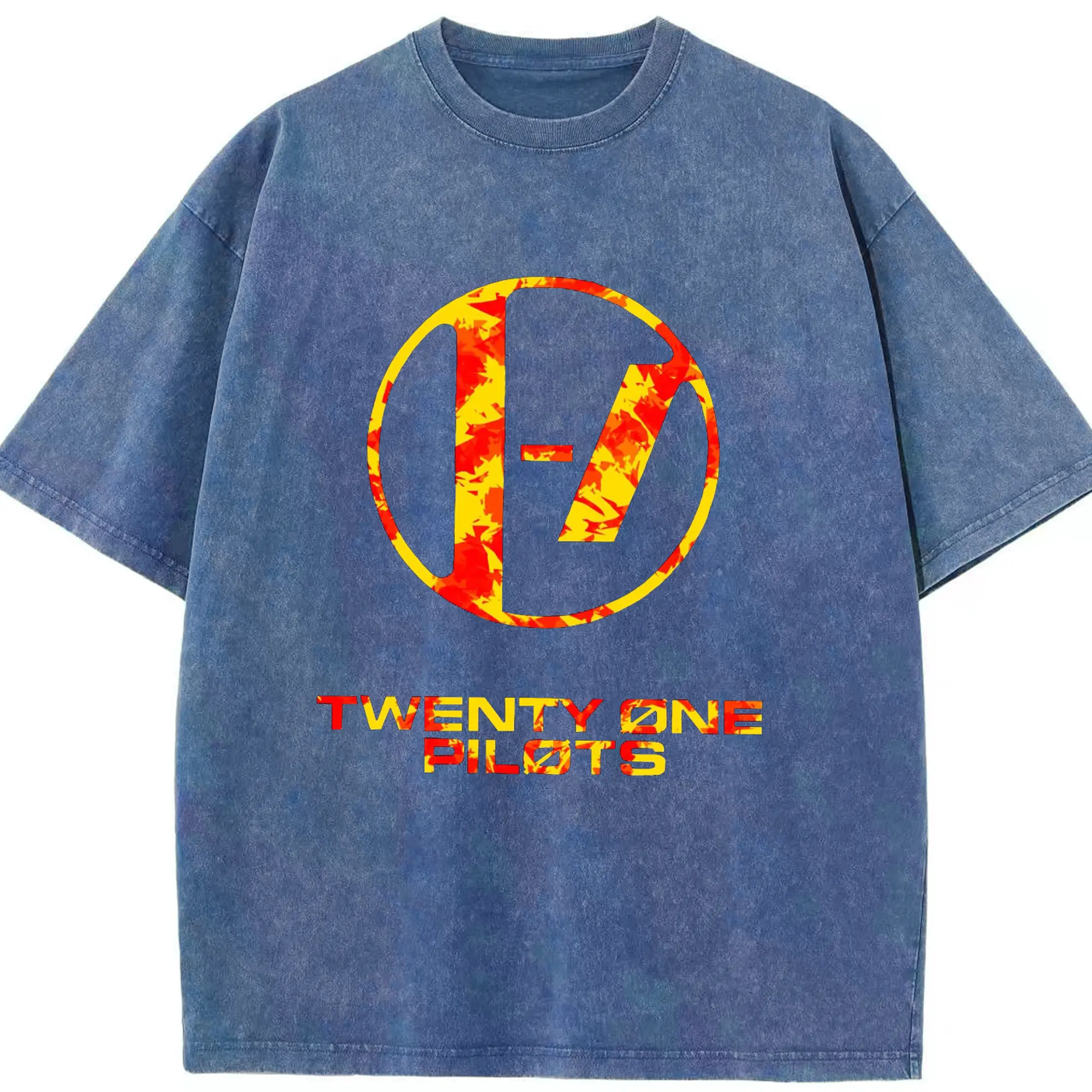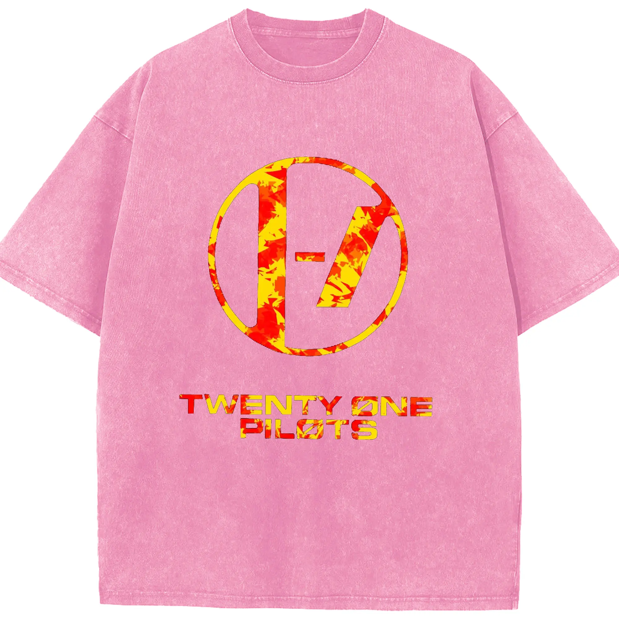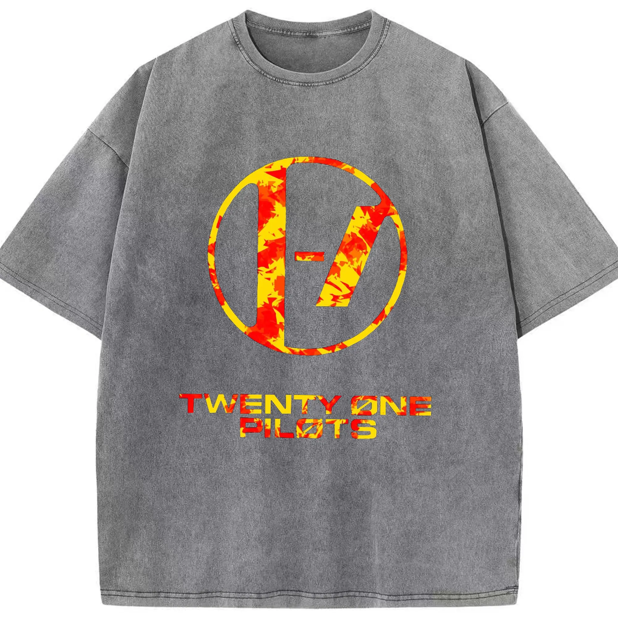 Twenty One Pilots Flame Texture Rock DIY - Washed Vintage Look 230g Cotton Oversized T-Shirt With Front Heat Transfer Print – Soft, Lightweight, Stylish Fit – Comfortable Casual Wear For Sports & Everyday Use